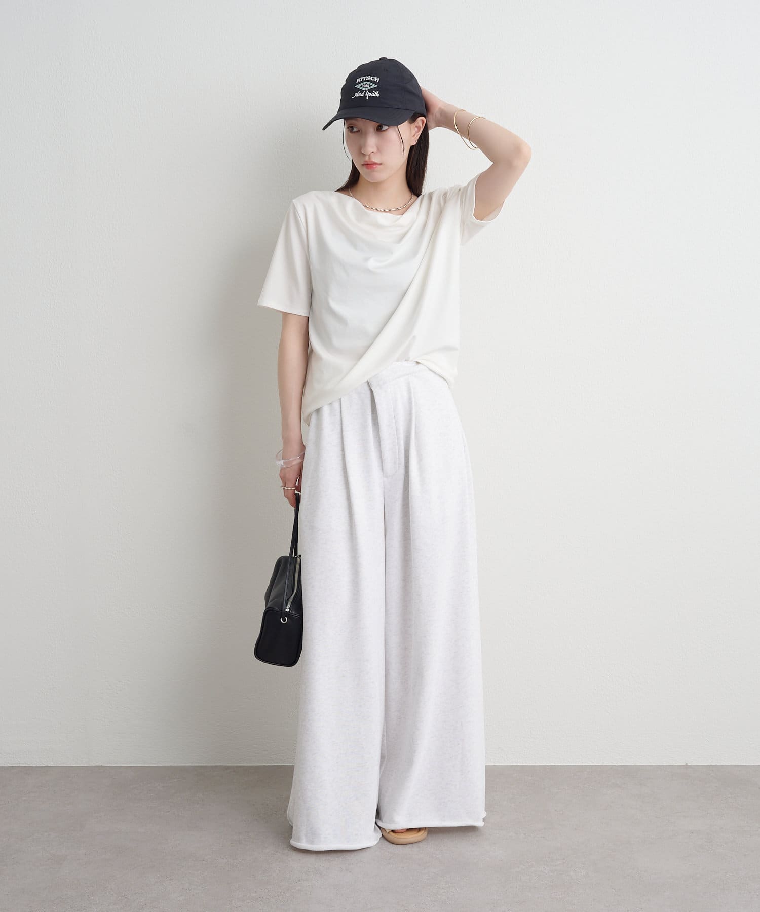 【ライトグレー①】ボートネックドレープ半袖Tシャツ