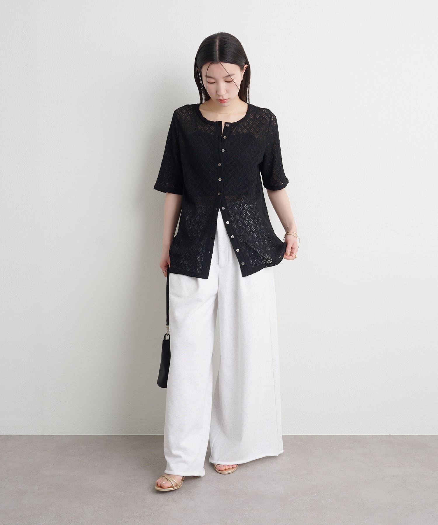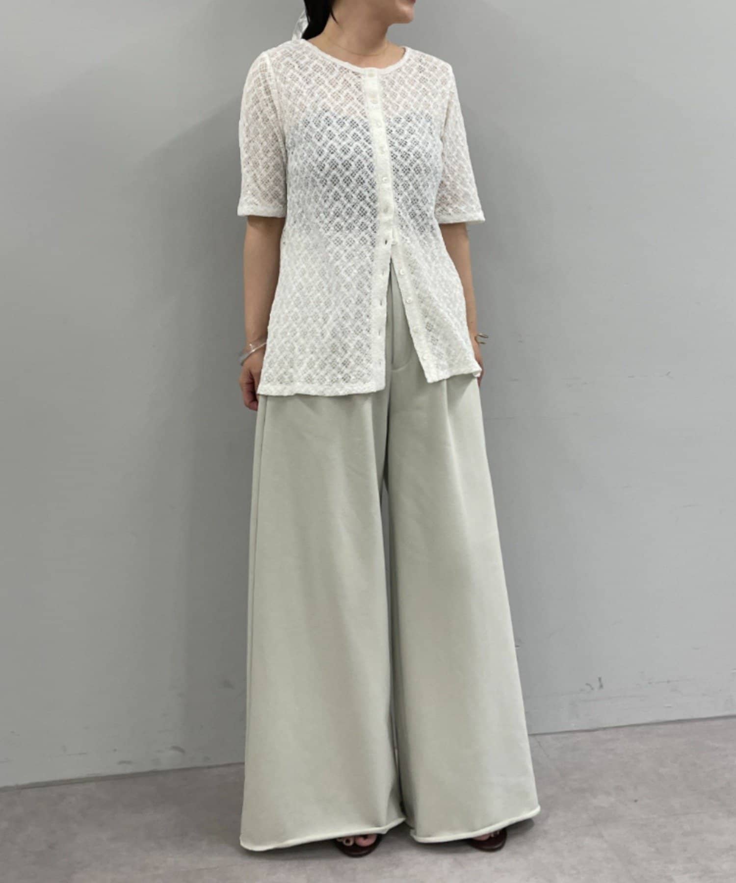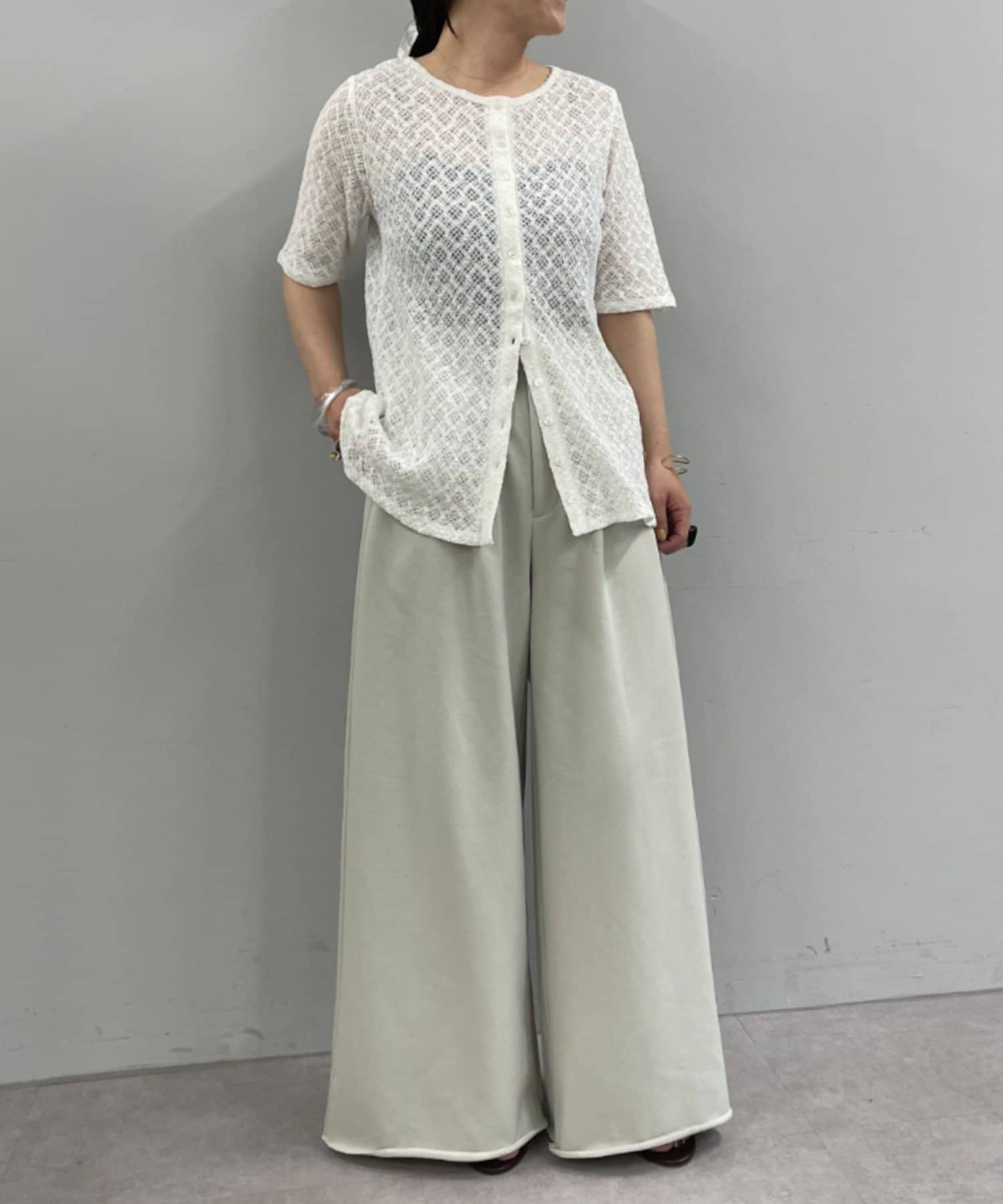 【ライトグレー②】ストレッチレース2WAYカーディガン