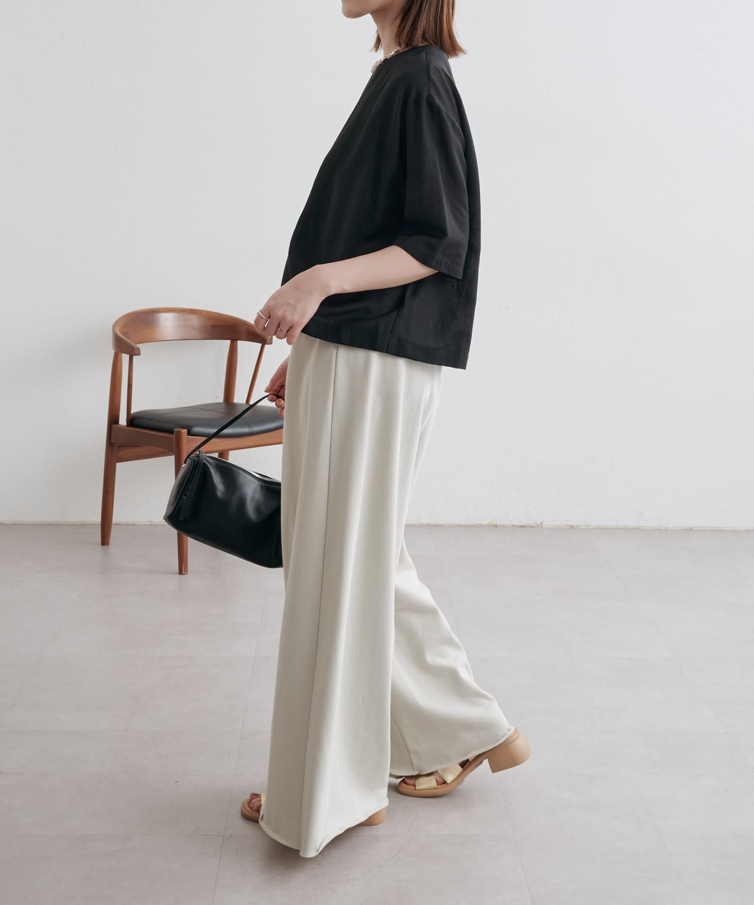 ・ストレスフリーなスウェット素材ですが、キレイめなシルエットなので、オンでもオフでも着て頂けます。