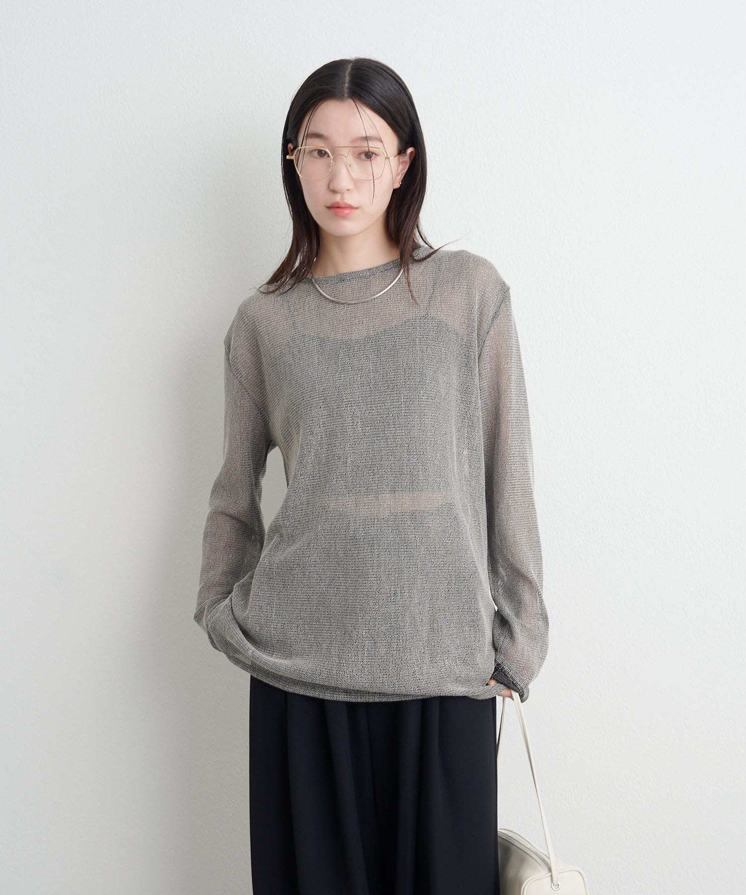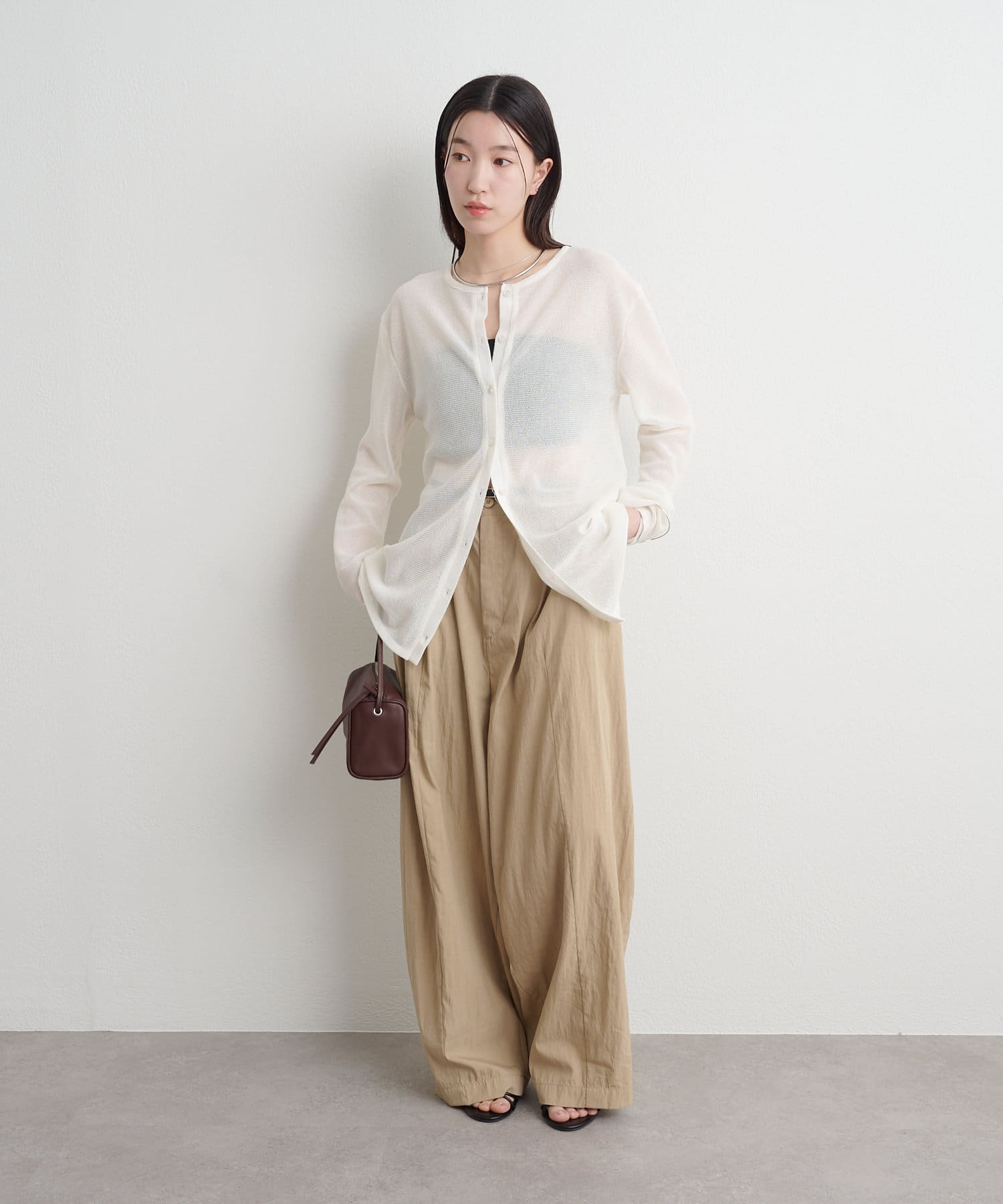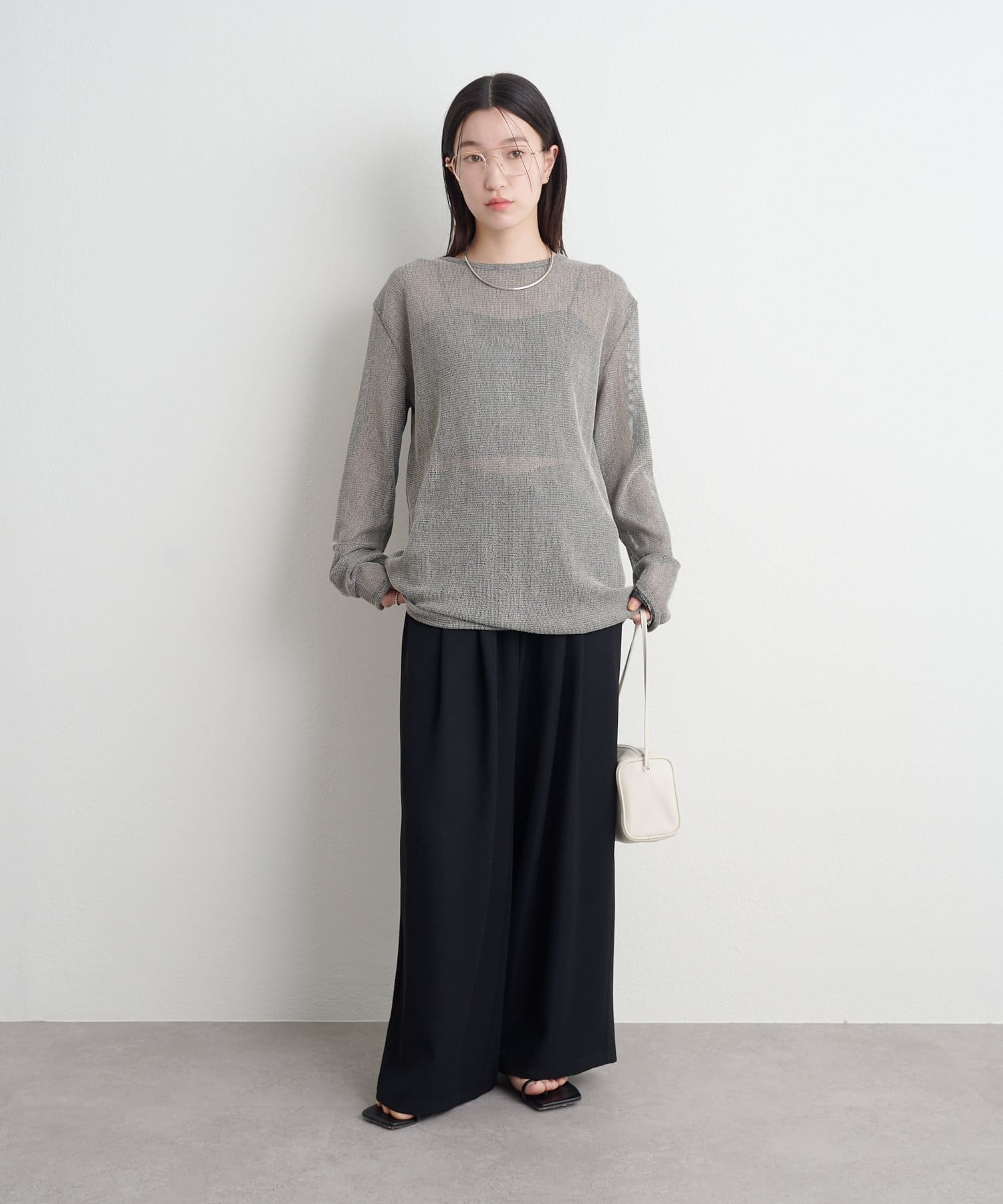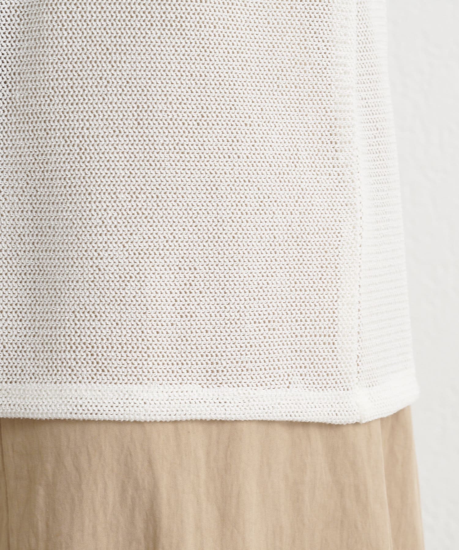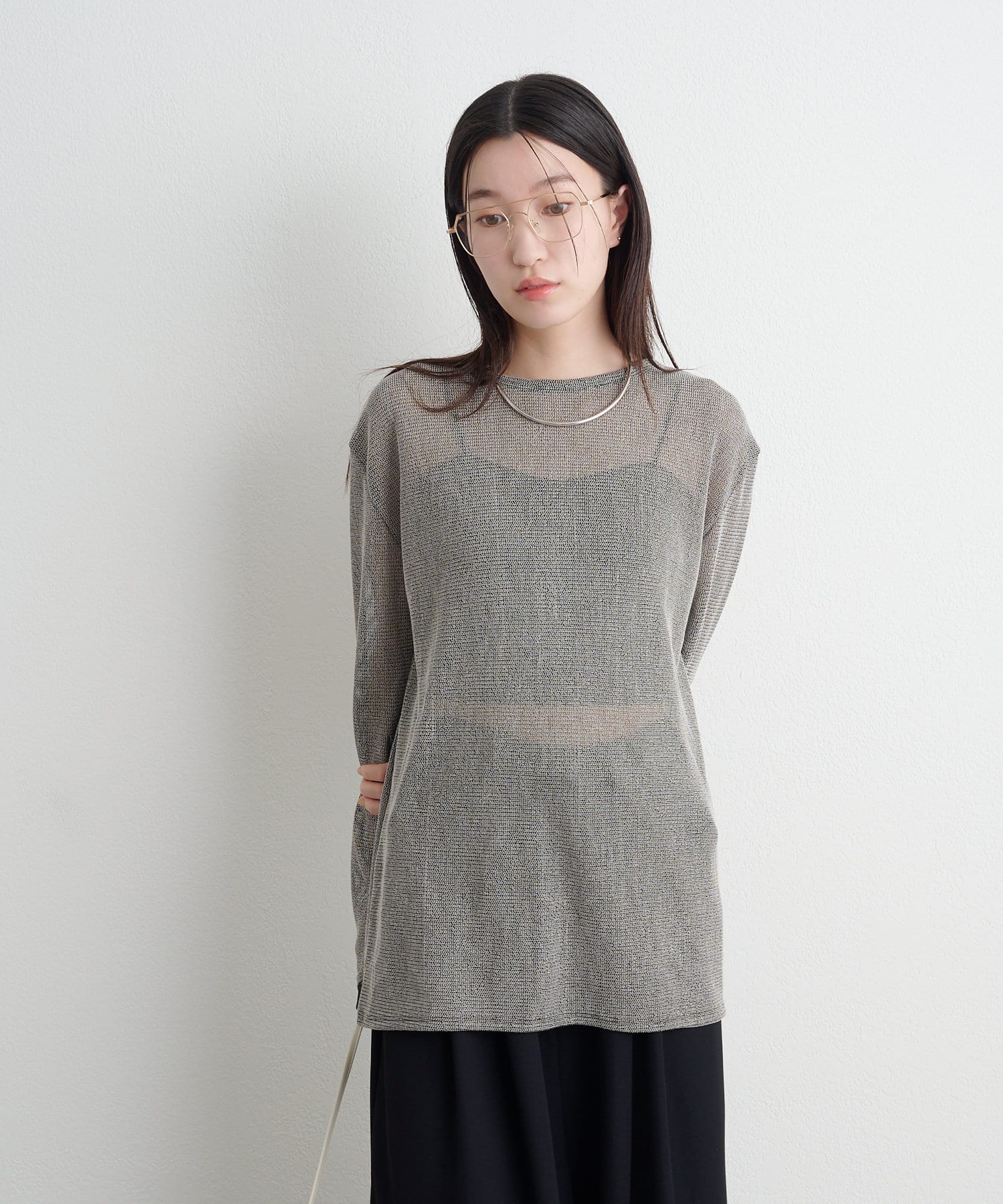 ・インナーにキャミソールやタンクトップを合わせて透けさせることで、旬なスタイリングが出来上がります。