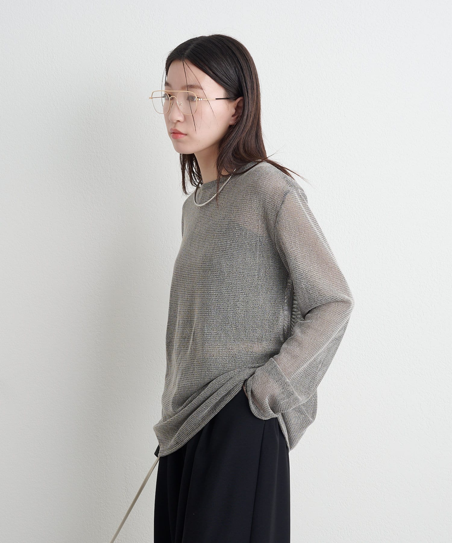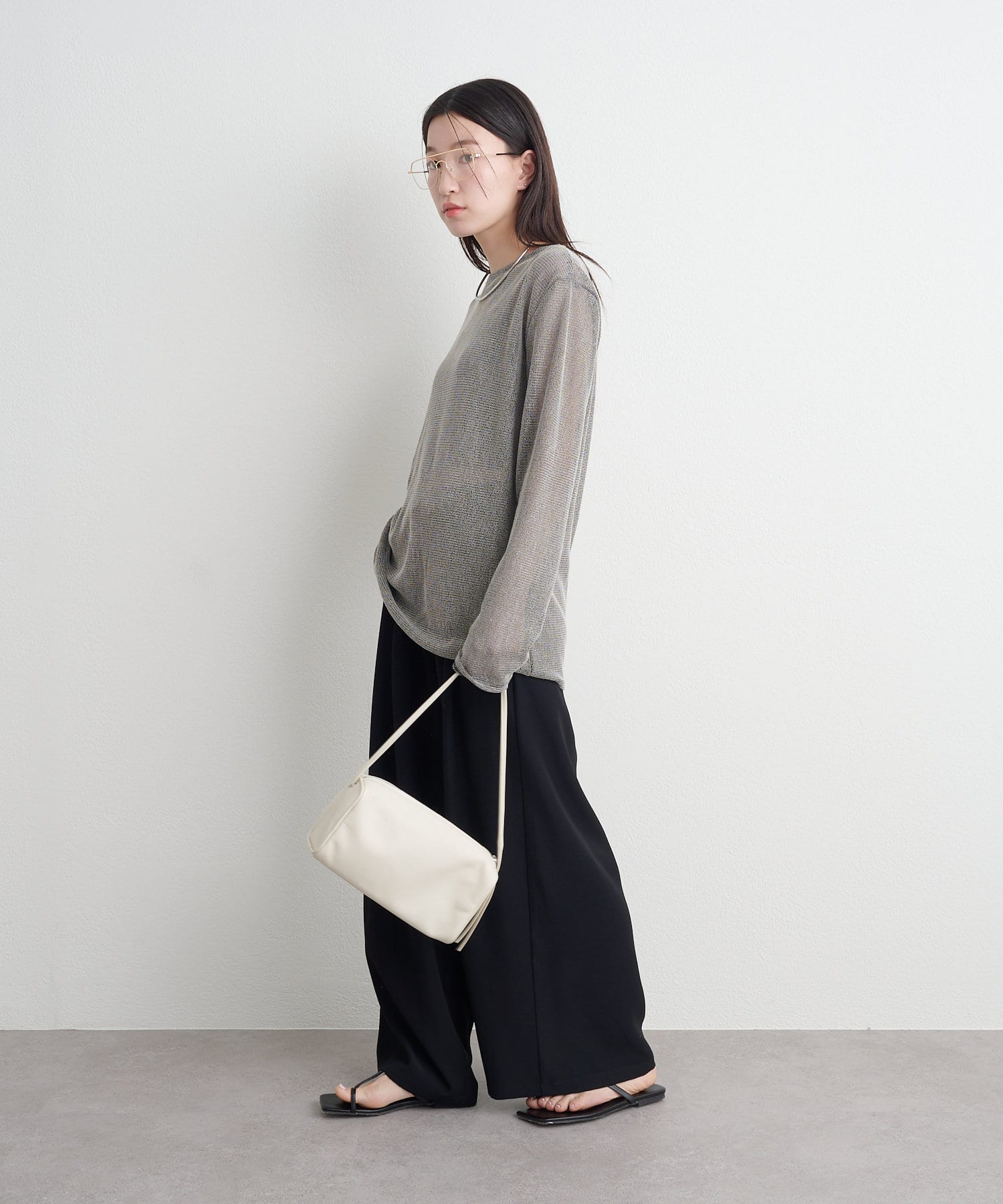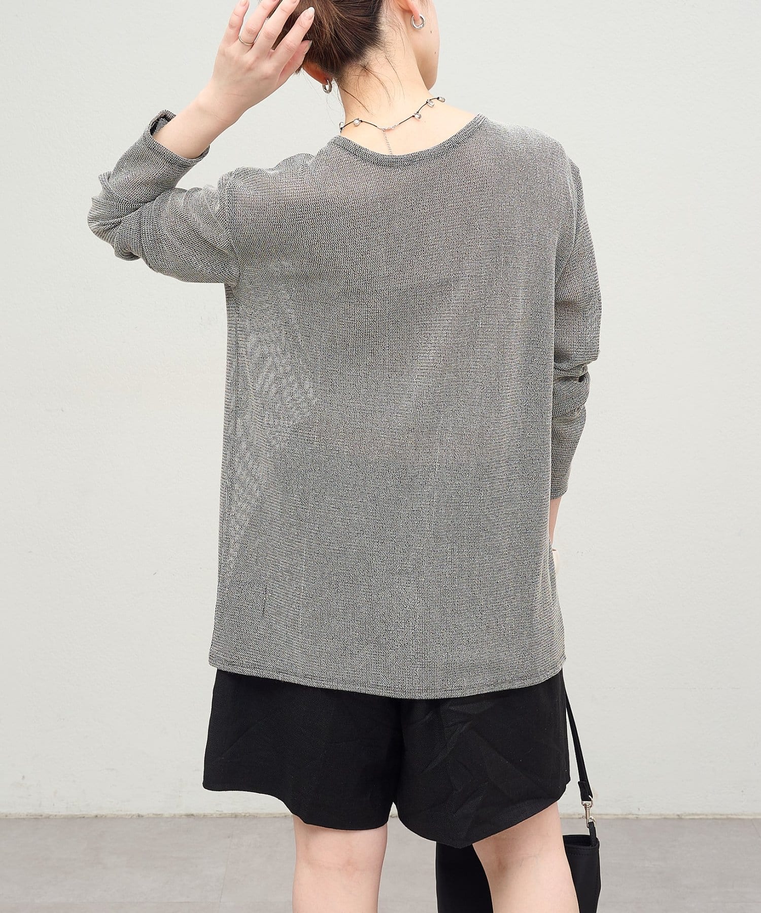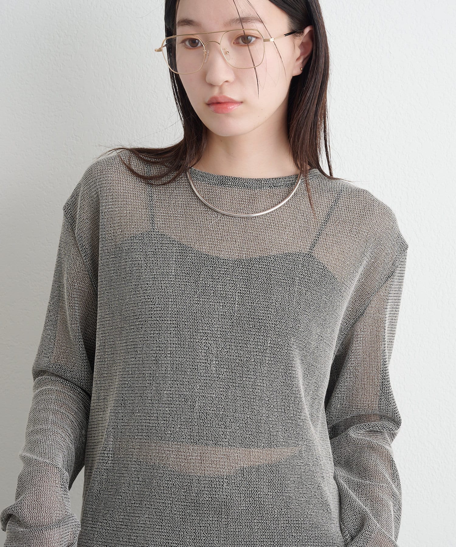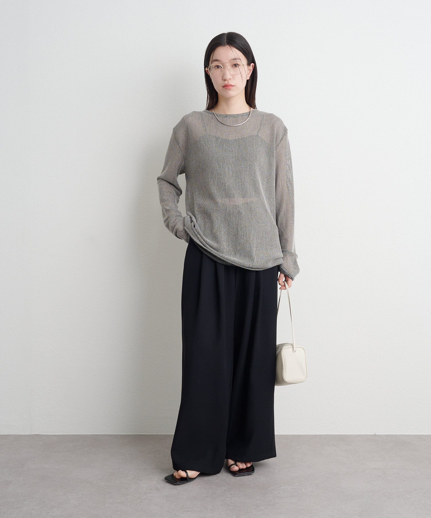 ・インナーにキャミソールやタンクトップを合わせて透けさせることで、旬なスタイリングが出来上がります。