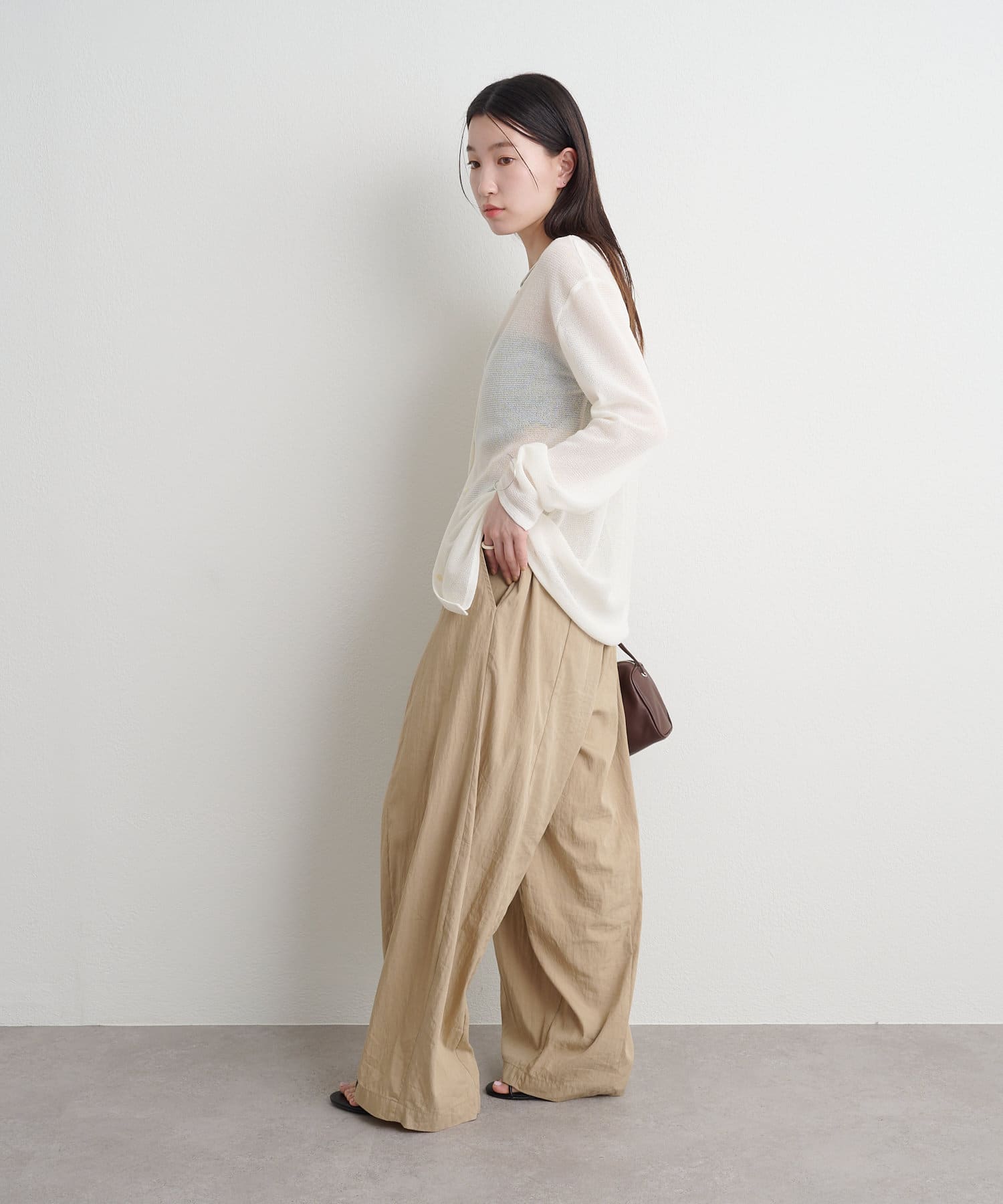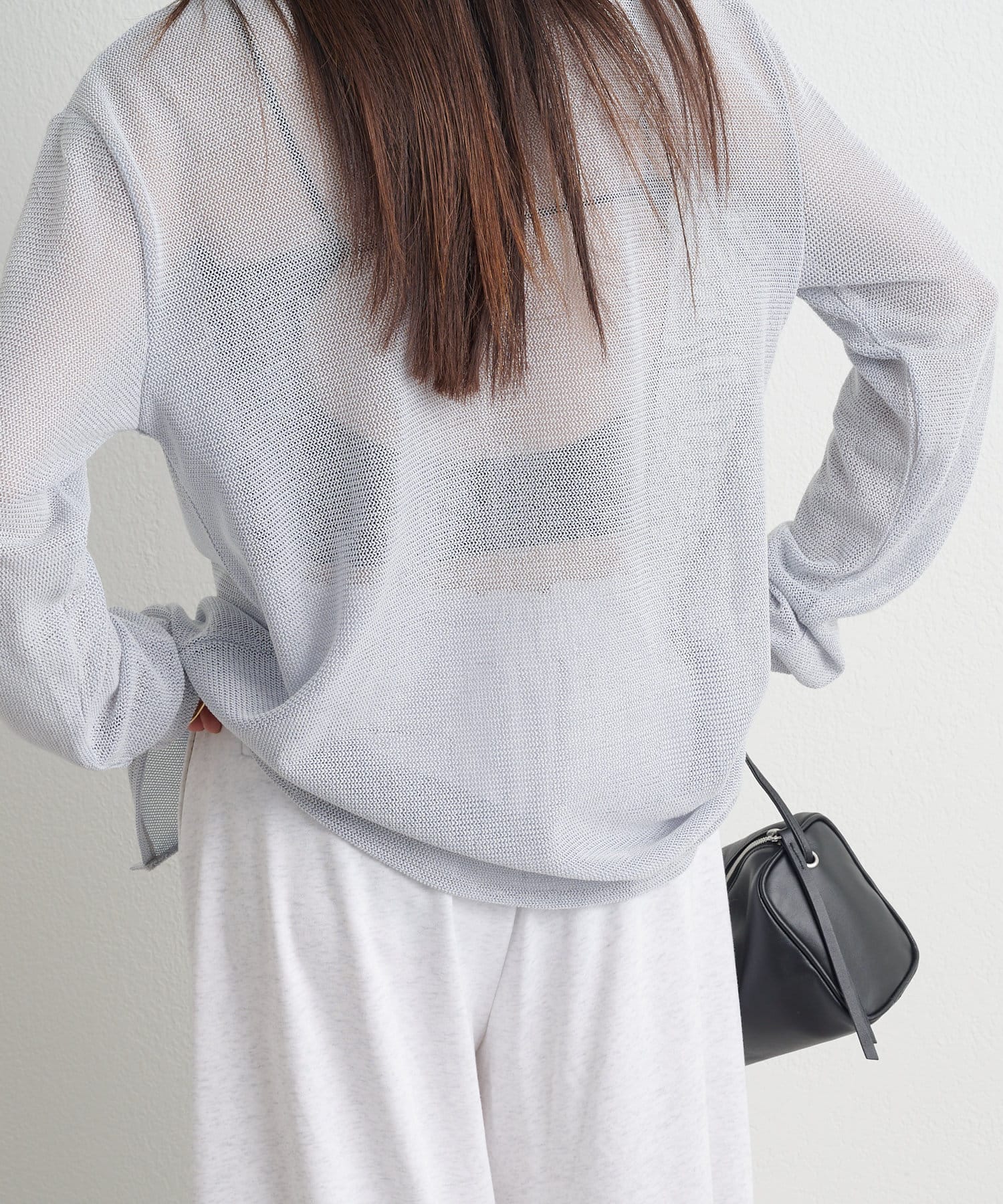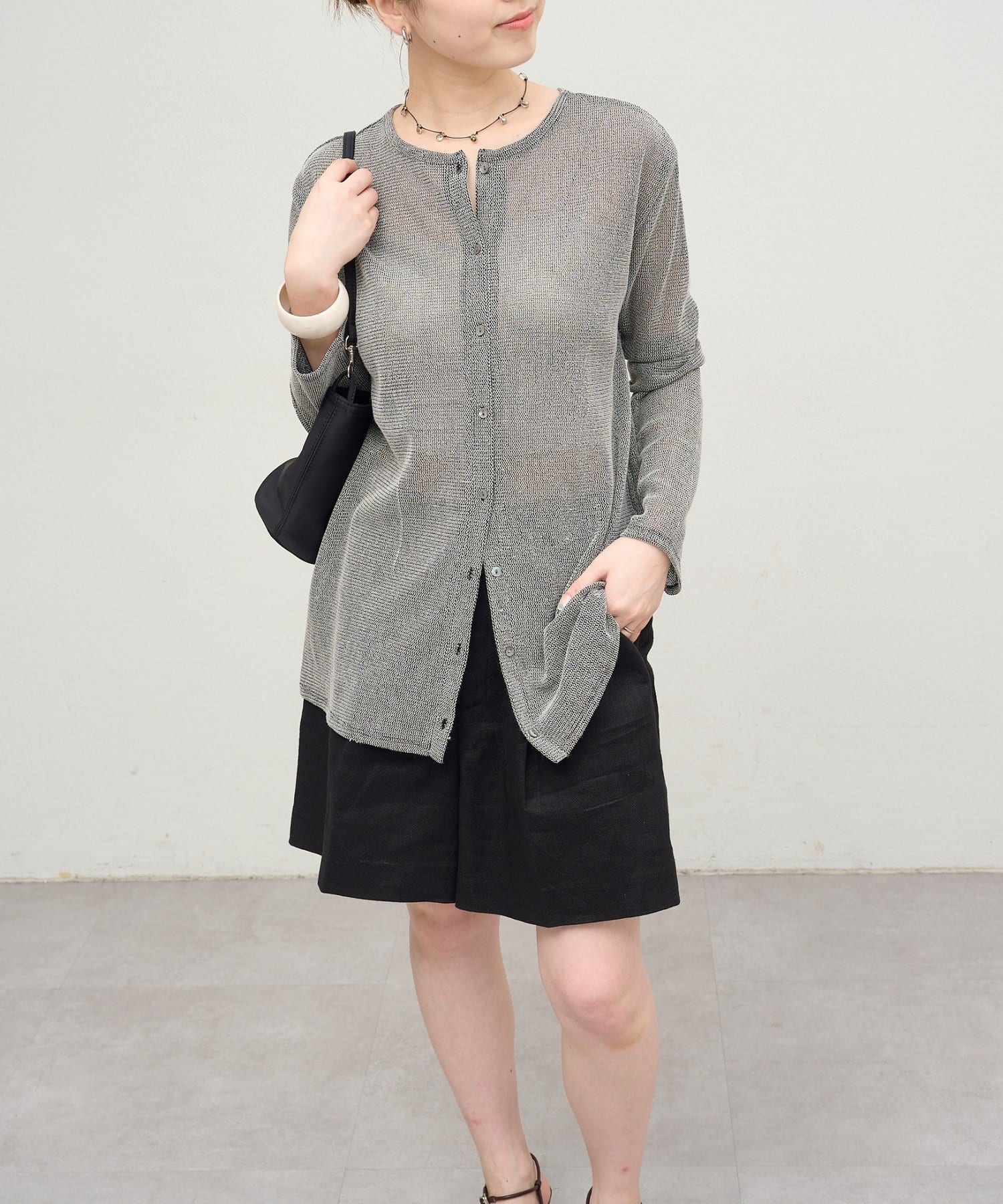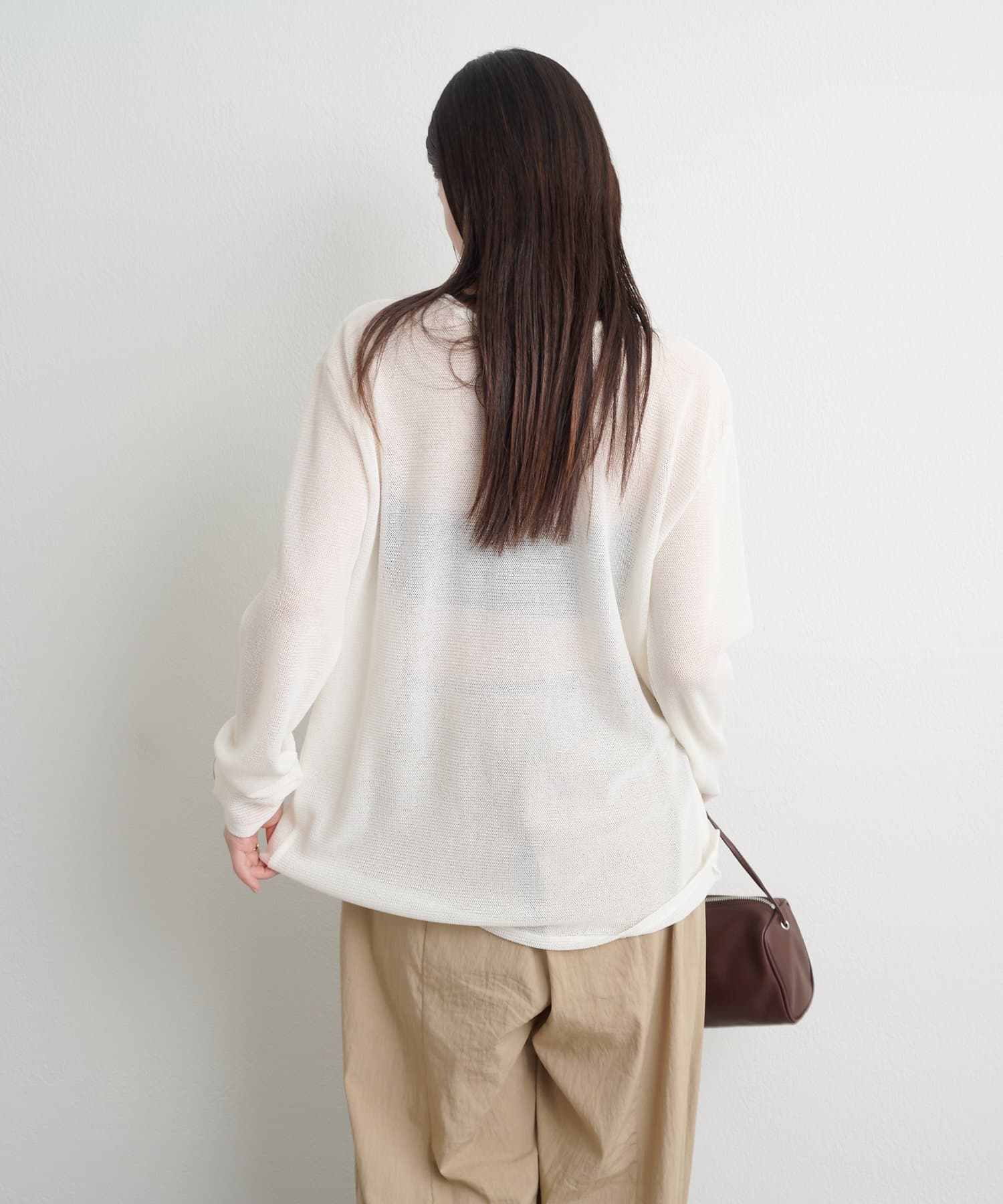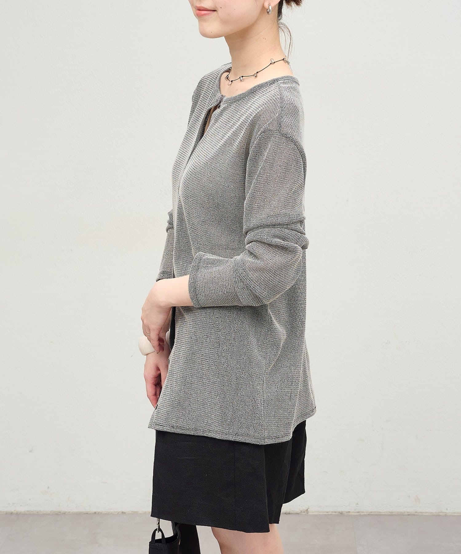・カーディガンとしてはもちろん、前後両前で2WAYで着用できるので、サマーニットとしても着用いただけます。