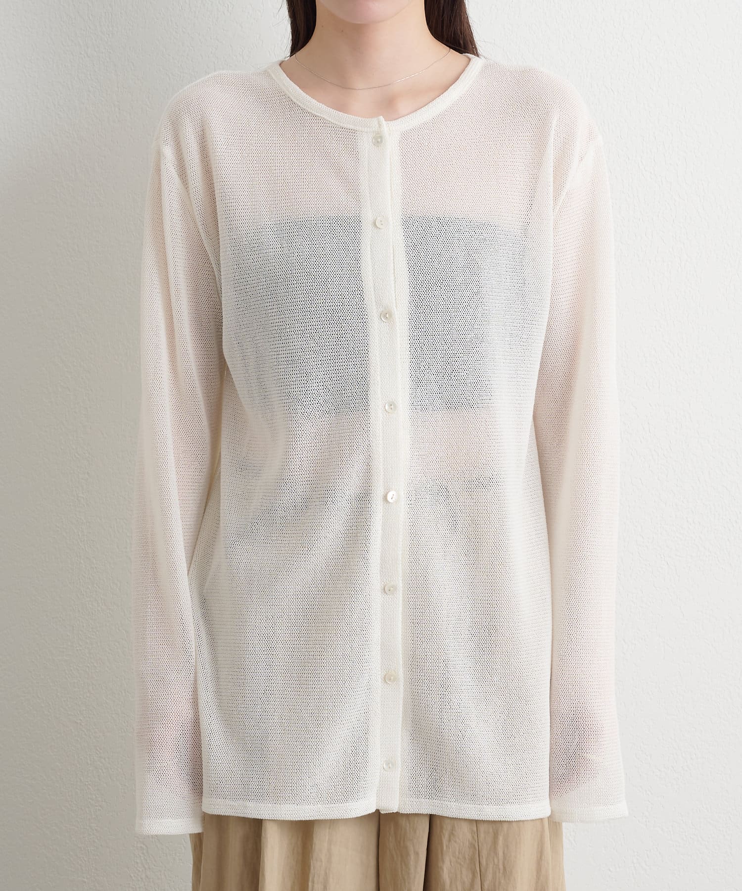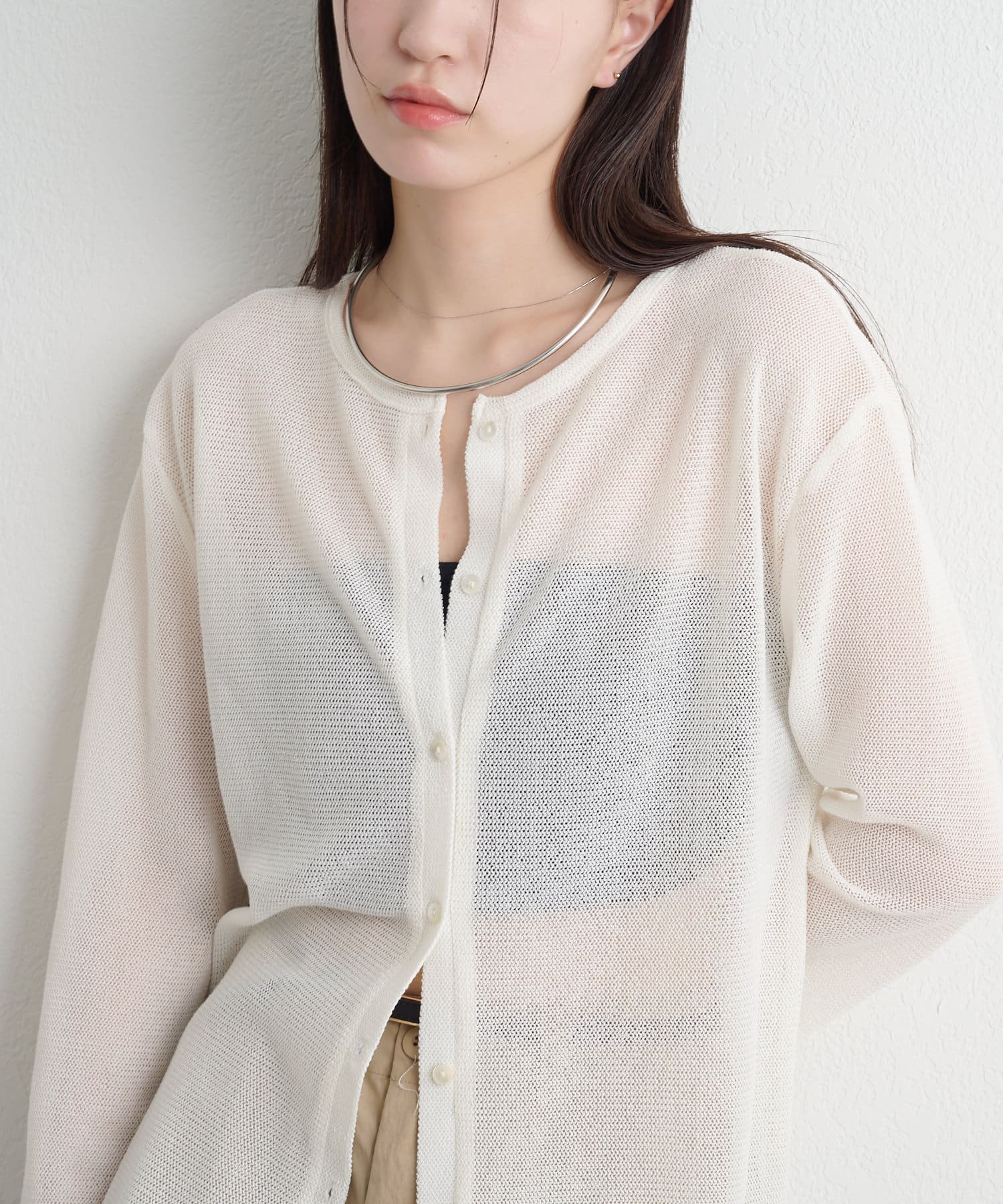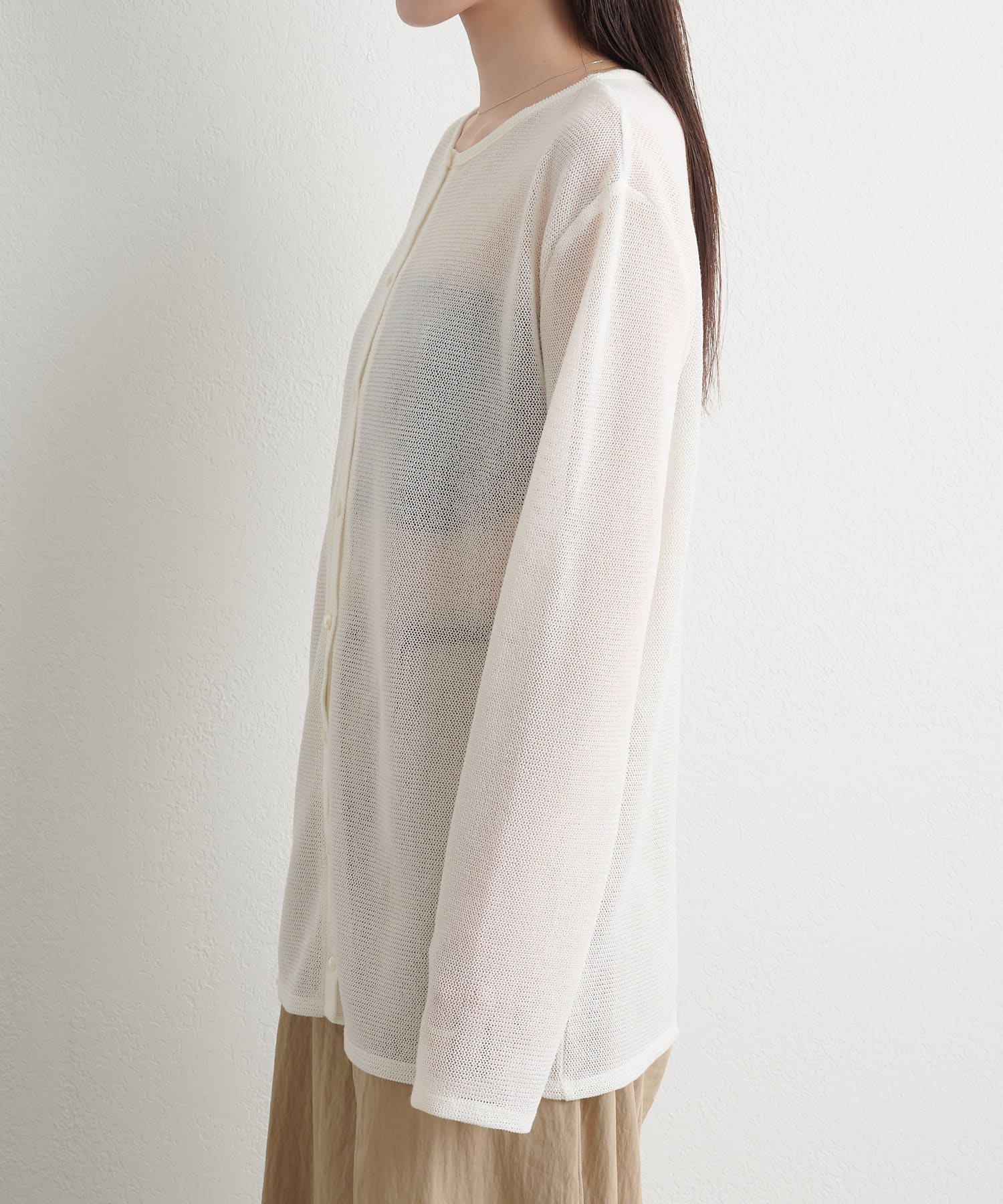 ・さりげない透け感で、真夏の紫外線対策、冷房対策と様々な場面で活躍してくれるシアーカーディガン。