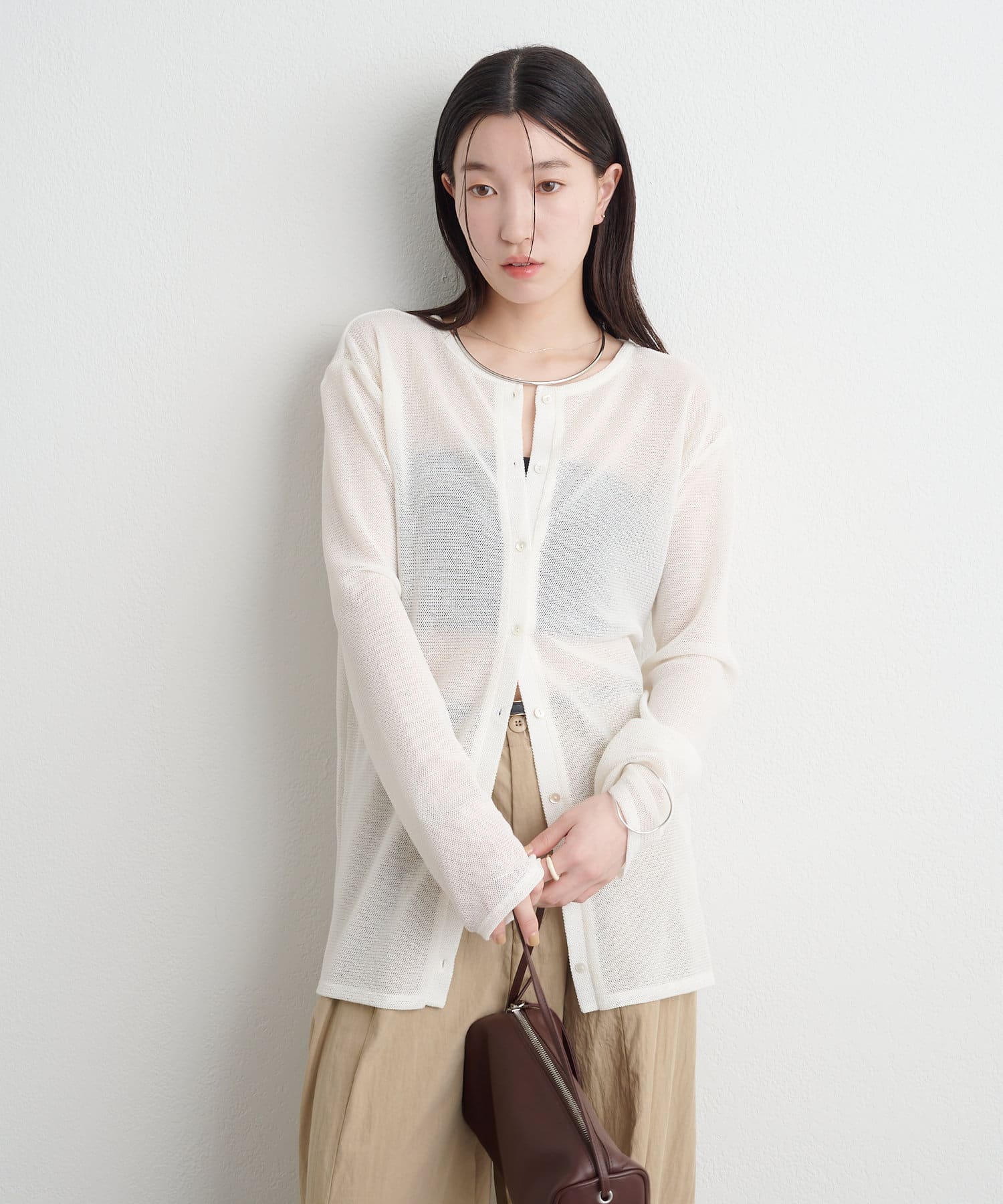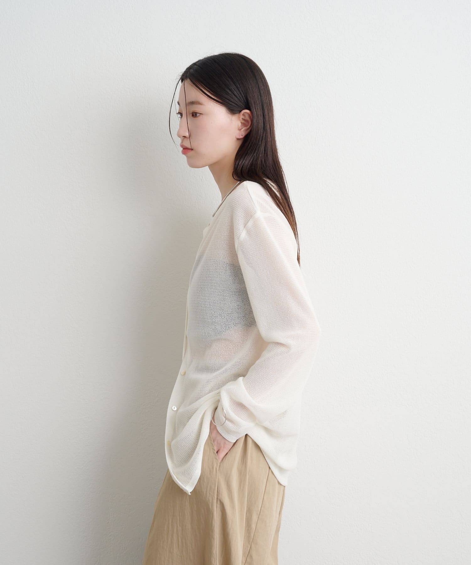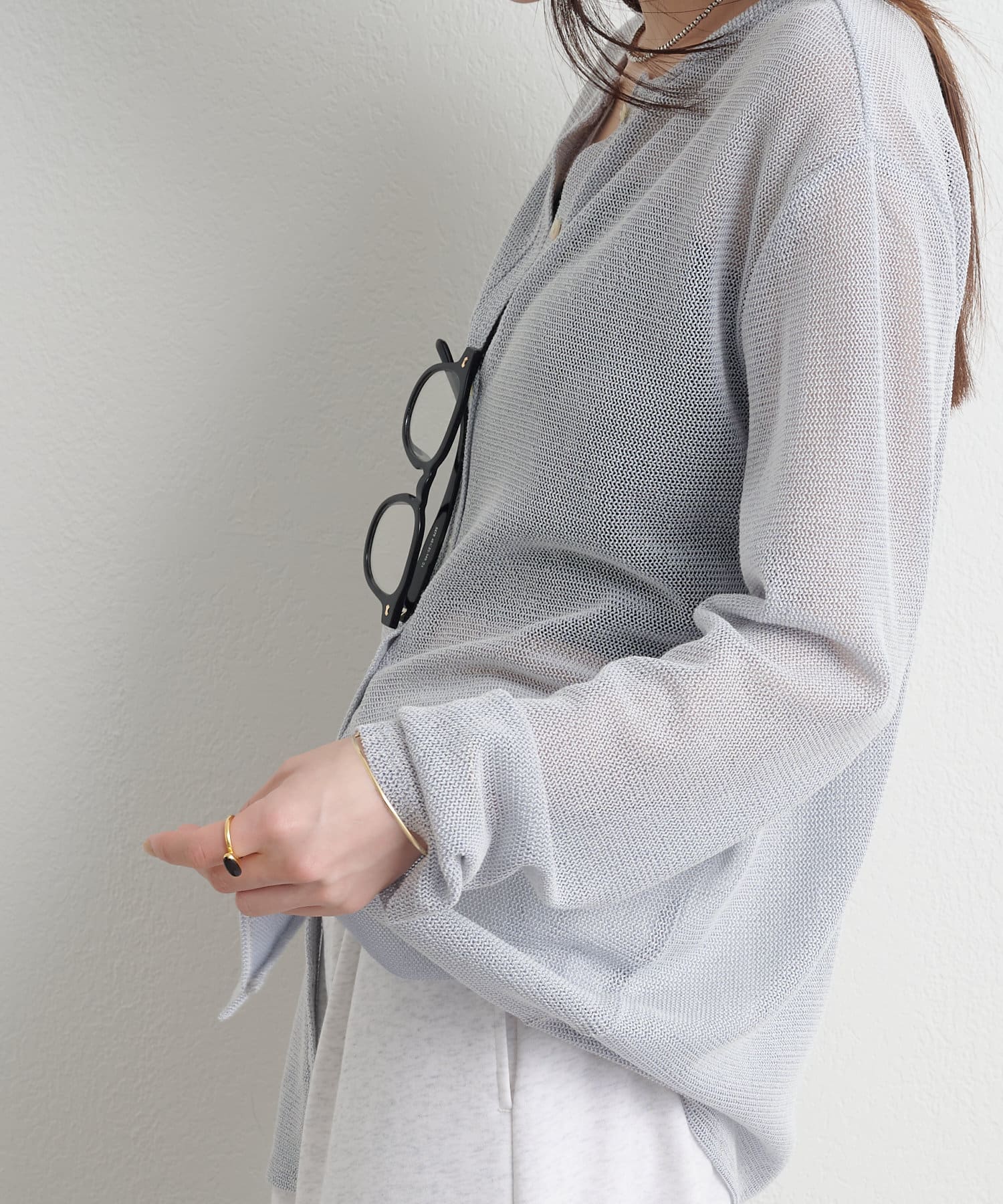 ・さりげない透け感で、真夏の紫外線対策、冷房対策と様々な場面で活躍してくれるシアーカーディガン。