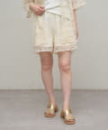 ・レースが女性らしい印象を与えてくれるショートパンツ。