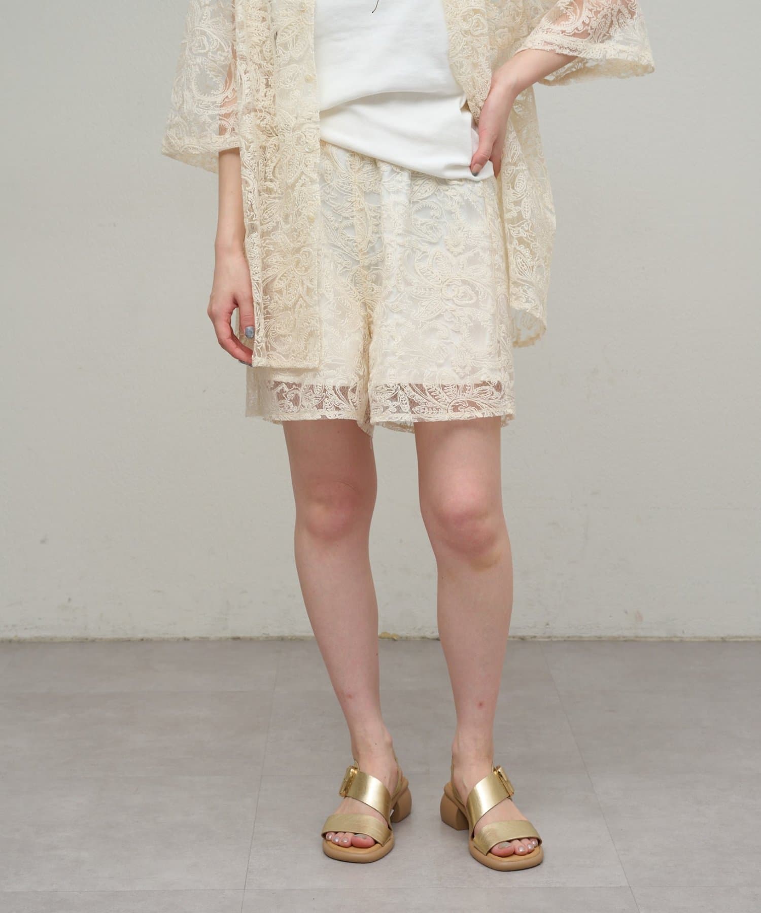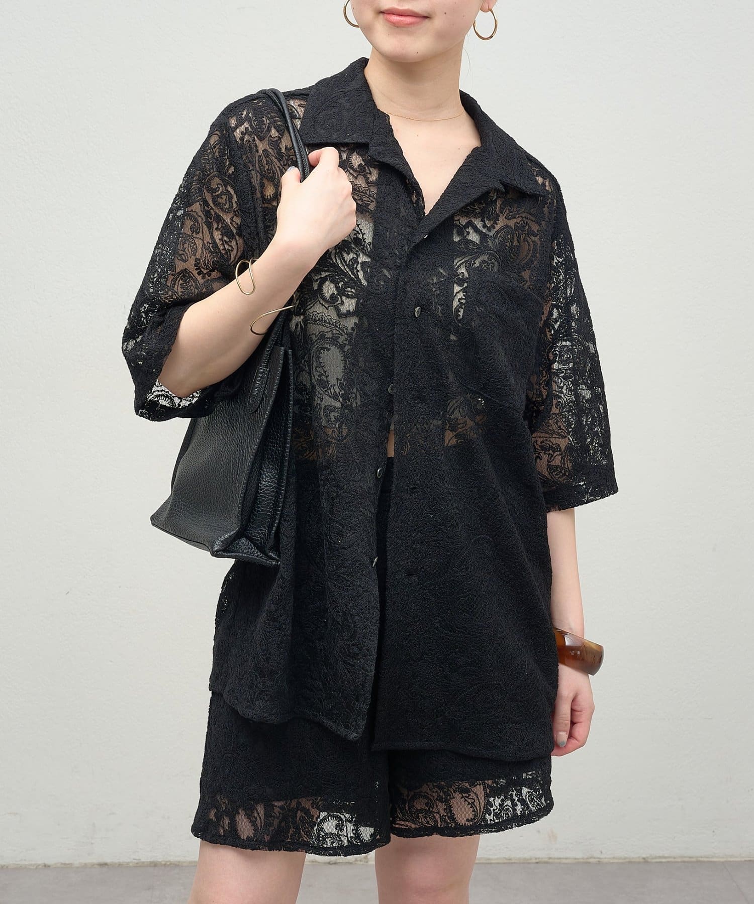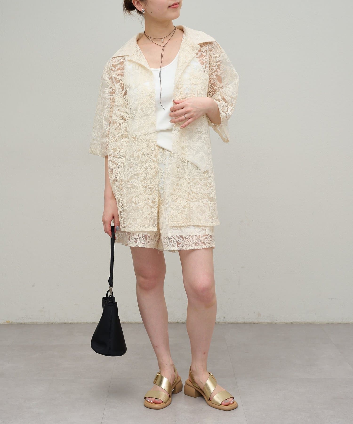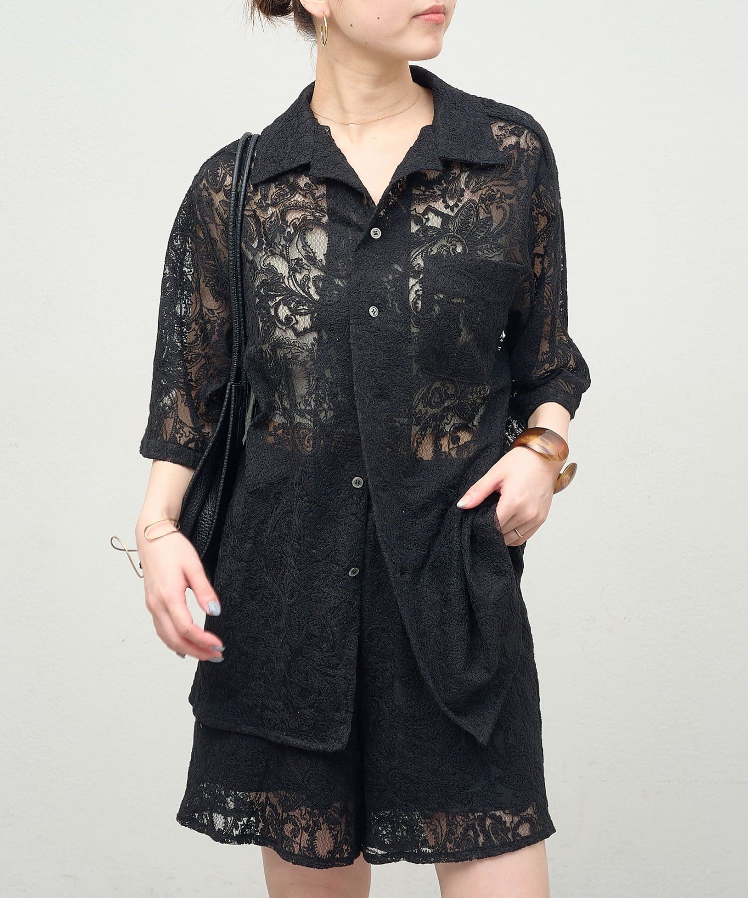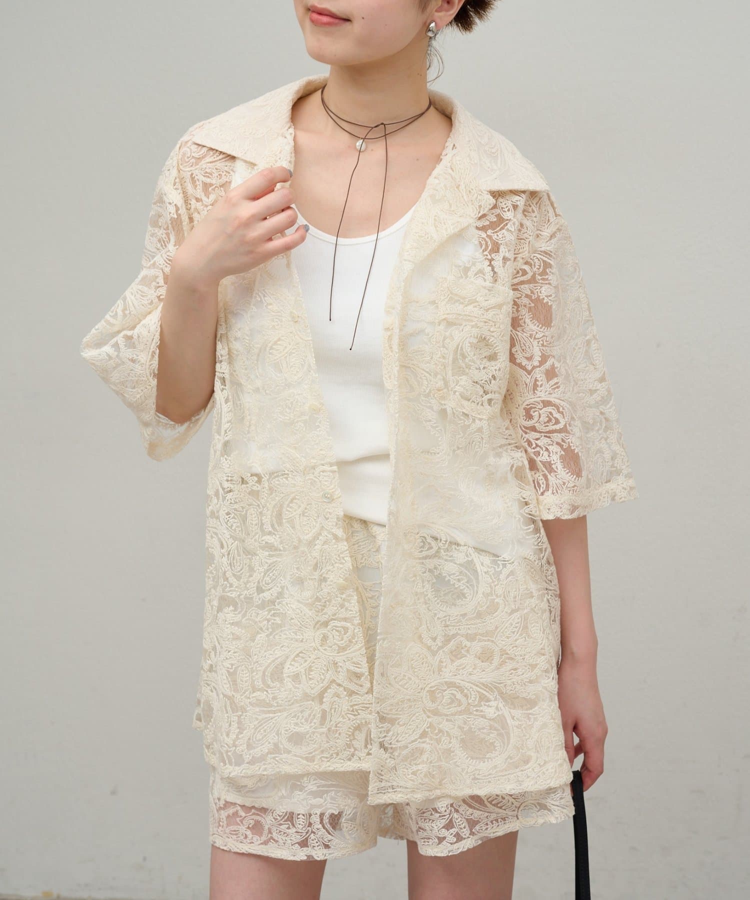 ・同素材のレースオーバーシャツとセットアップとして着用いただけます。
