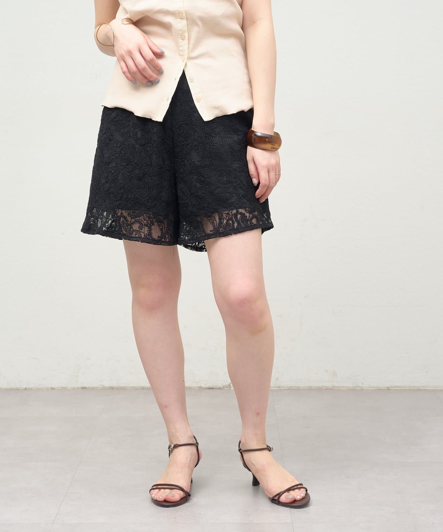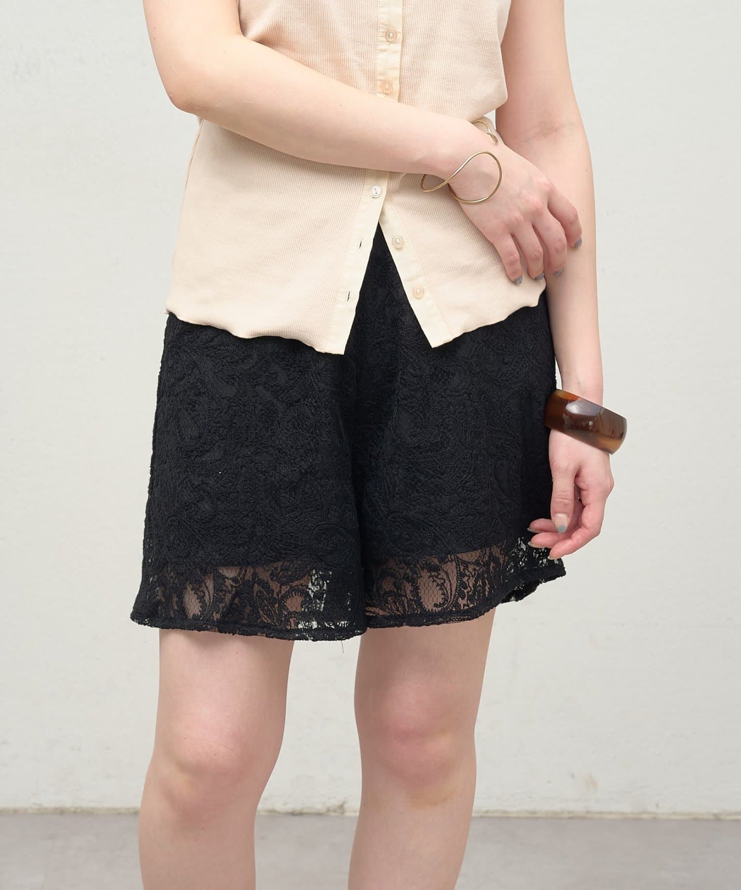 スタイリングのアクセントになるレースショートパンツ