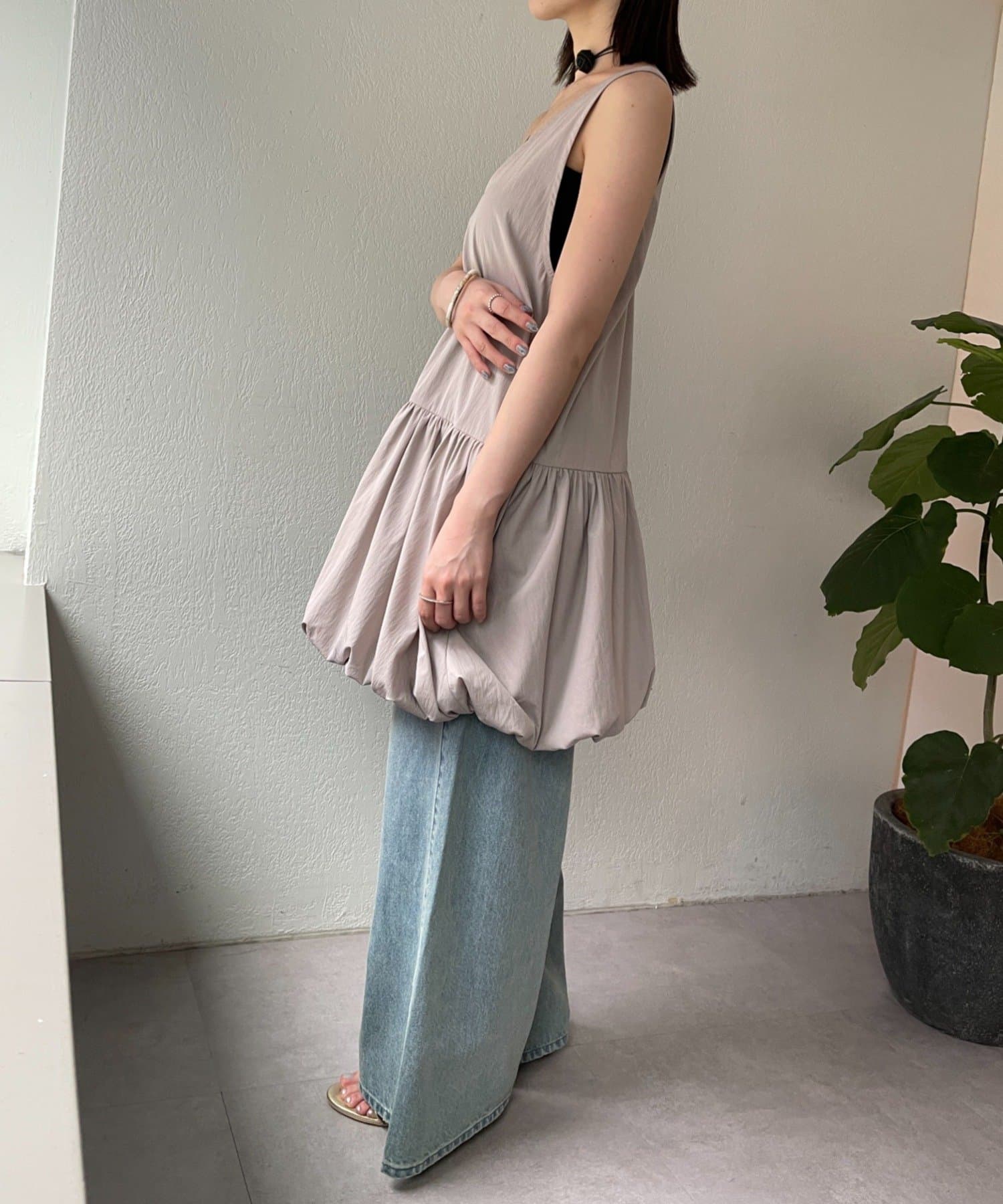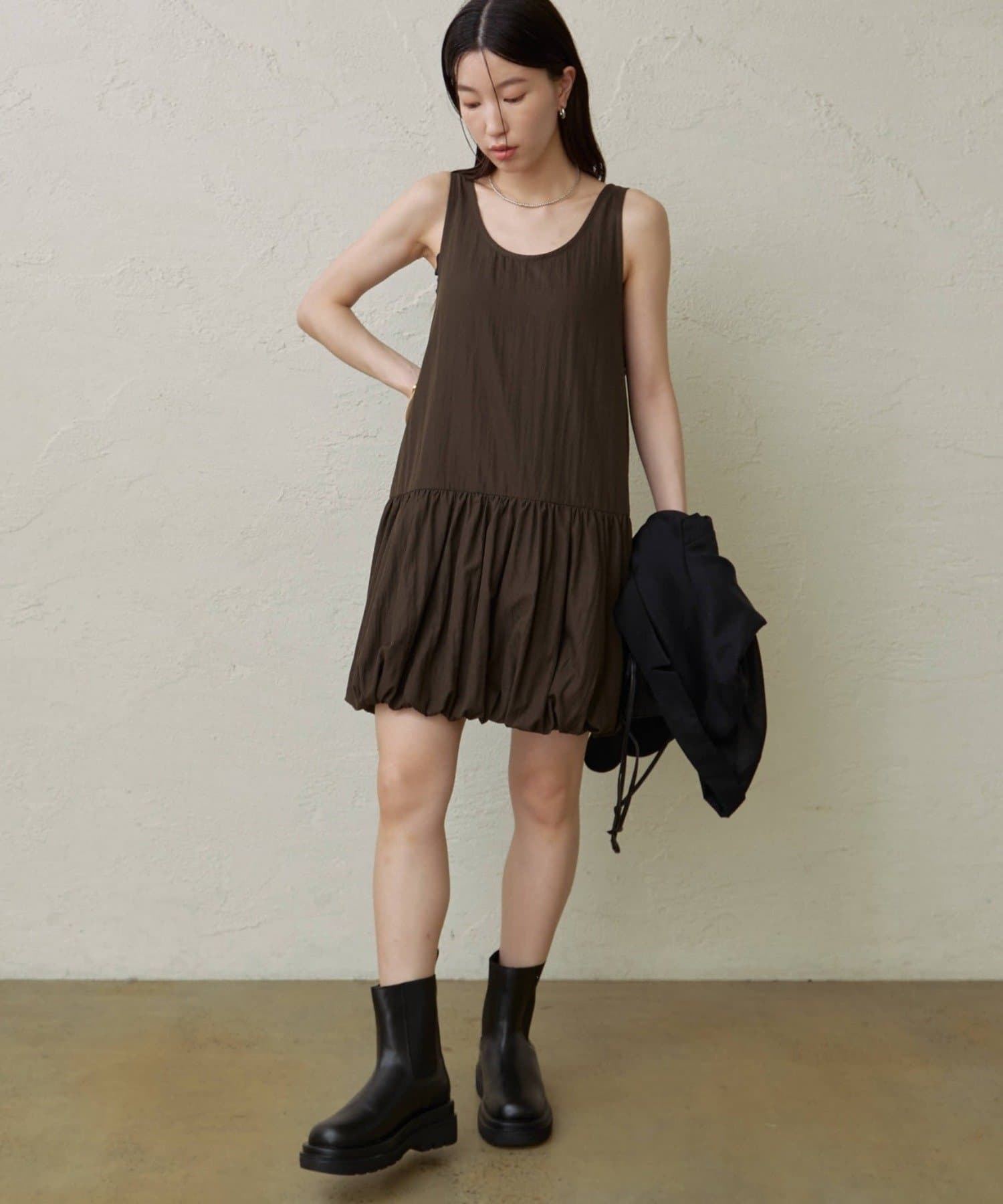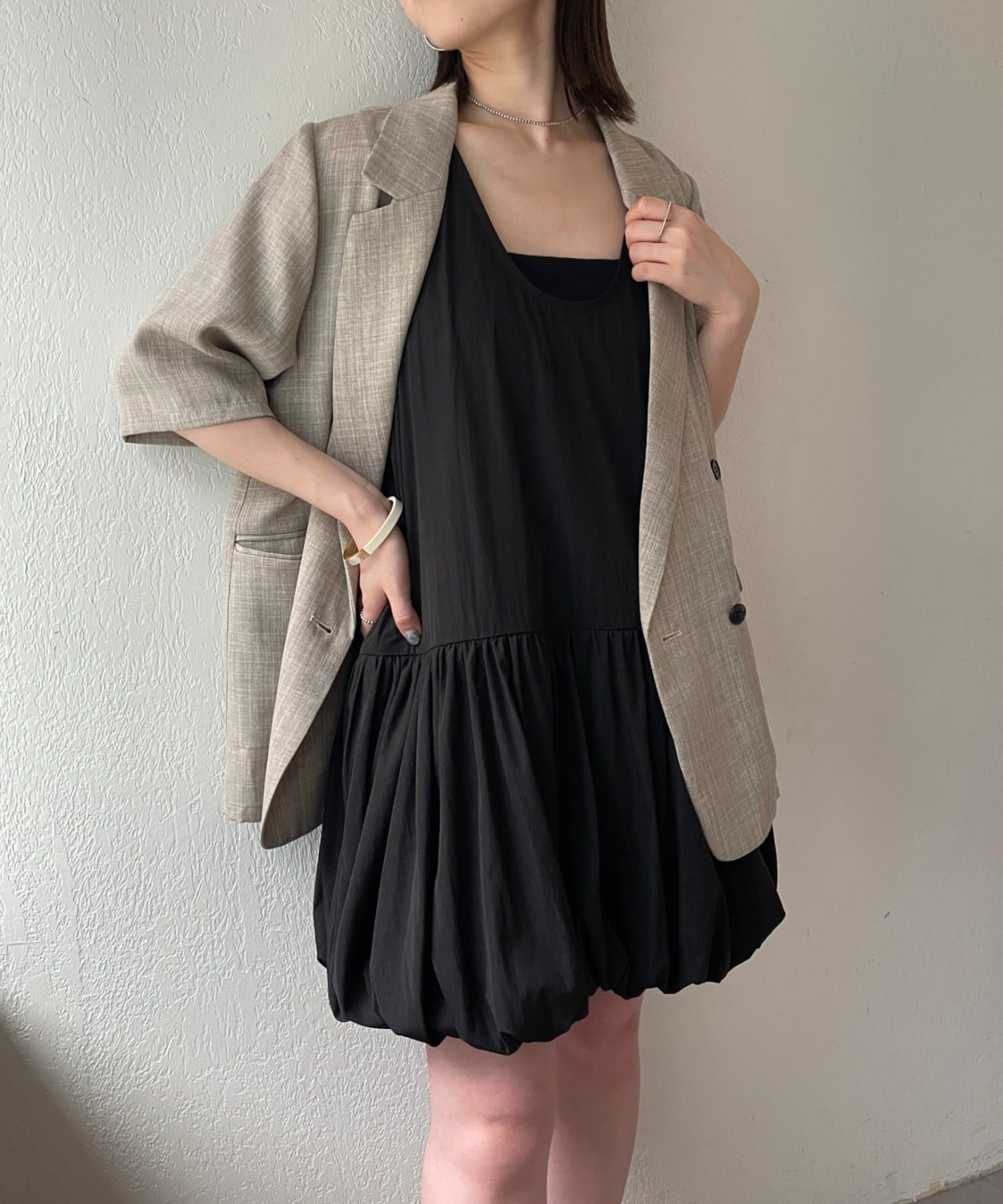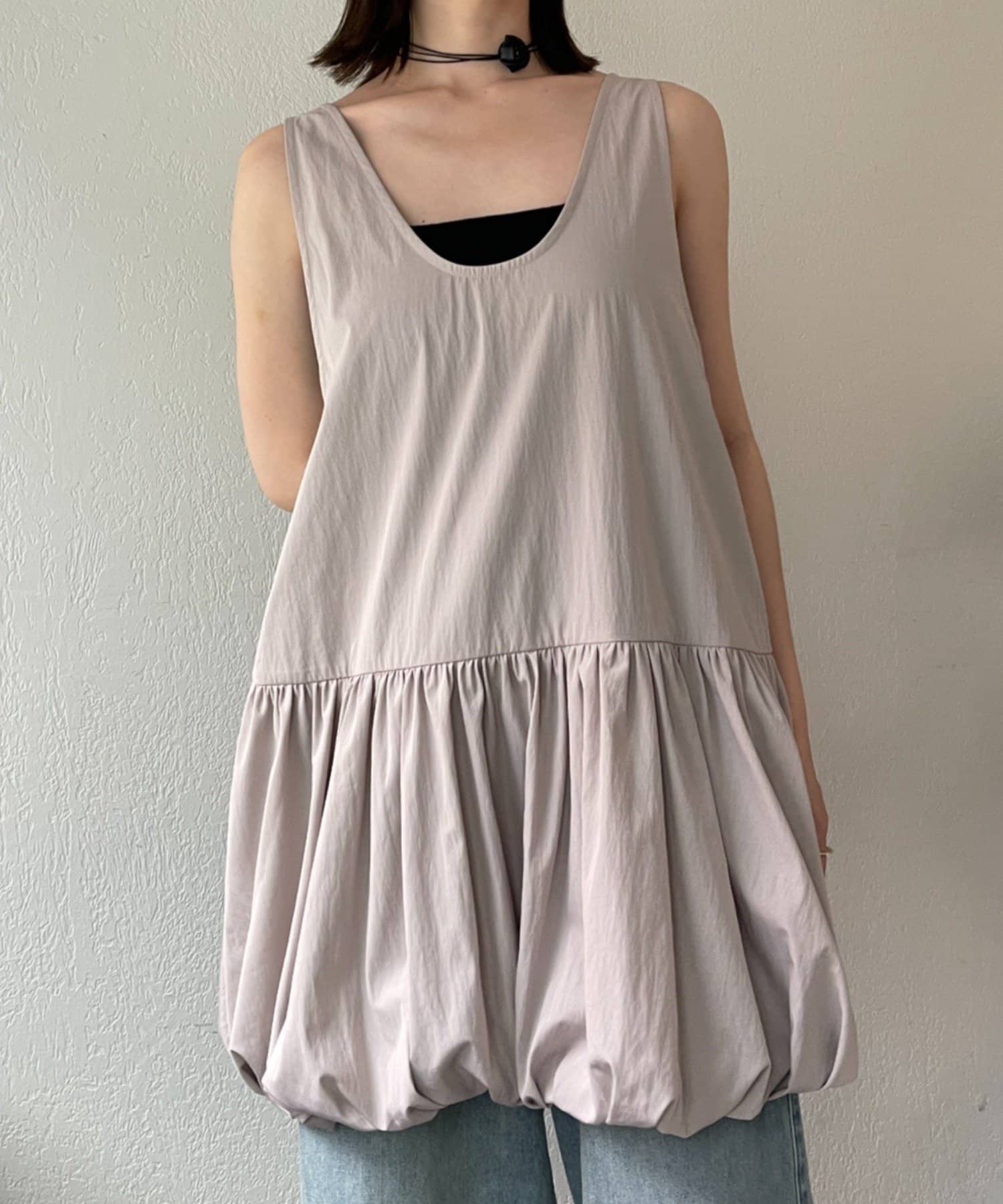 スタイリングを華やかにしてくれるバルーンミニワンピチュニック