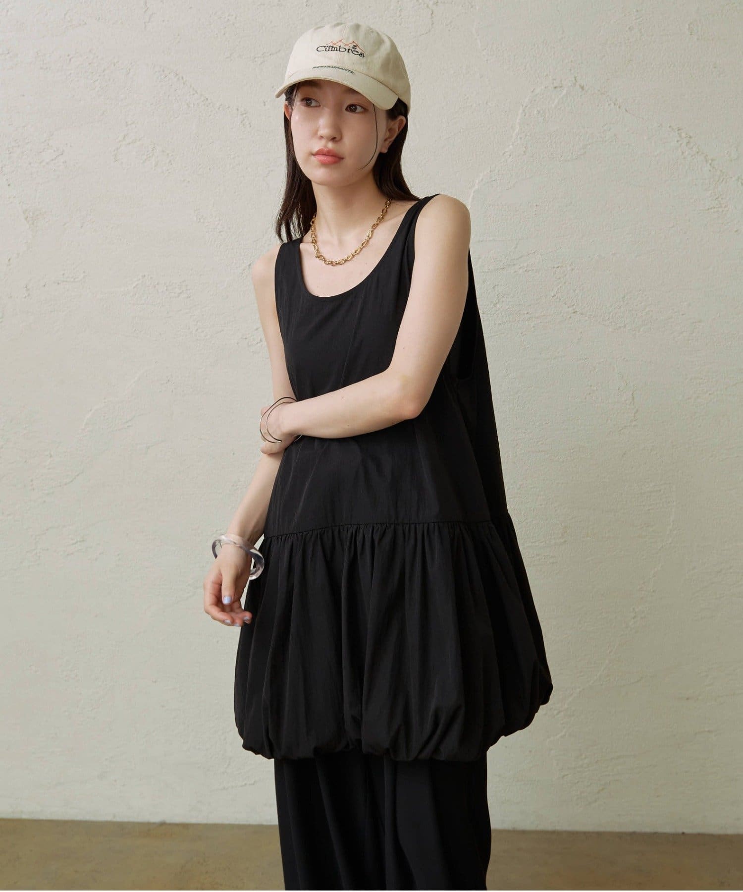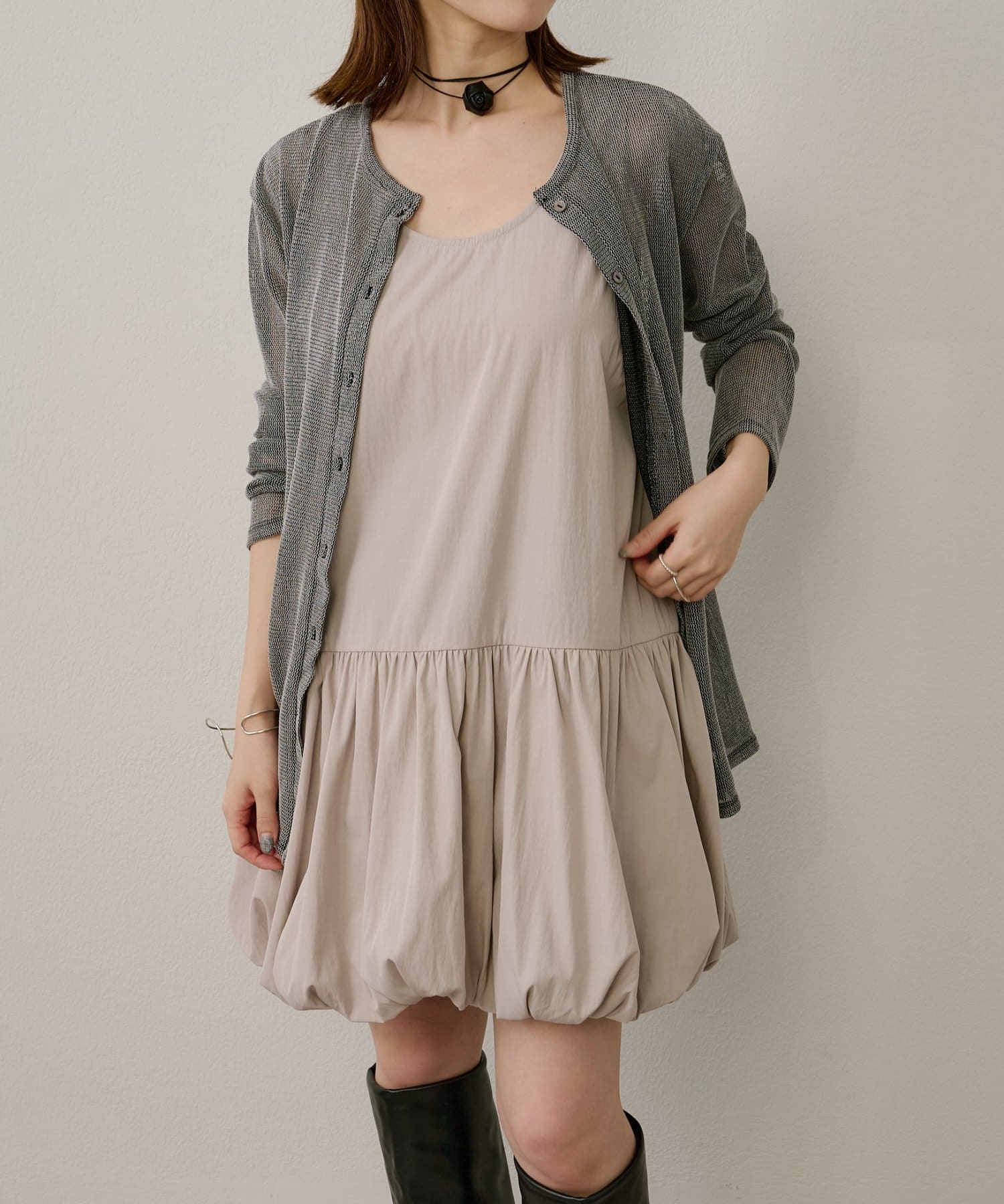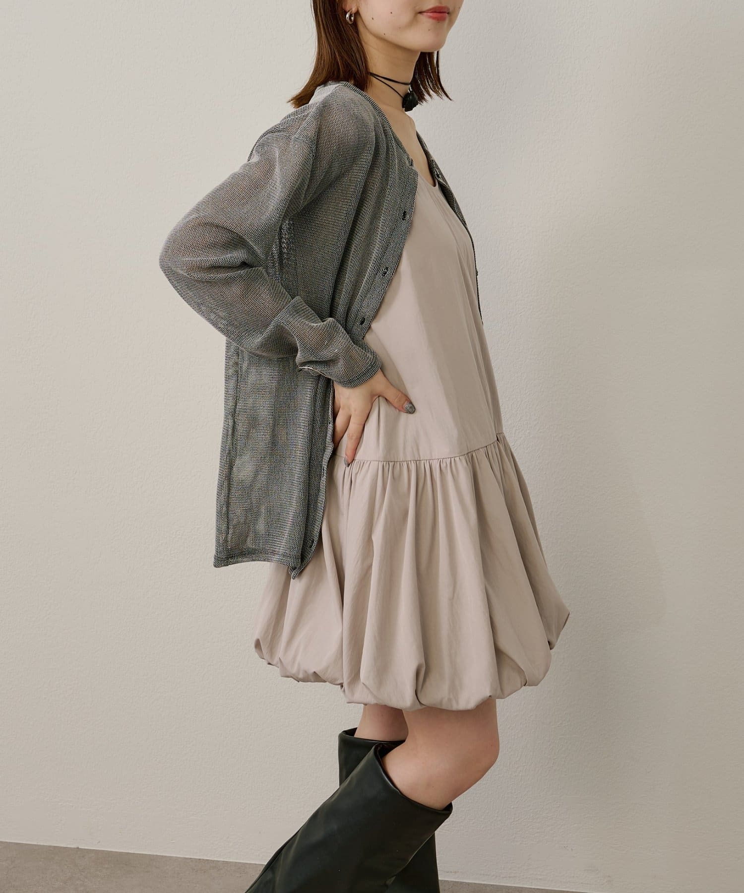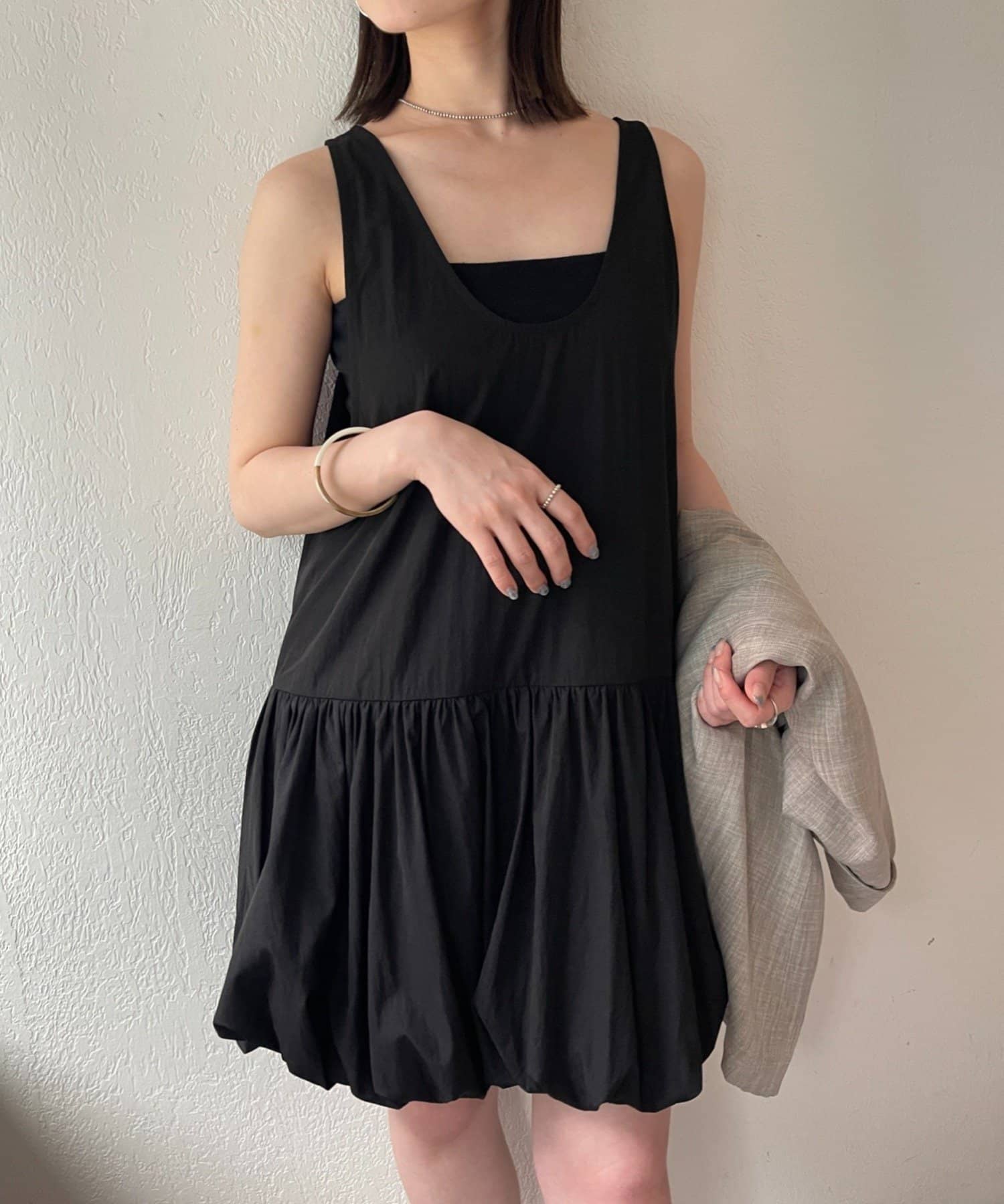 スタイリングを華やかにしてくれるバルーンミニワンピチュニック