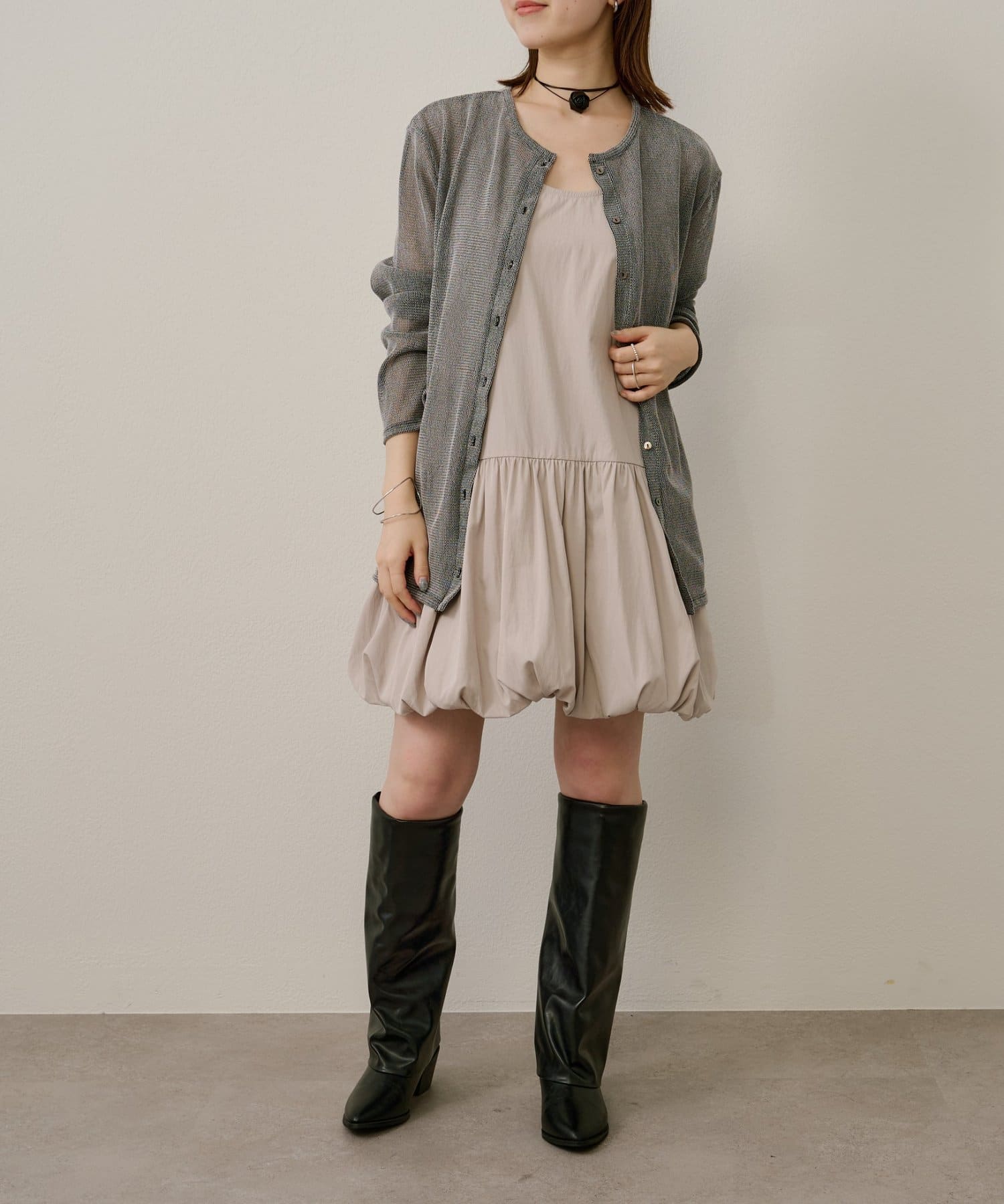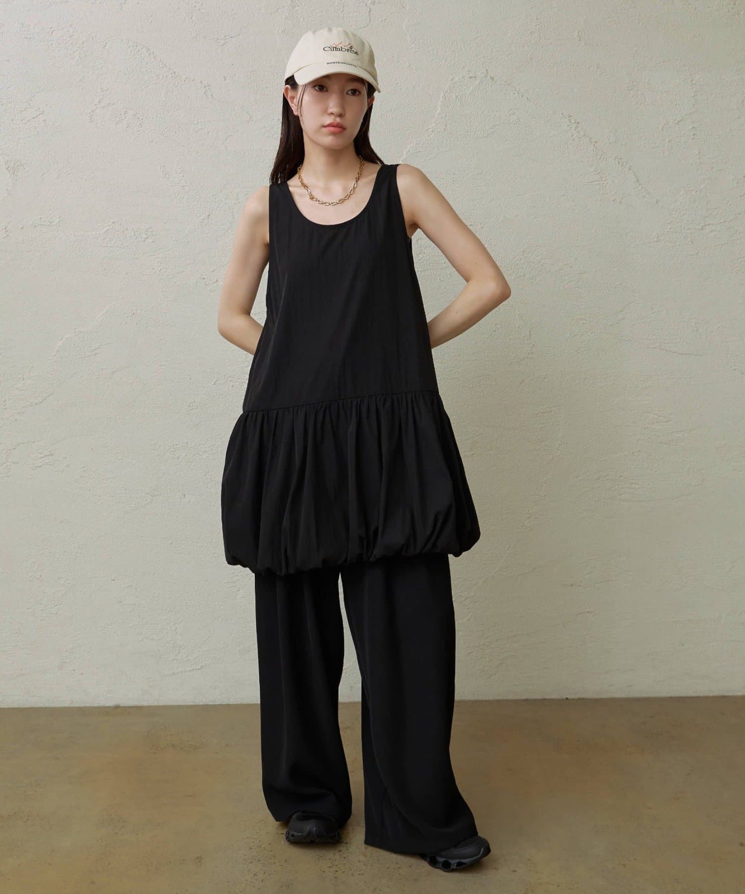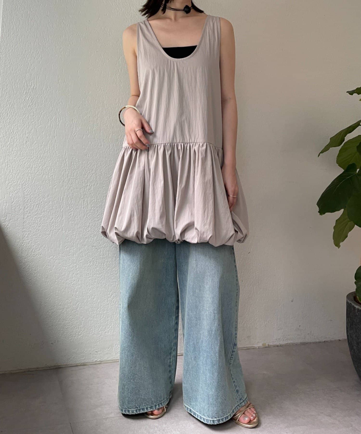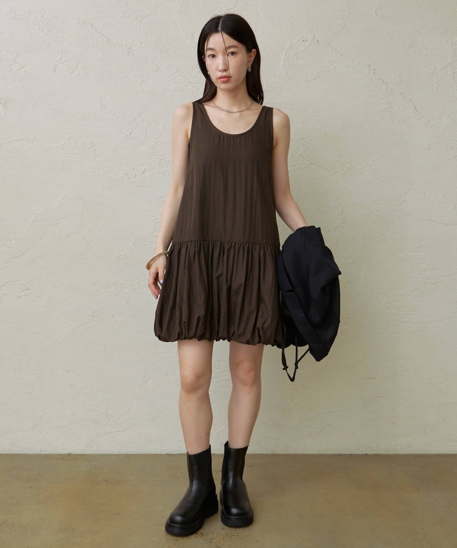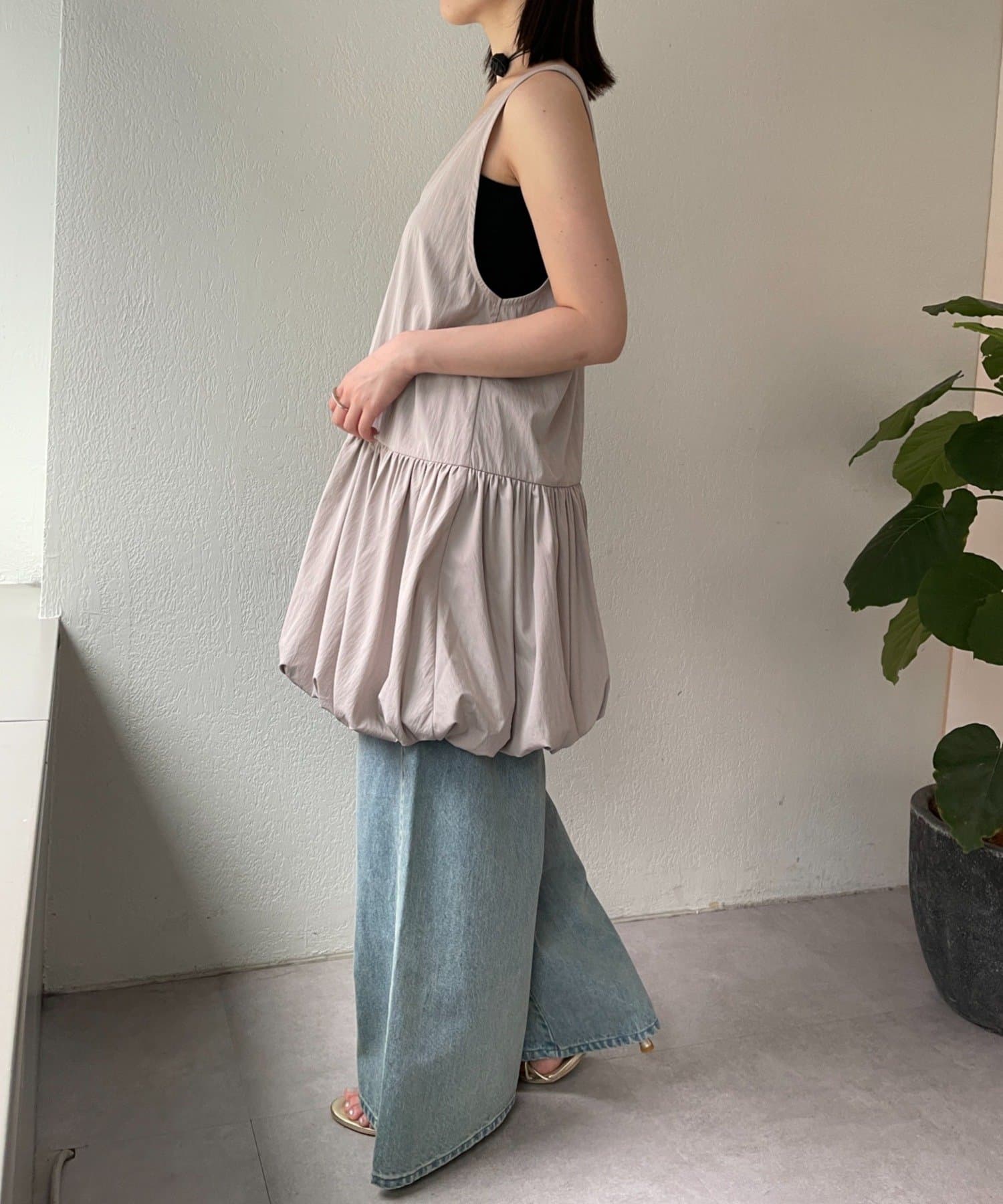 スタイリングを華やかにしてくれるバルーンミニワンピチュニック