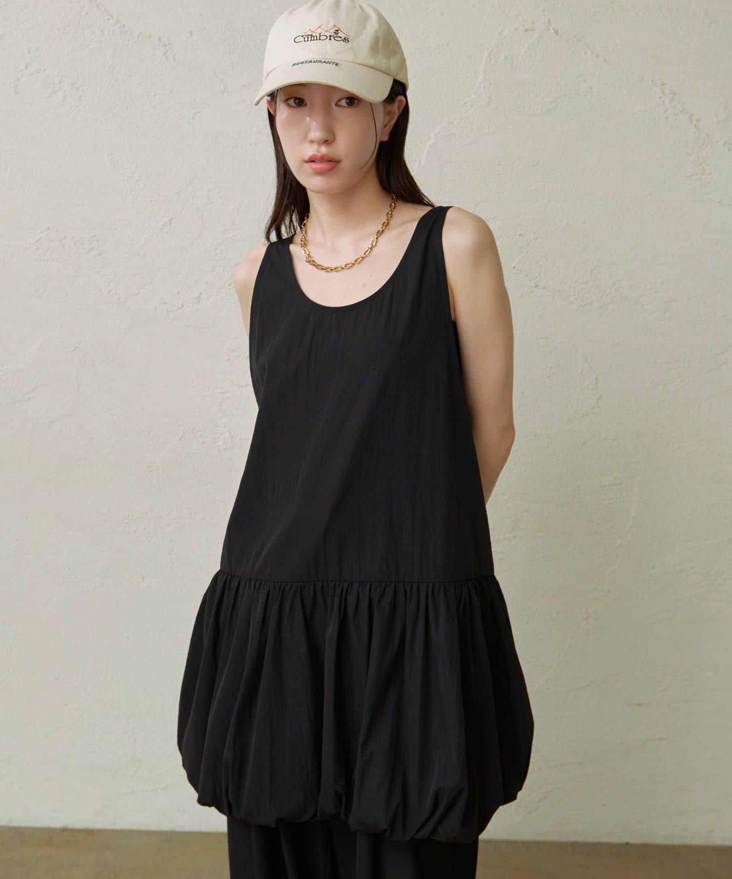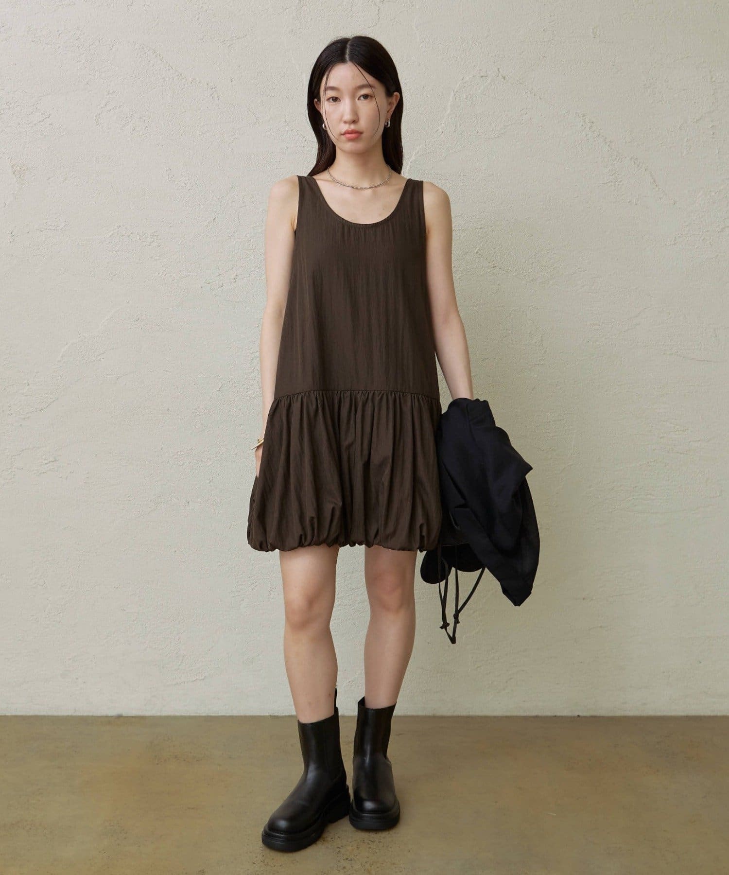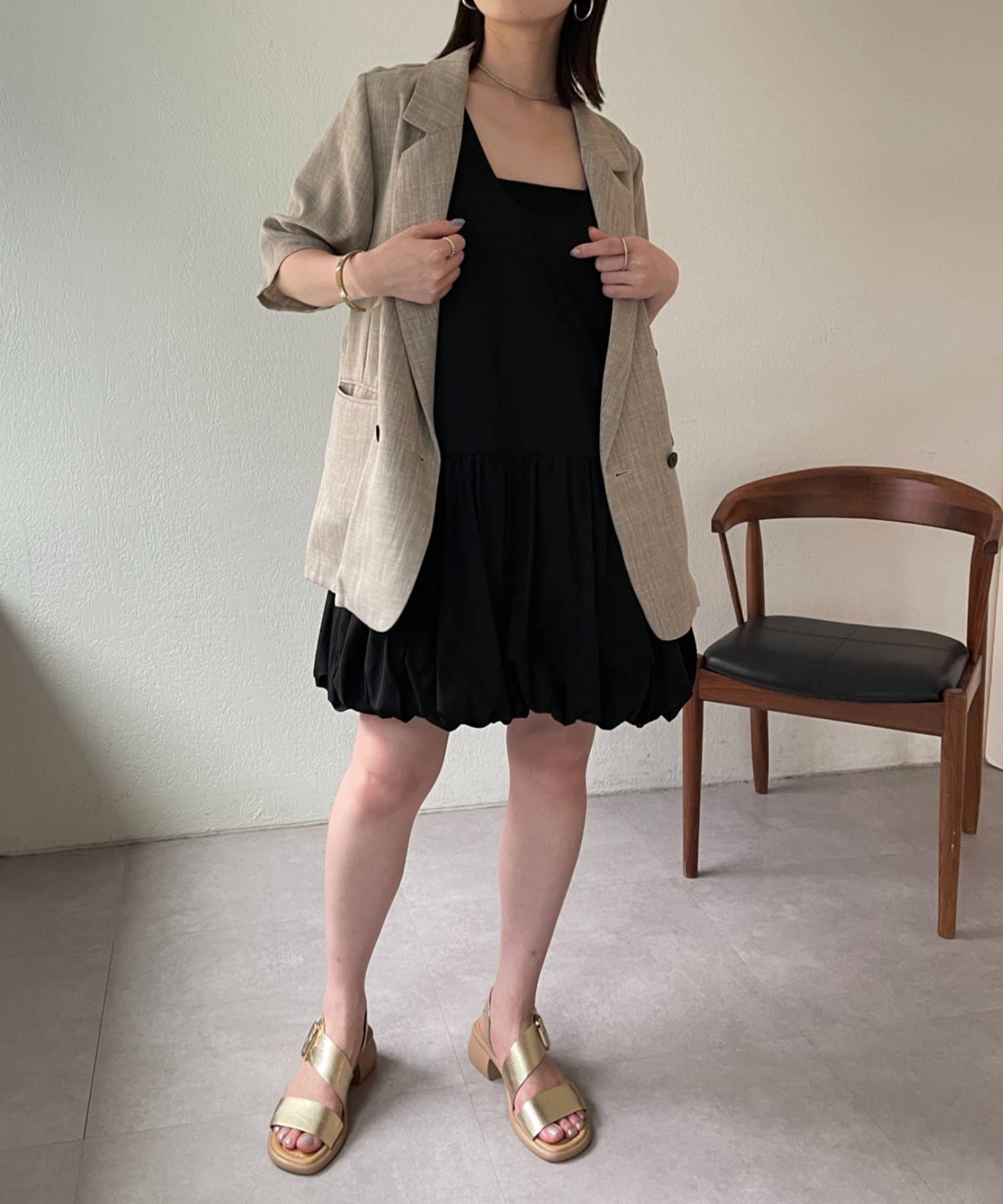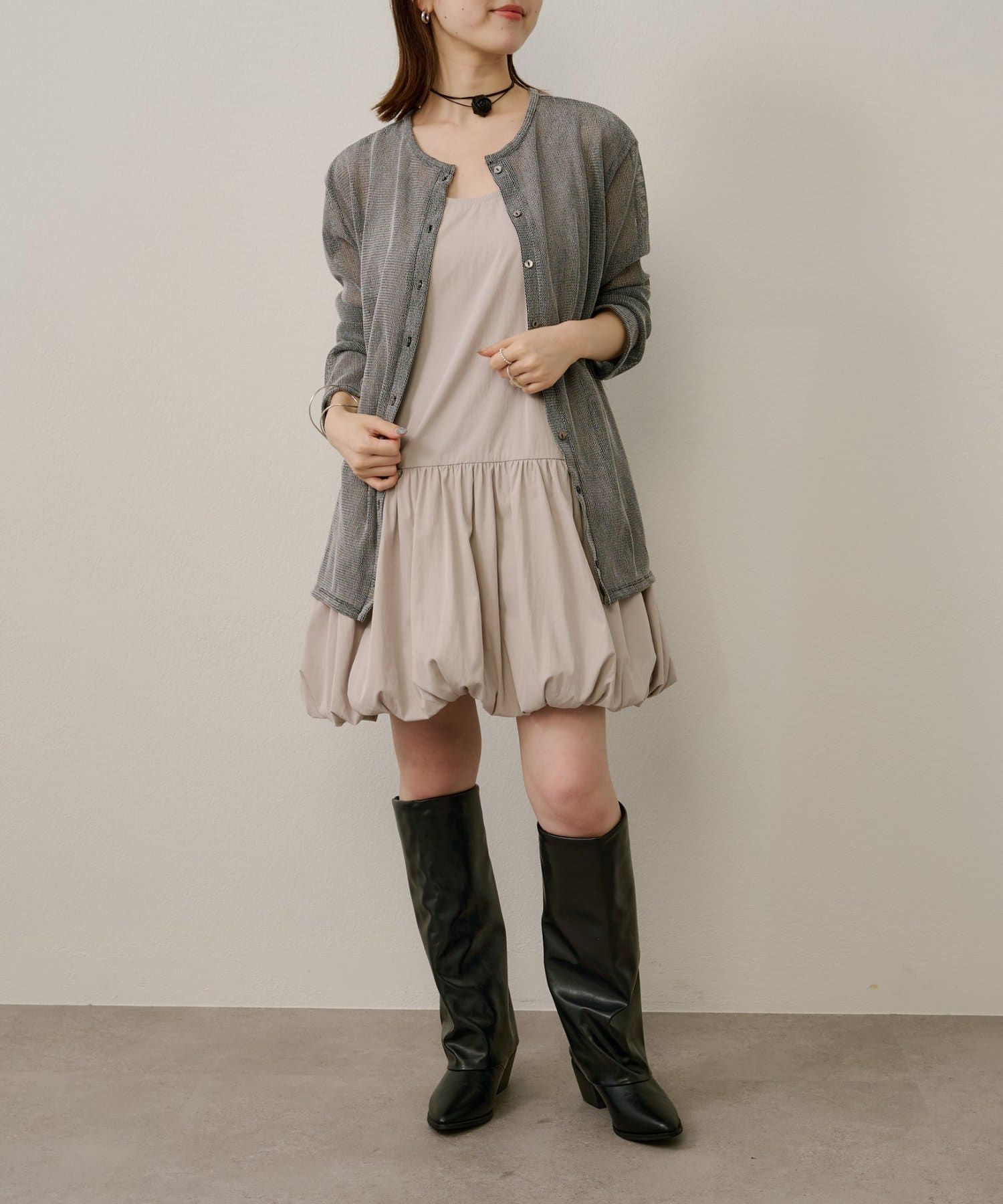 スタイリングを華やかにしてくれるバルーンミニワンピチュニック