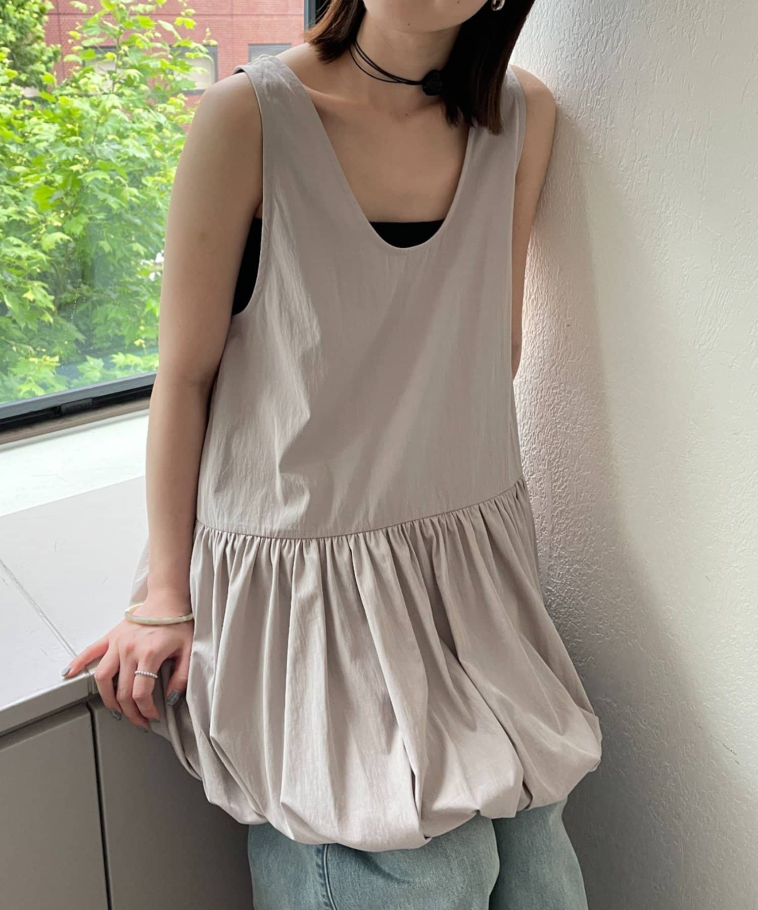 ・バルーン部分のデザインが目を引くミニワンピチュニック。