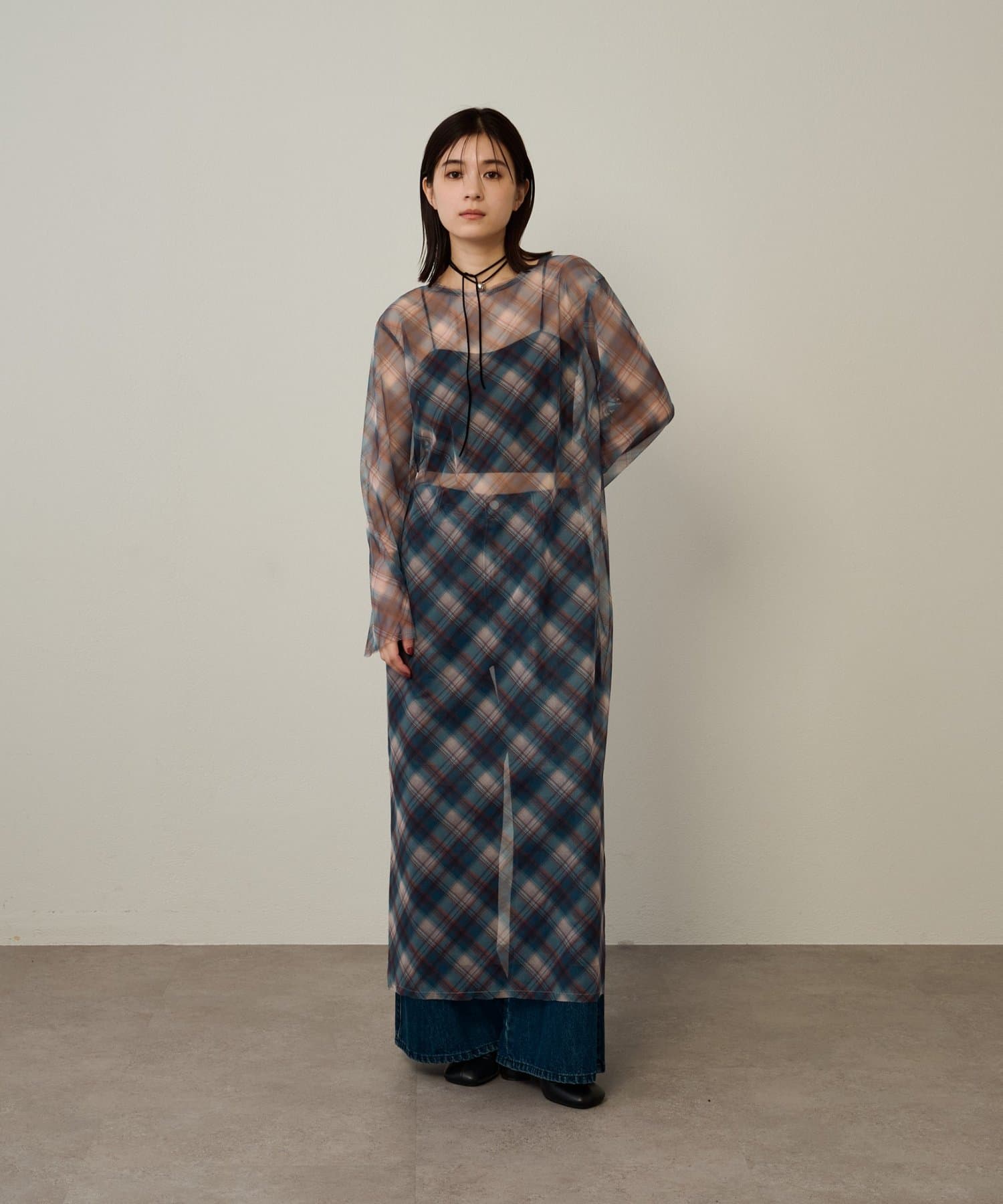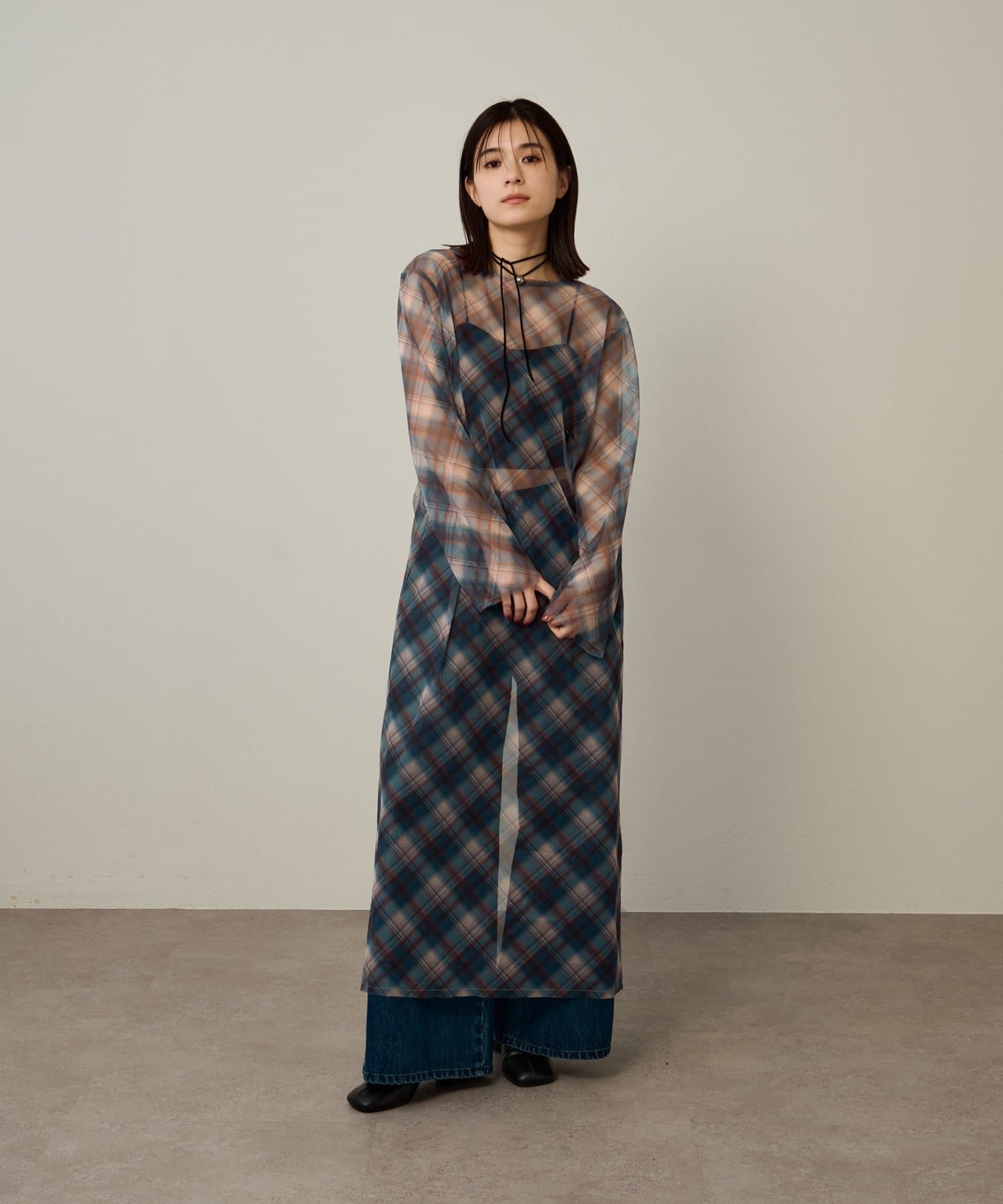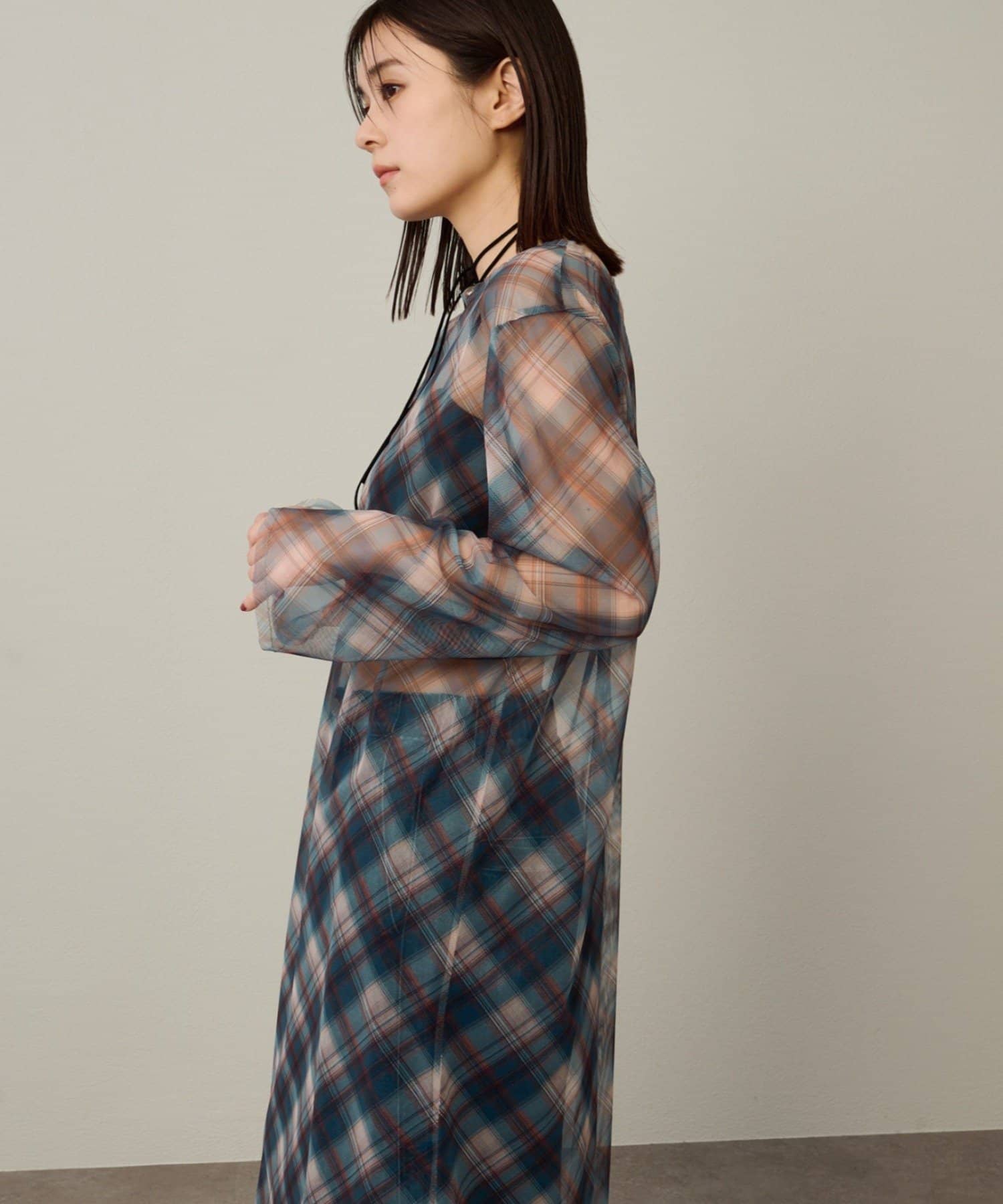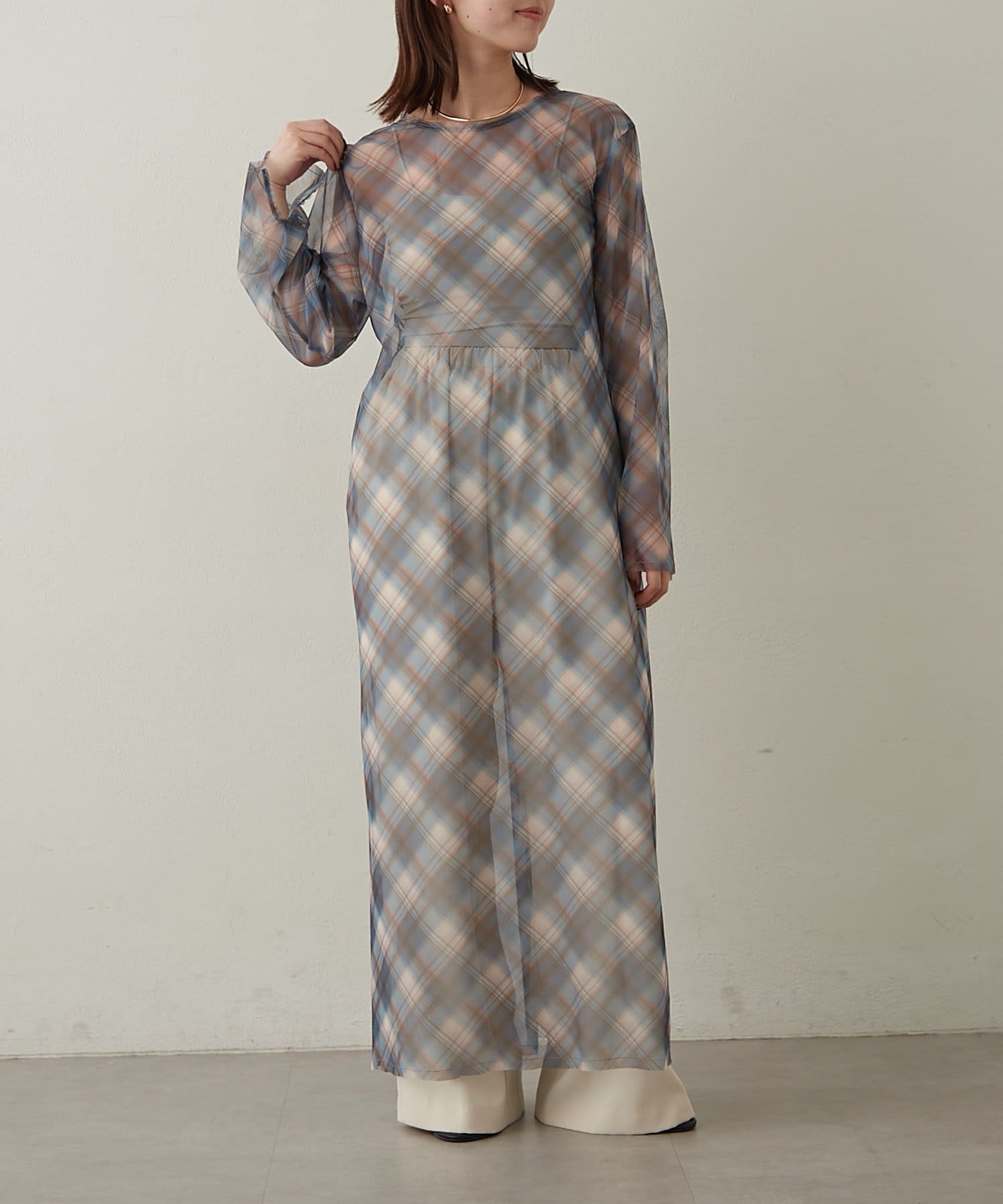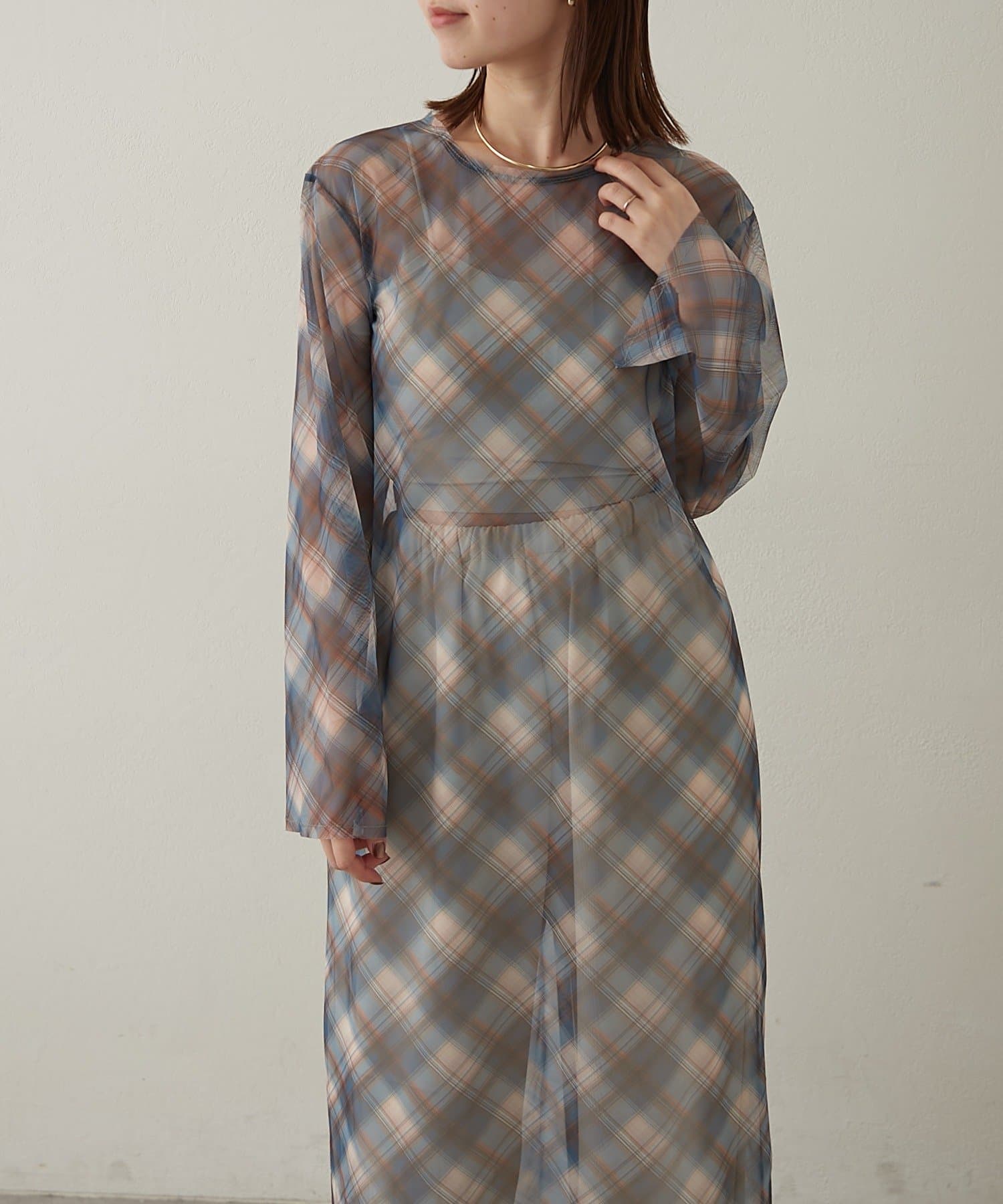 ・チェック柄とシアー素材が、秋口からのレイヤードスタイルにぴったりなワンピース