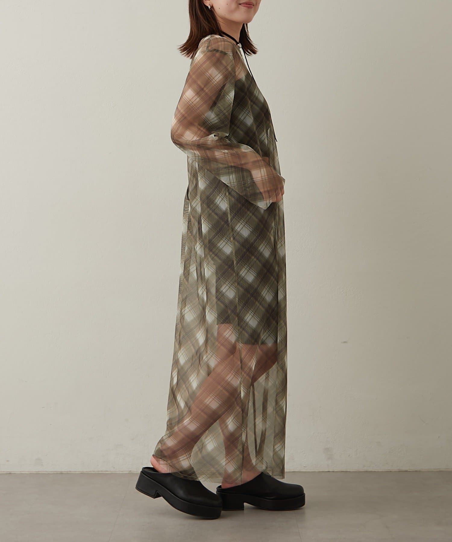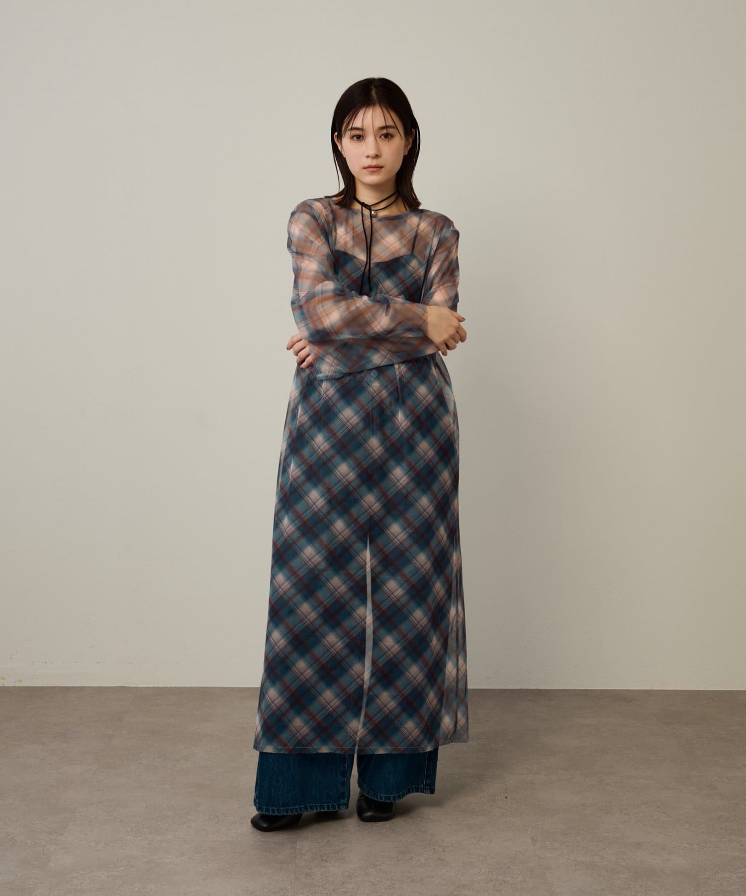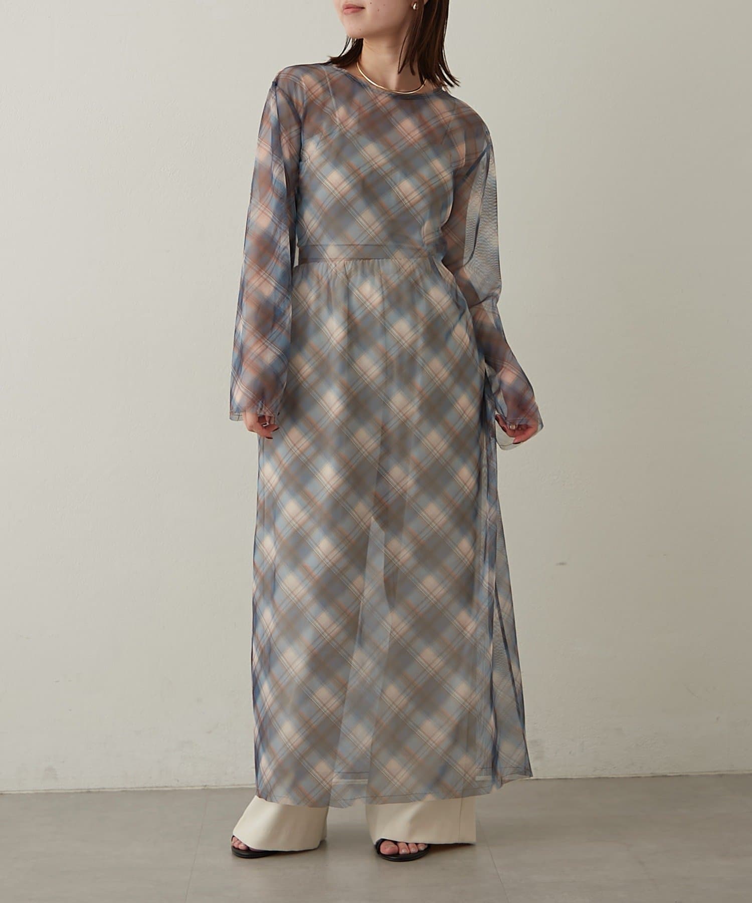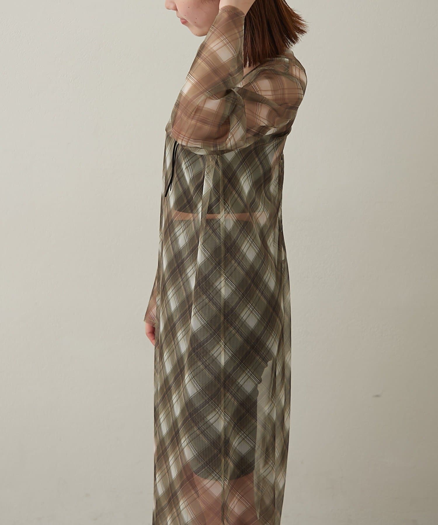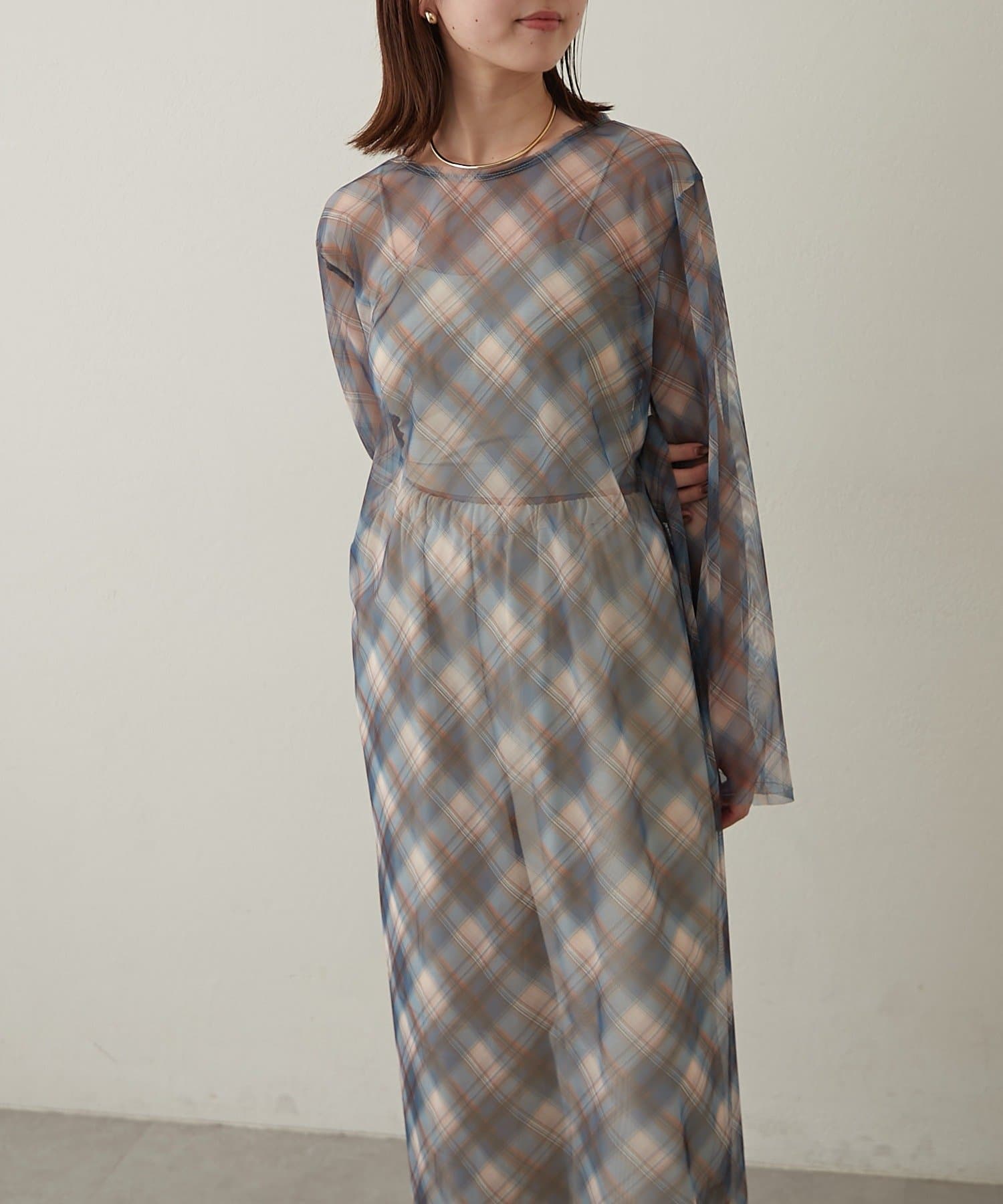・チェック柄とシアー素材が、秋口からのレイヤードスタイルにぴったりなワンピース