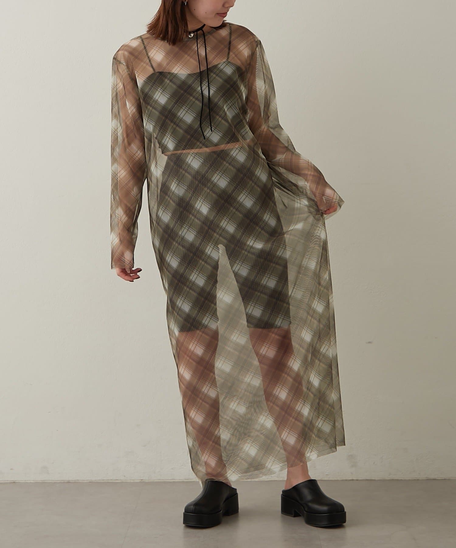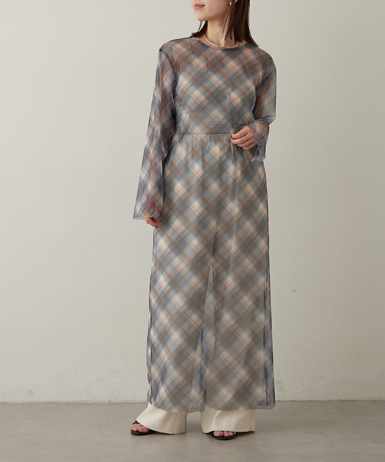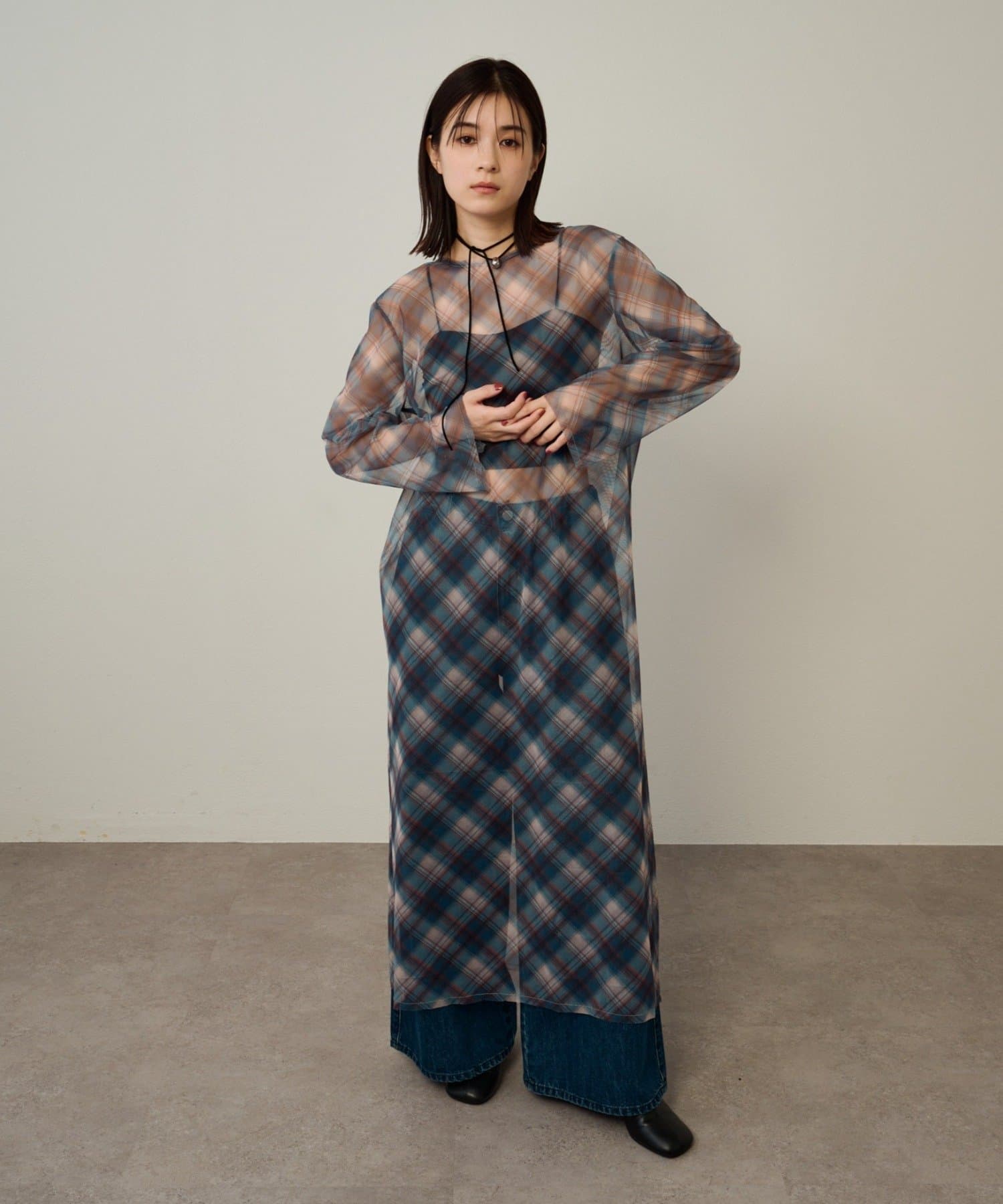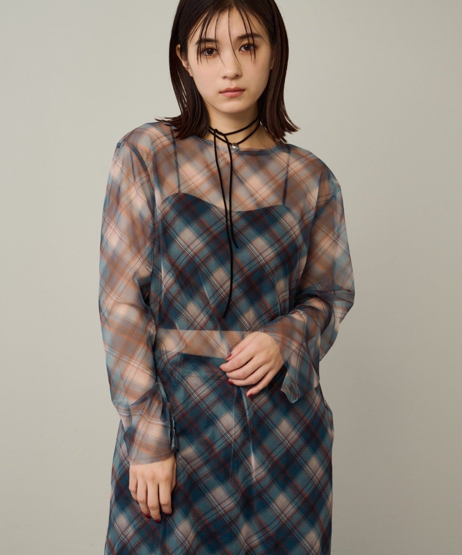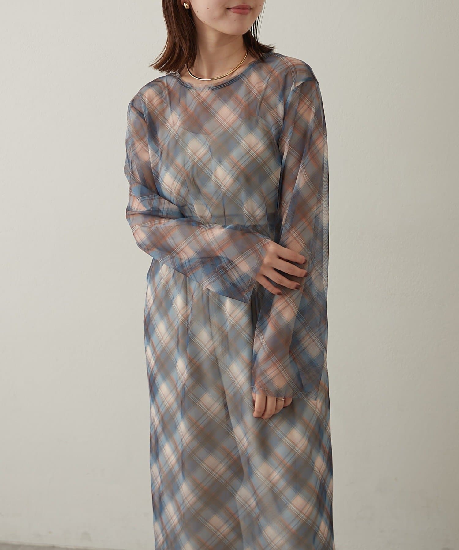 ・チェック柄とシアー素材が、秋口からのレイヤードスタイルにぴったりなワンピース