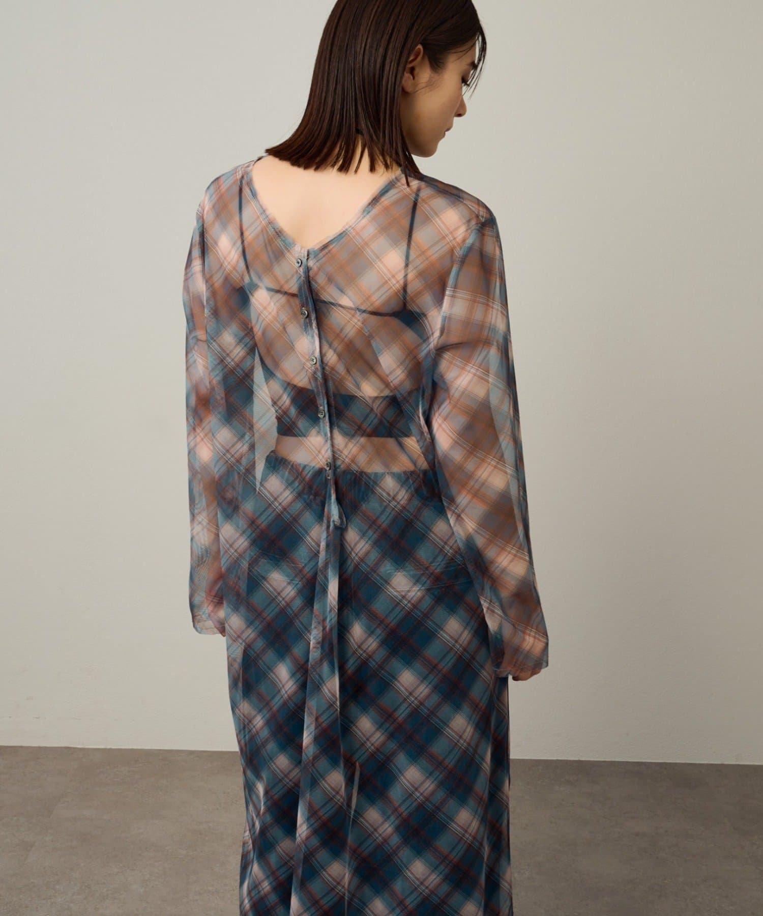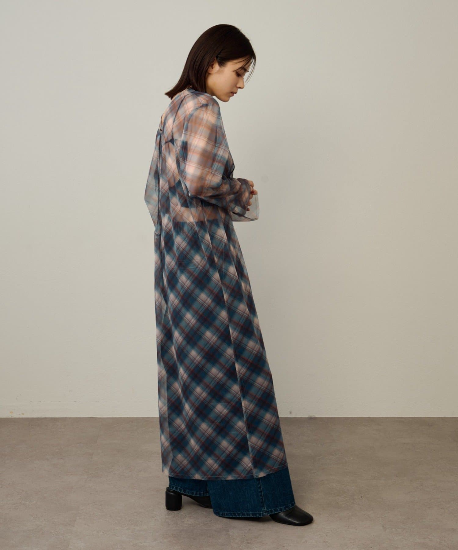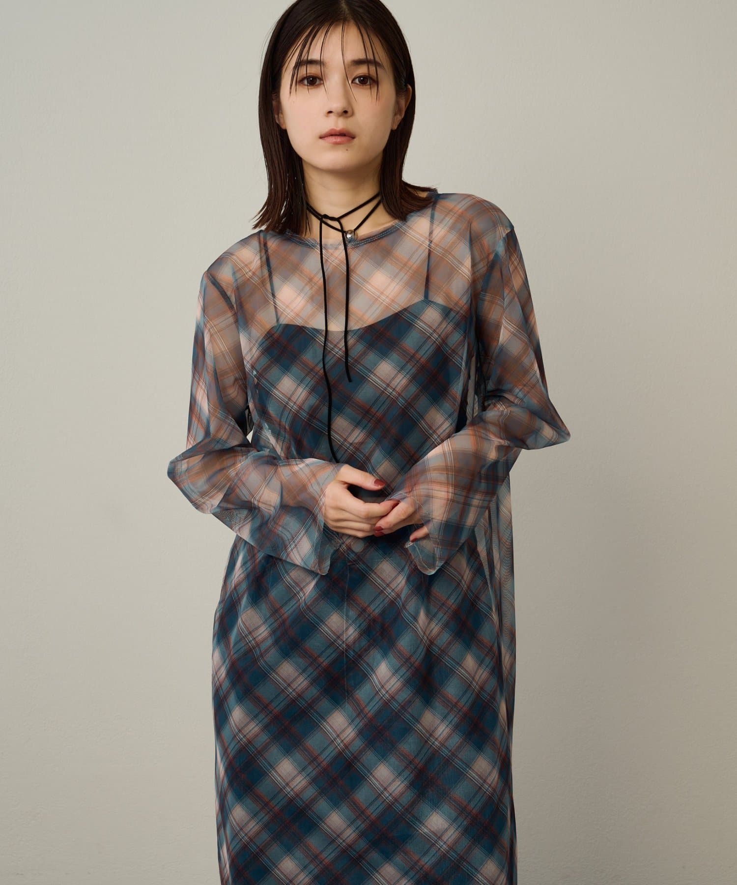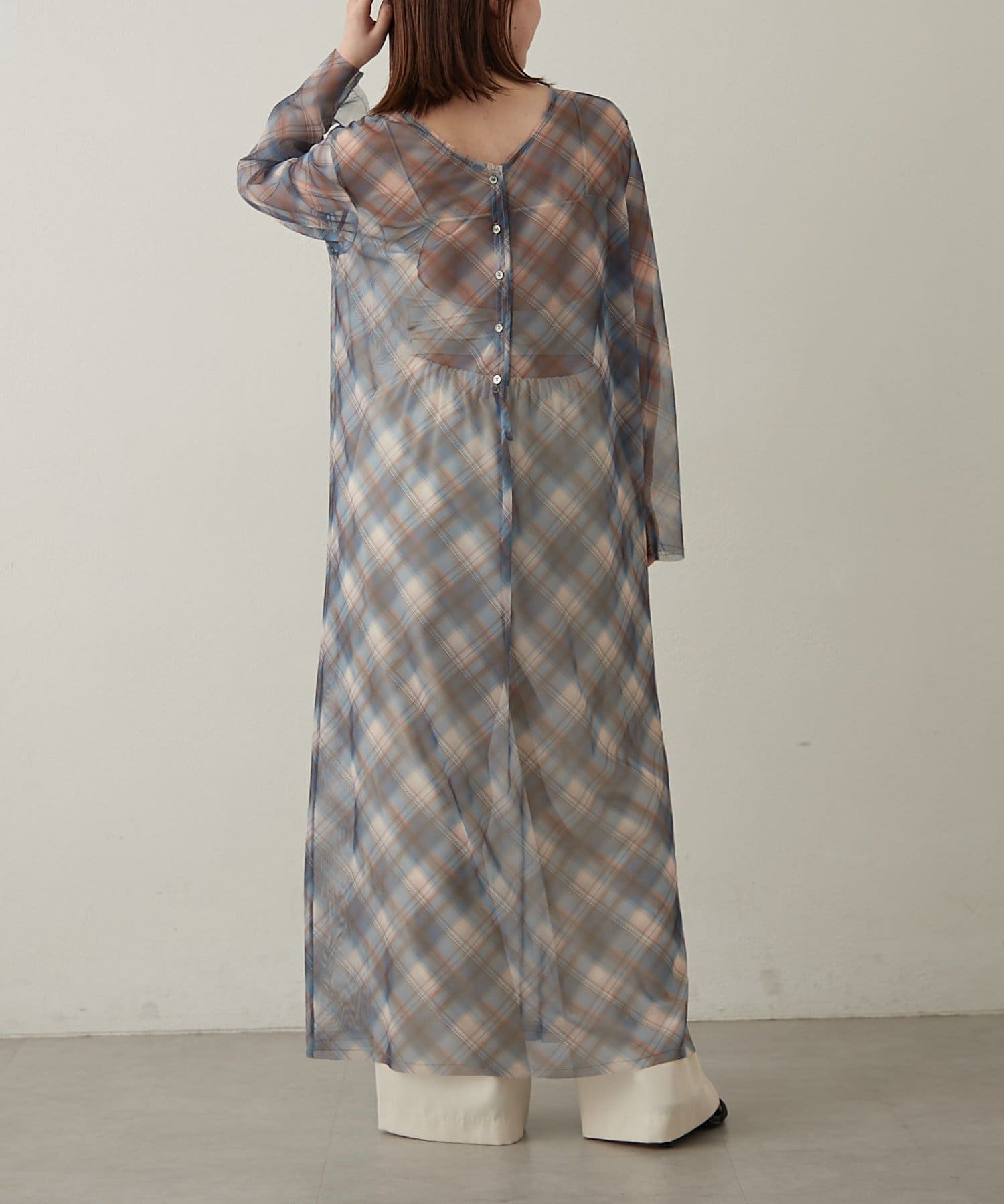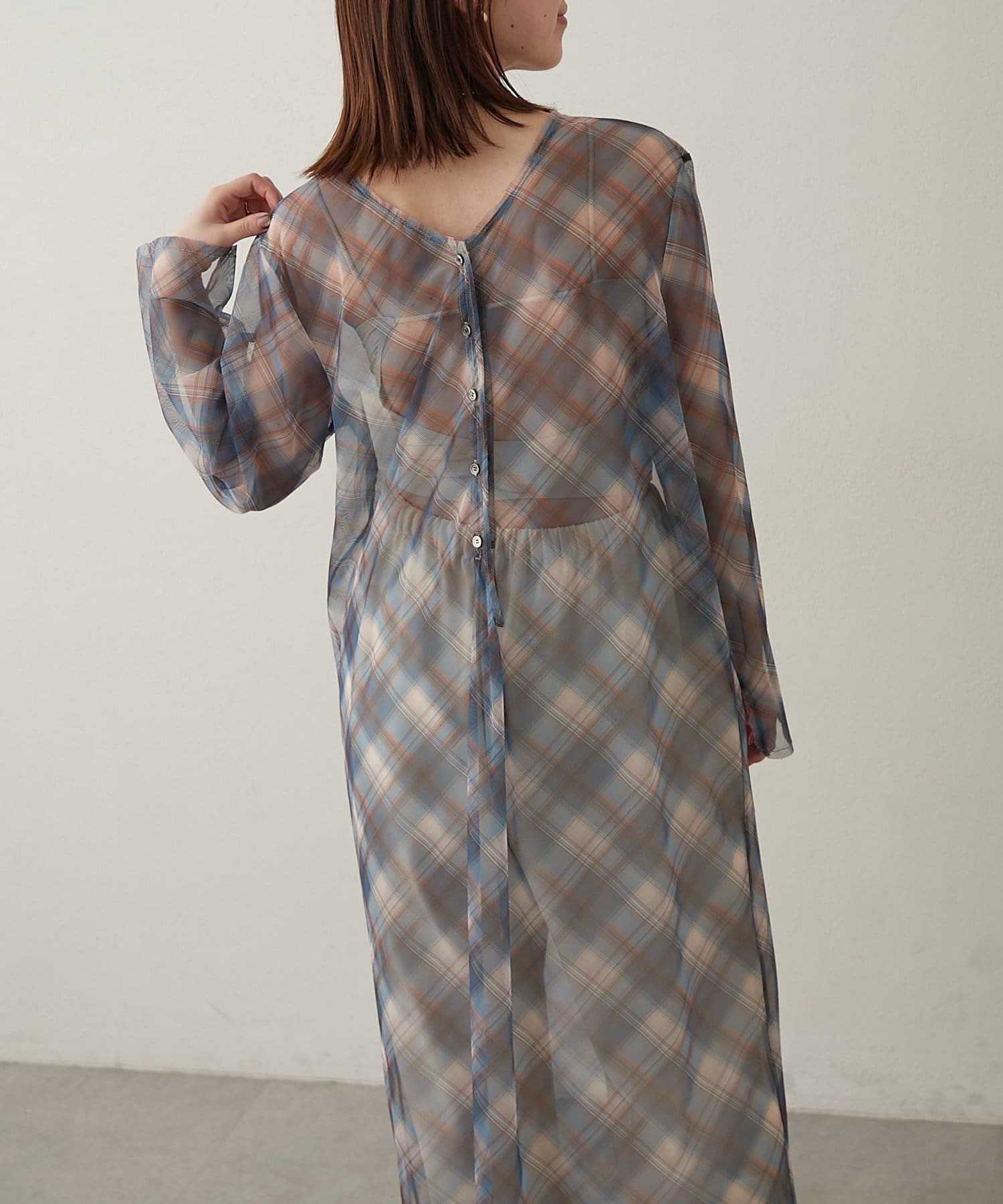 ・チェック柄とシアー素材が、秋口からのレイヤードスタイルにぴったりなワンピース