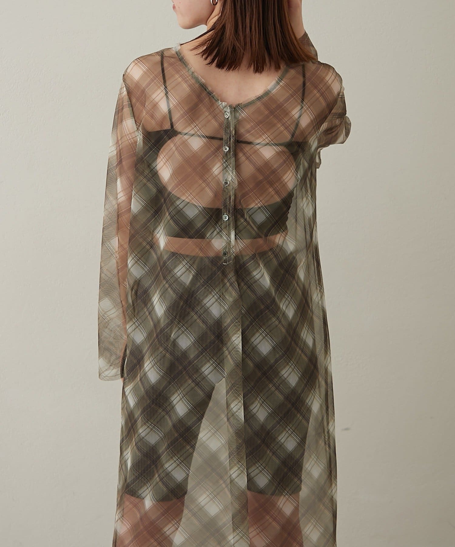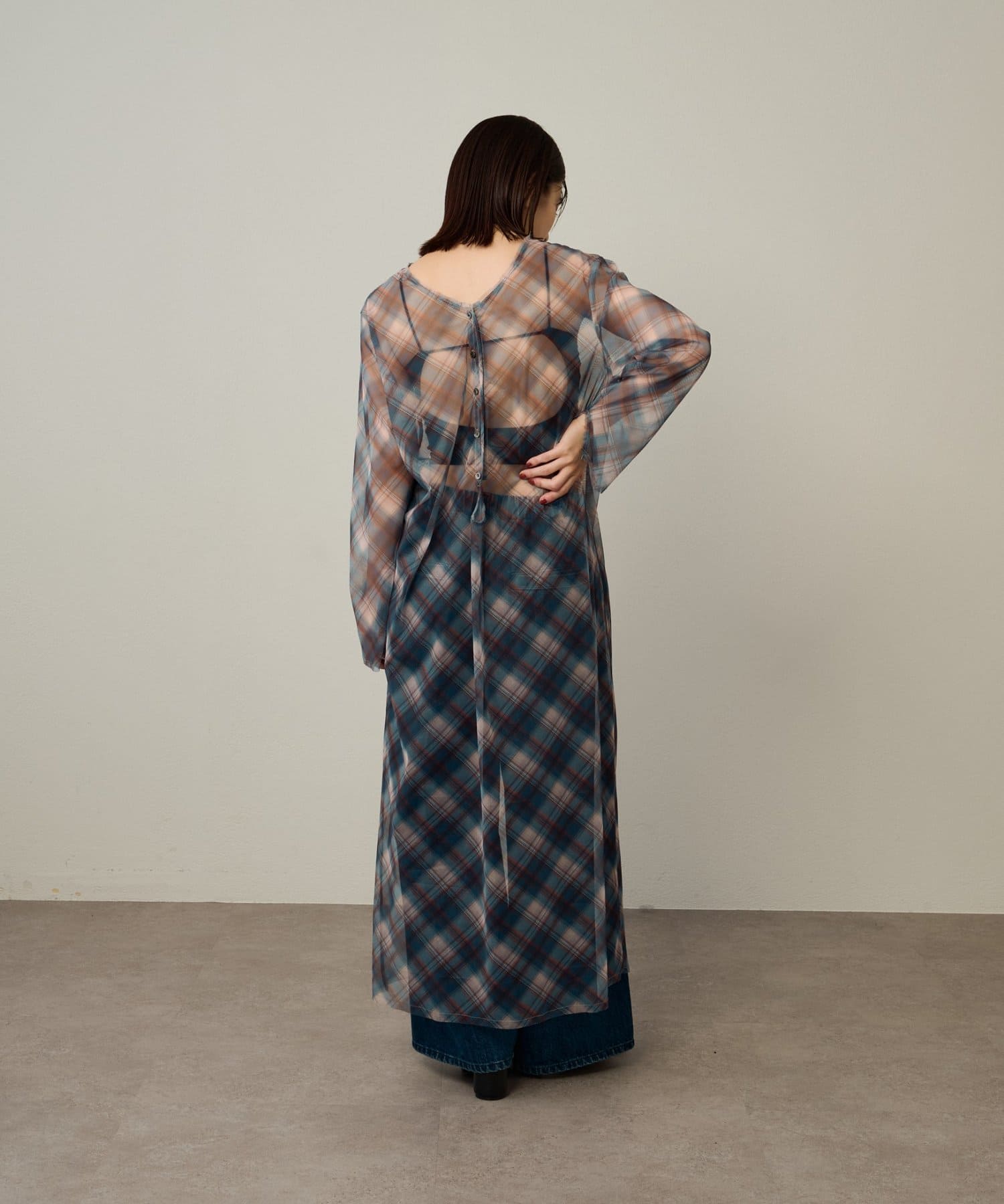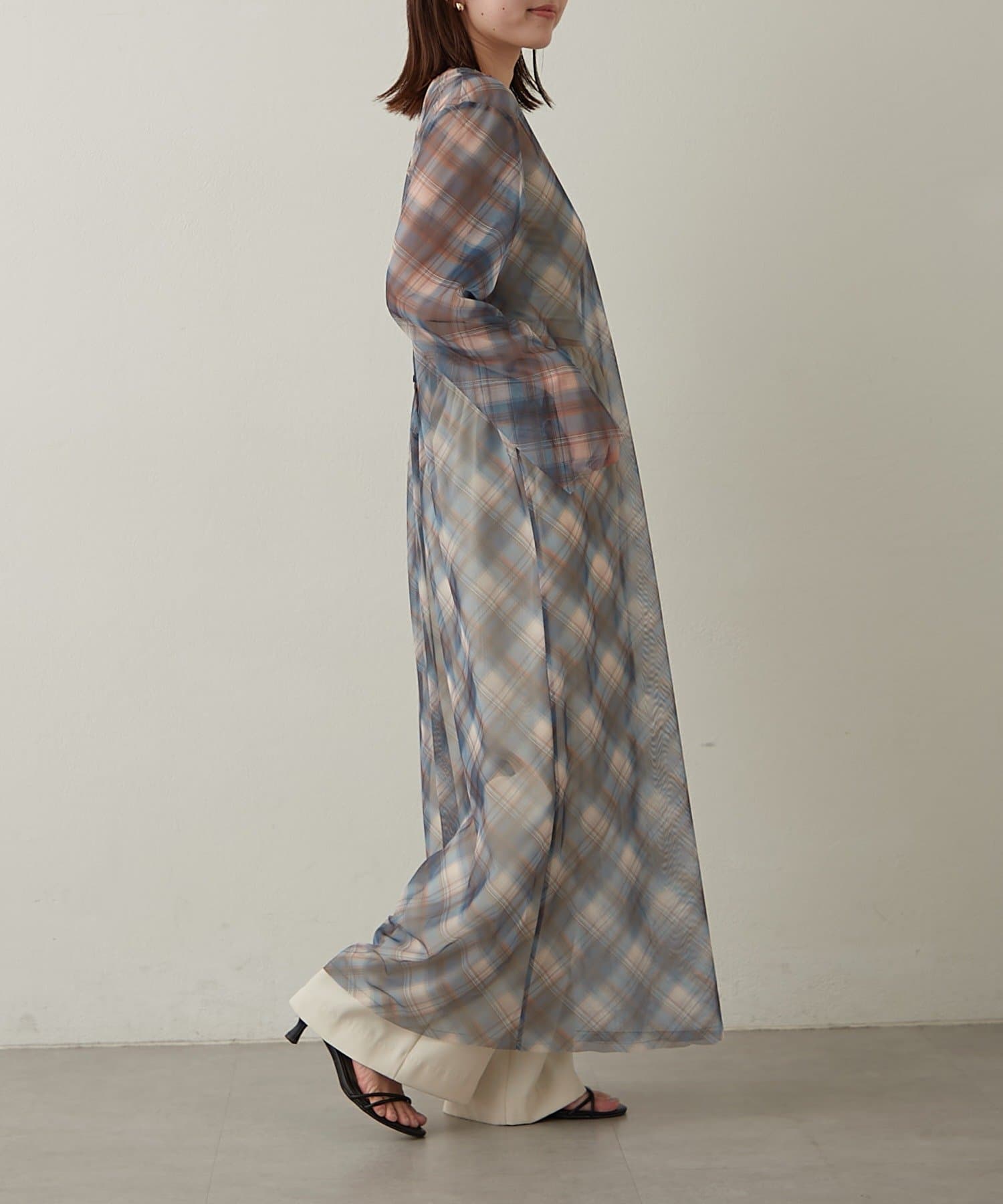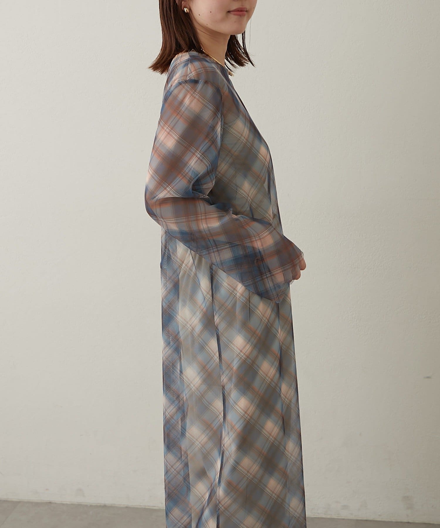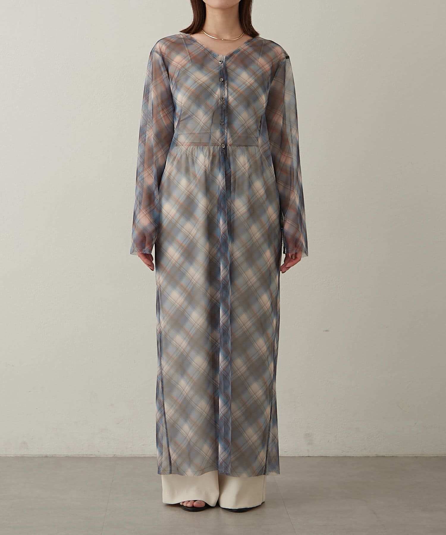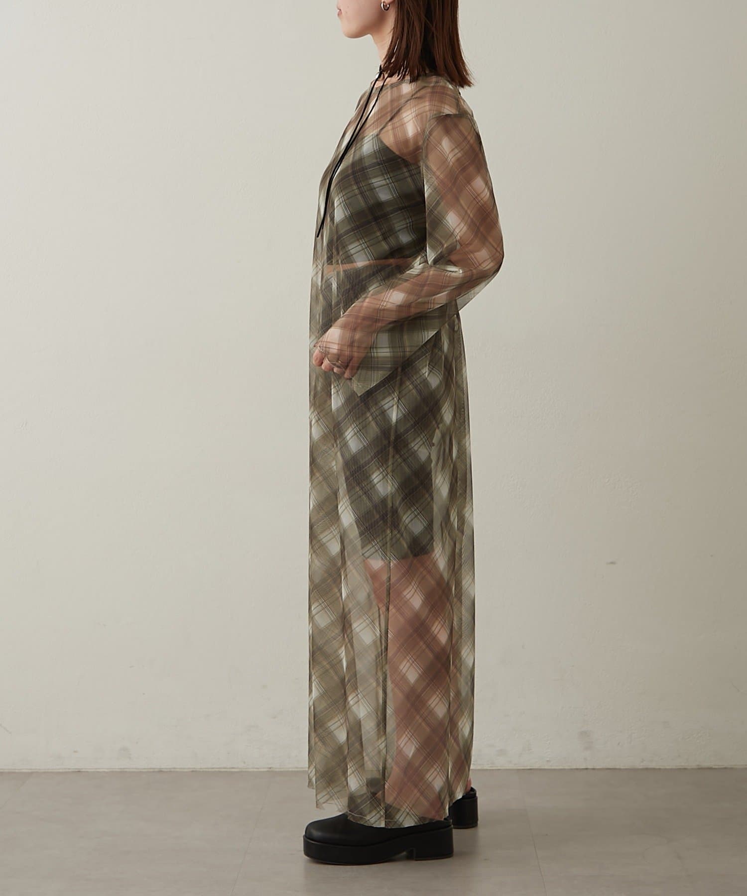 ・チェック柄とシアー素材が、秋口からのレイヤードスタイルにぴったりなワンピース