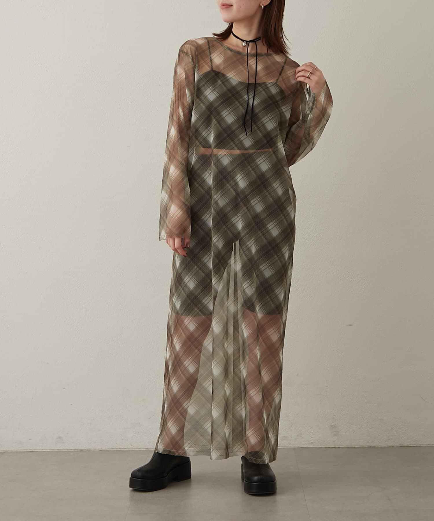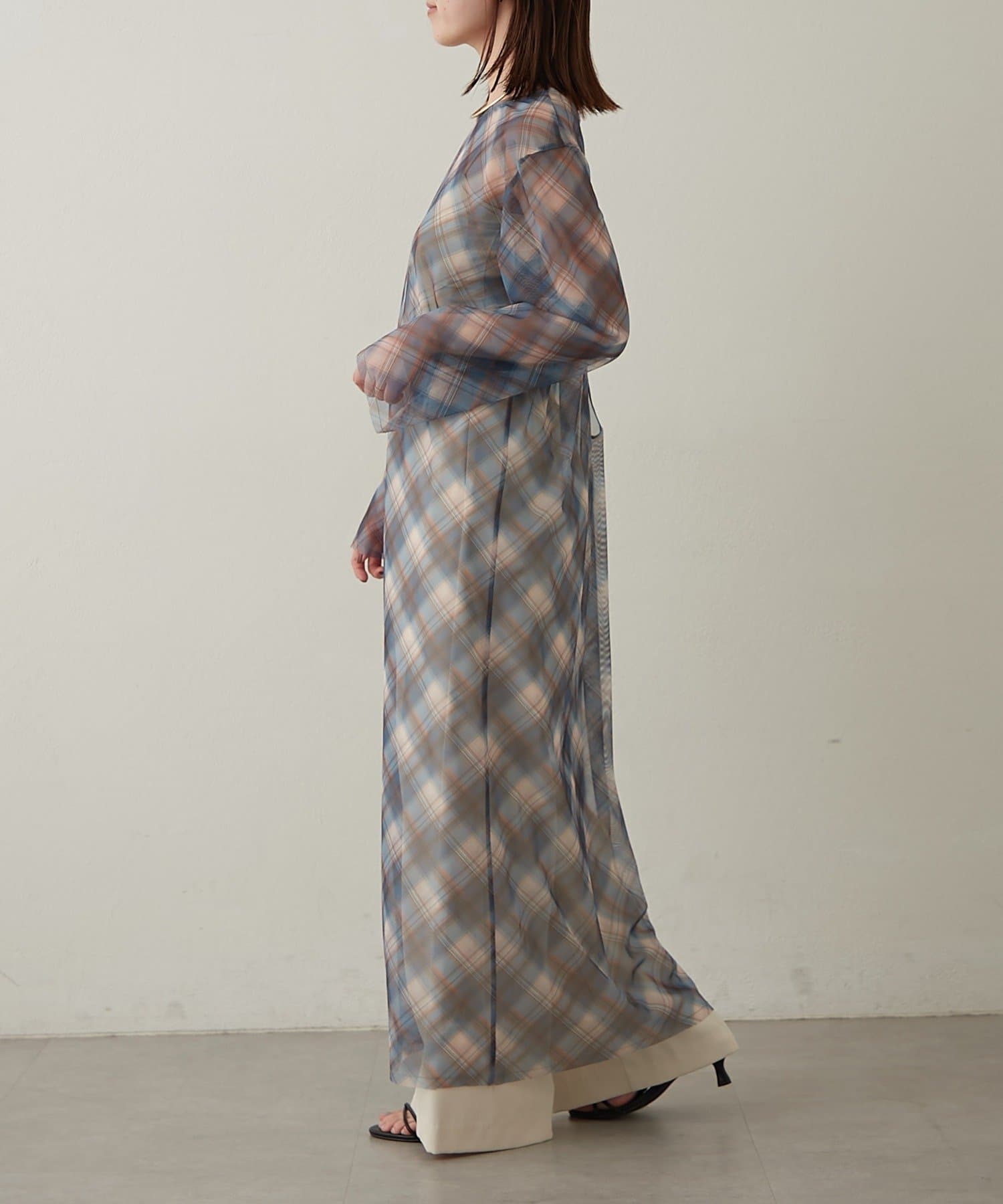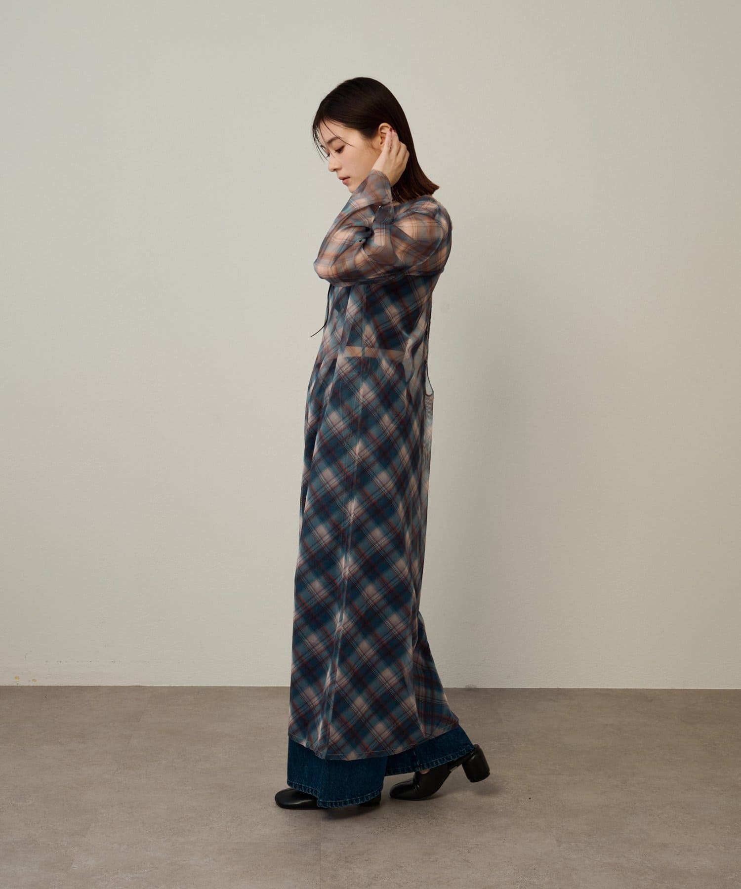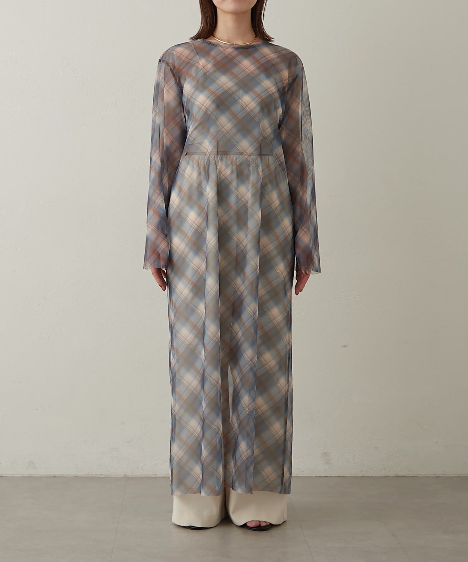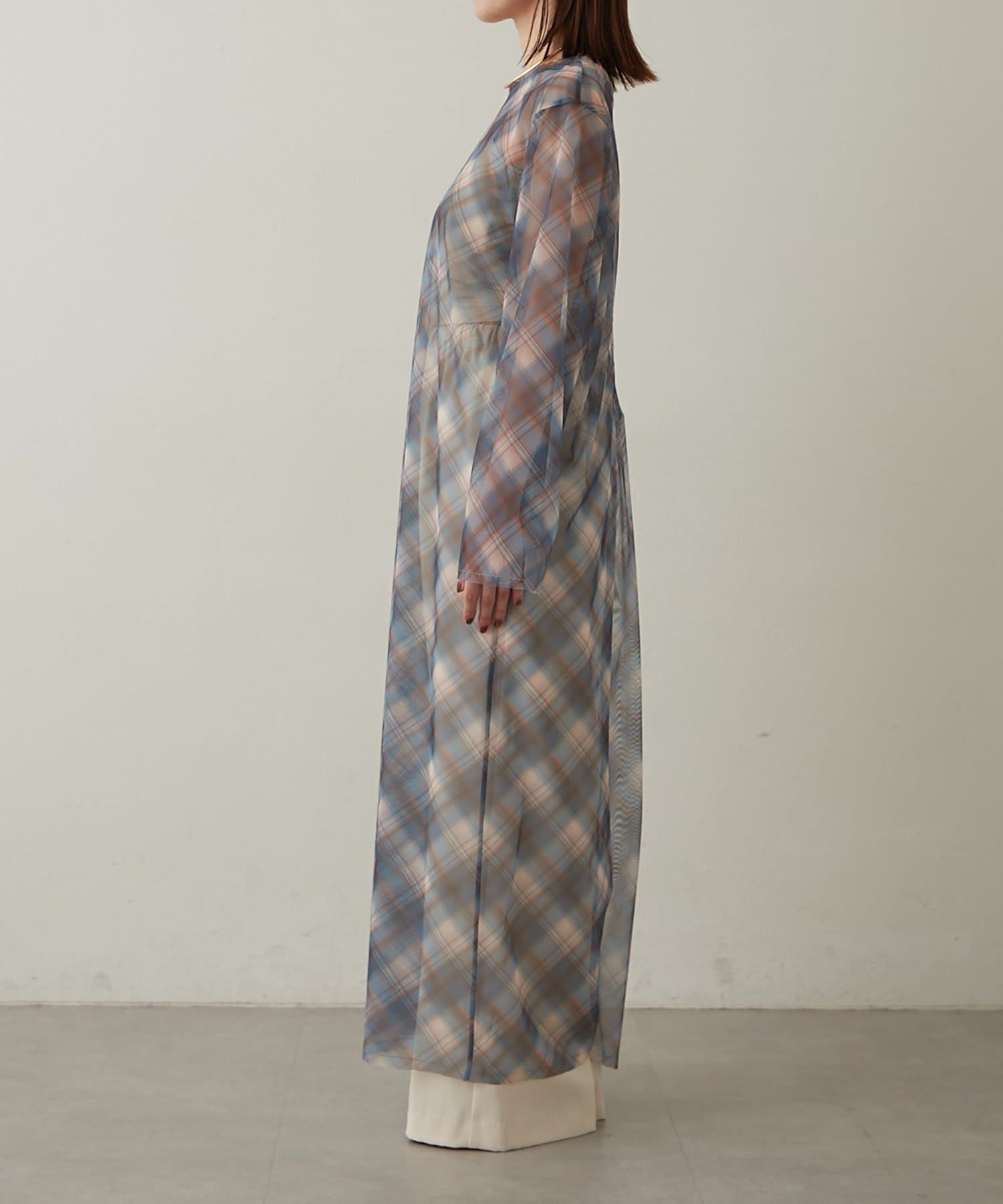 ・チェック柄とシアー素材が、秋口からのレイヤードスタイルにぴったりなワンピース