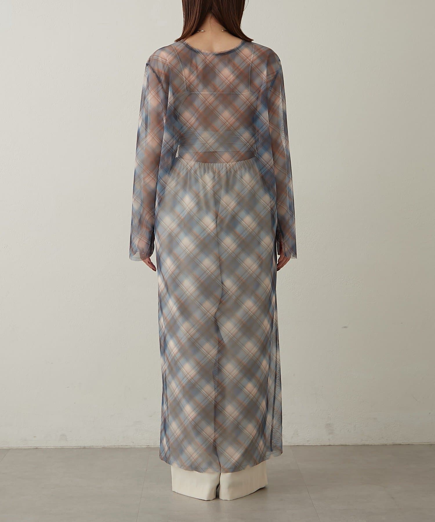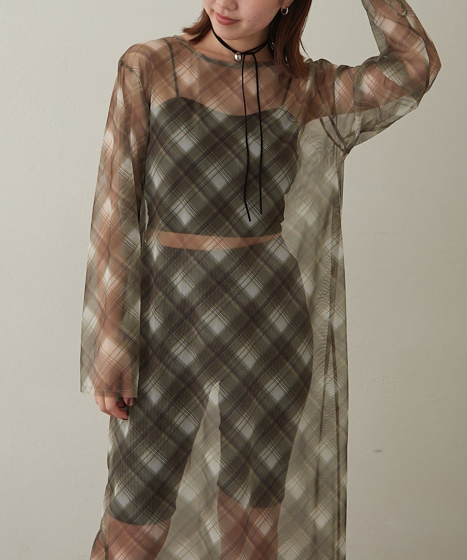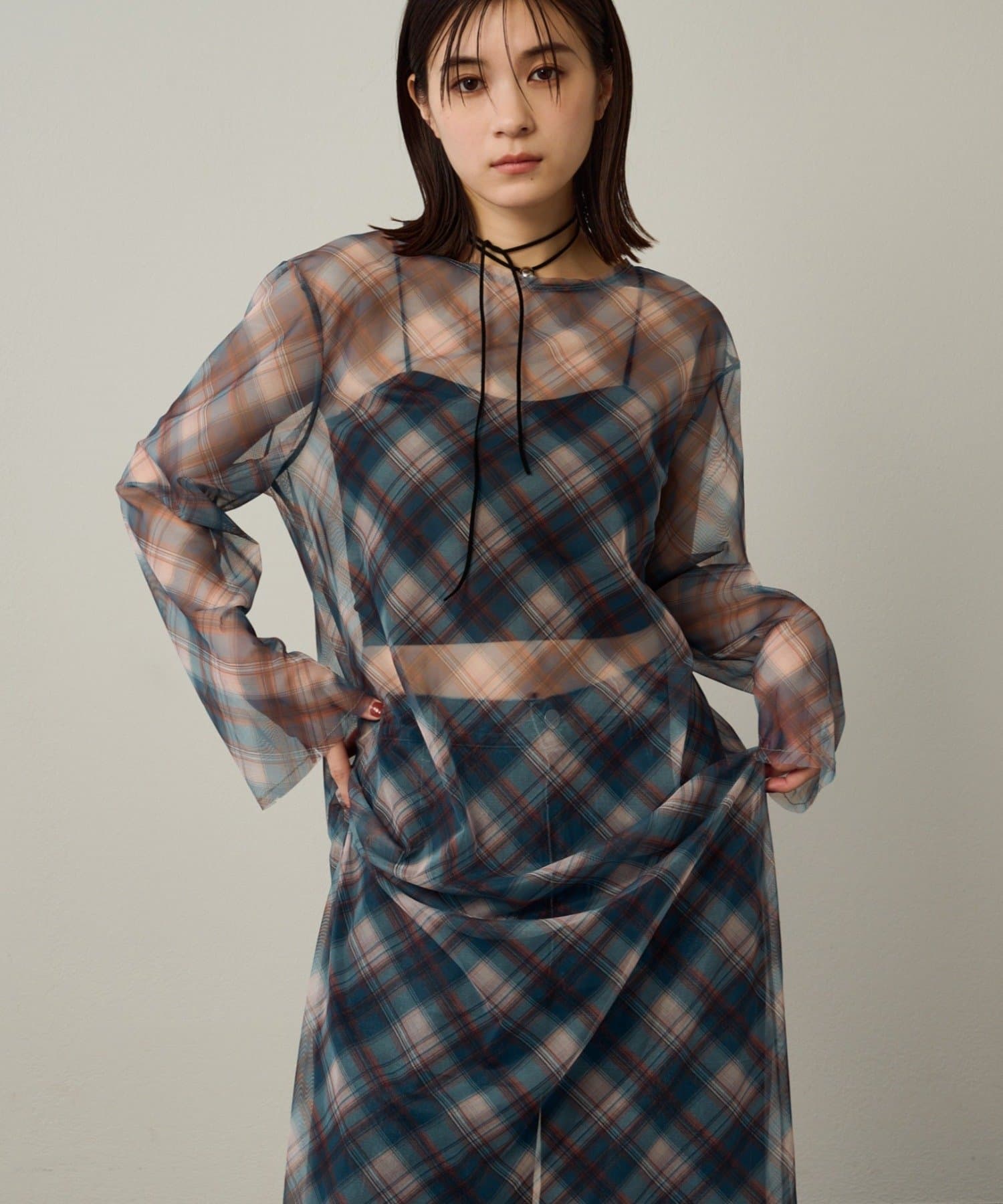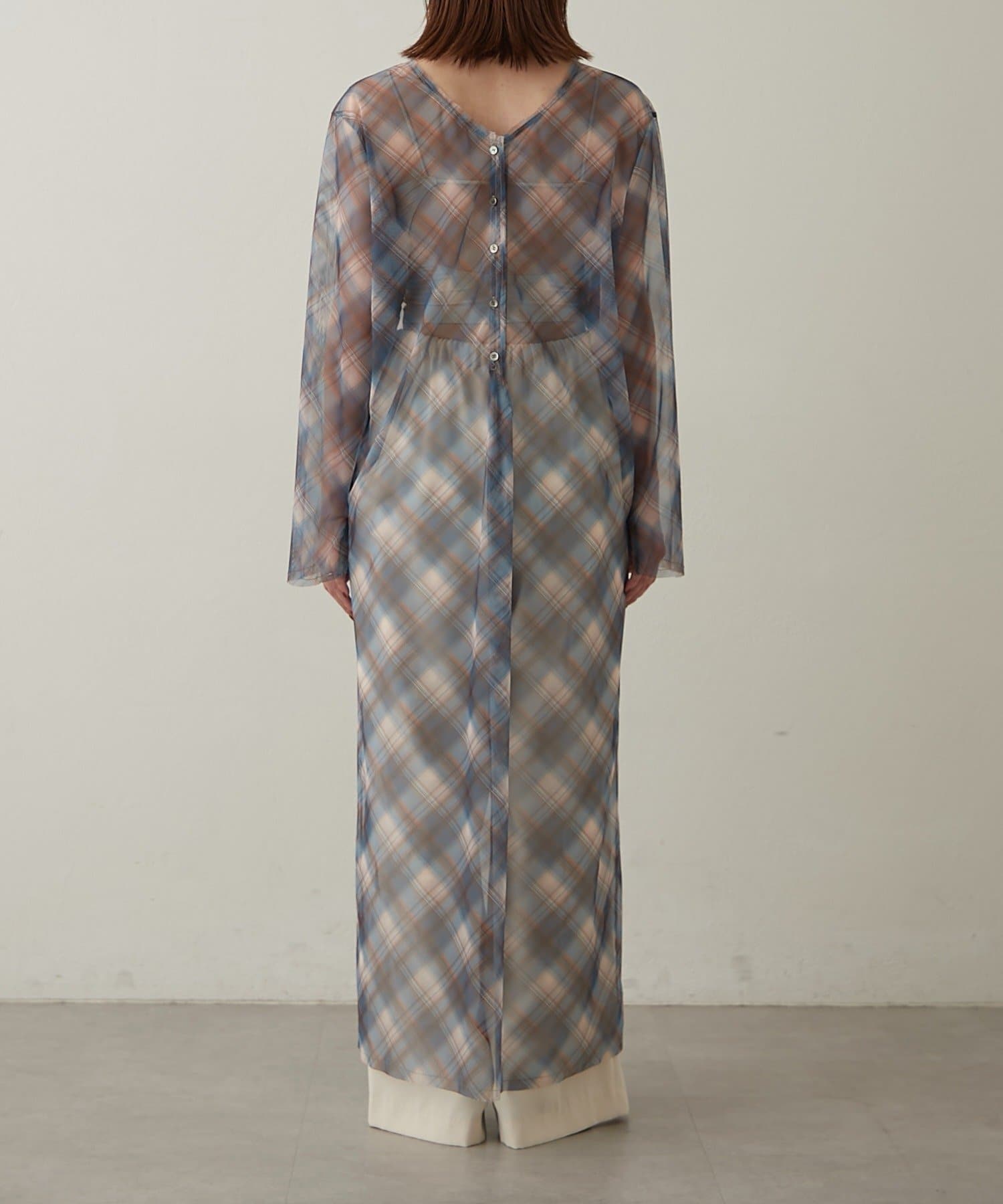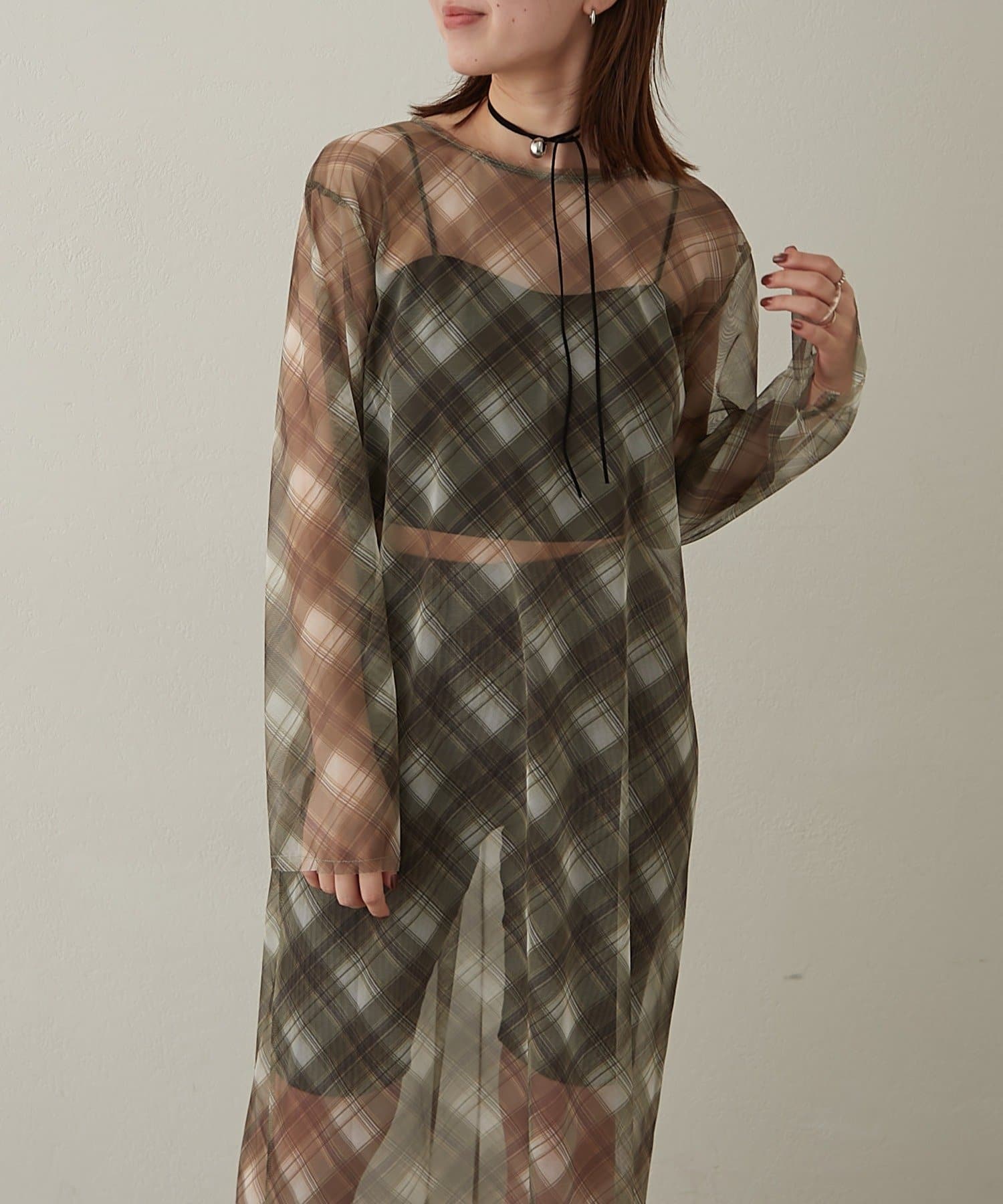 ・チェック柄とシアー素材が、秋口からのレイヤードスタイルにぴったりなワンピース