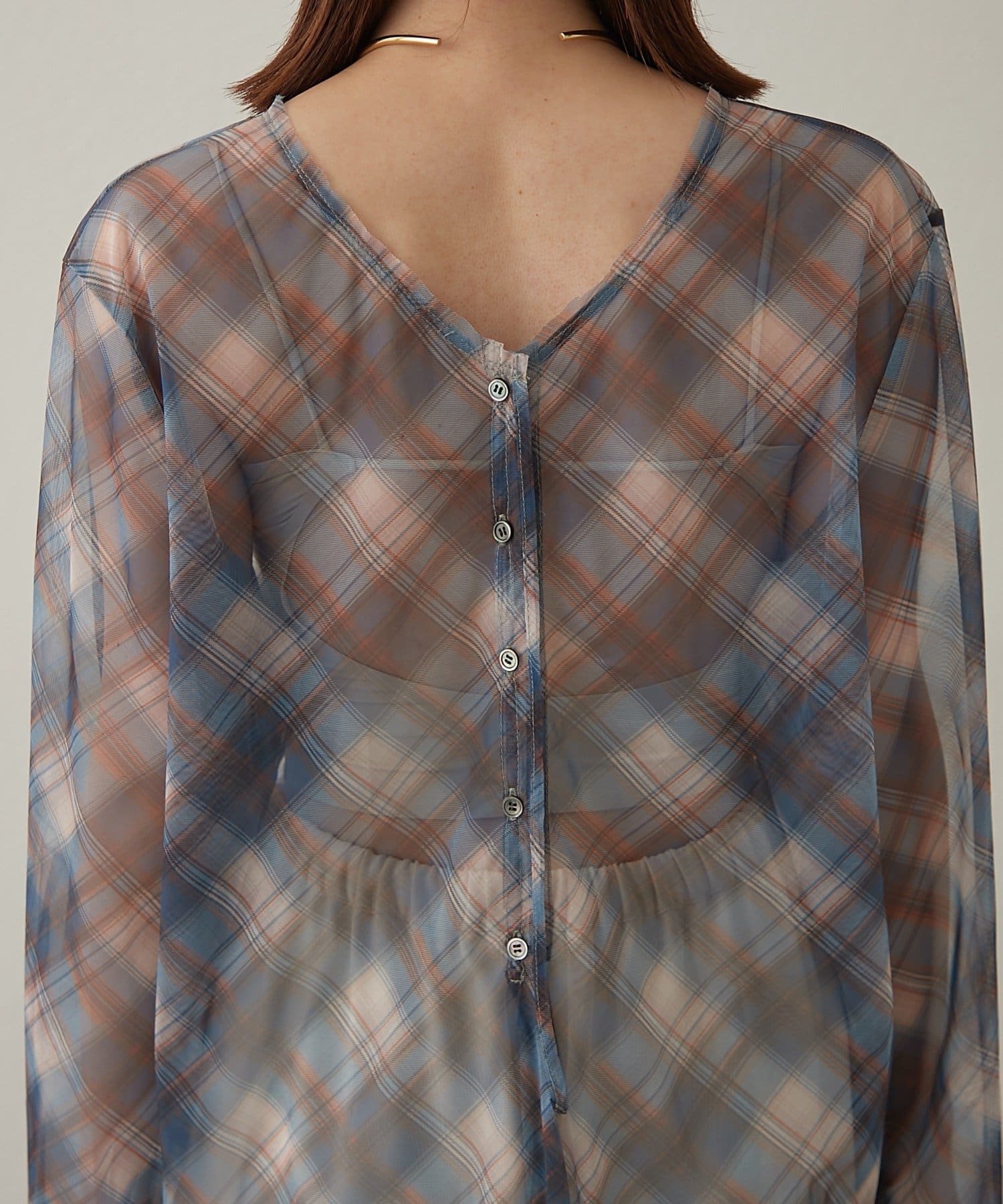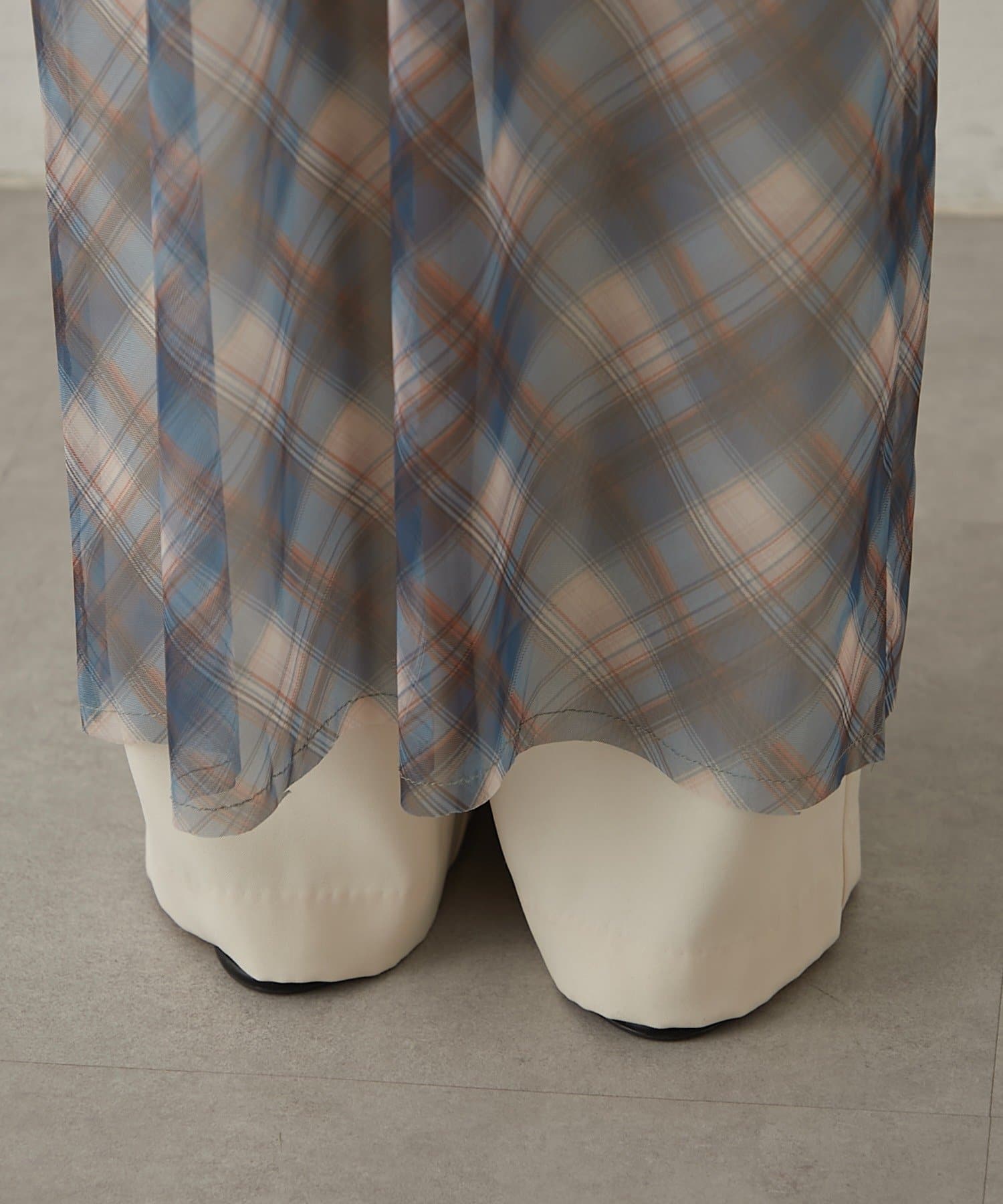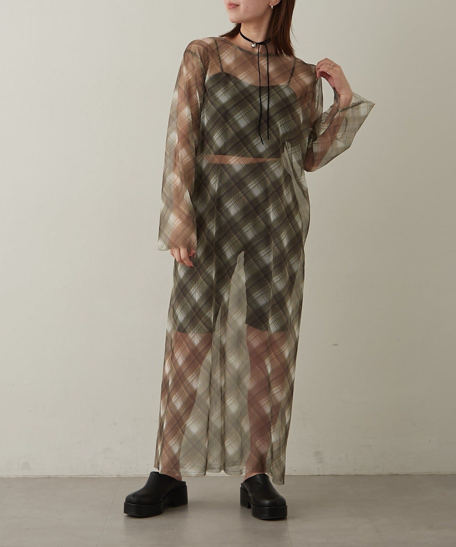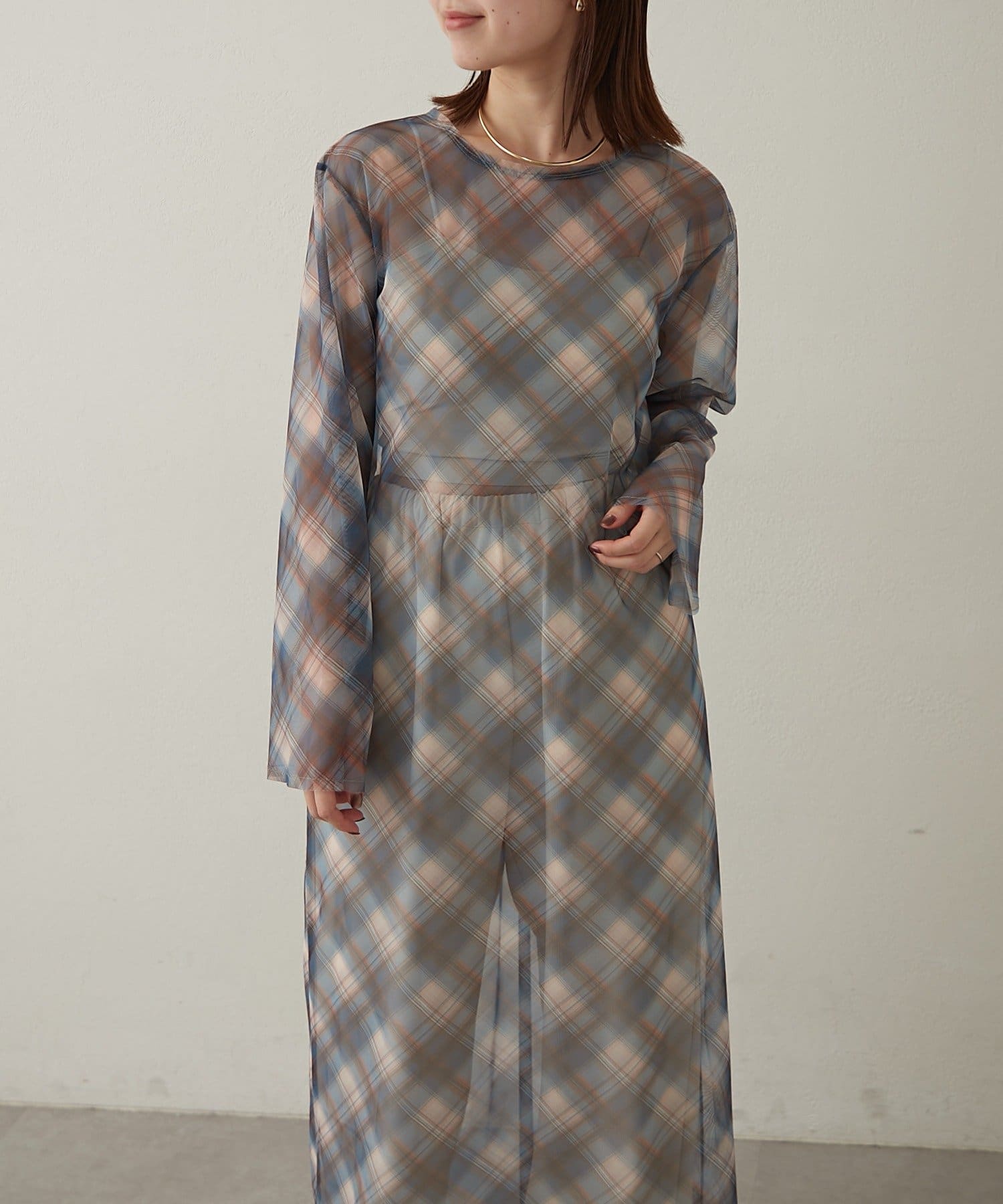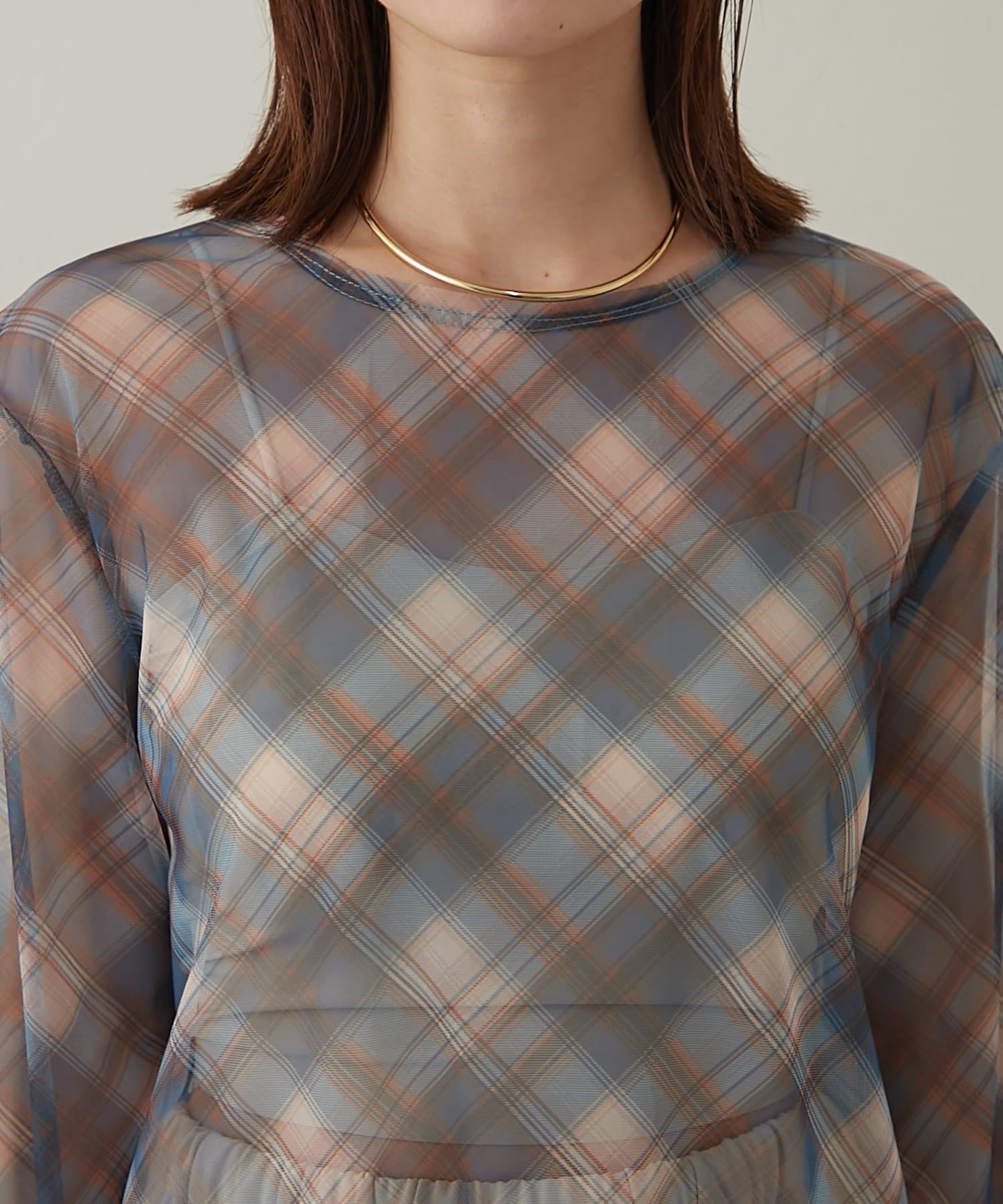 ・チェック柄とシアー素材が、秋口からのレイヤードスタイルにぴったりなワンピース