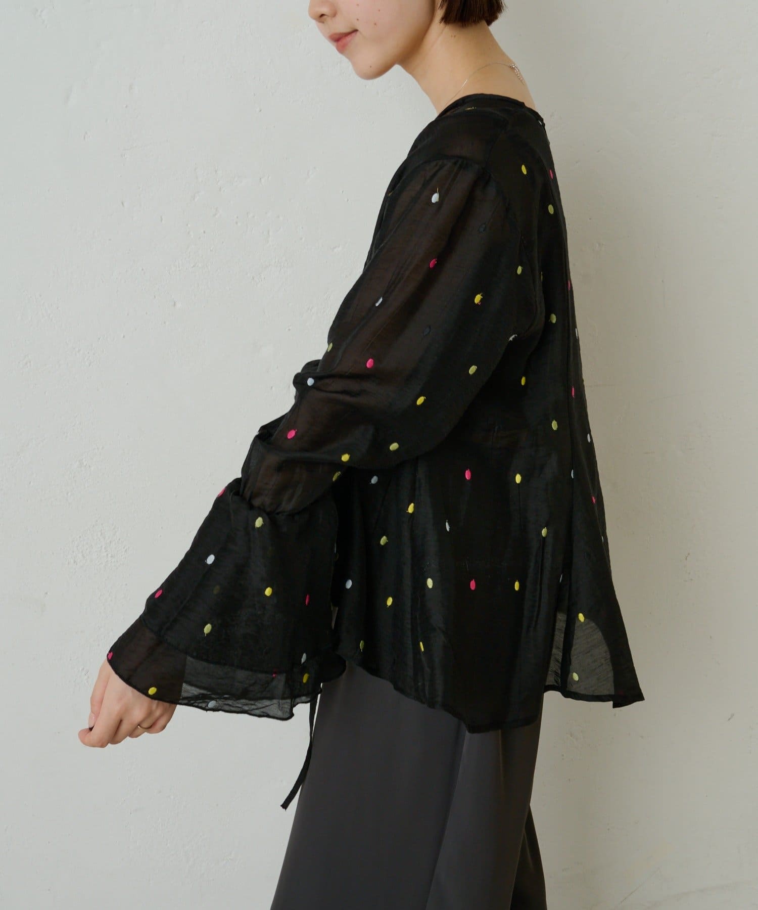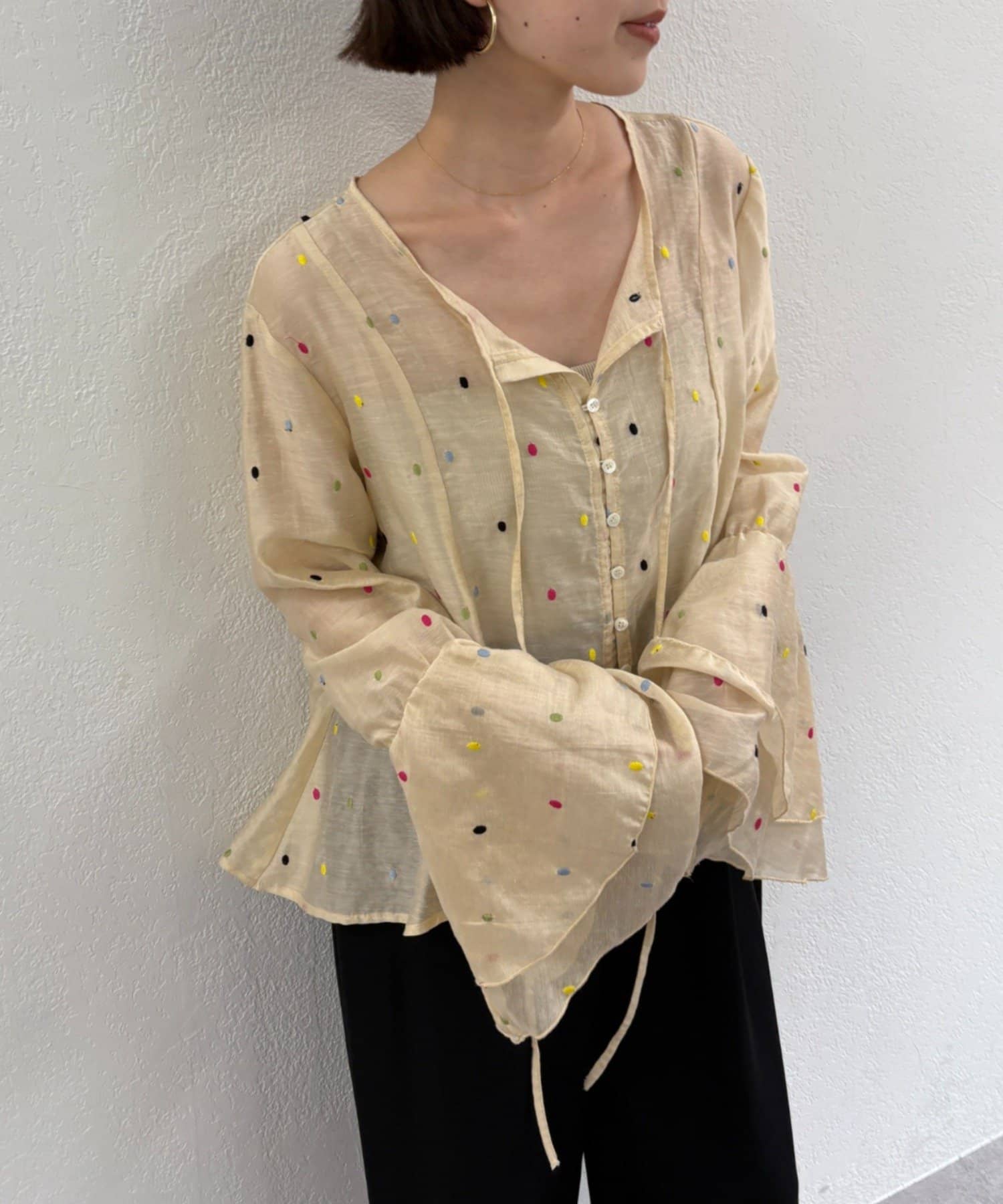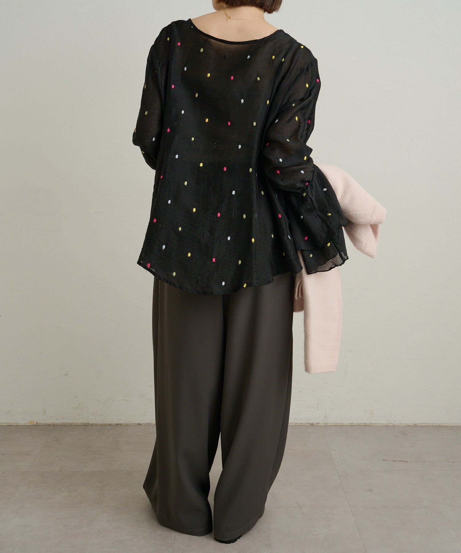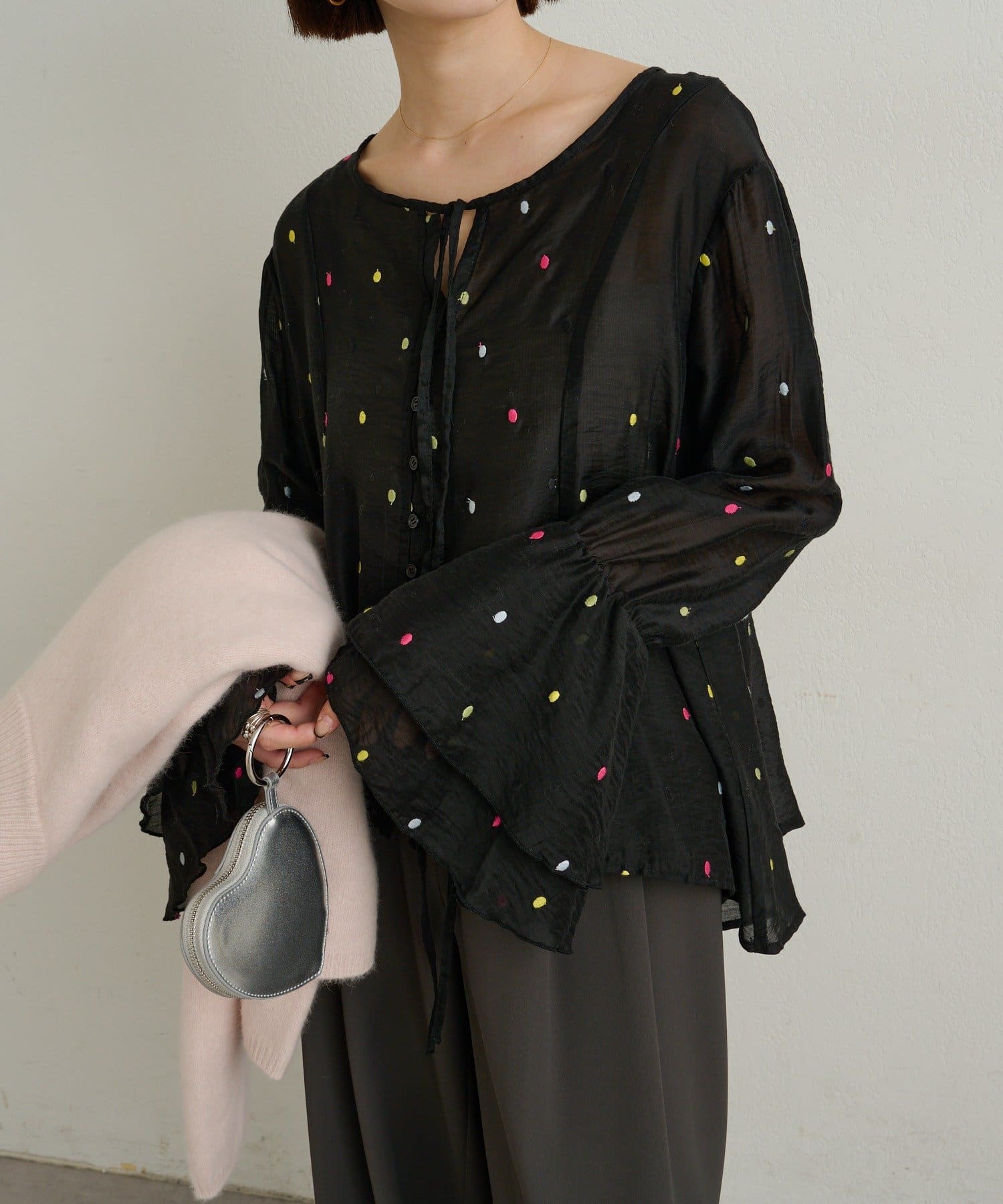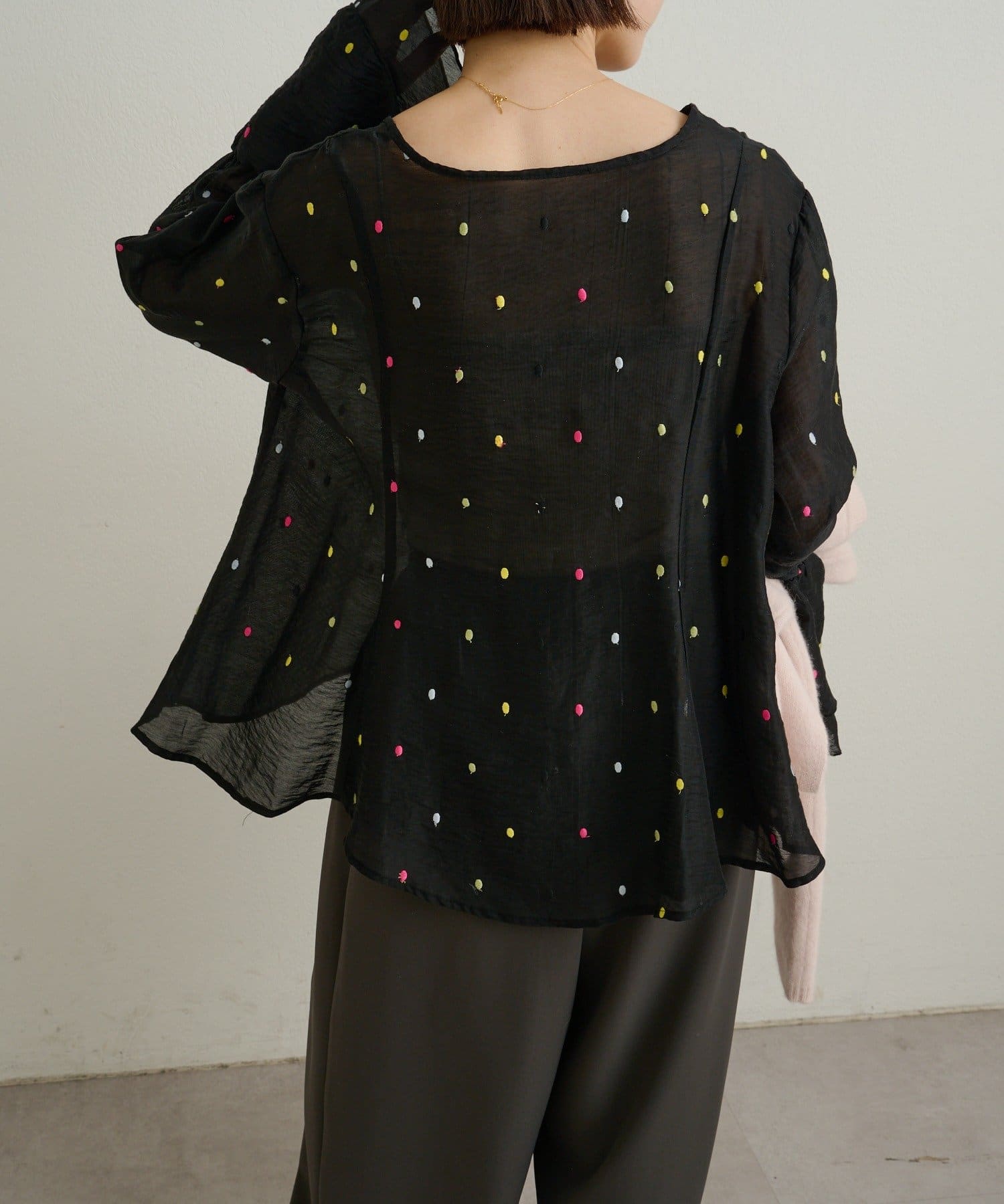 一枚でスタイリングが華やかになるマルチドットブラウス