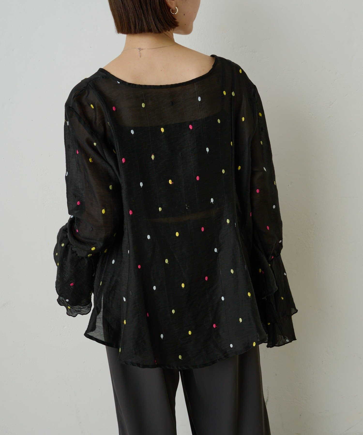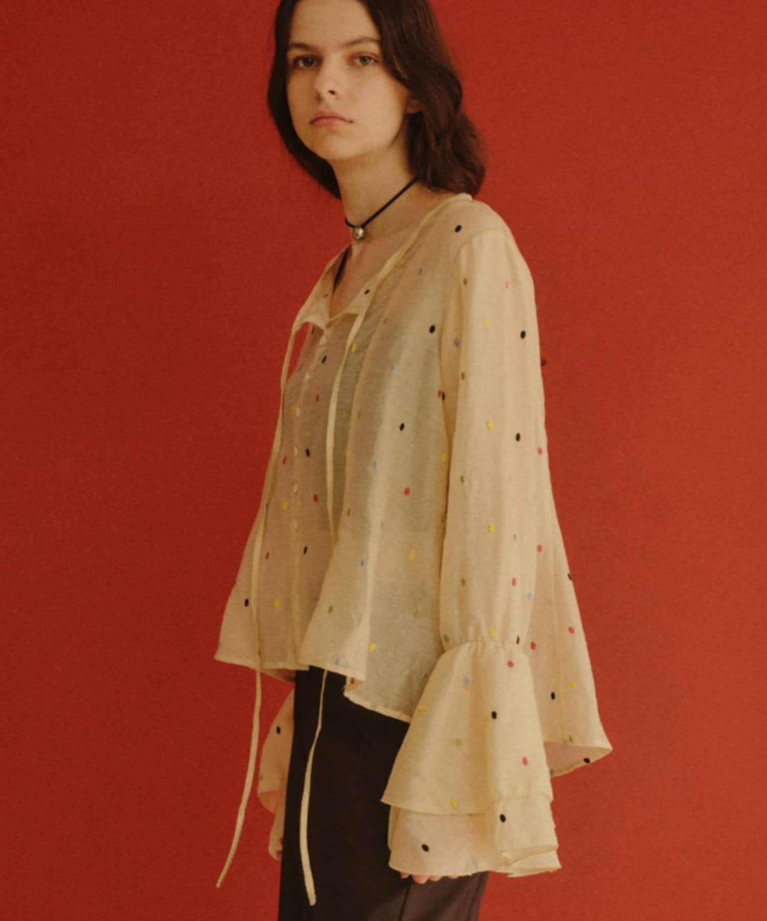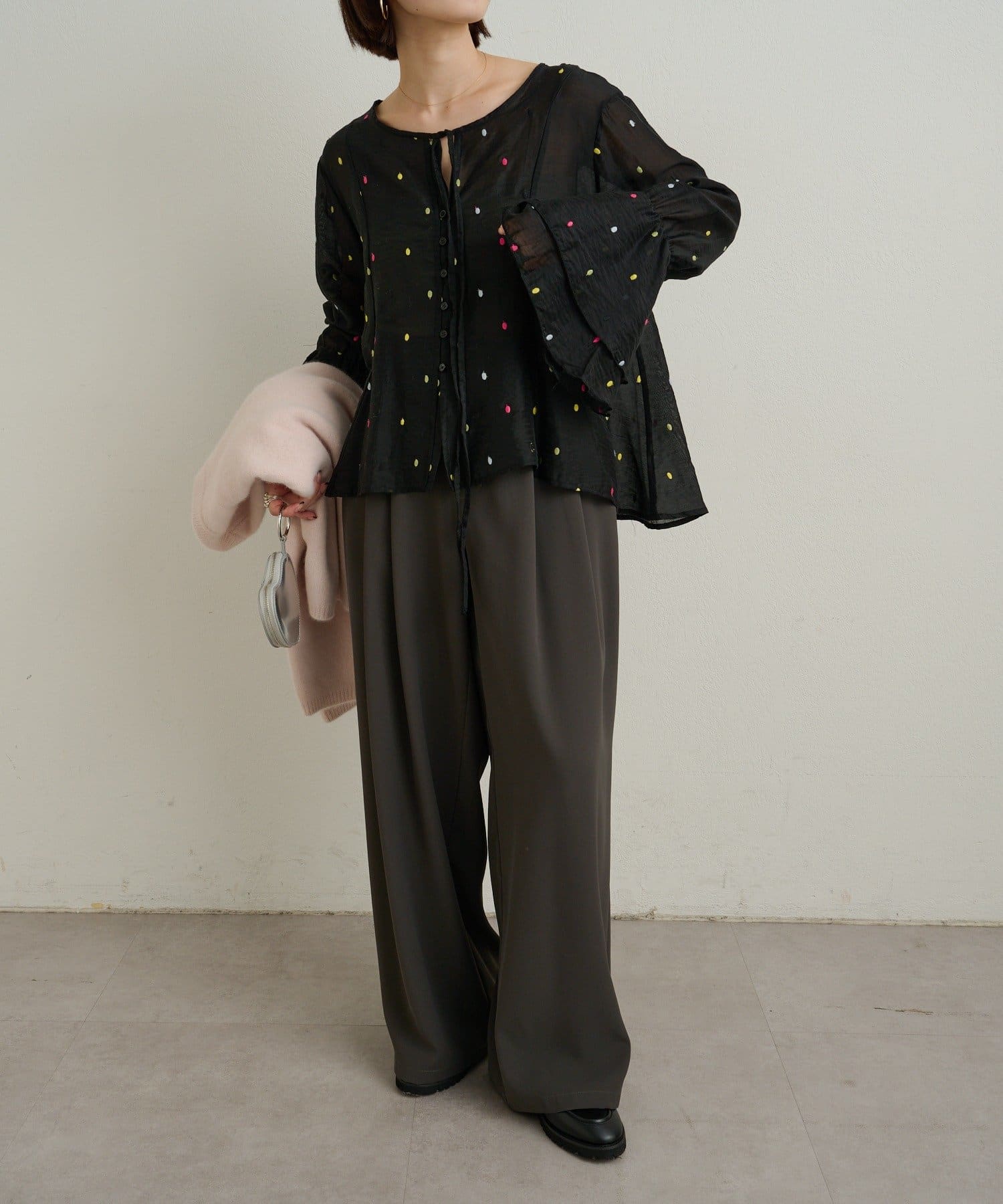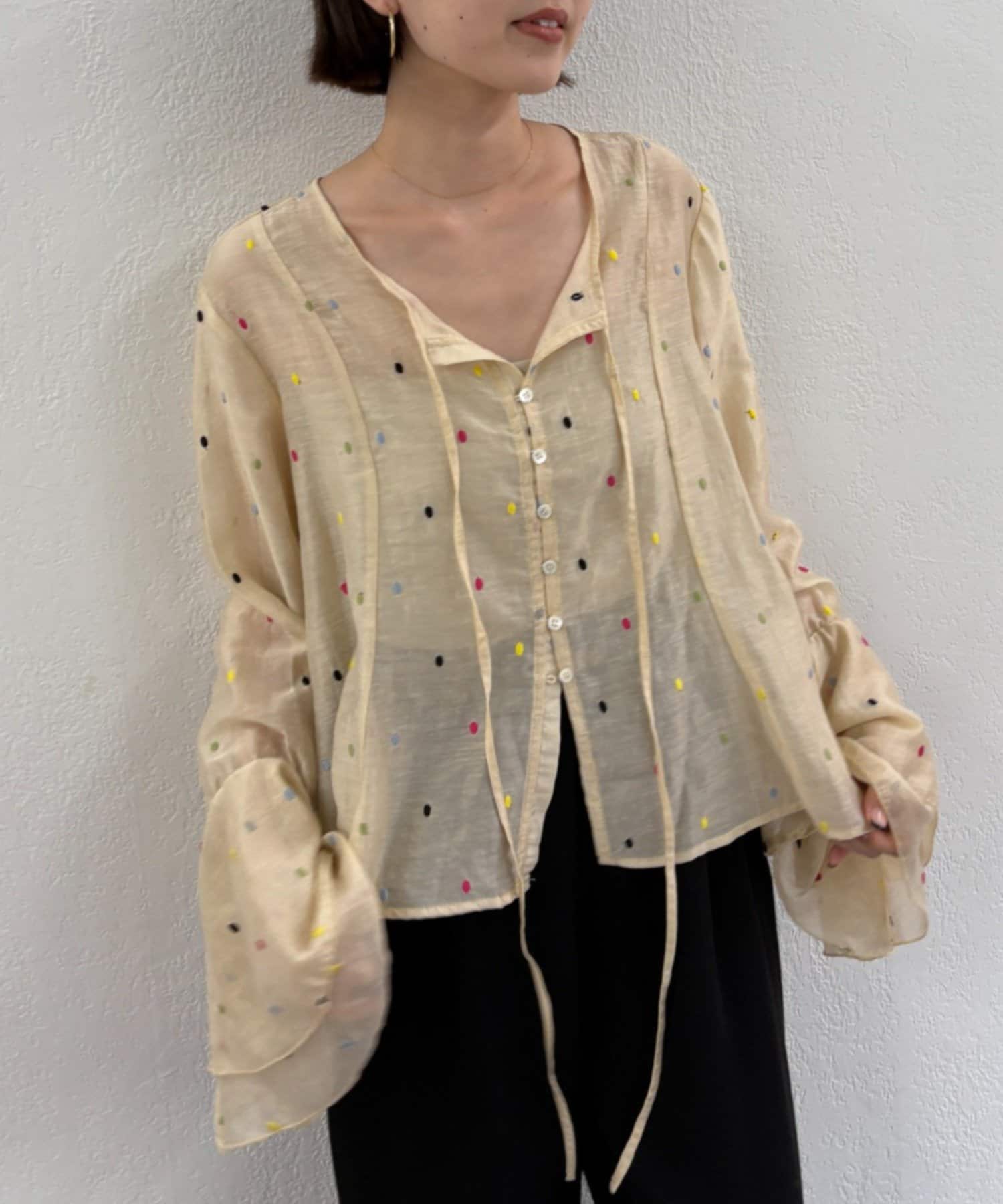 一枚でスタイリングが華やかになるマルチドットブラウス