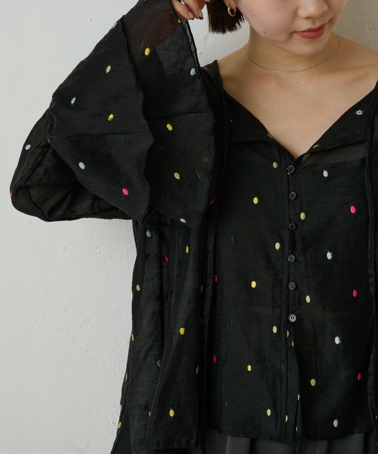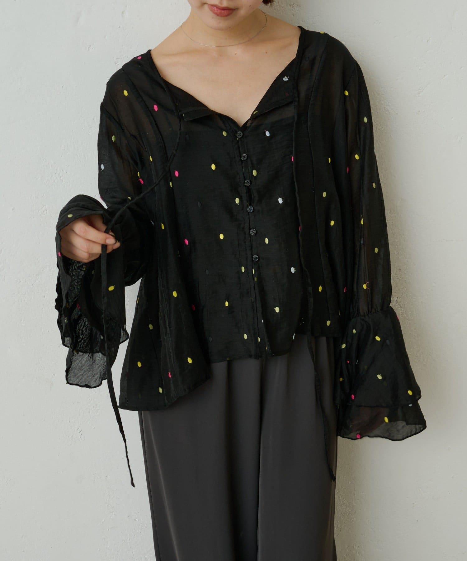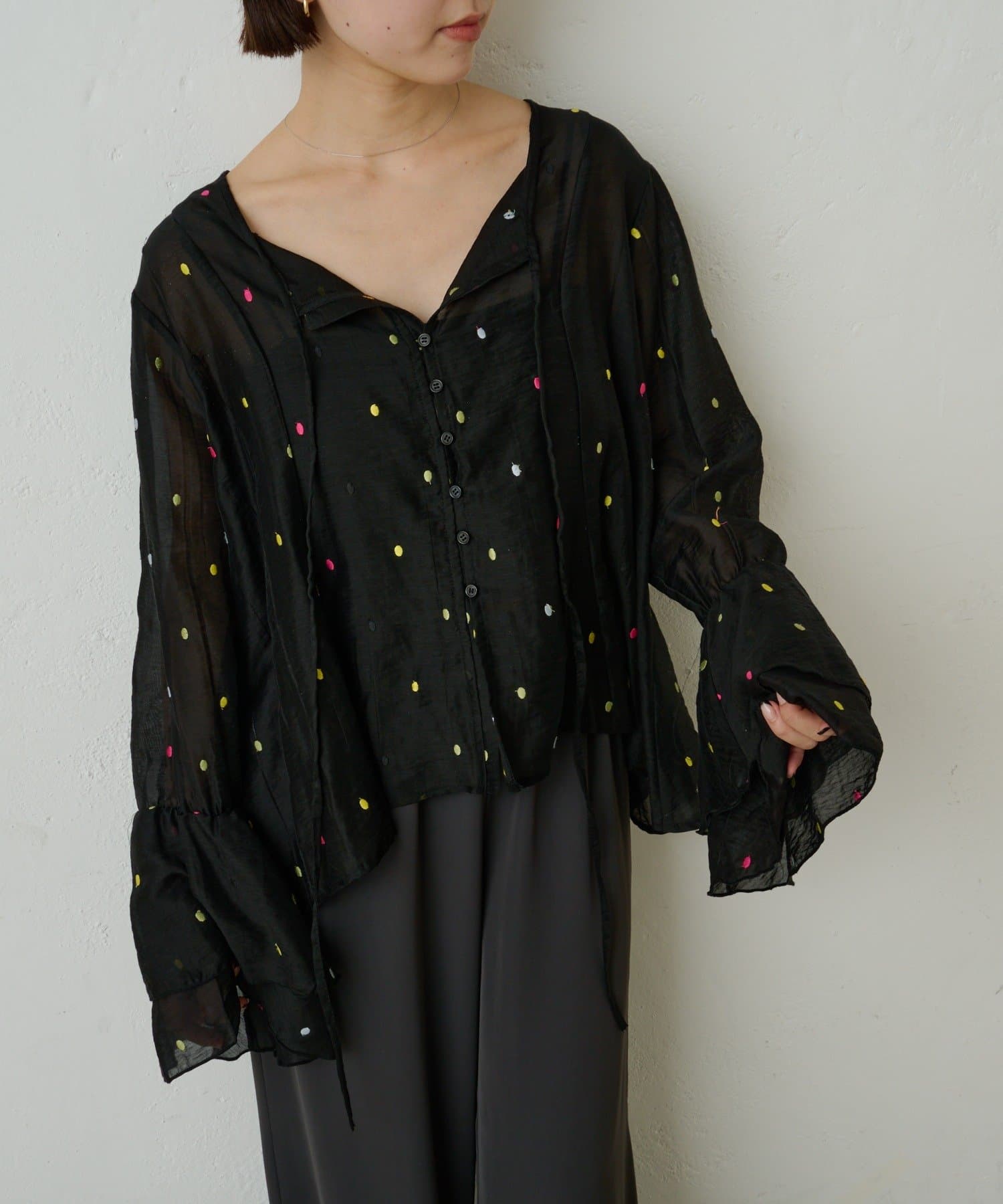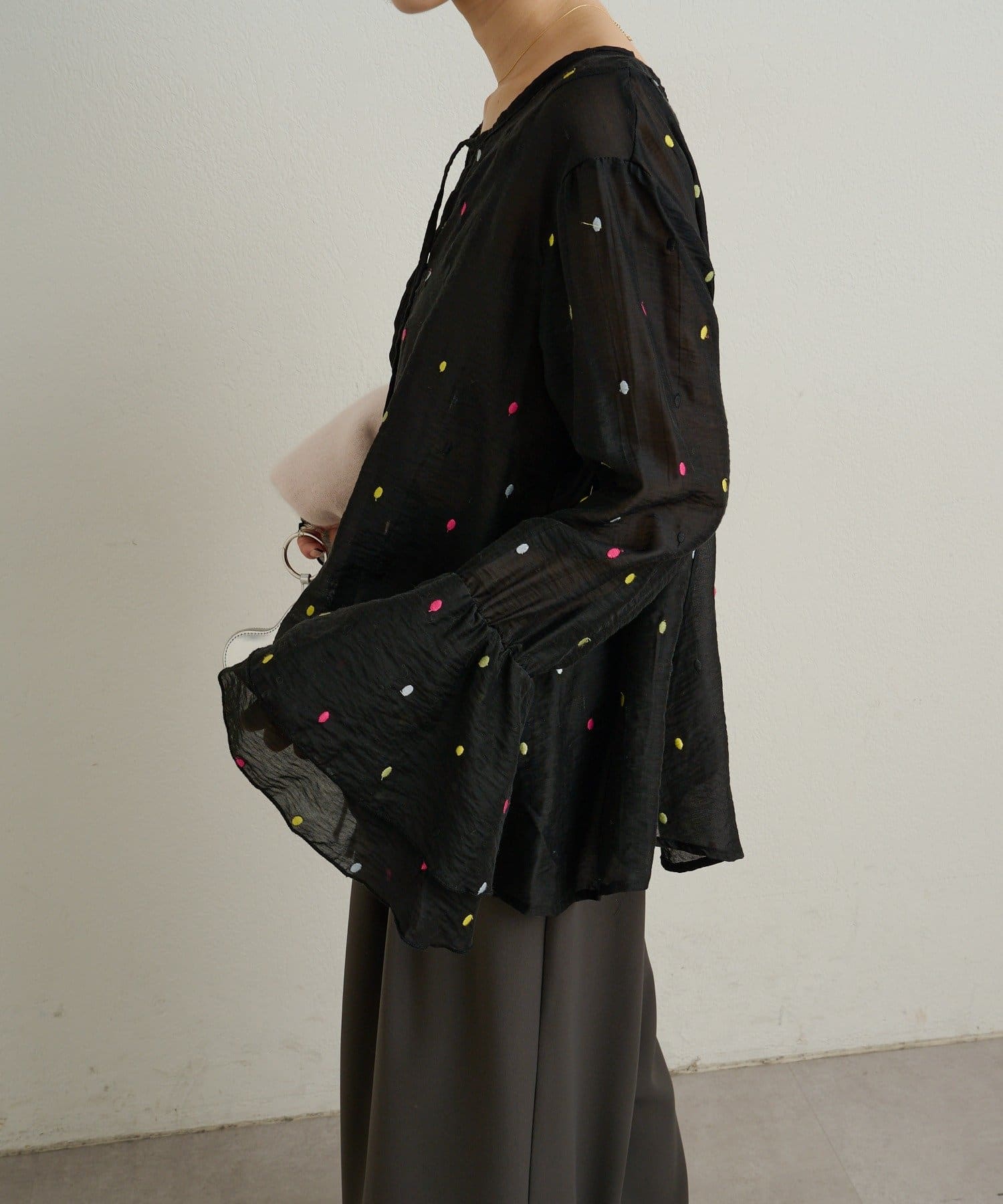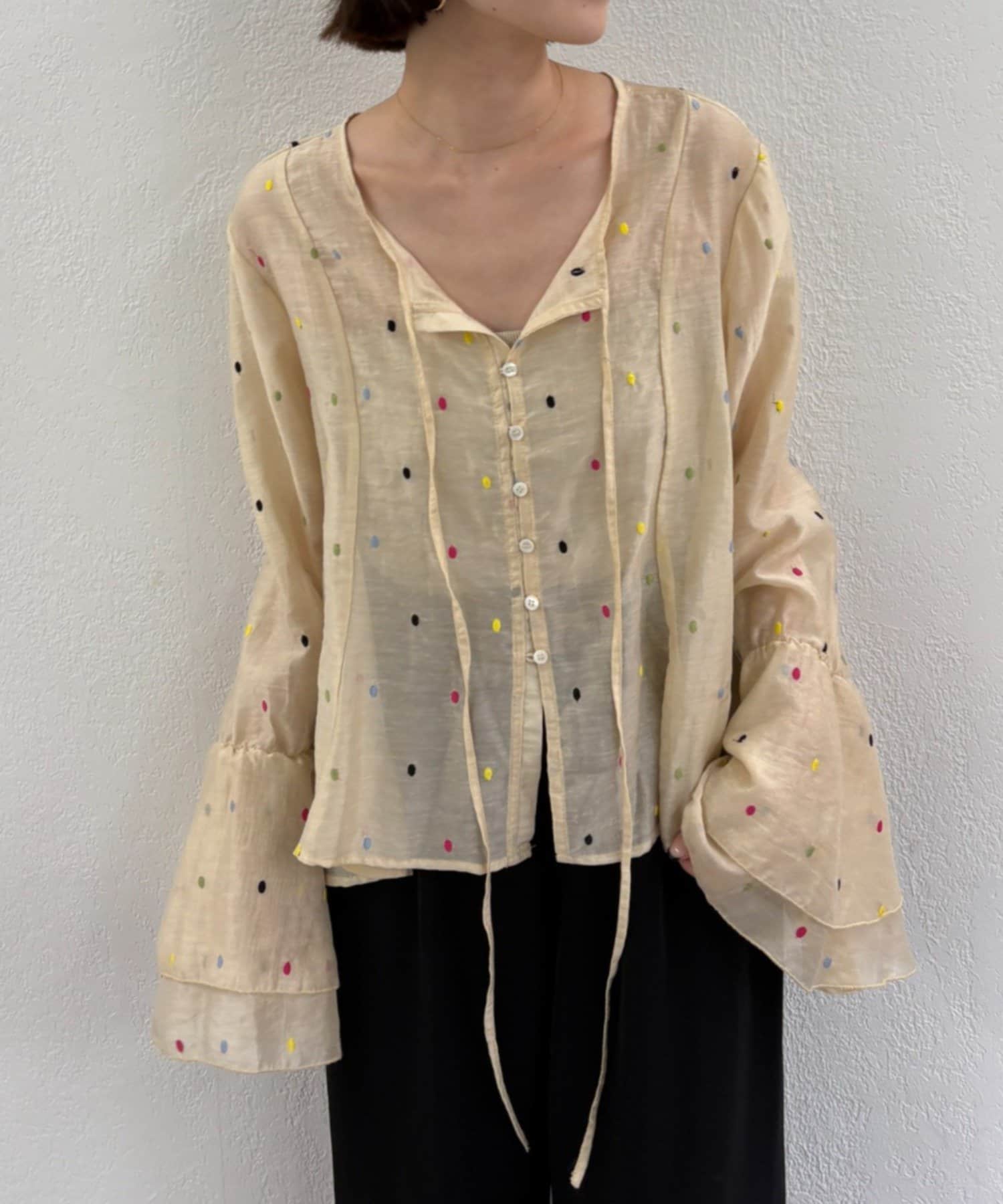 一枚でスタイリングが華やかになるマルチドットブラウス
