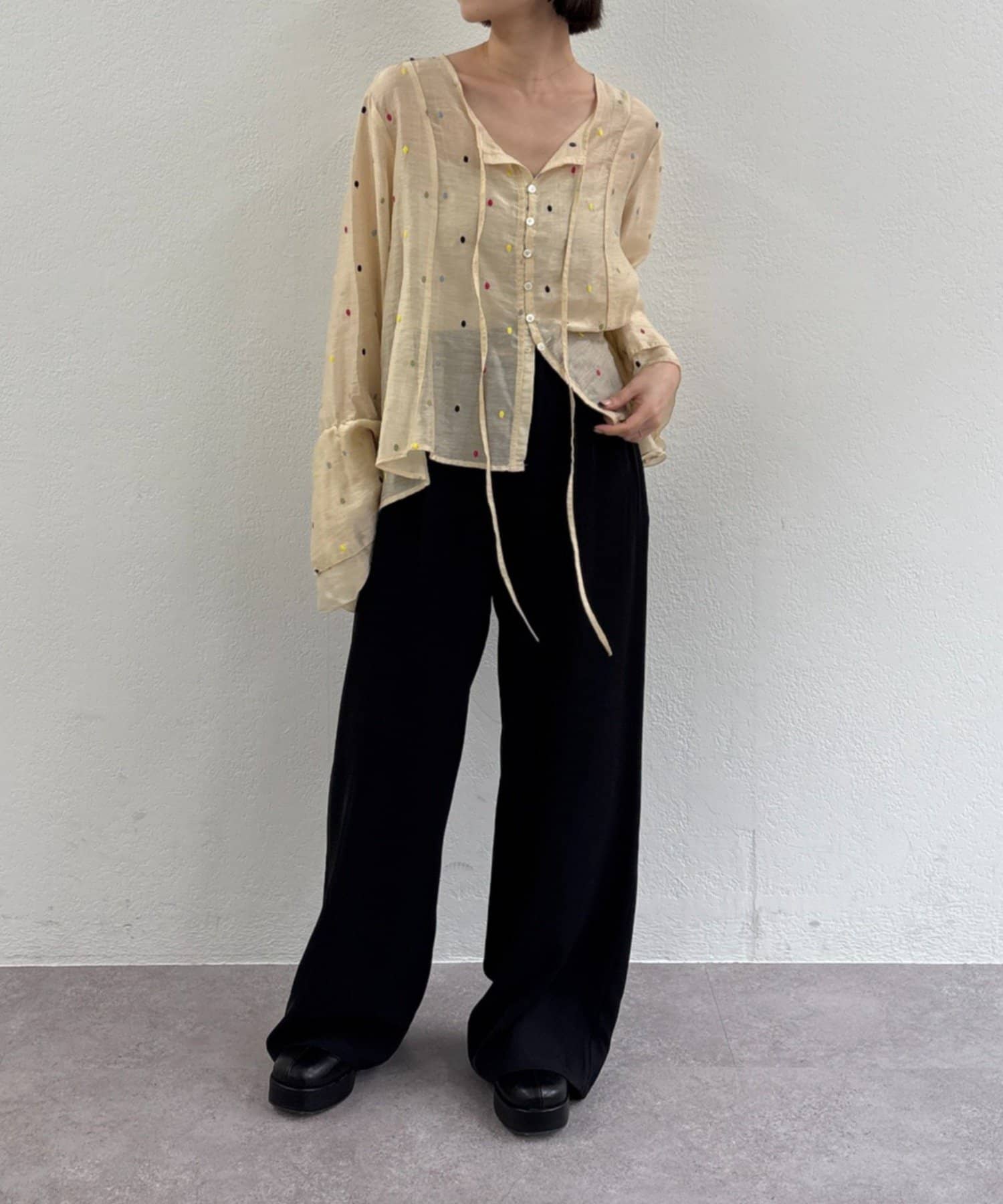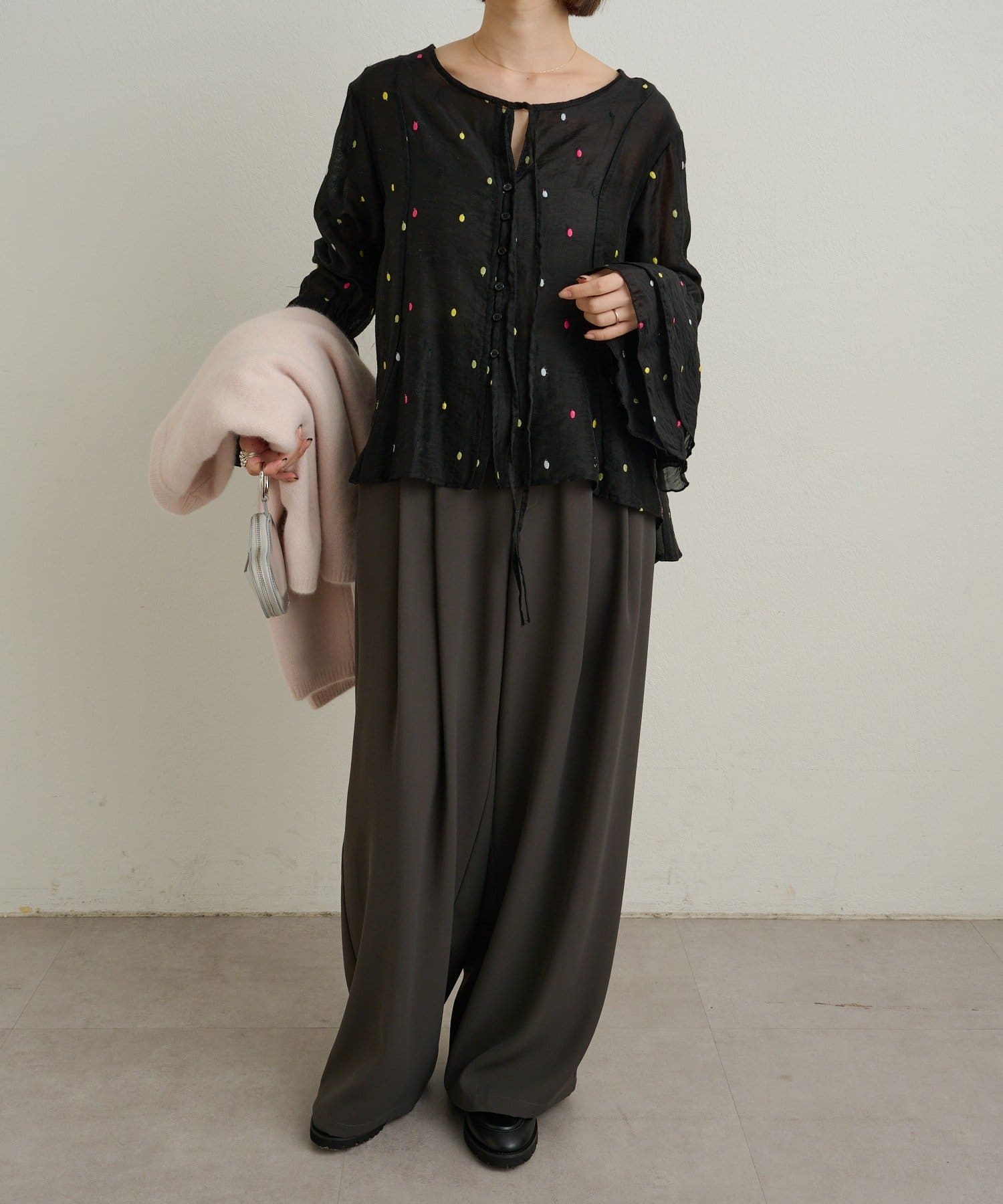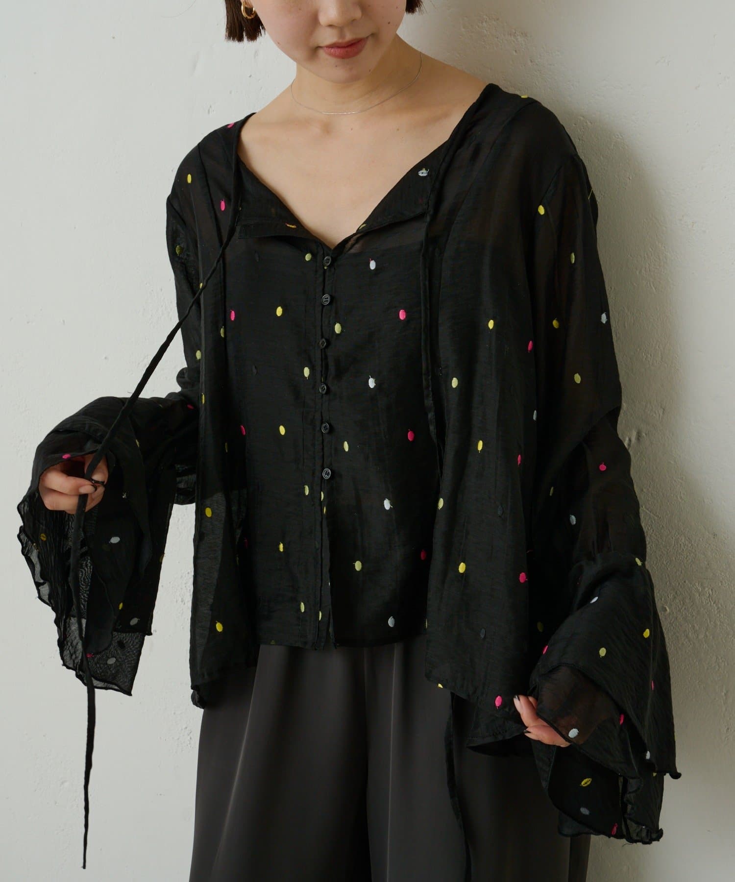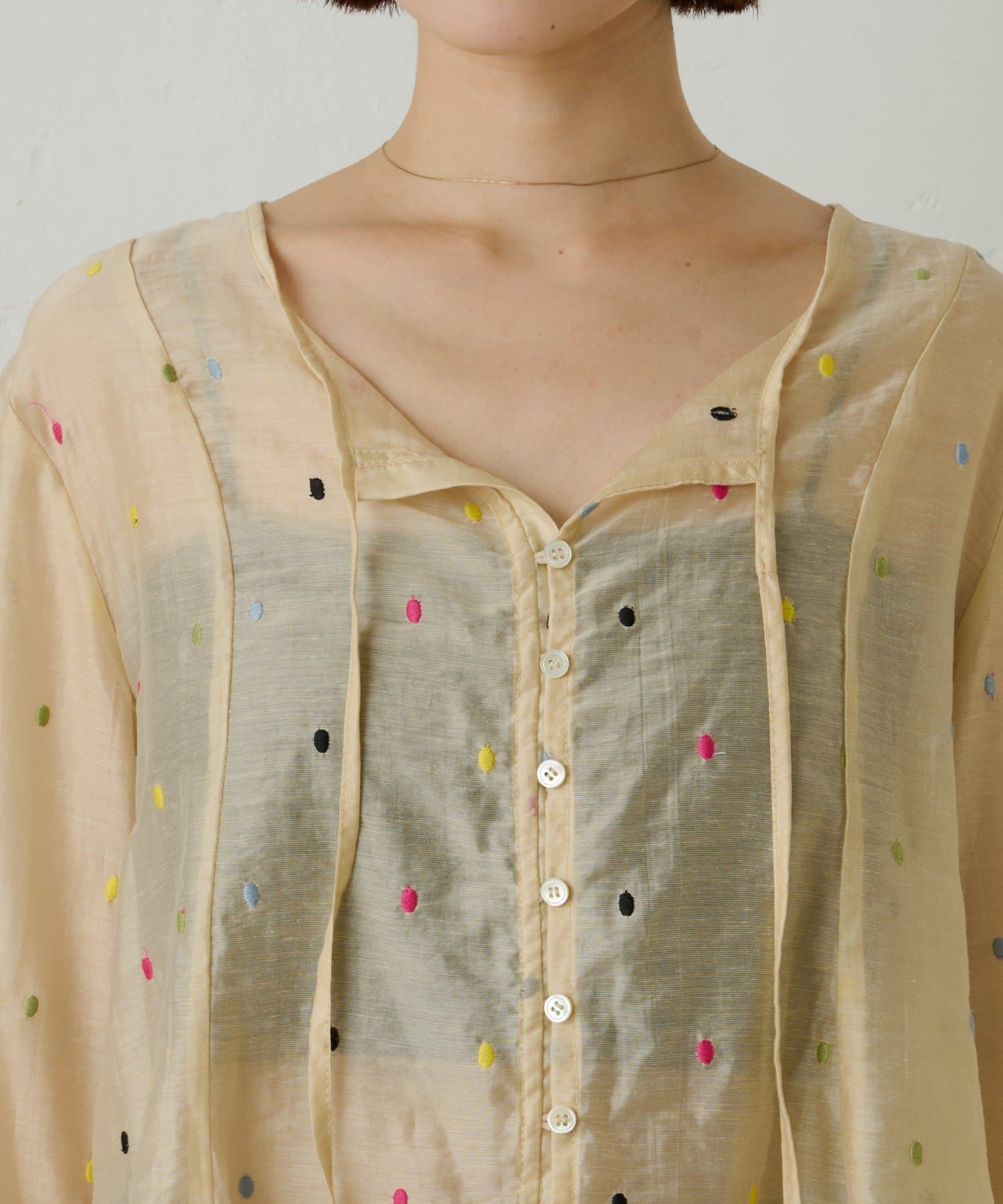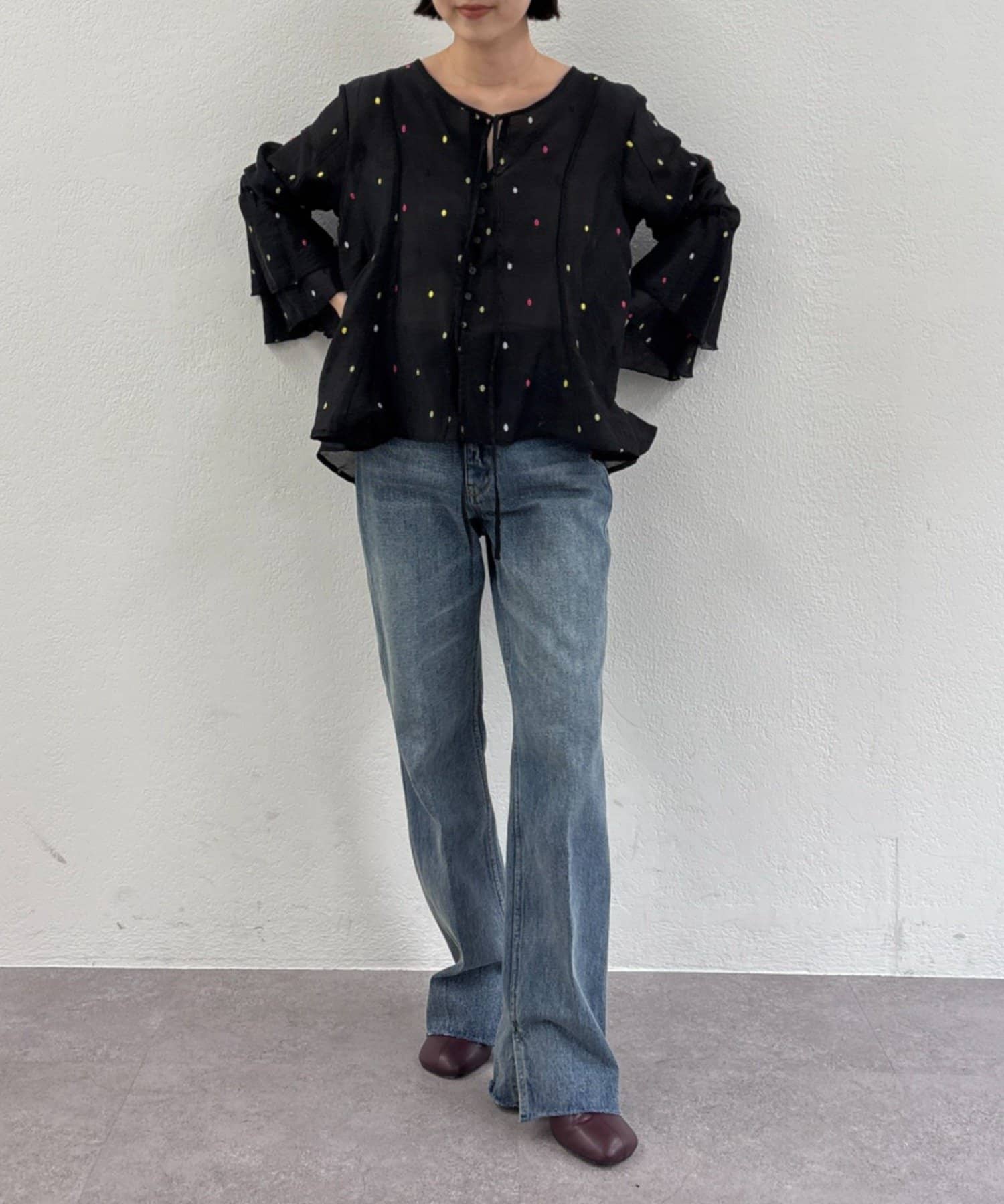 一枚でスタイリングが華やかになるマルチドットブラウス