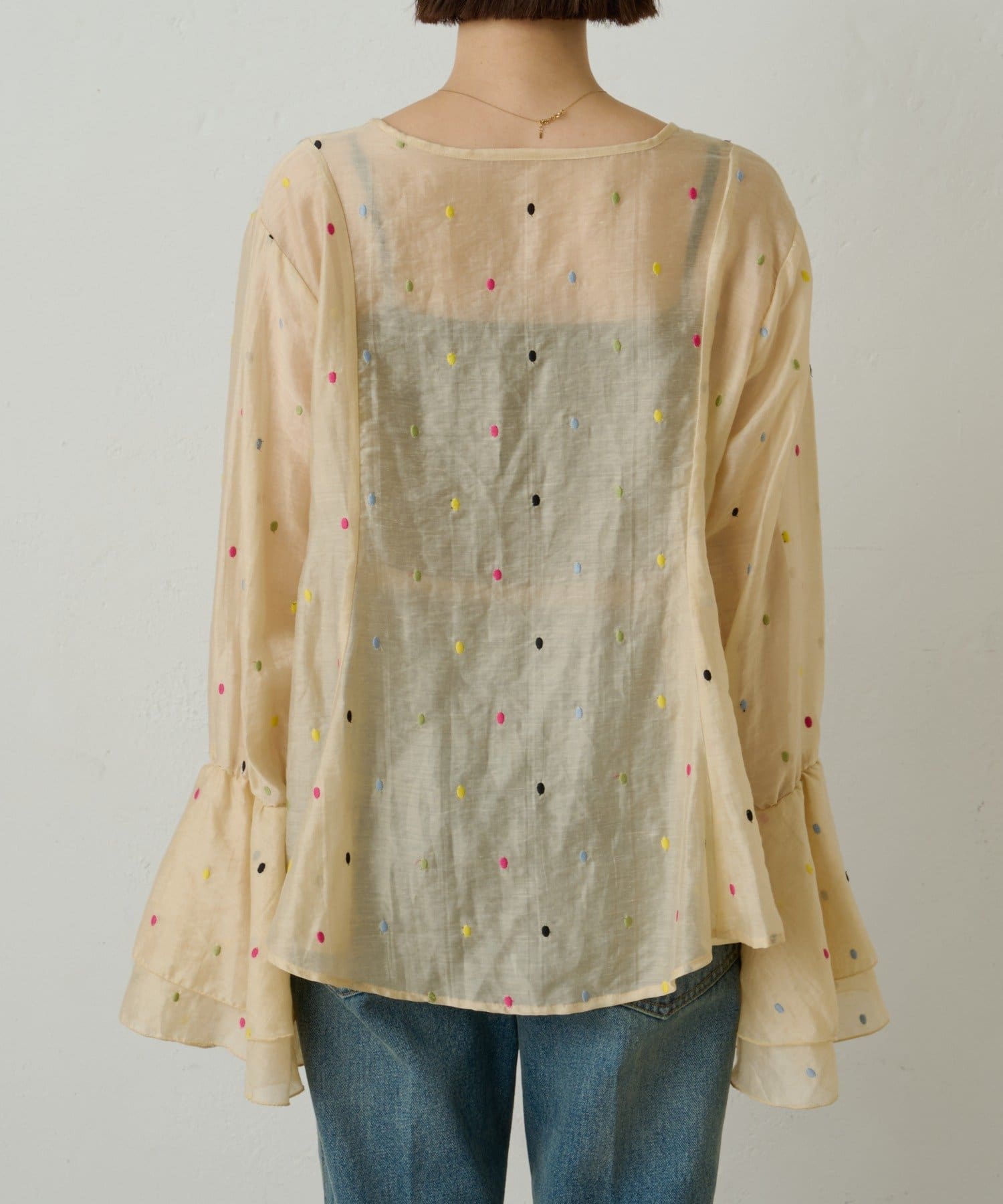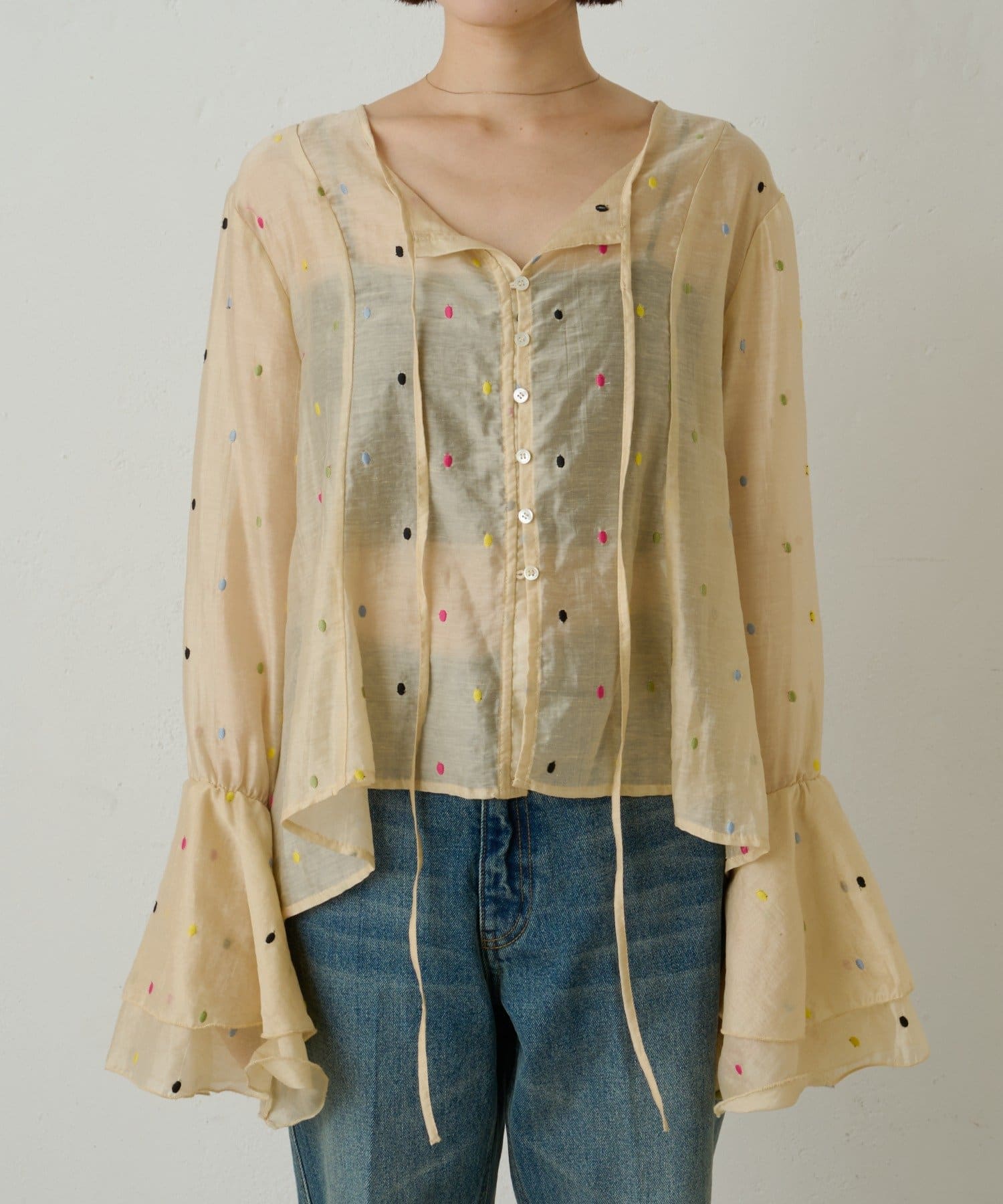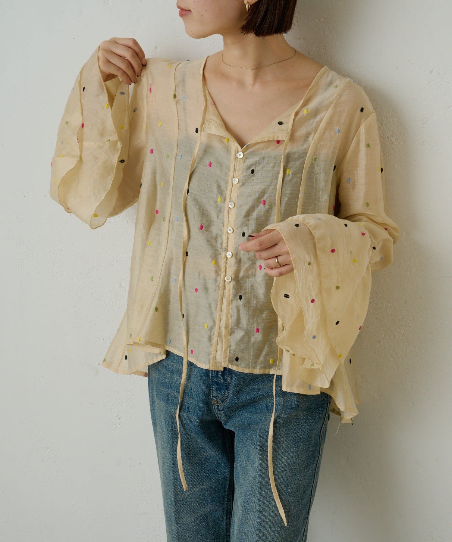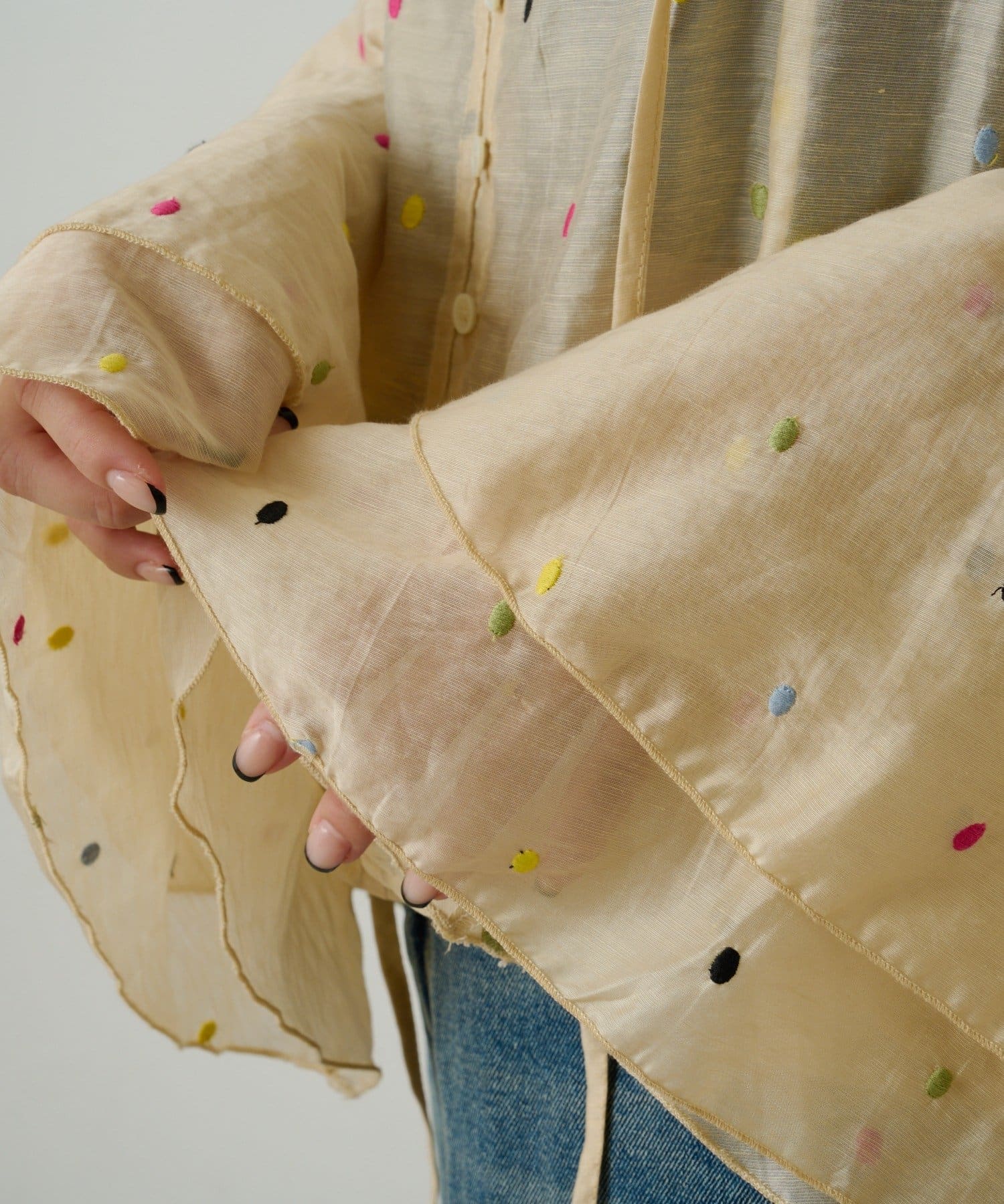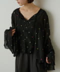 一枚でスタイリングが華やかになるマルチドットブラウス
