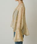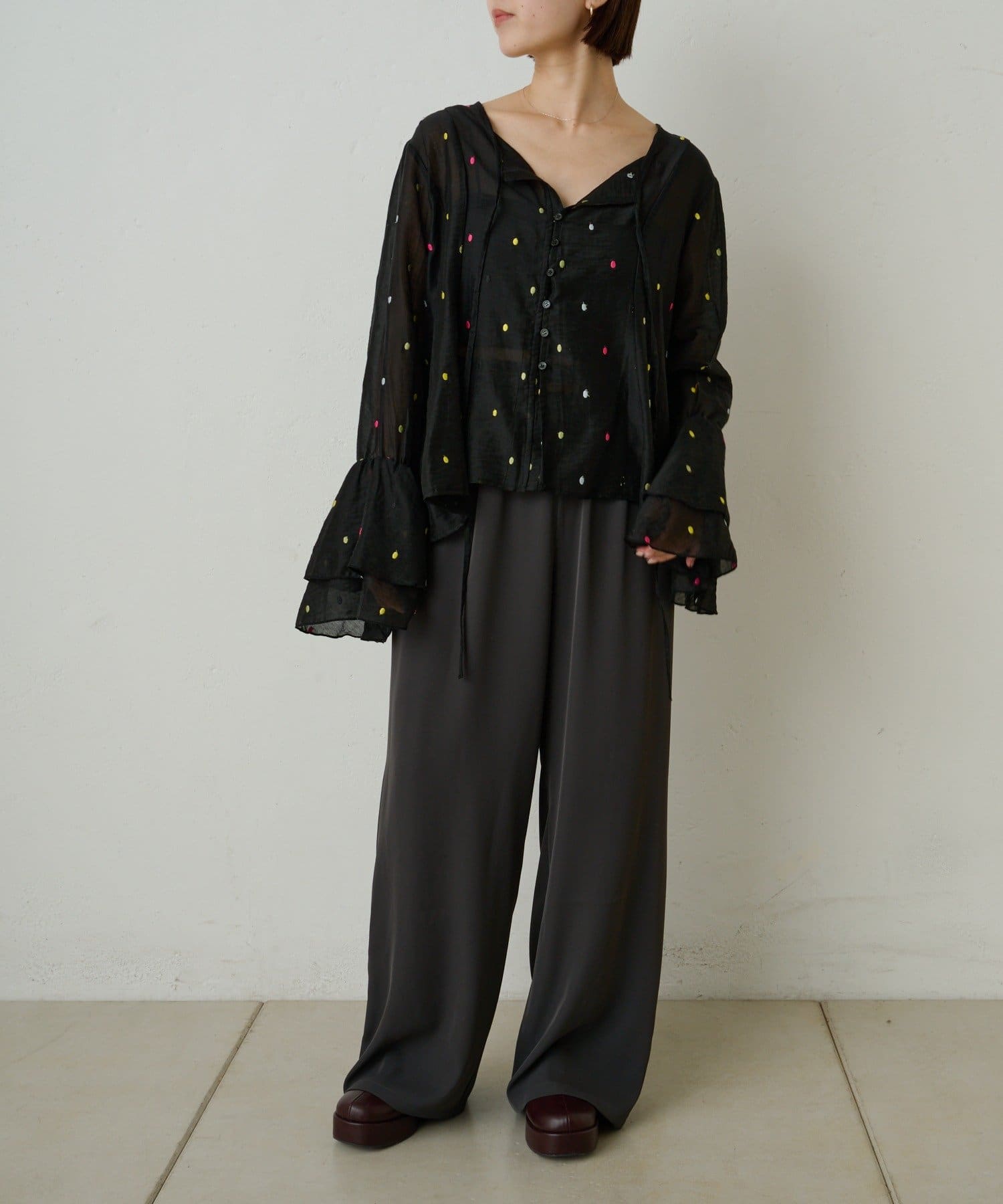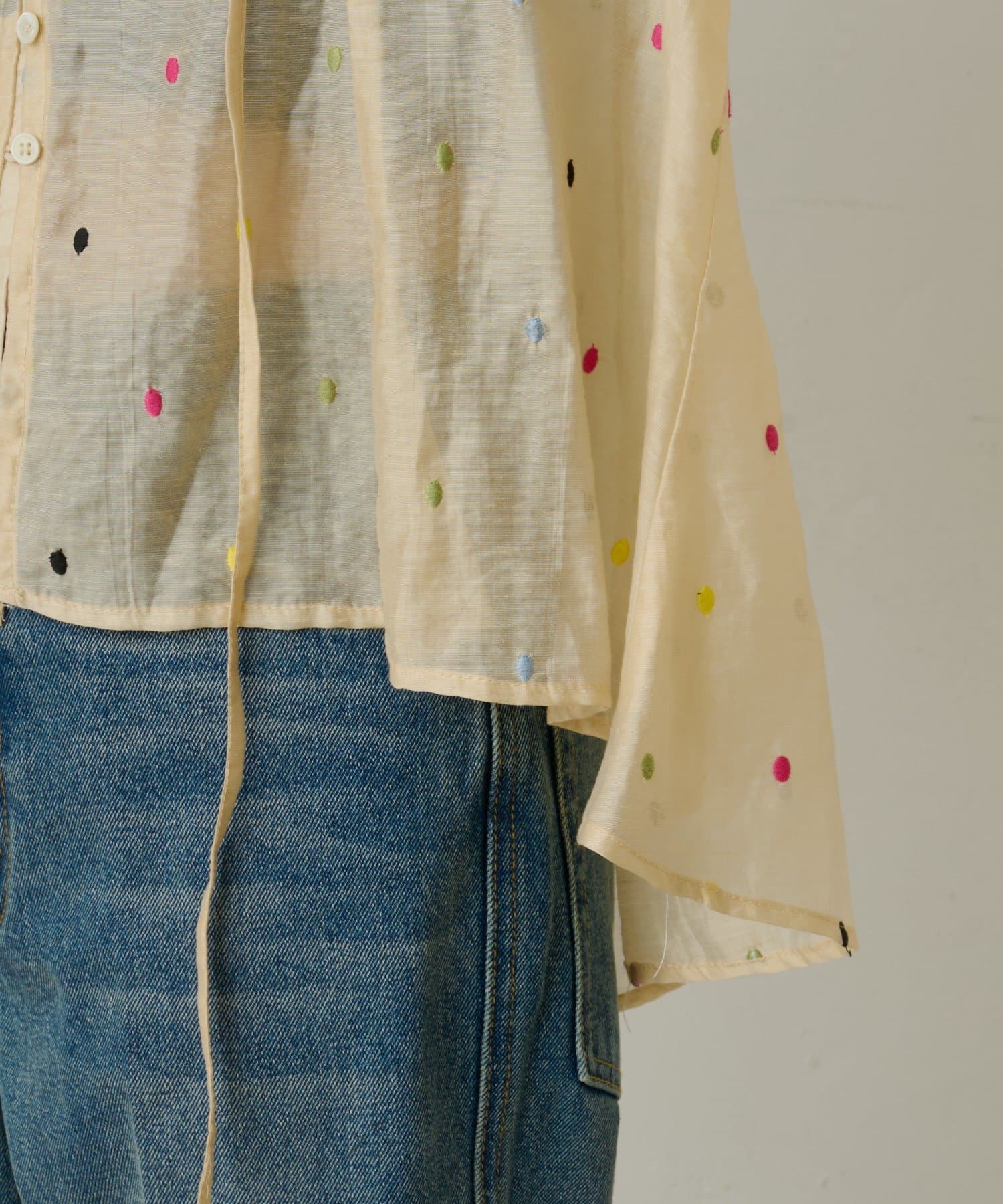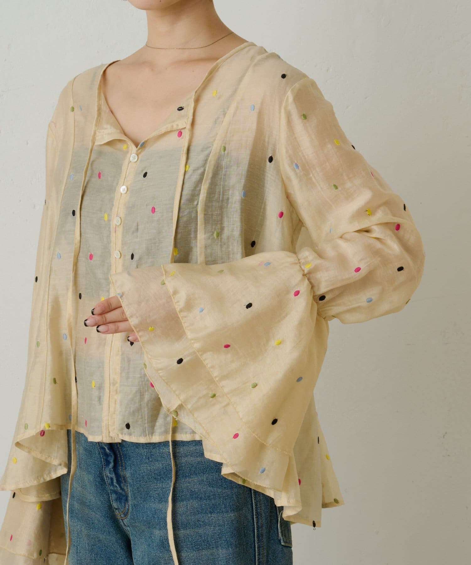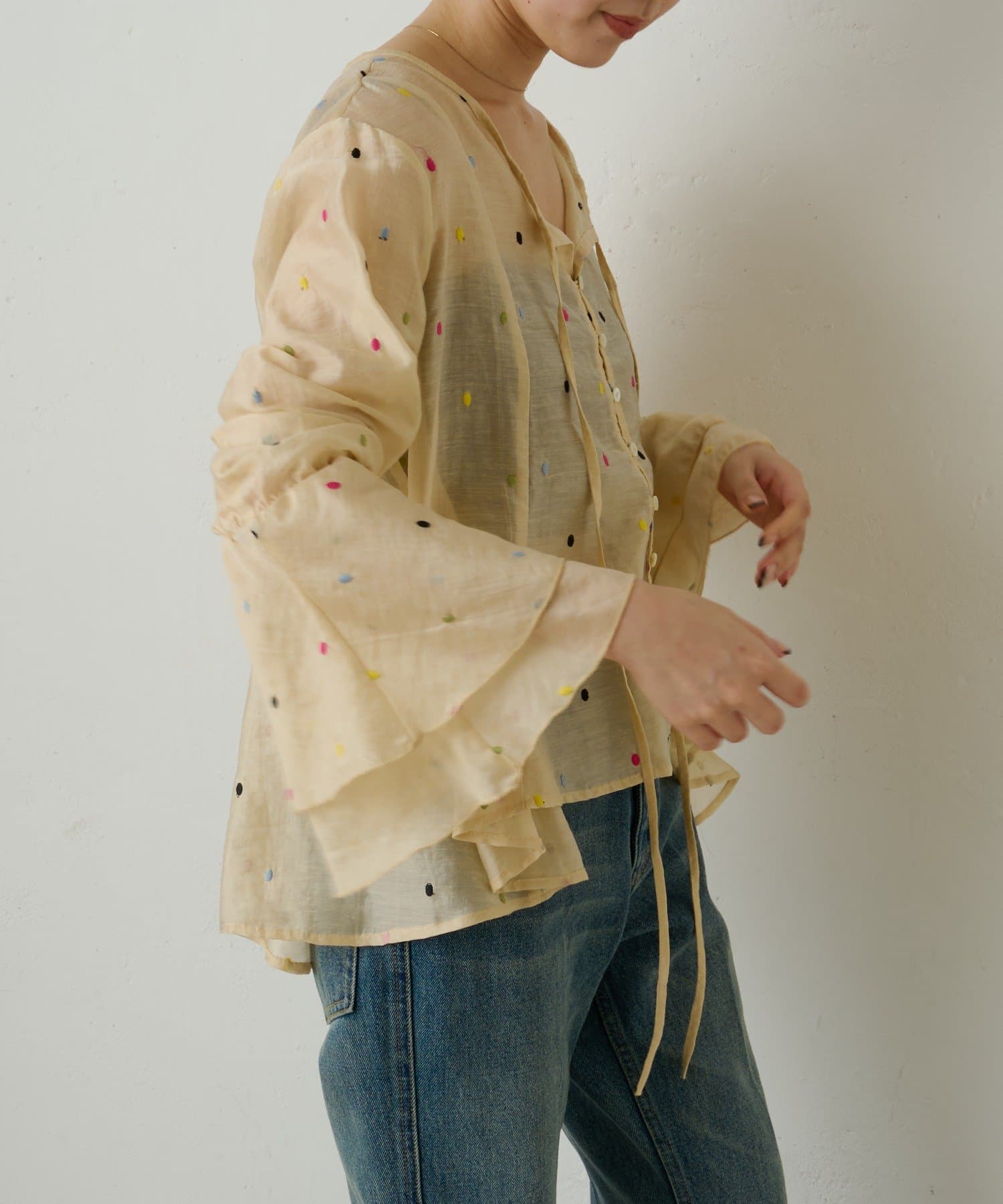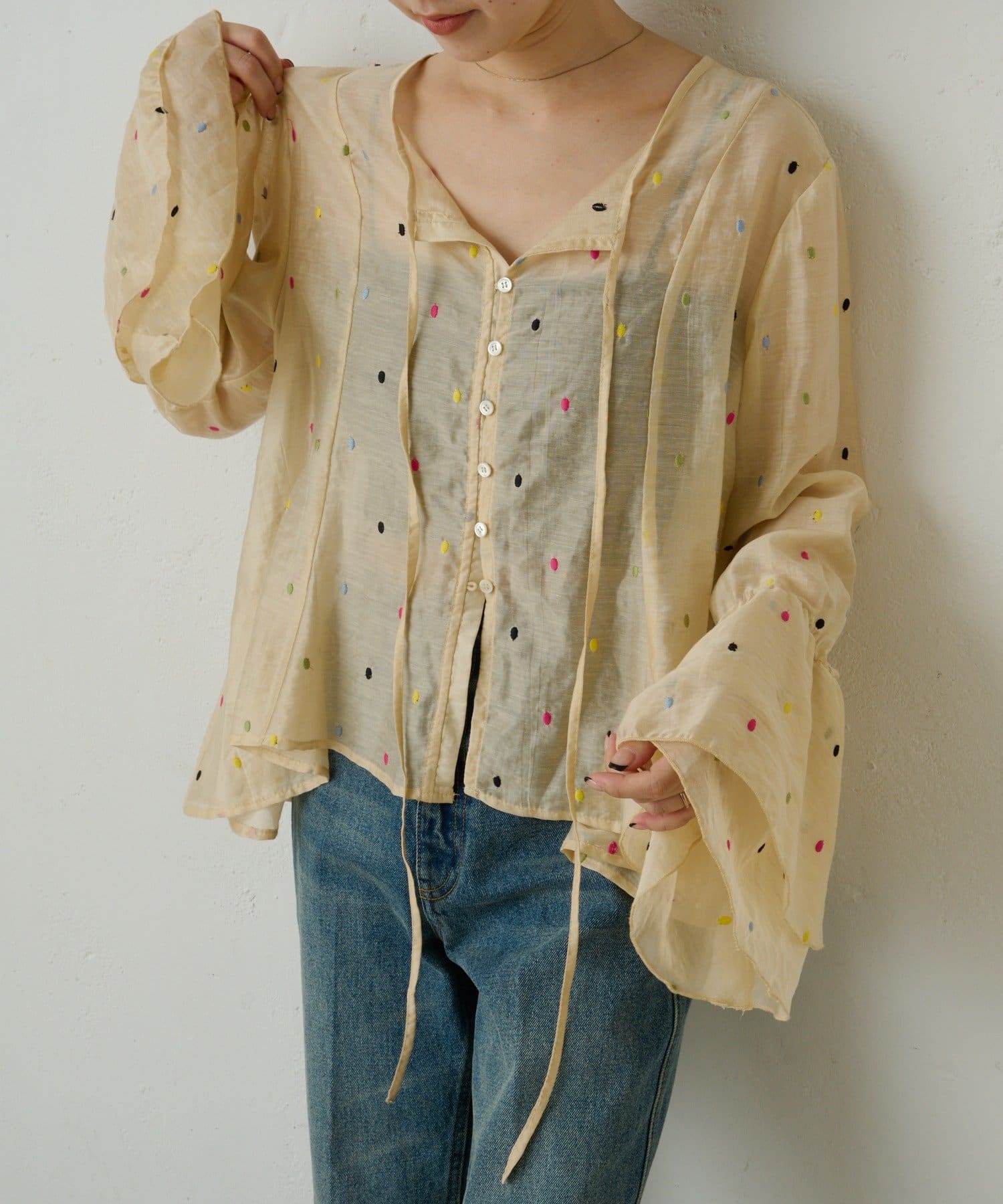 一枚でスタイリングが華やかになるマルチドットブラウス