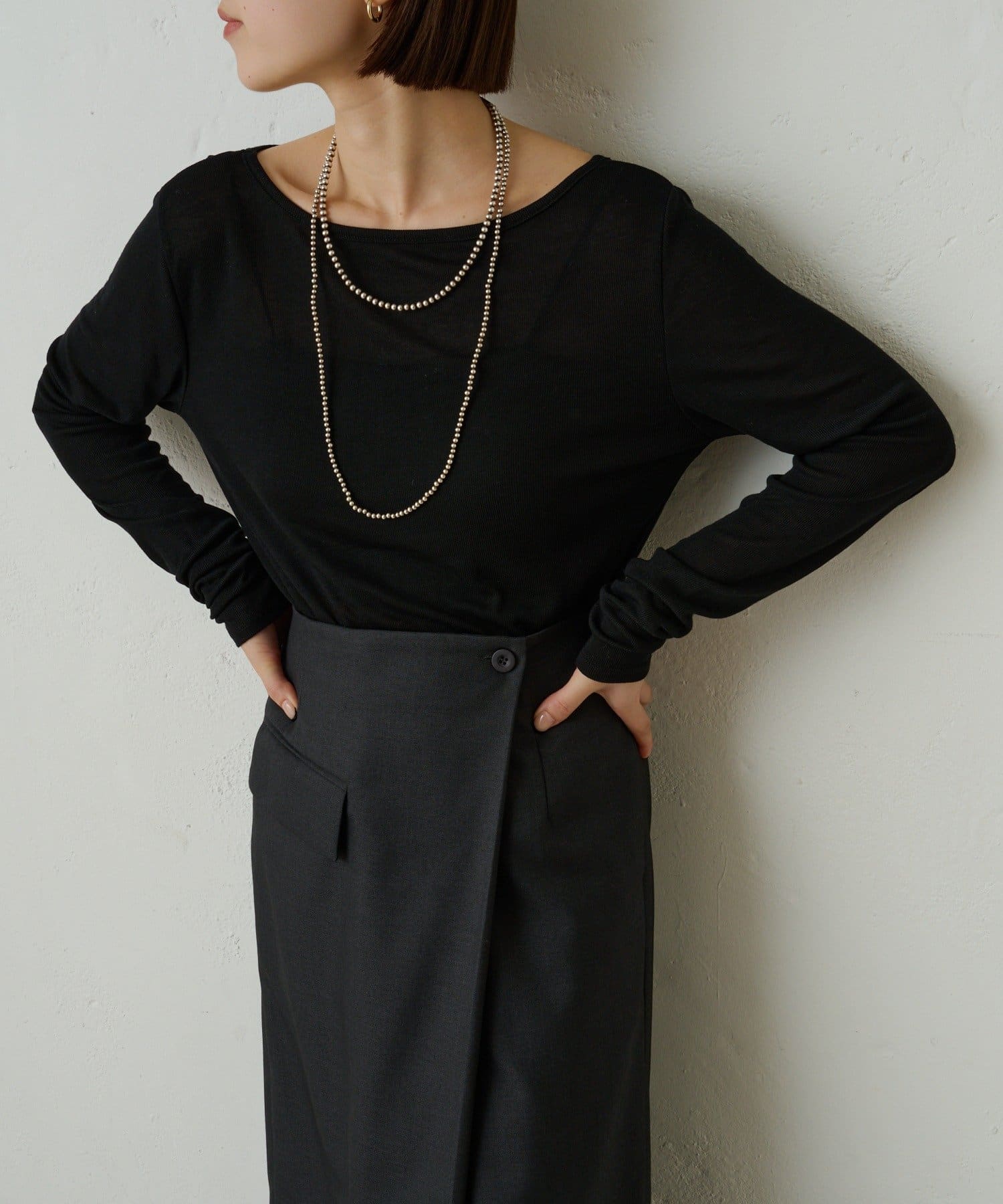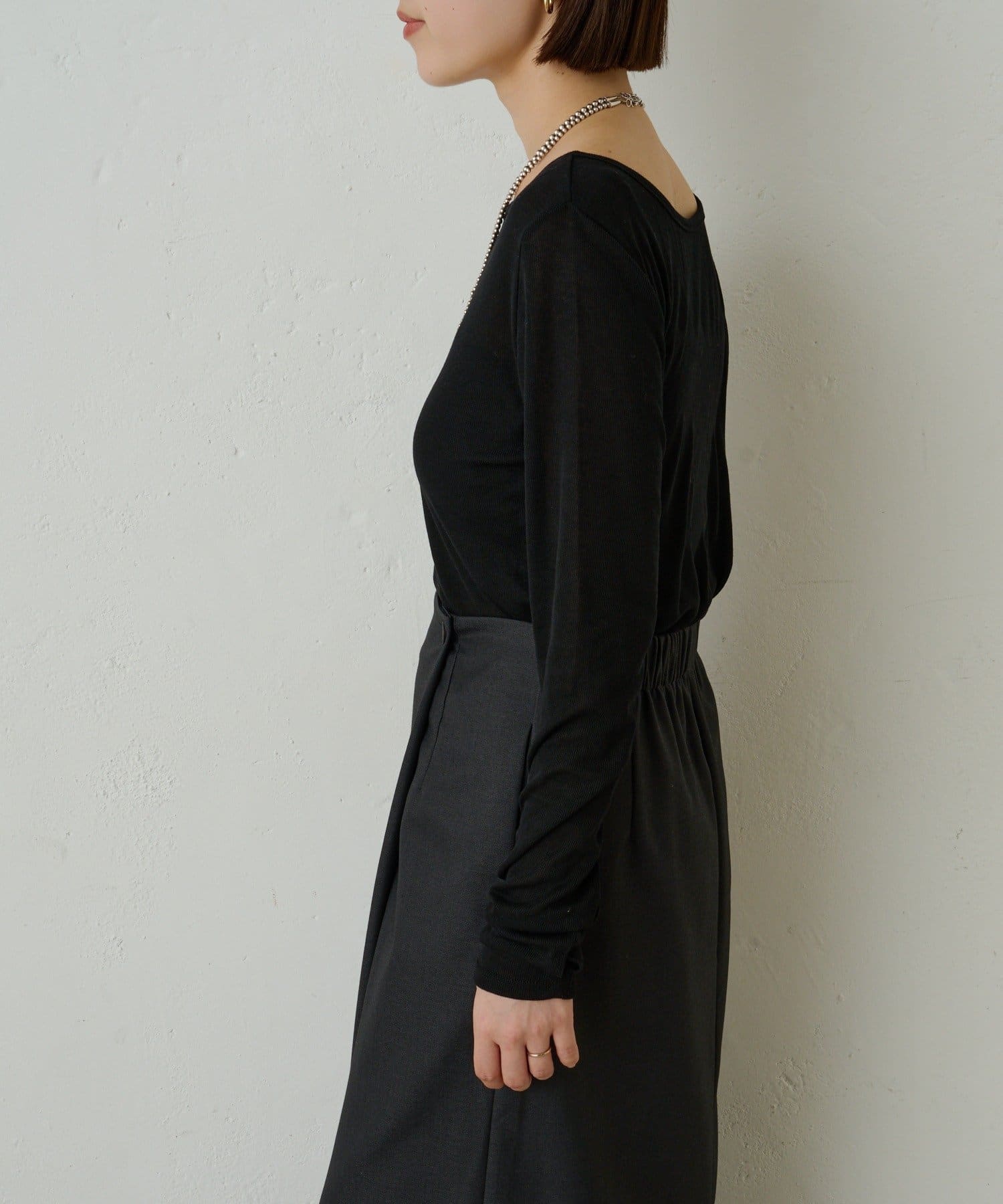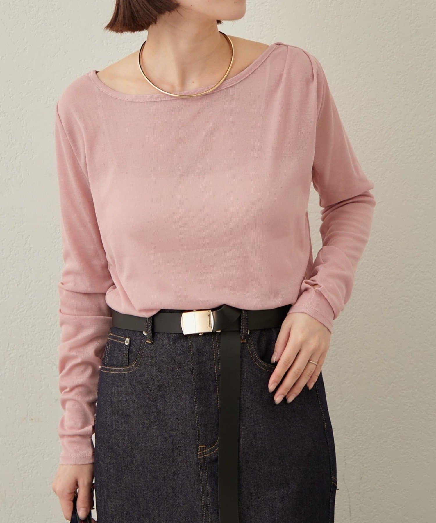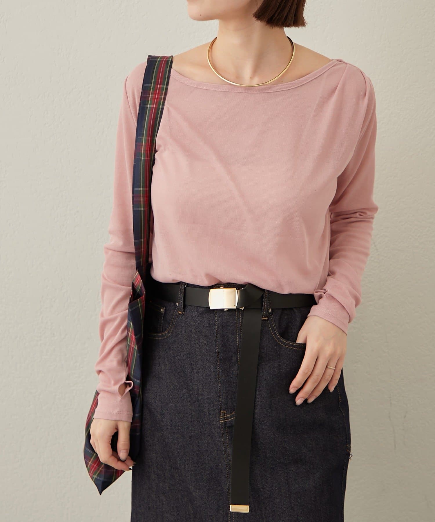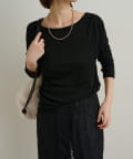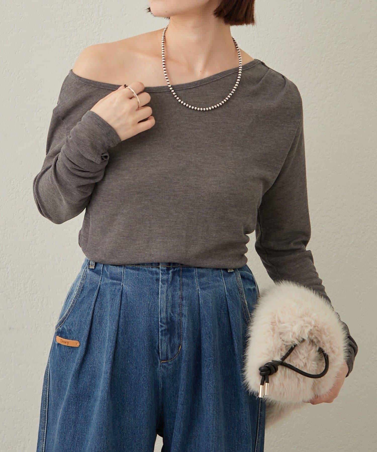 ・ほどよいネックの開きでワンショル、ボートネックなどスタイリング次第で変えていただけます。