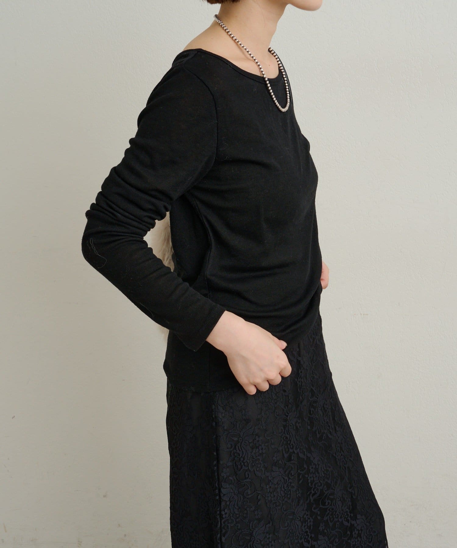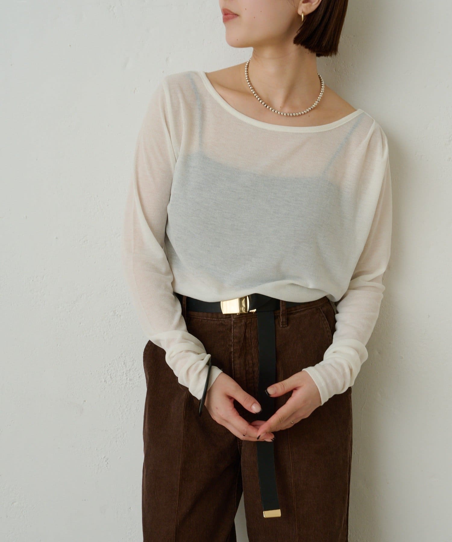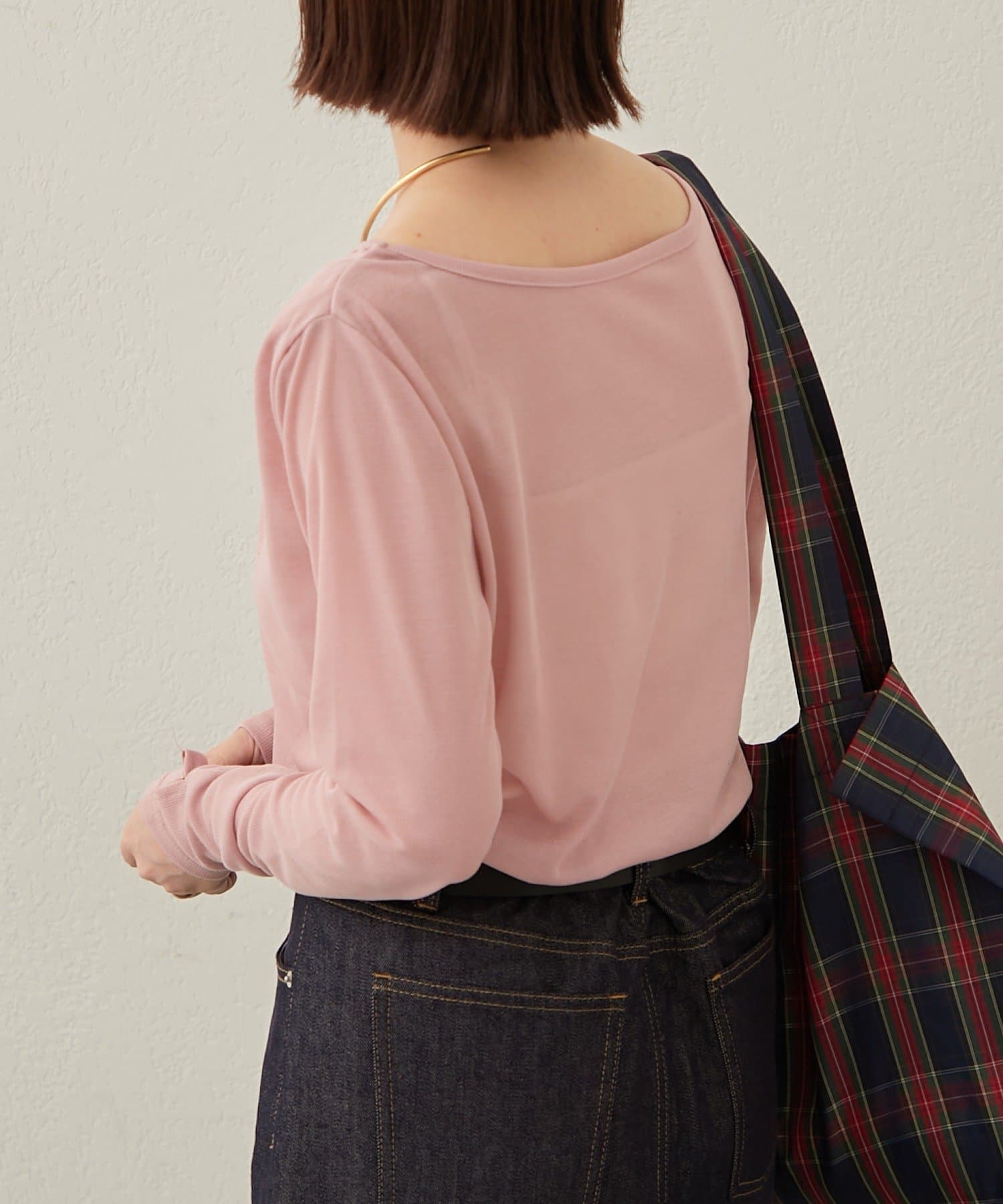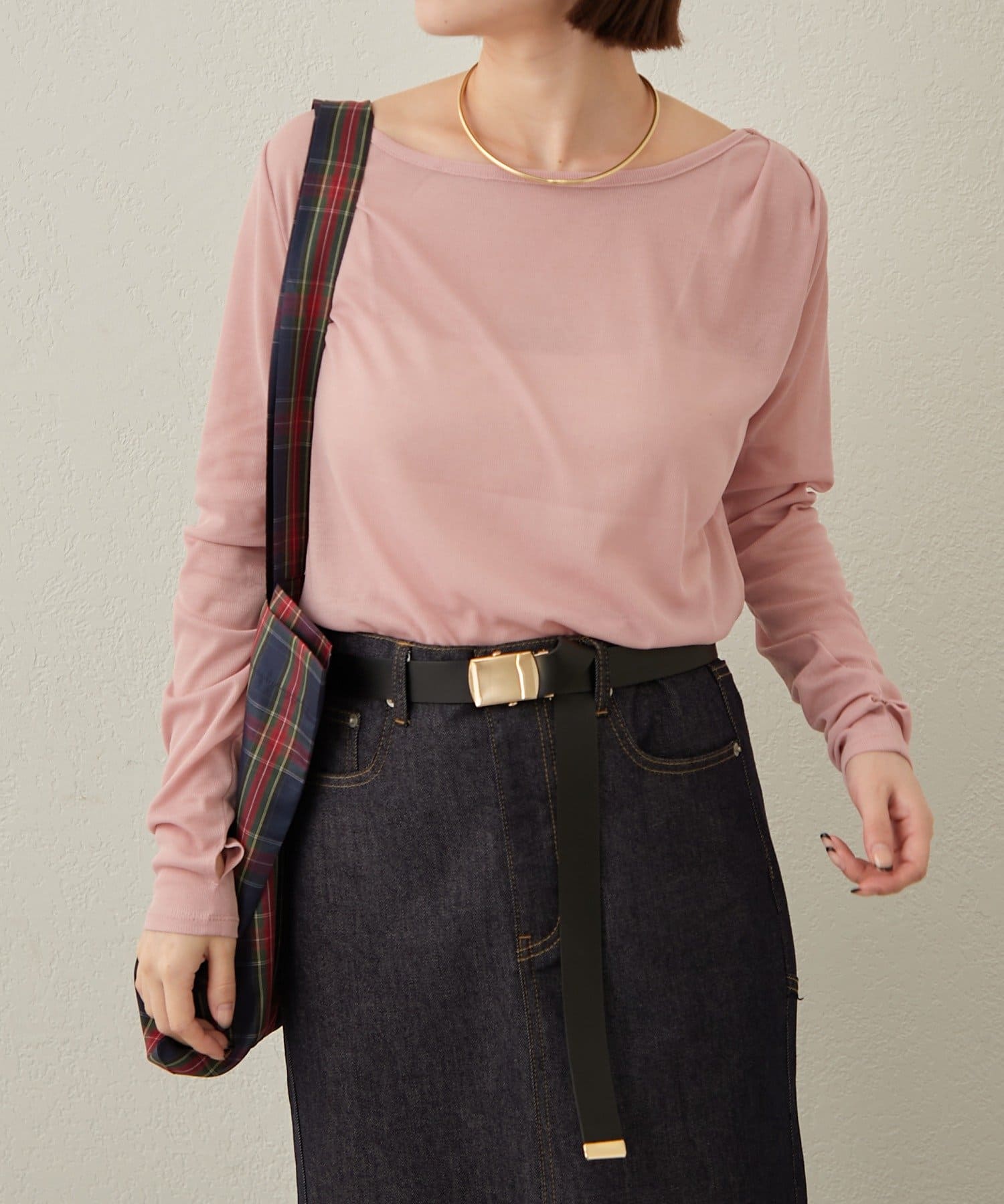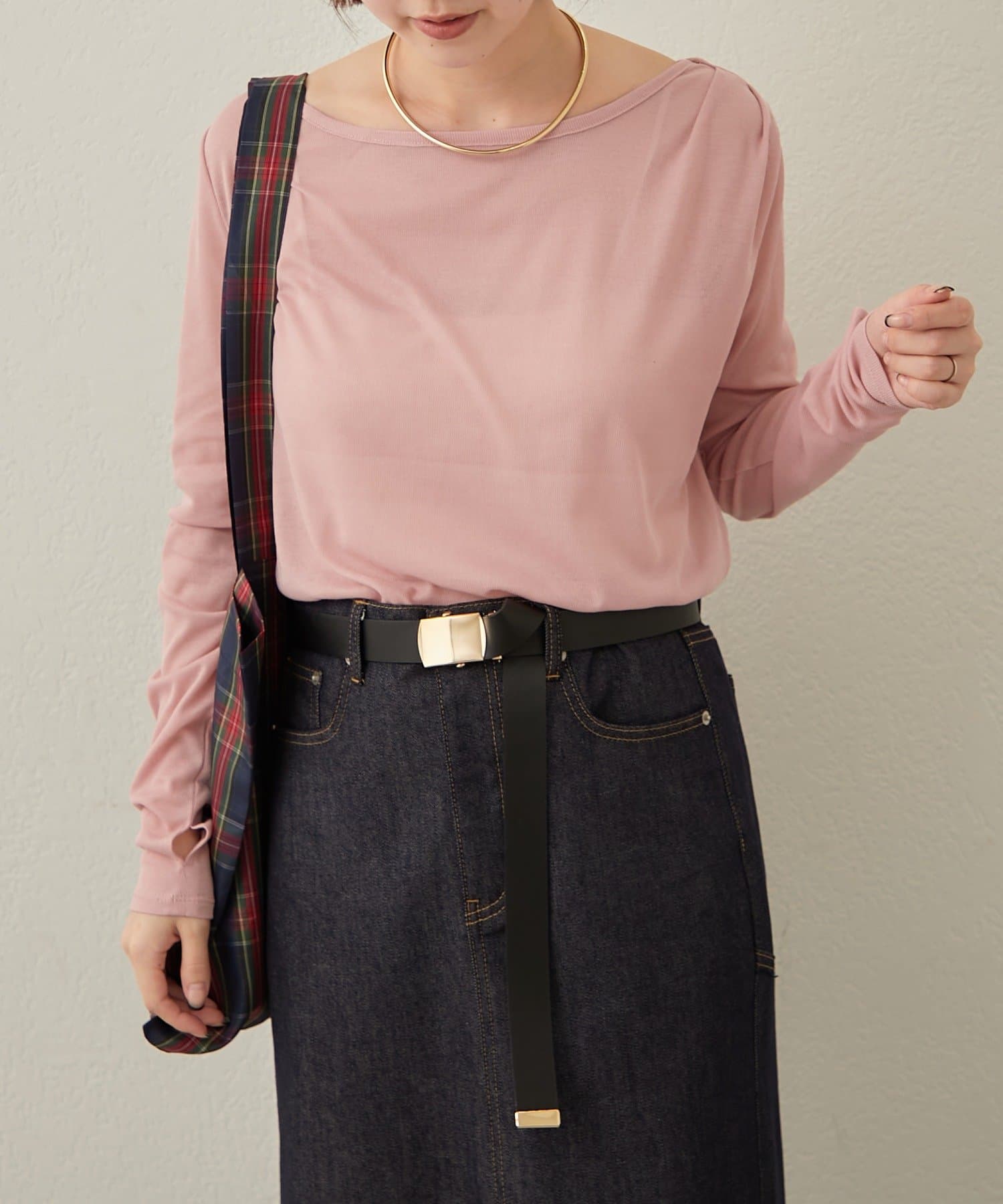・ほどよいネックの開きでワンショル、ボートネックなどスタイリング次第で変えていただけます。