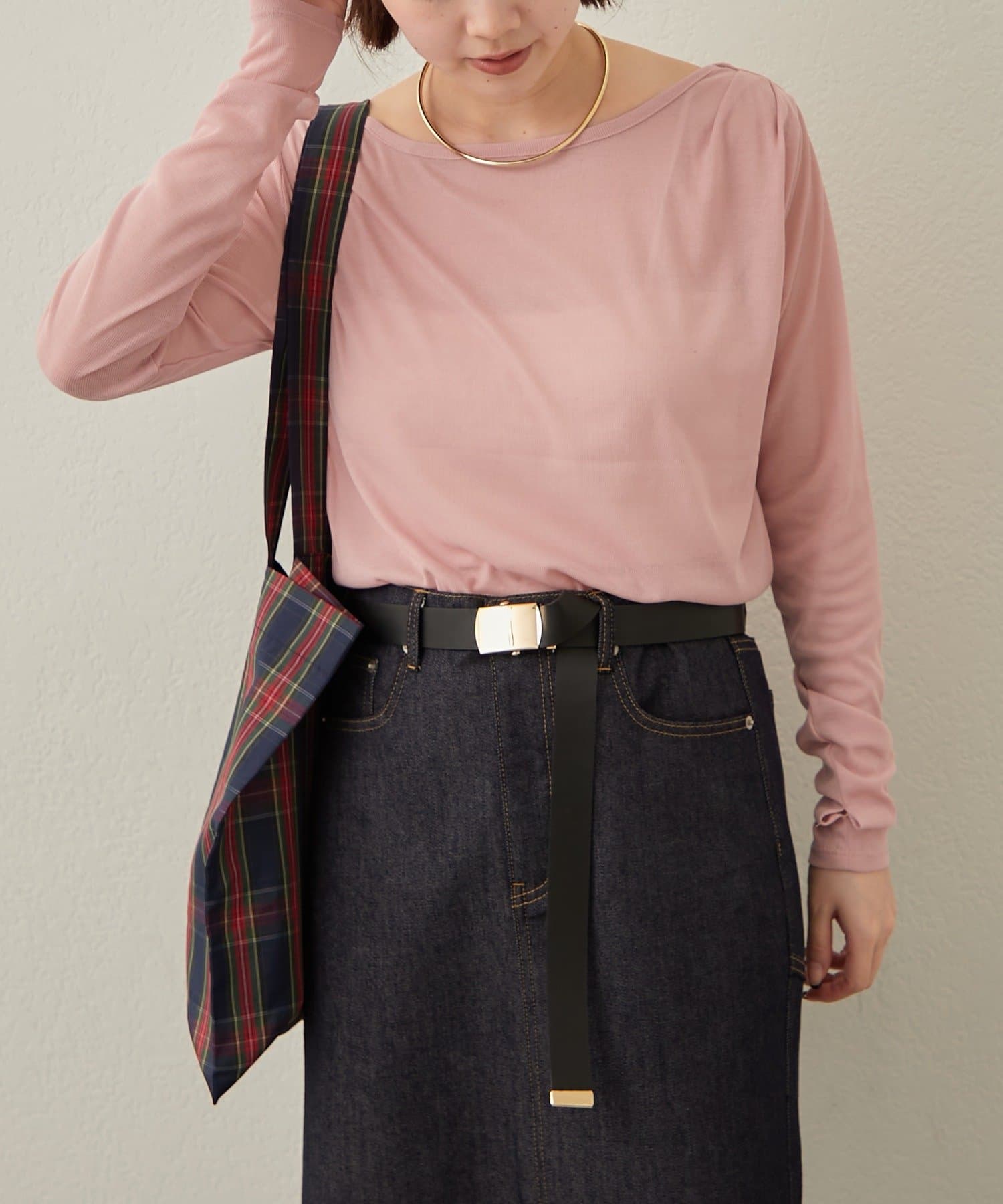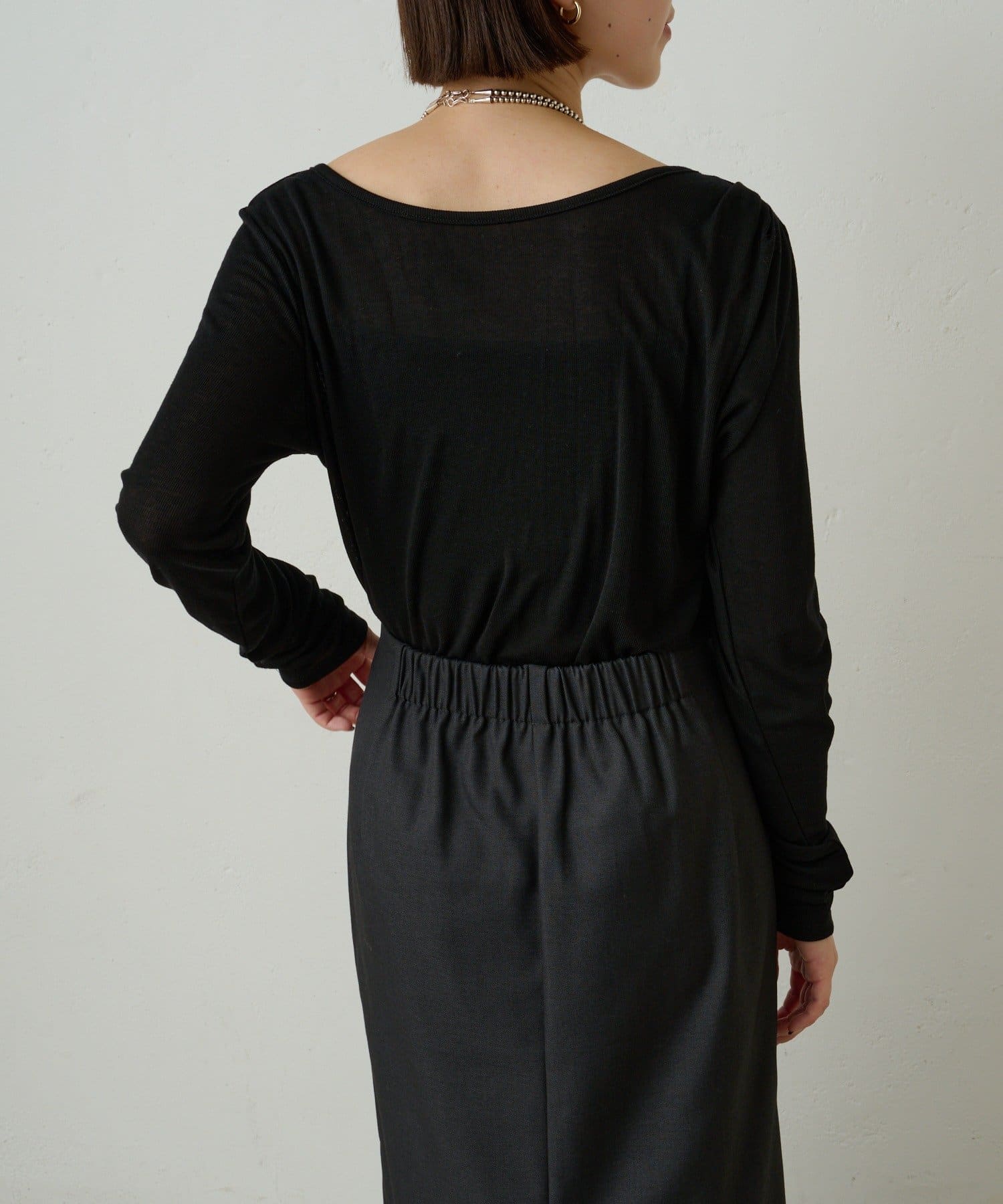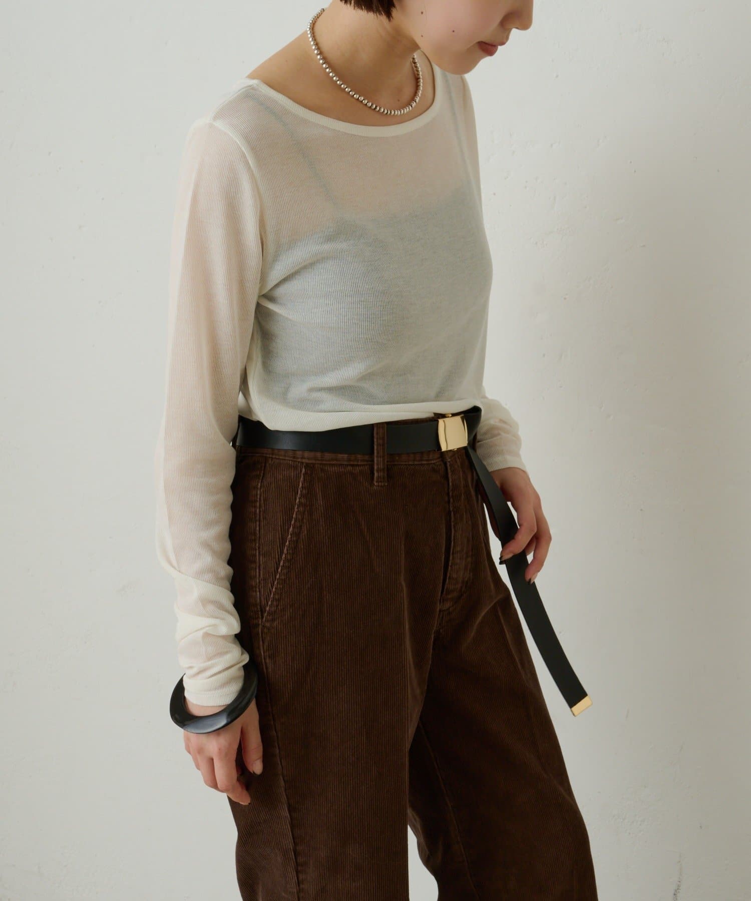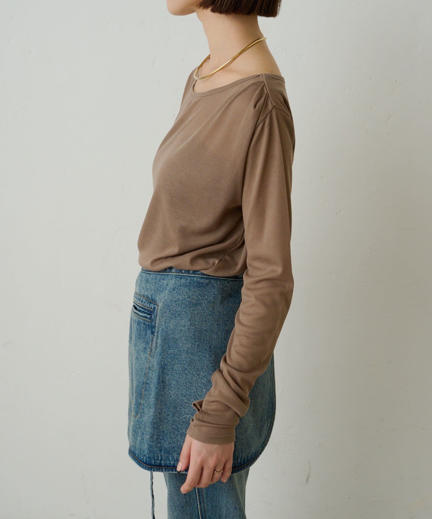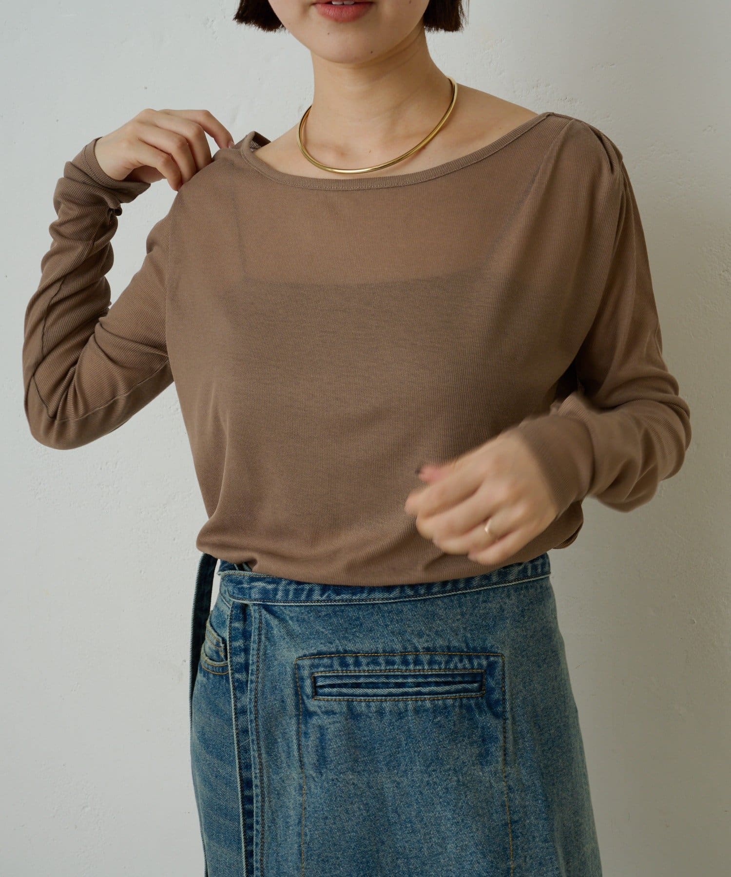 ・ほどよいネックの開きでワンショル、ボートネックなどスタイリング次第で変えていただけます。