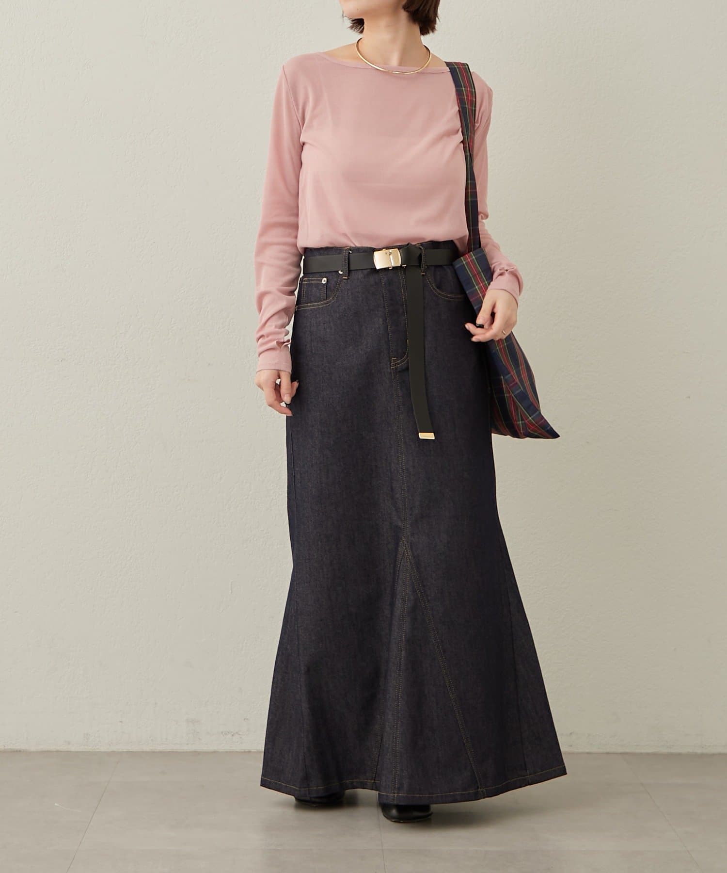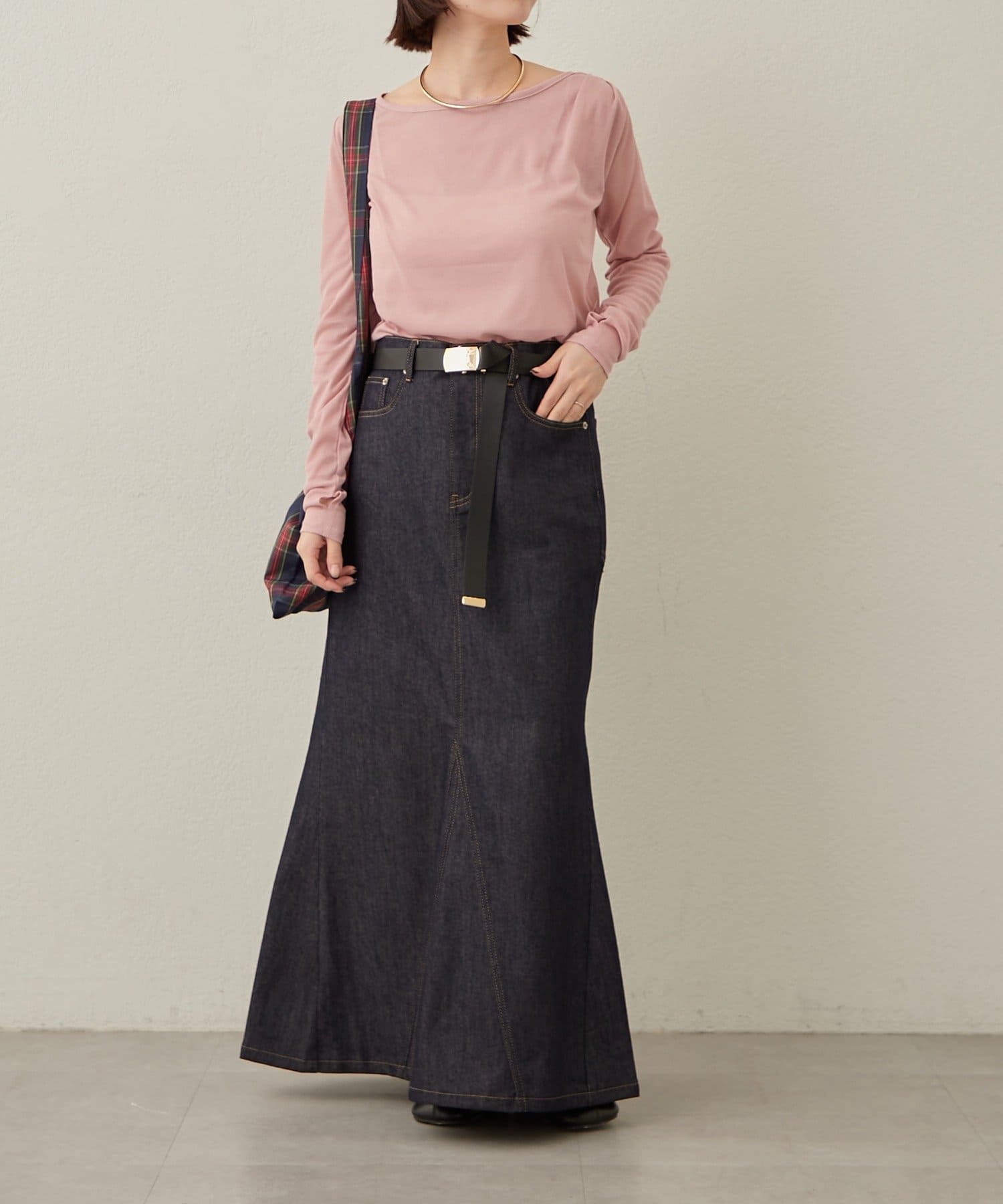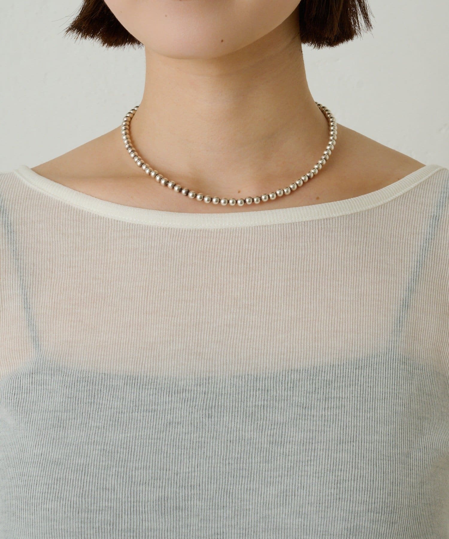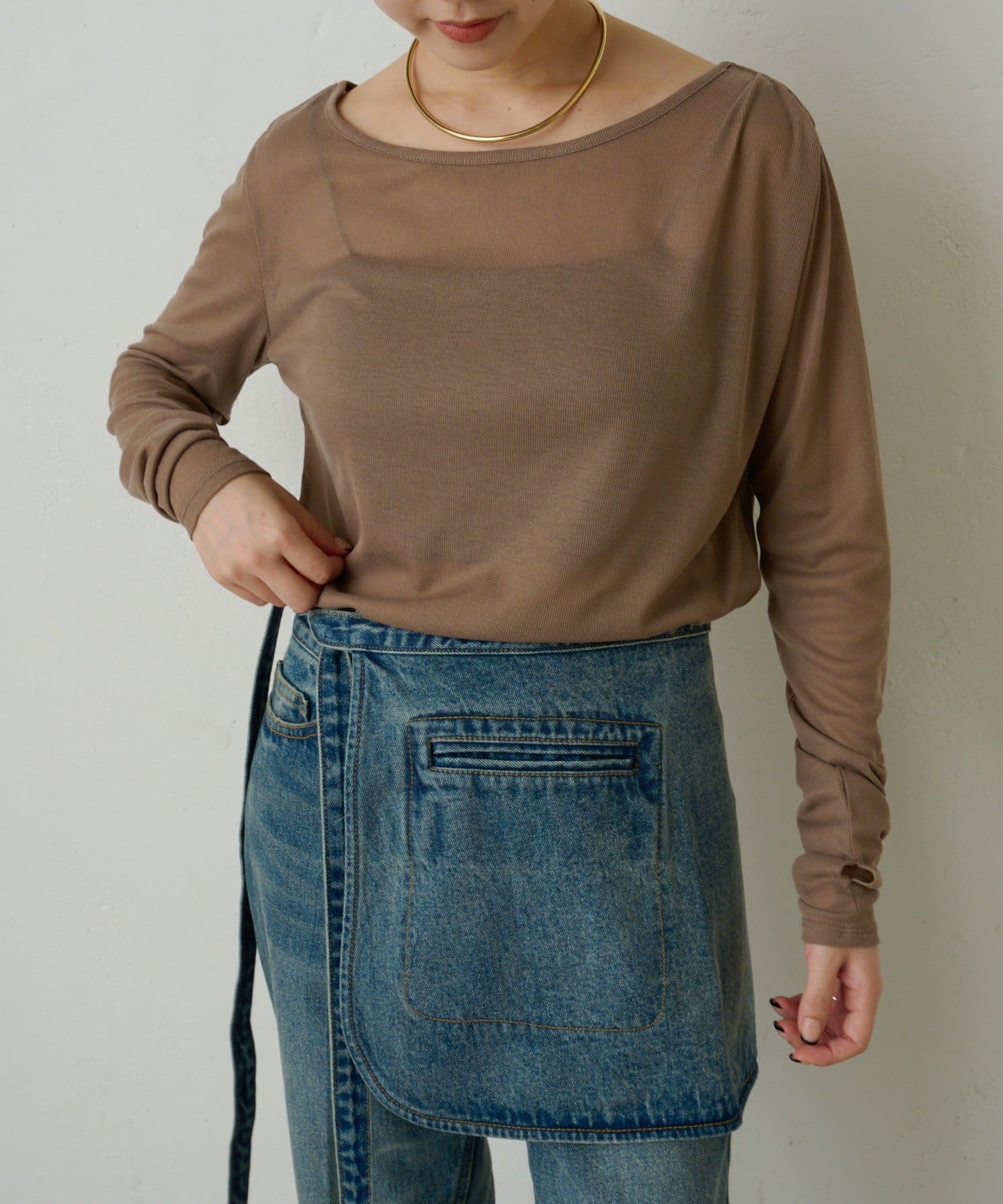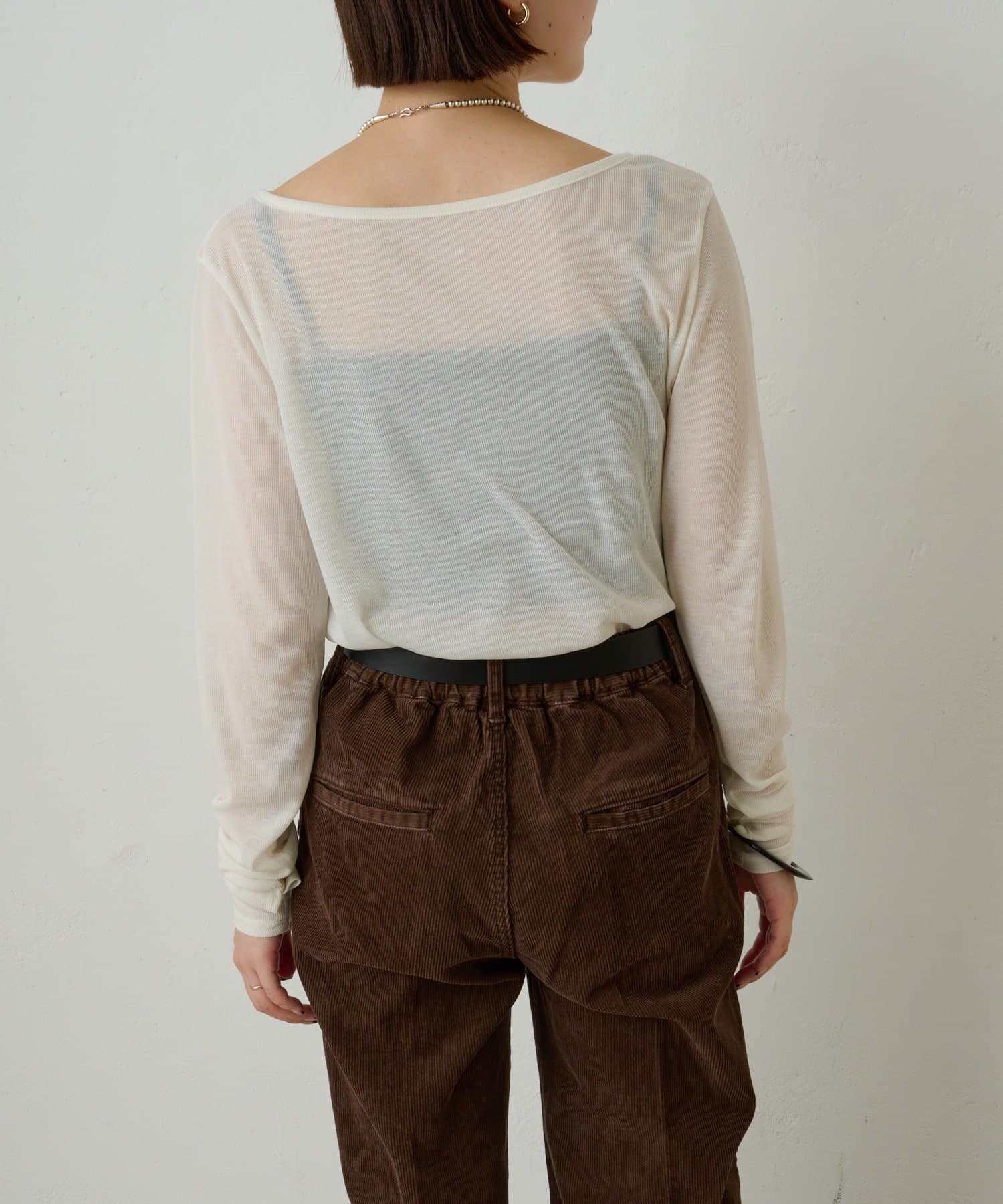 ・ほどよいネックの開きでワンショル、ボートネックなどスタイリング次第で変えていただけます。