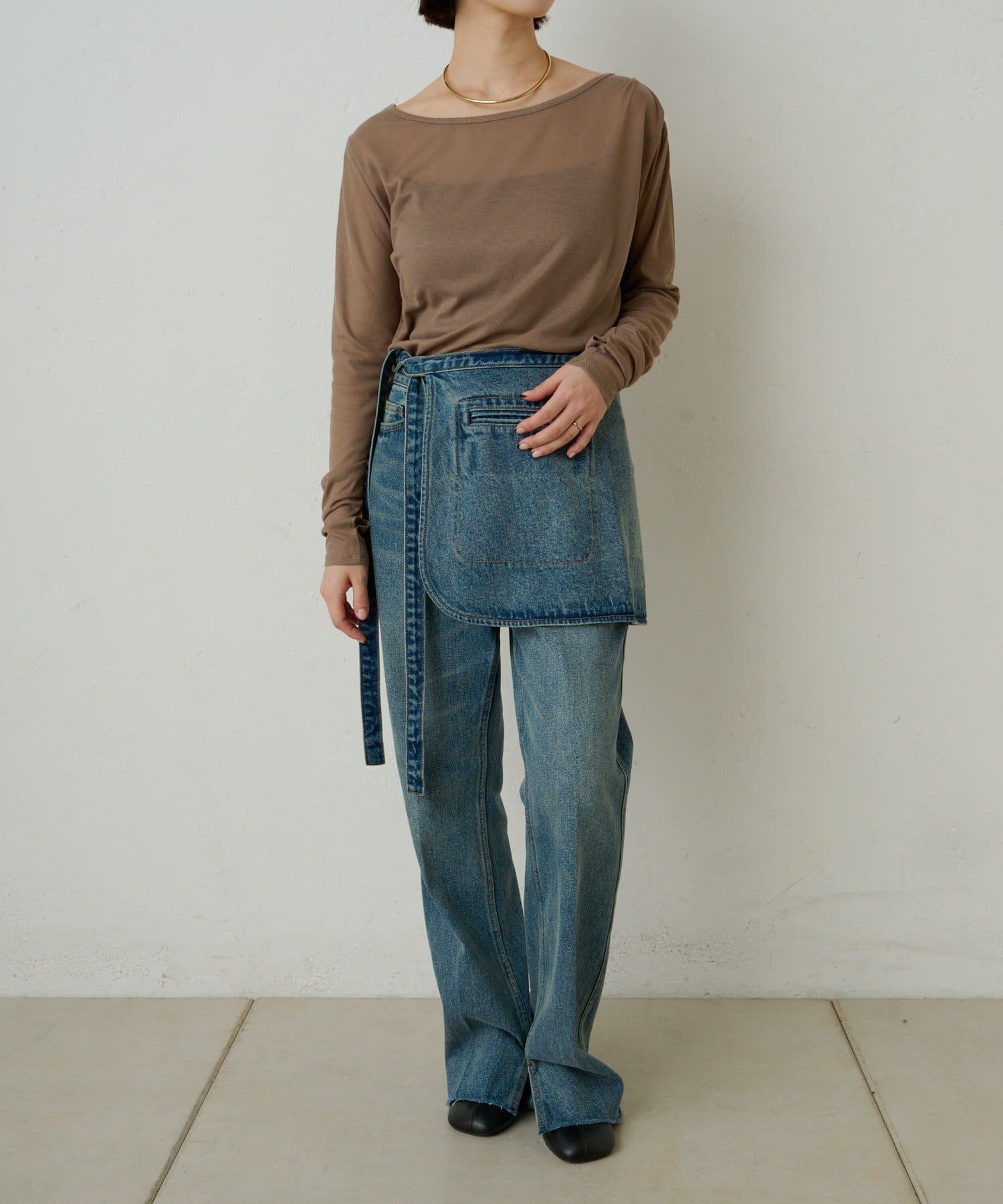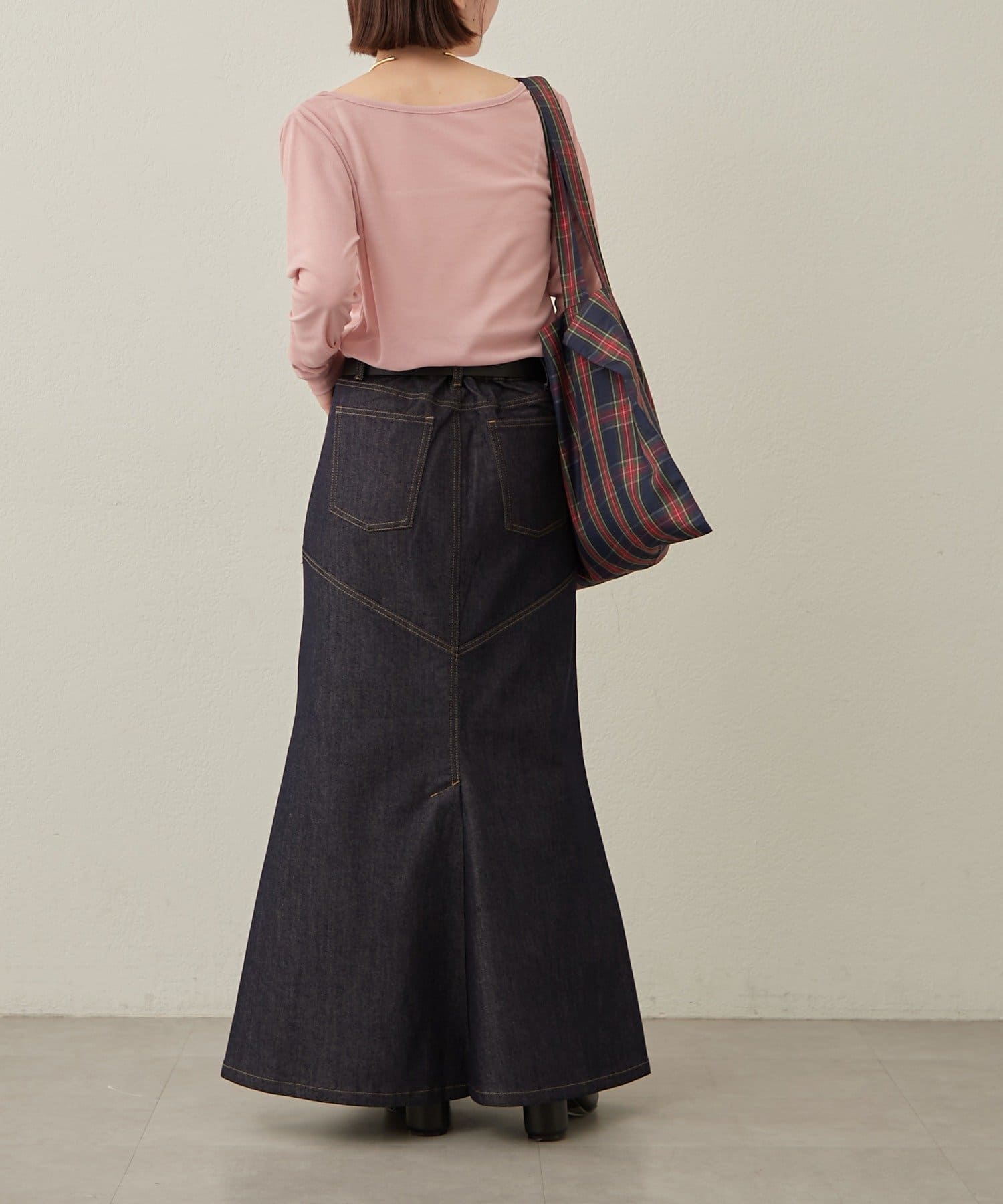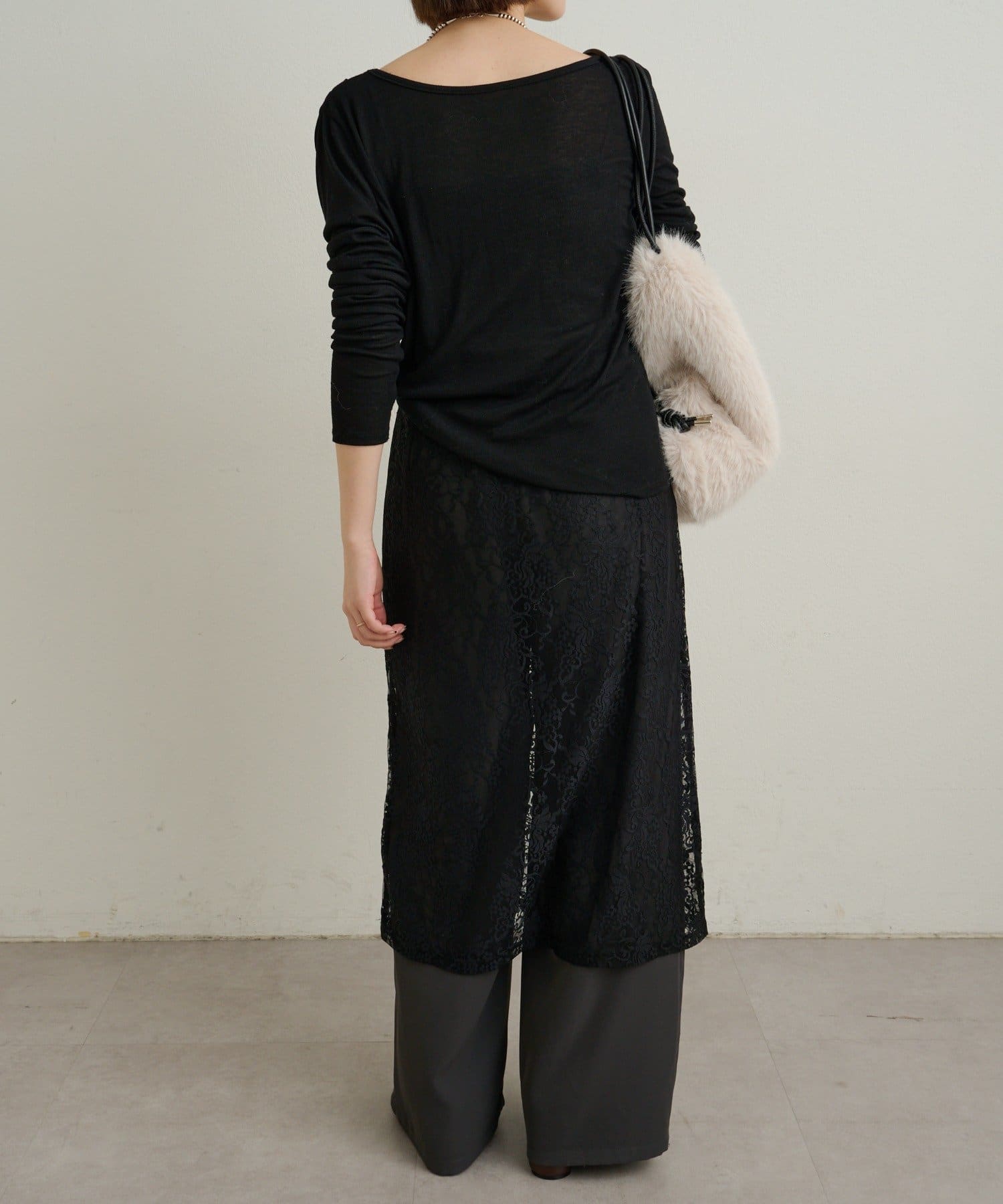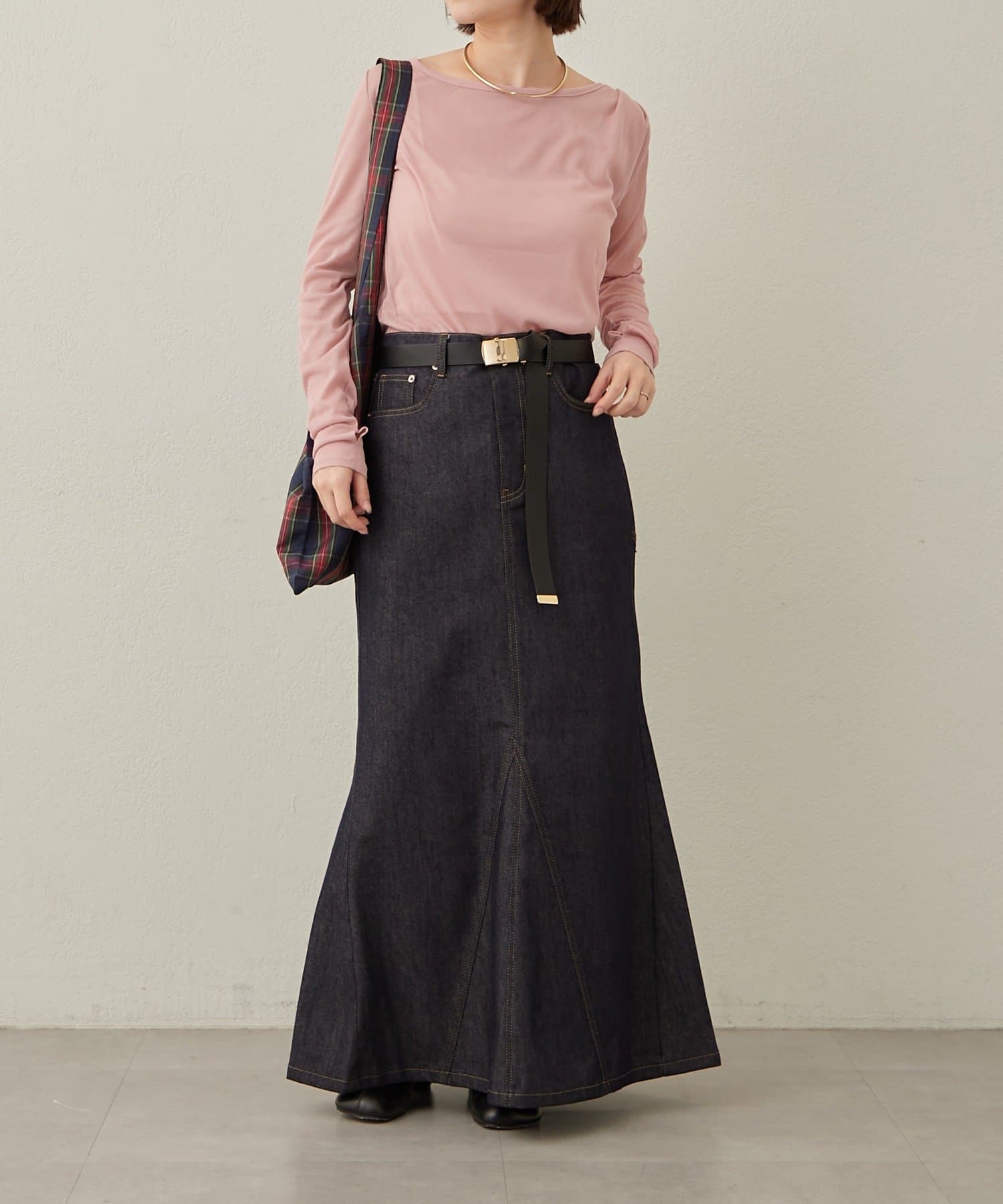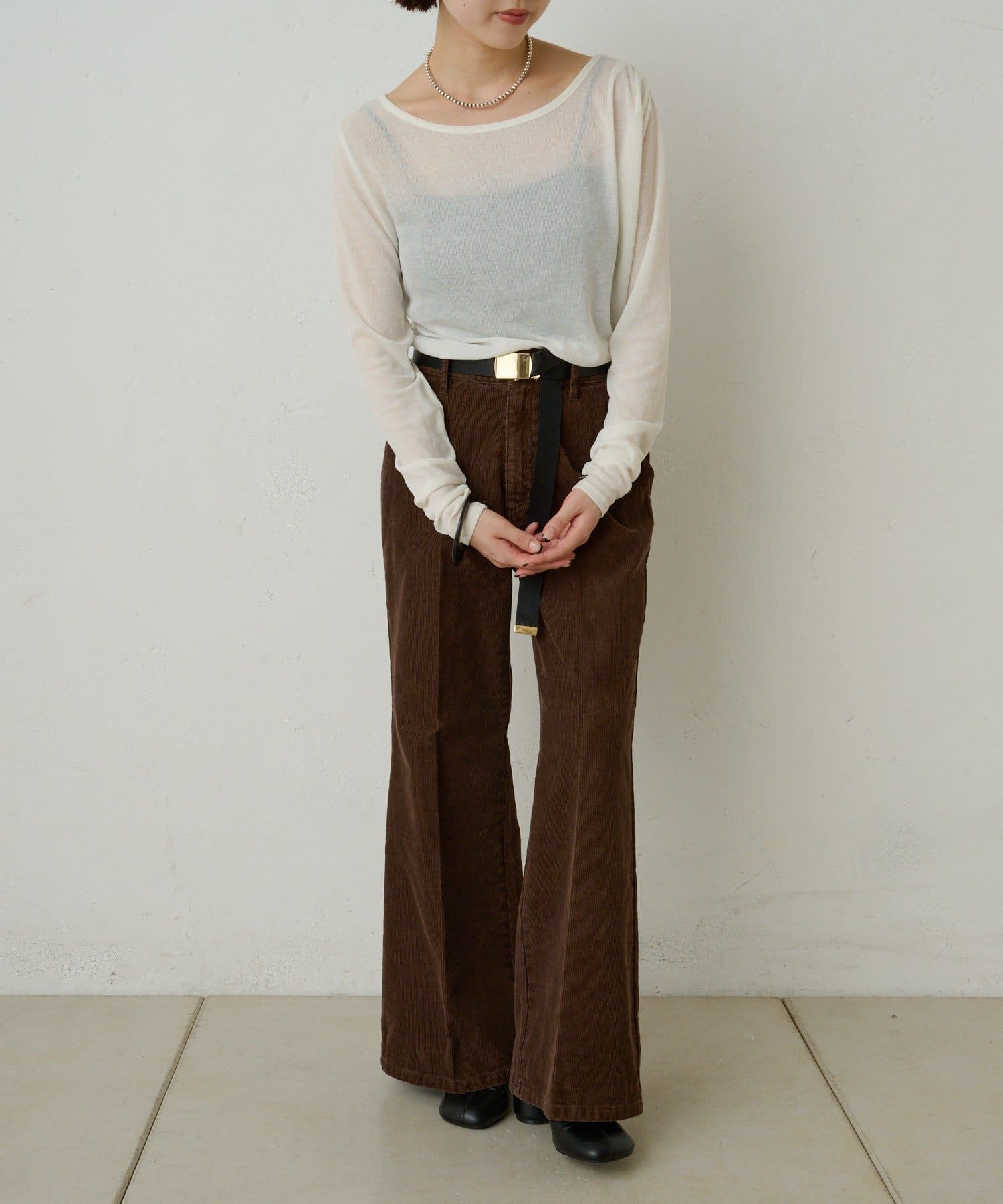 ・ほどよいネックの開きでワンショル、ボートネックなどスタイリング次第で変えていただけます。