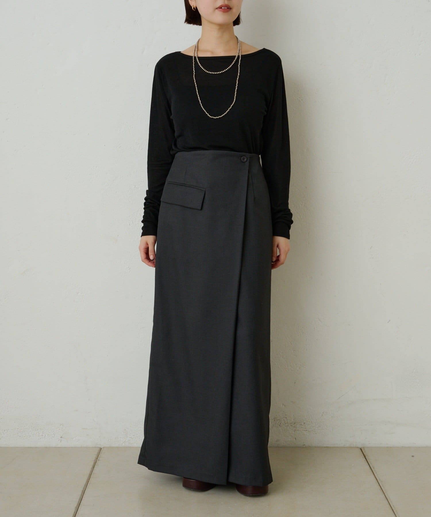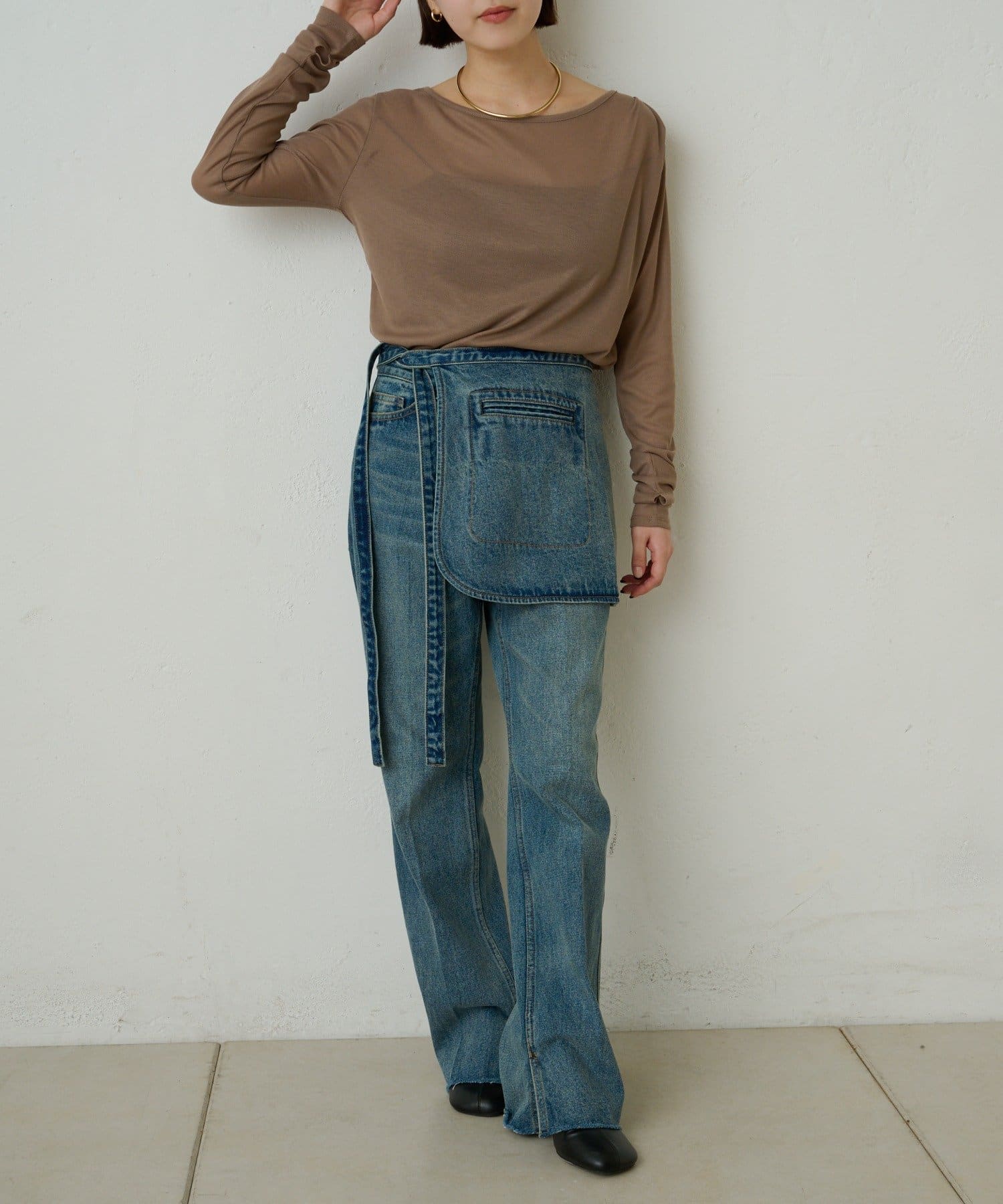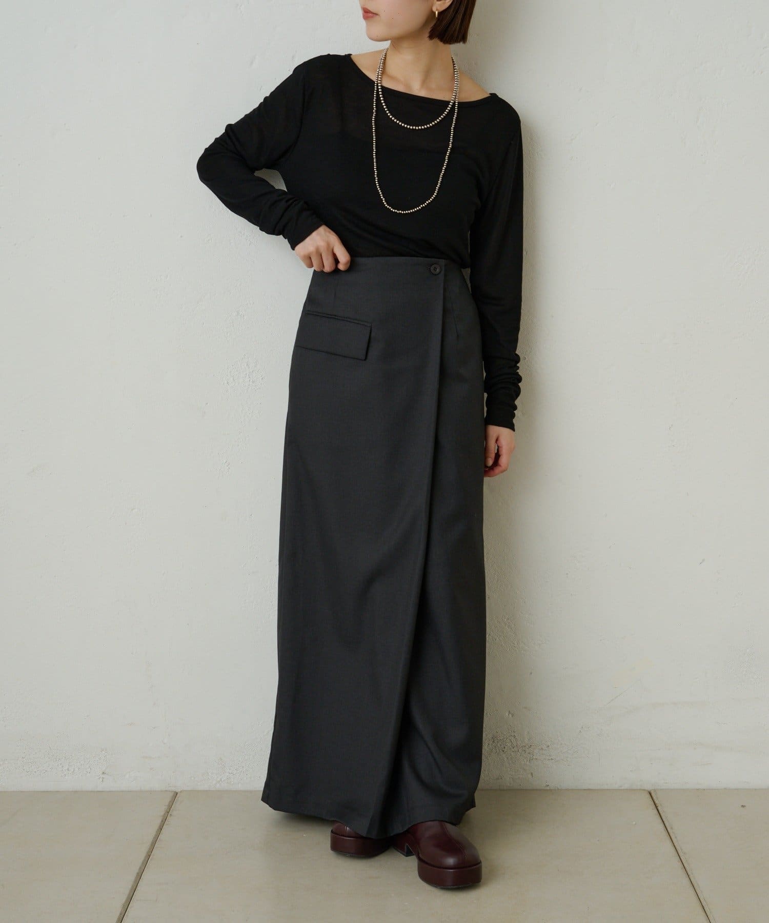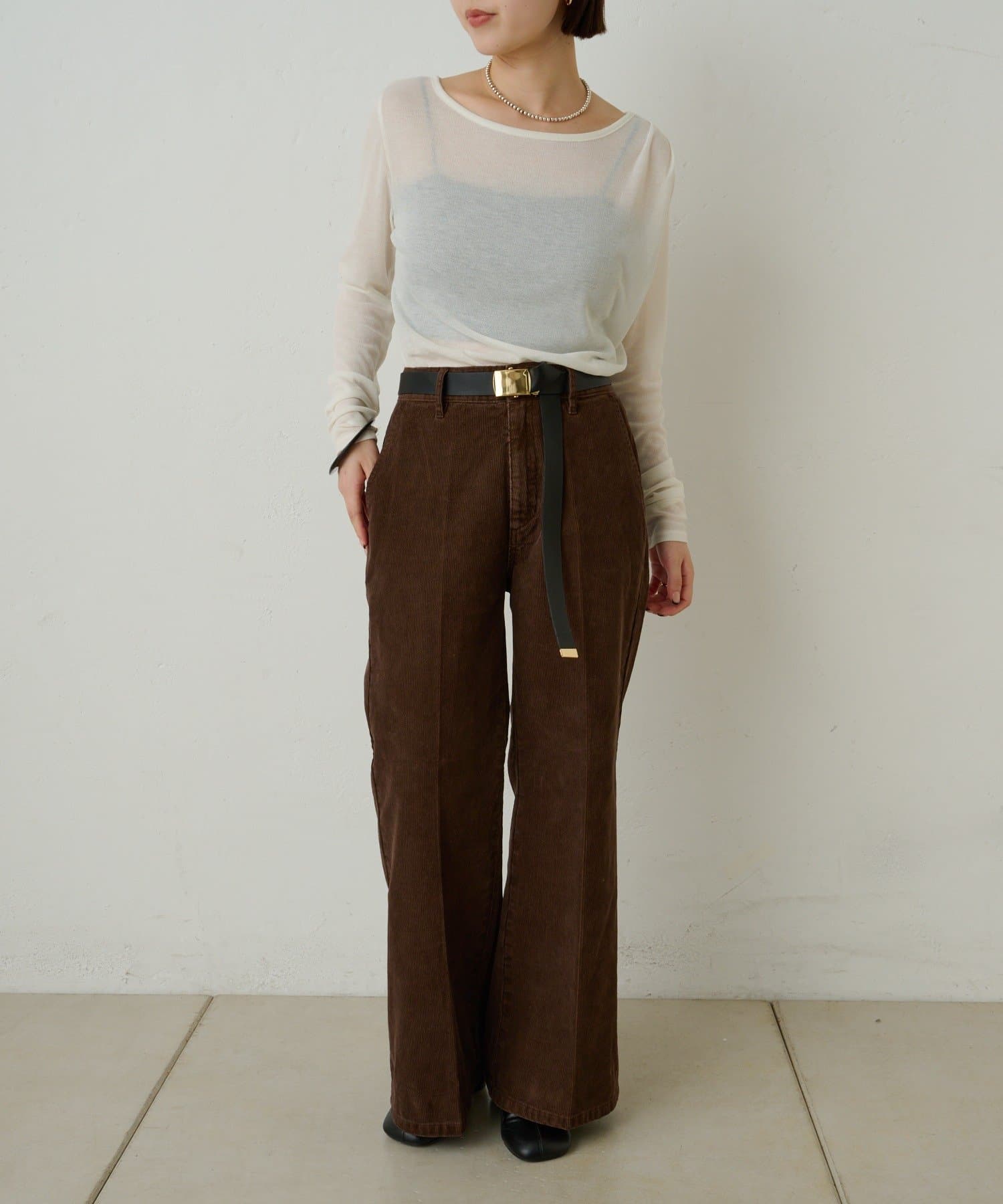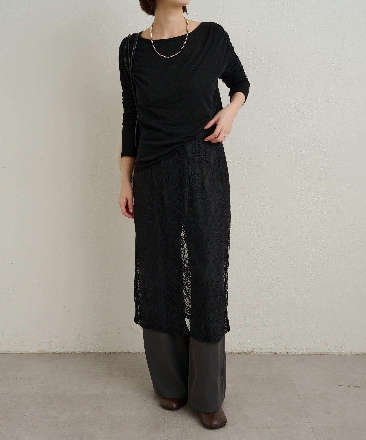 ・ほどよいネックの開きでワンショル、ボートネックなどスタイリング次第で変えていただけます。