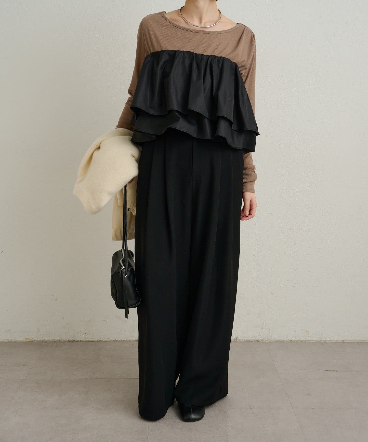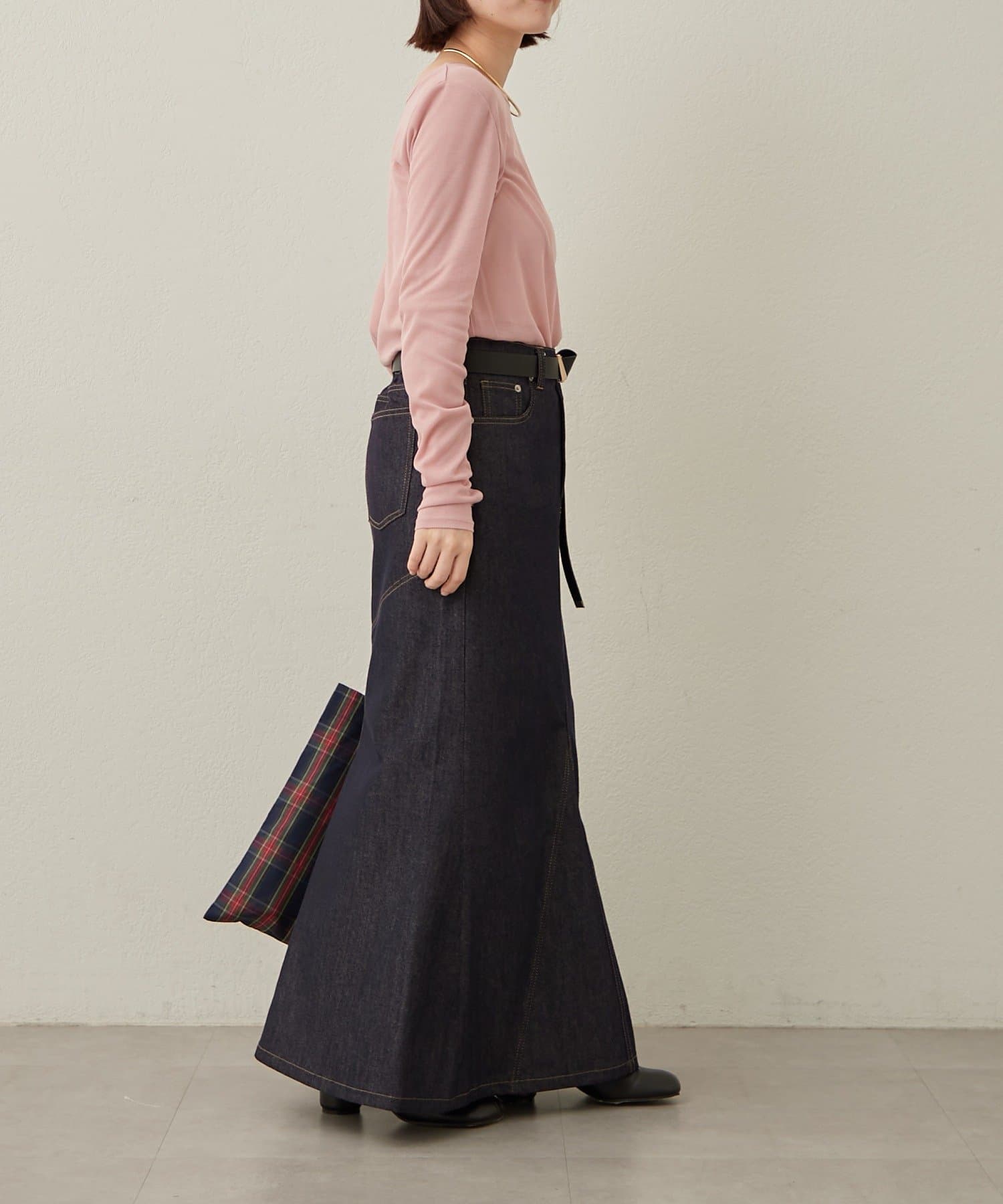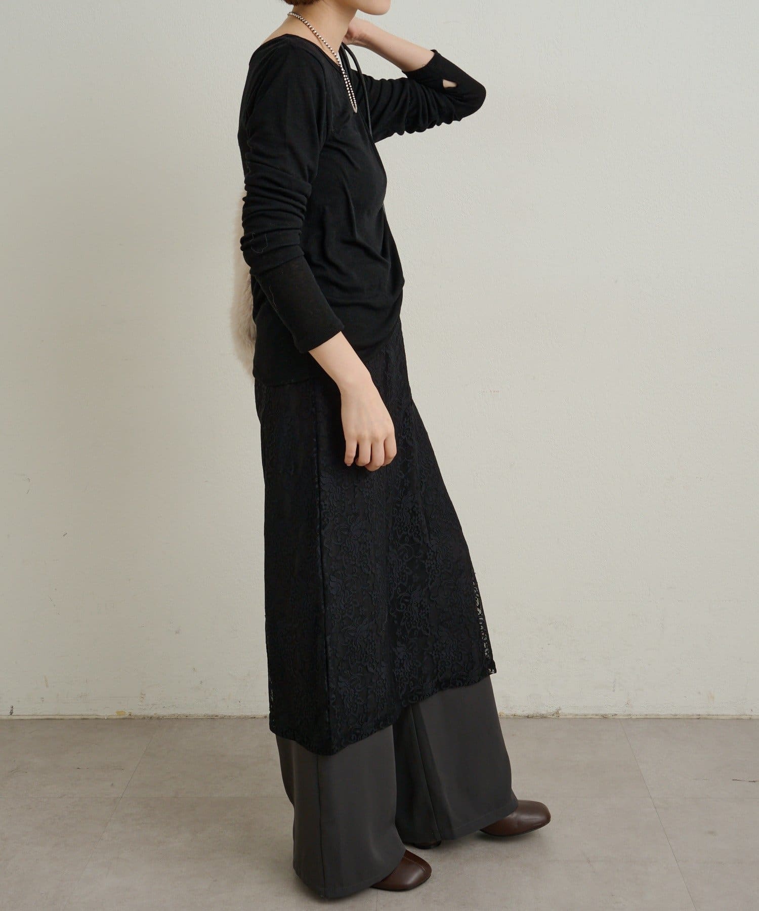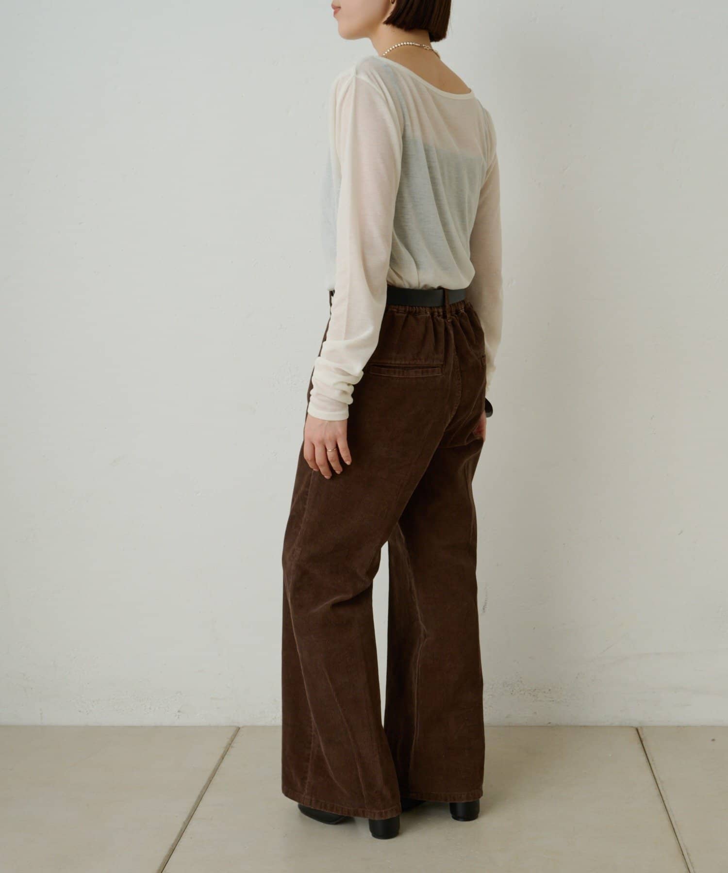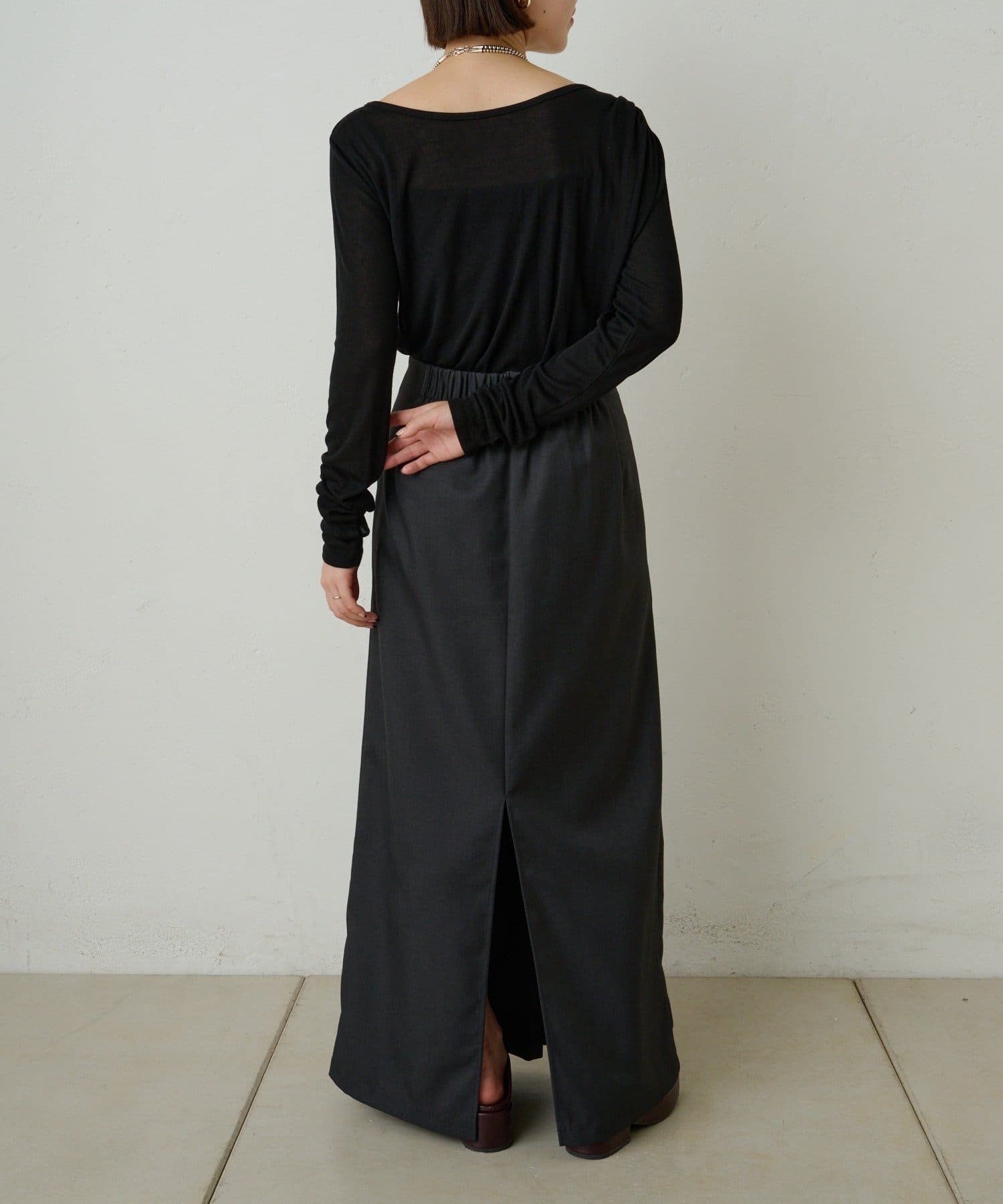 ・ほどよいネックの開きでワンショル、ボートネックなどスタイリング次第で変えていただけます。