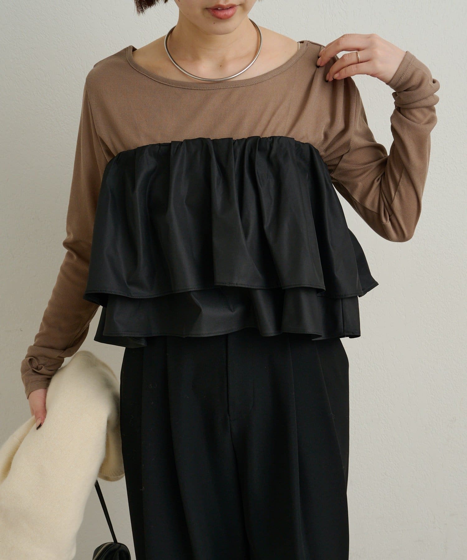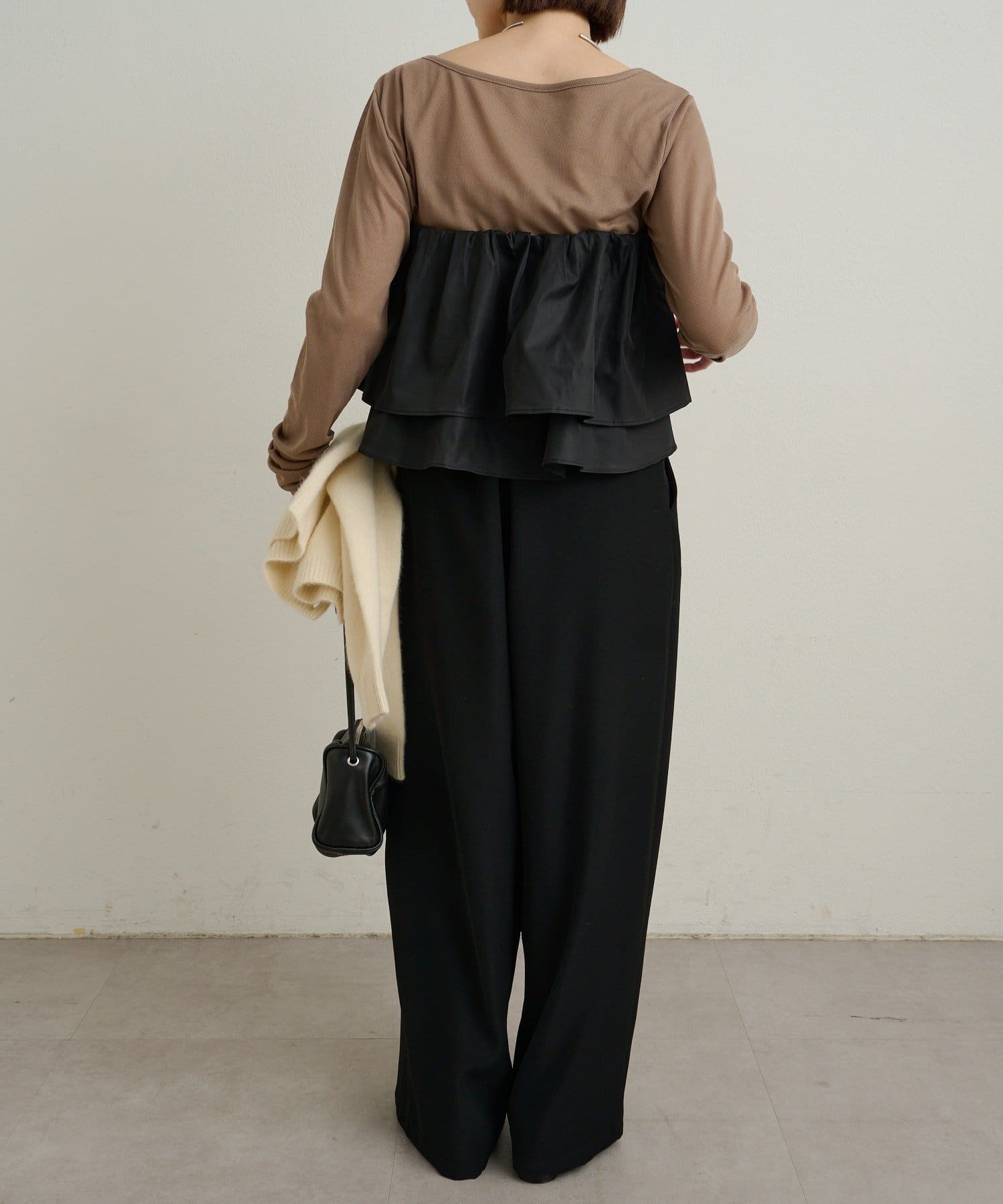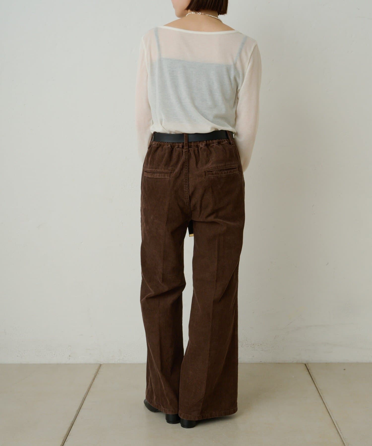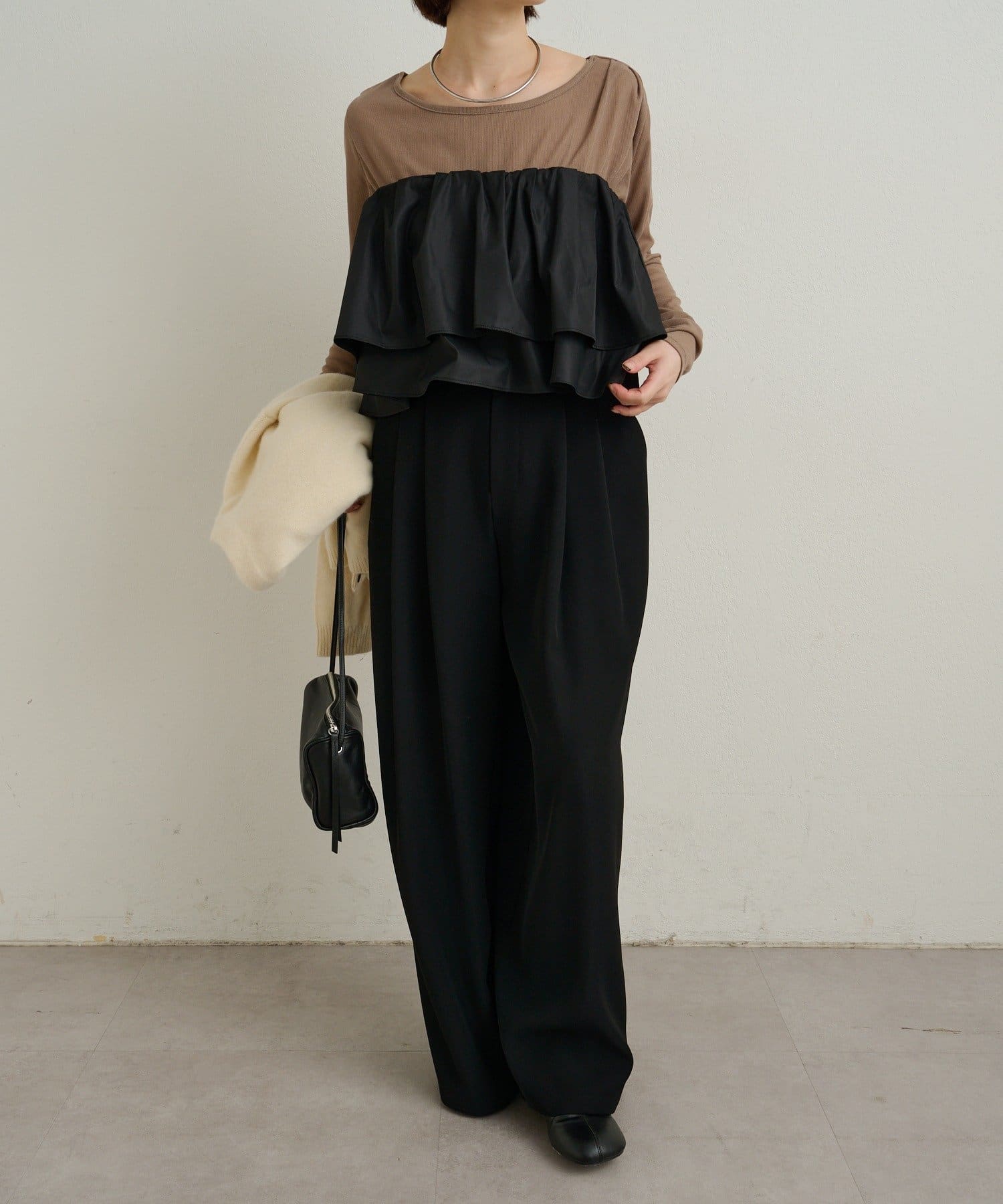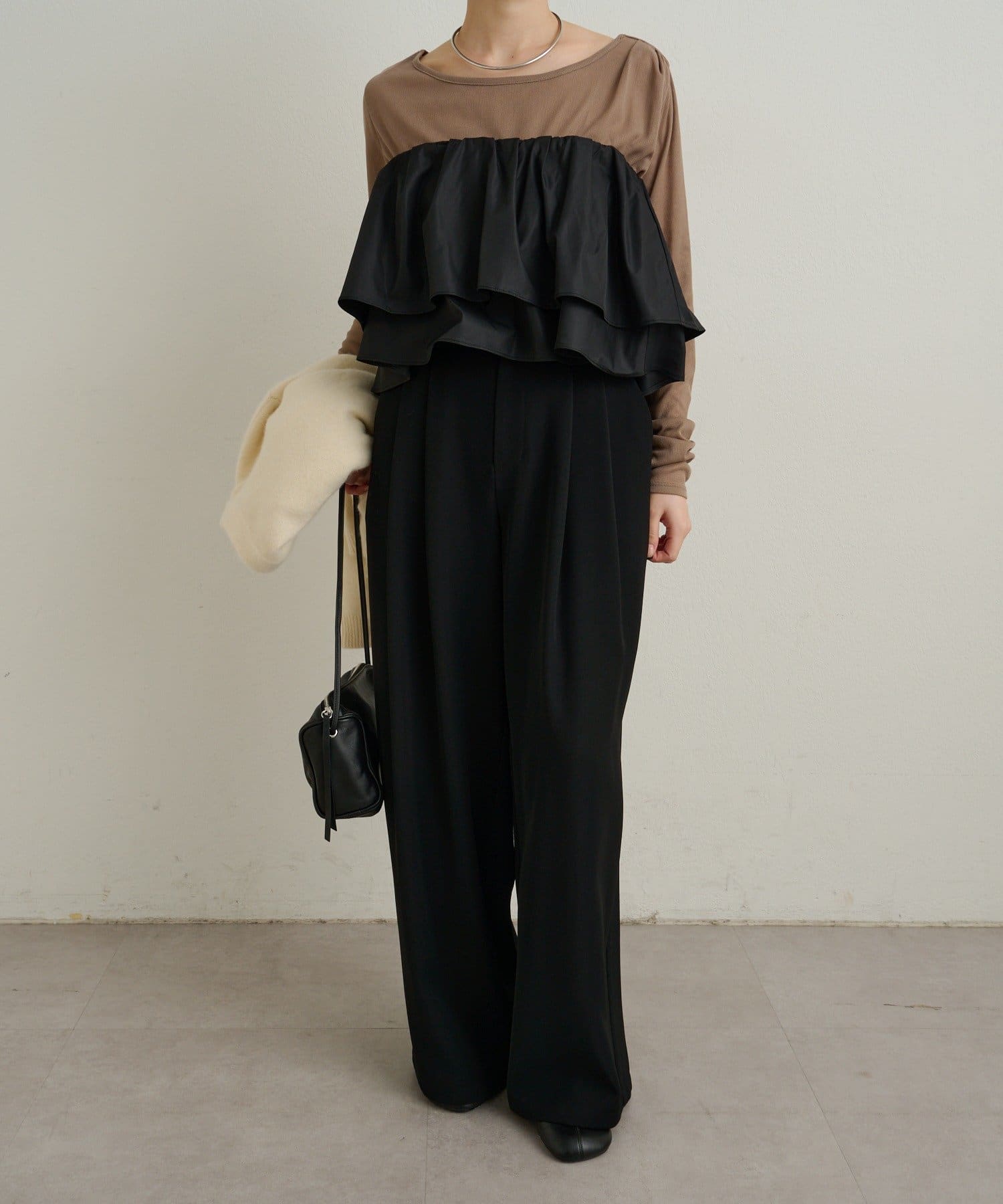 ・ほどよいネックの開きでワンショル、ボートネックなどスタイリング次第で変えていただけます。