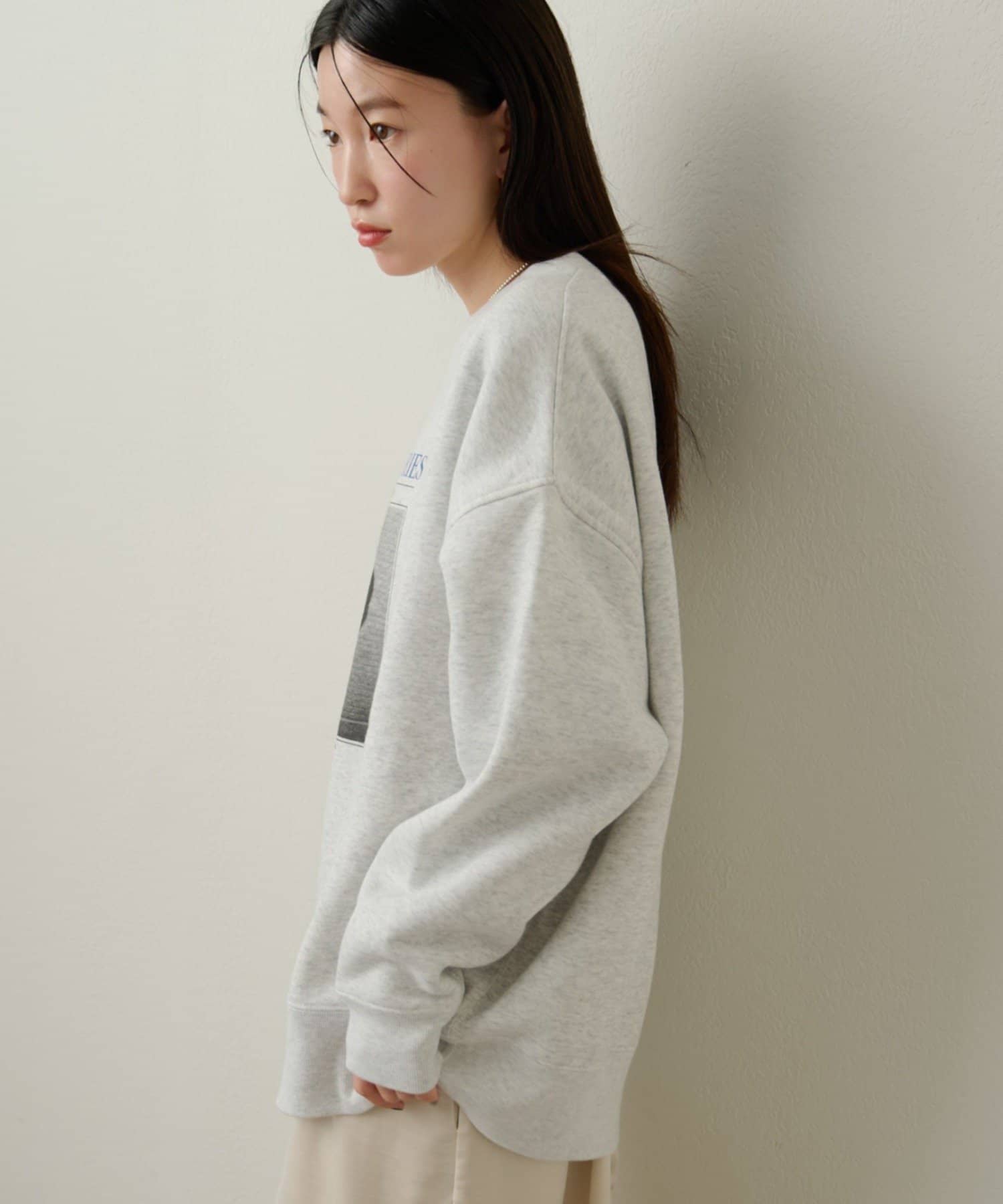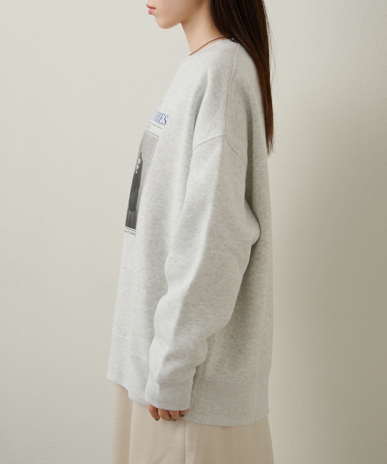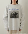 ・どんなアイテムにも合わせやすいヴィンテージ感のあるカラーにモノクロのフォトプリントが目を惹くスウェット