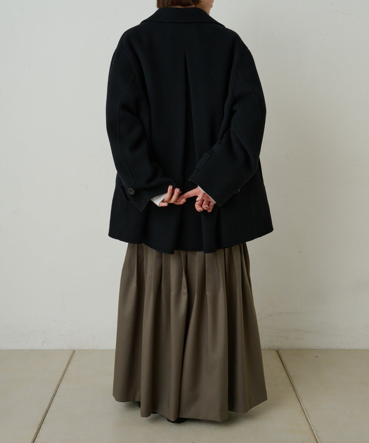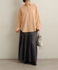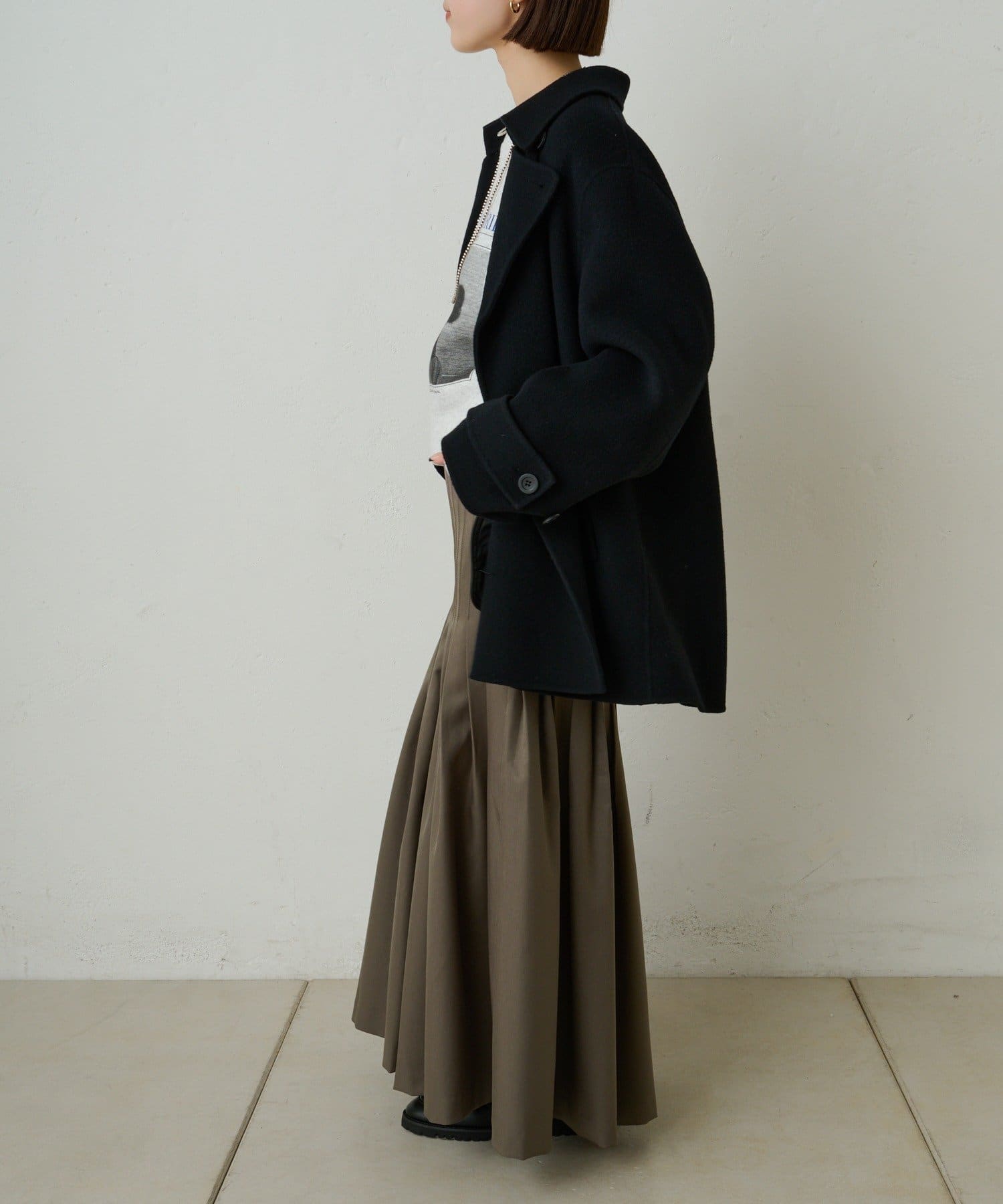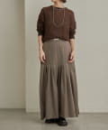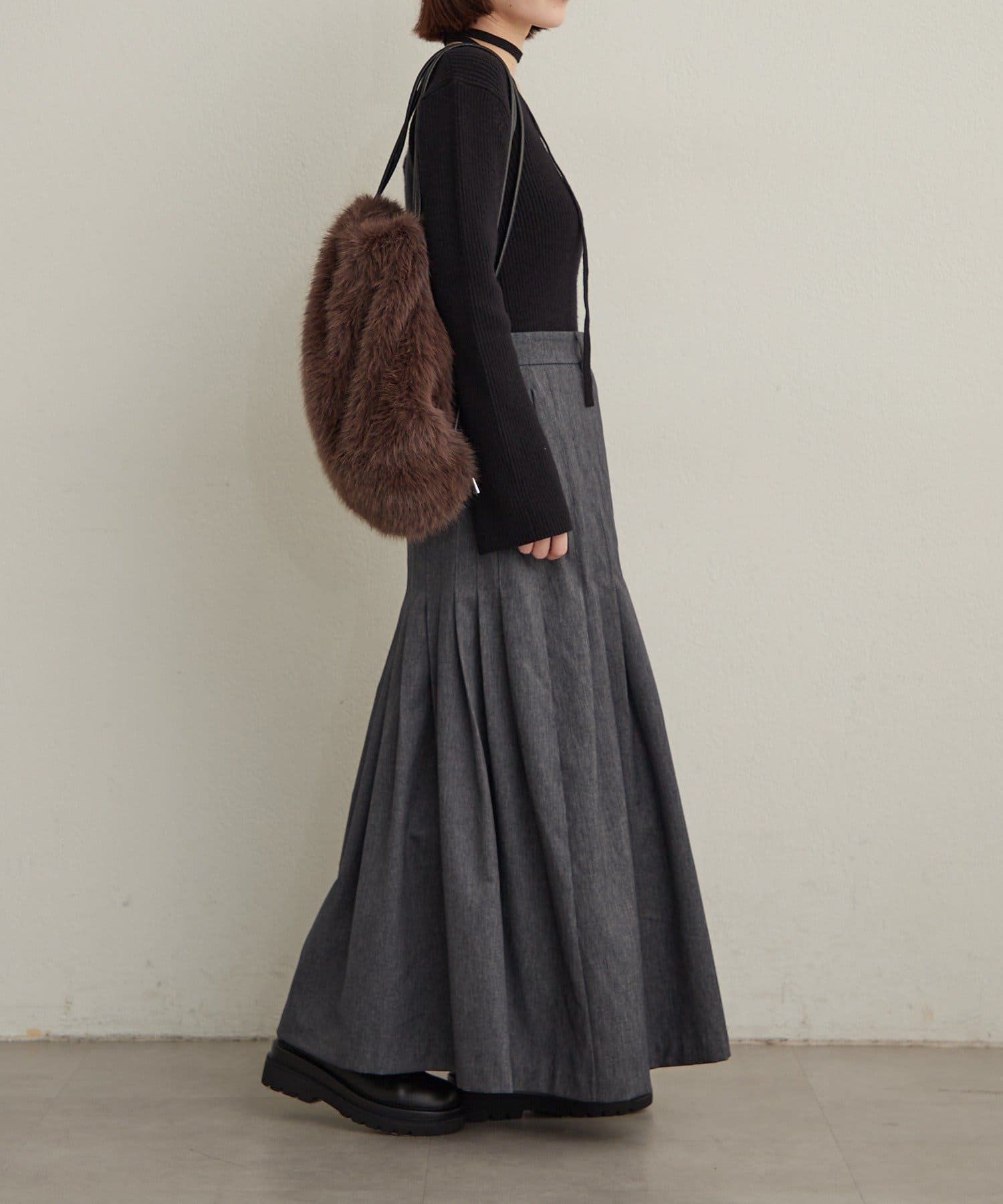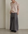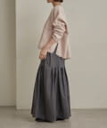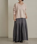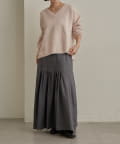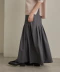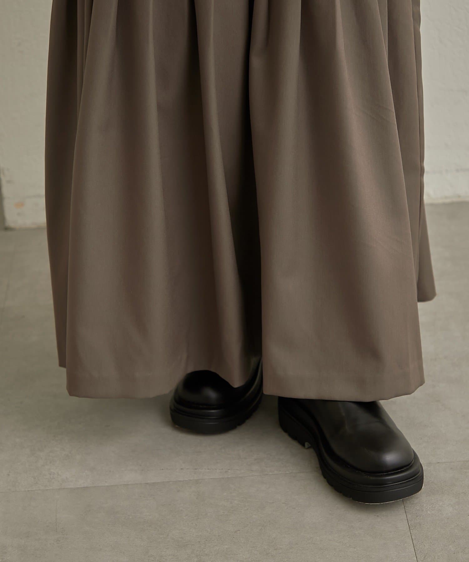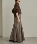 ・ひざ下から広がるデザインが、シンプルながらもスタイリングのポイントになる一枚。
