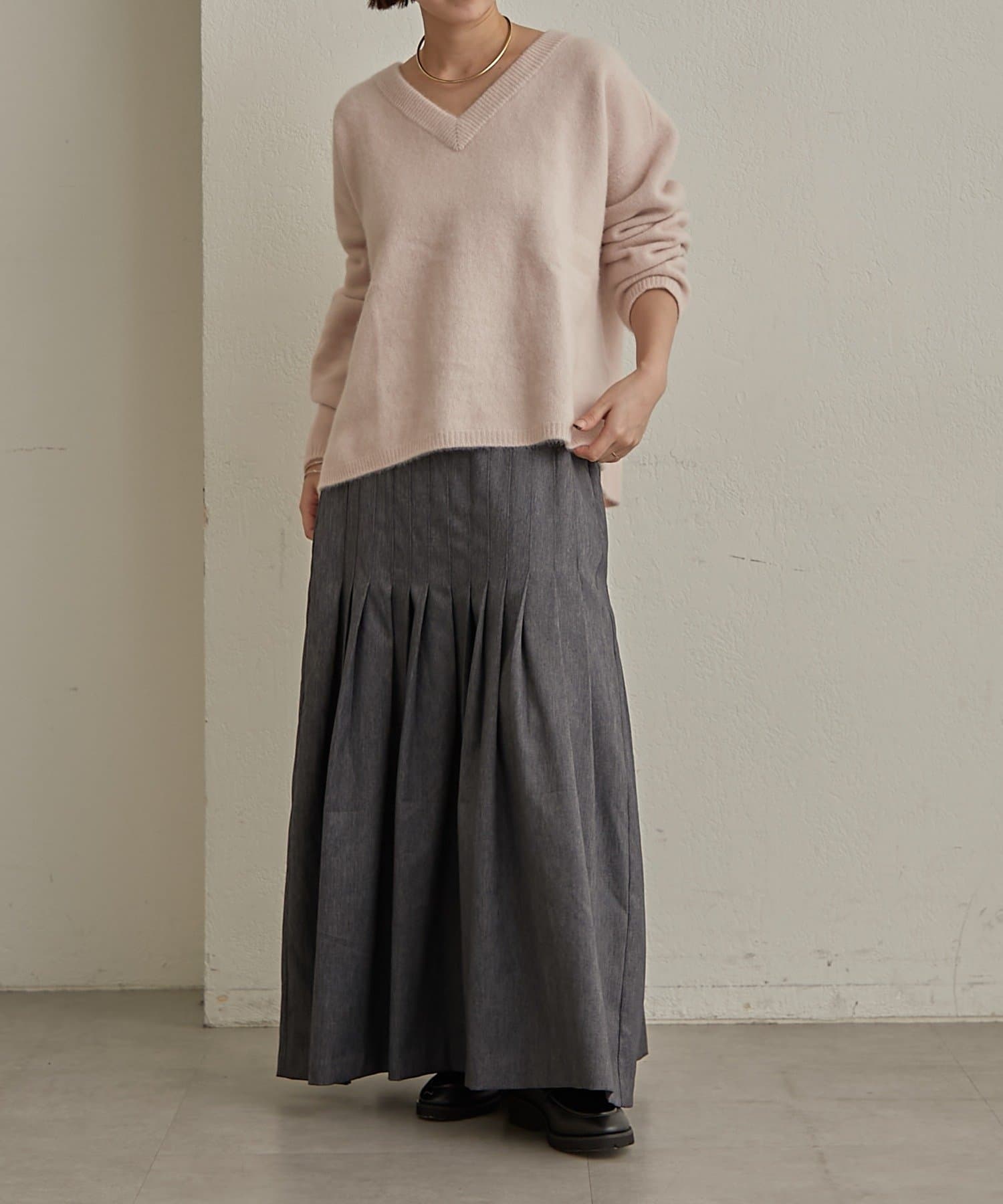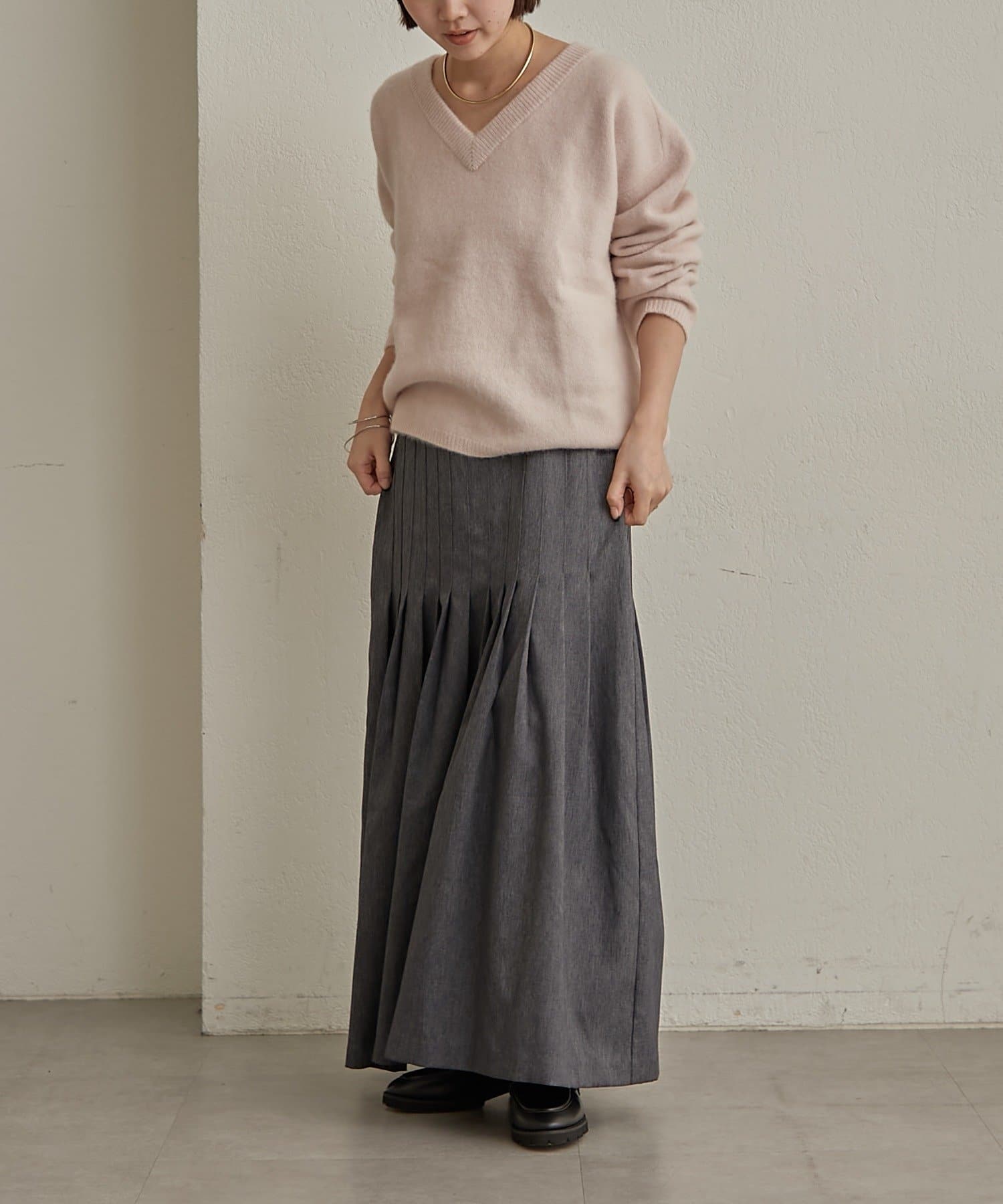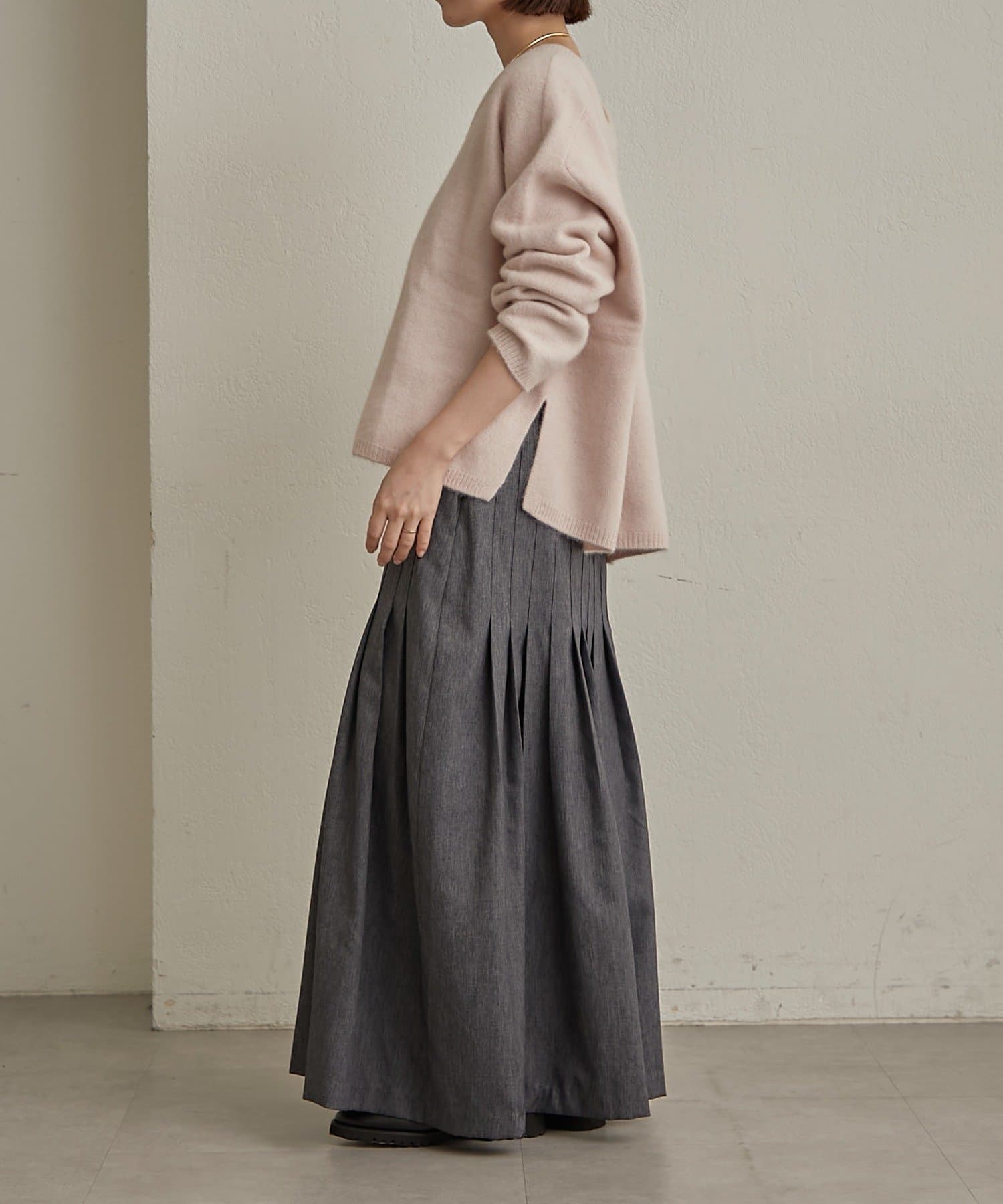 ・プリーツが目を惹くロング丈のプリーツスカート。
