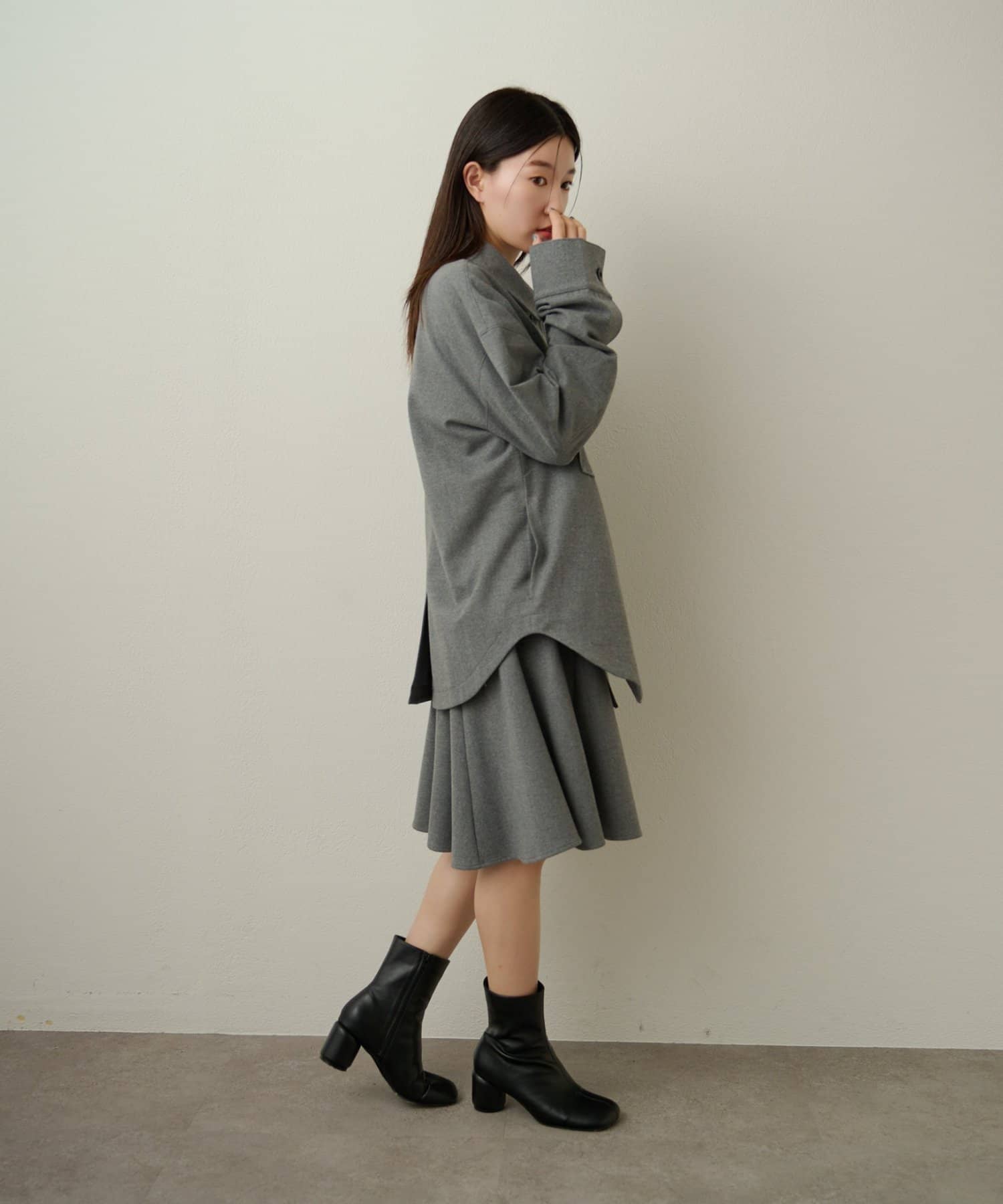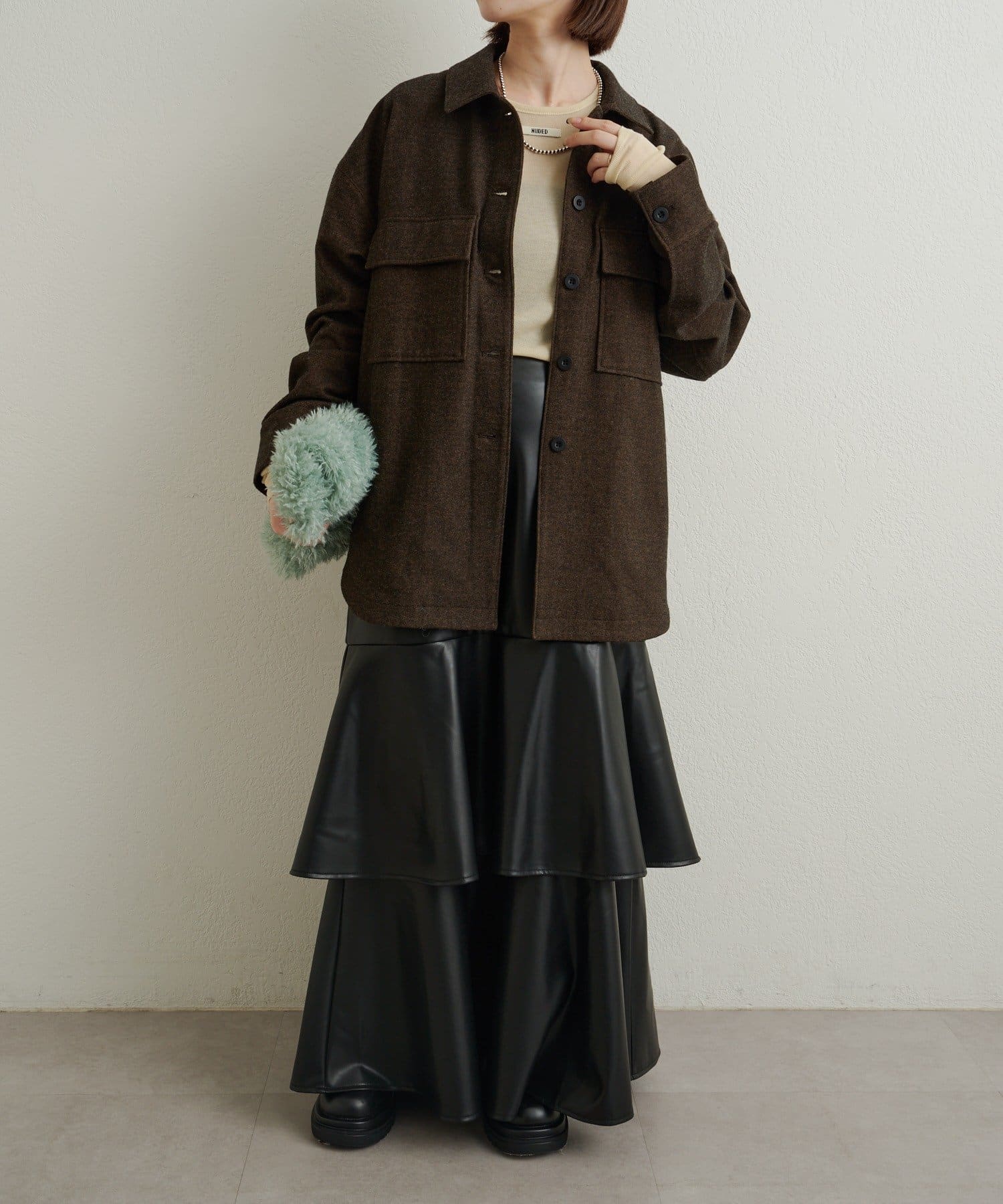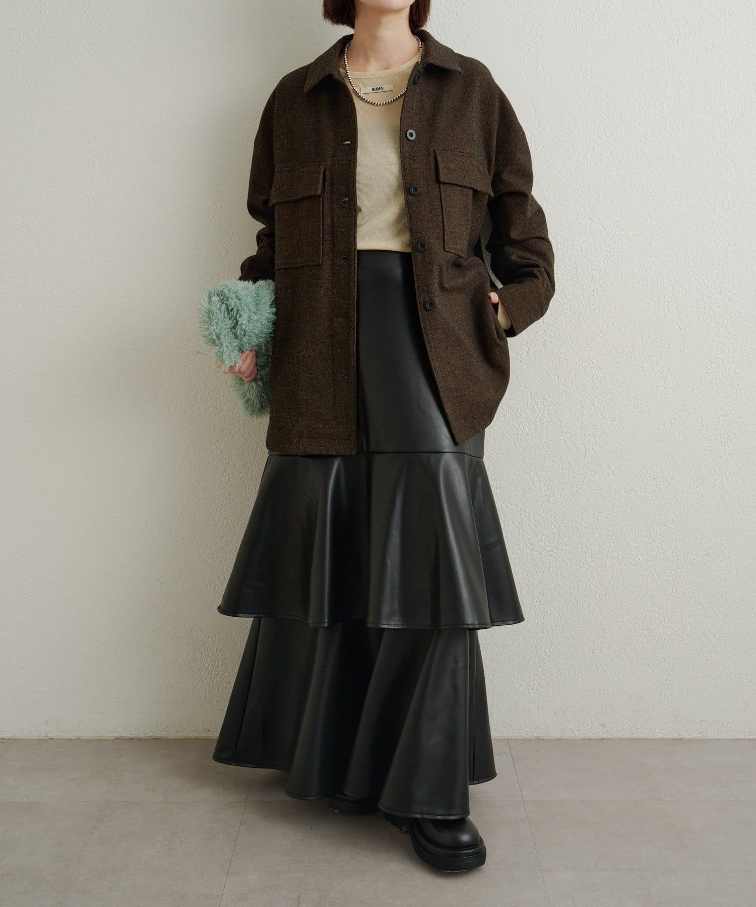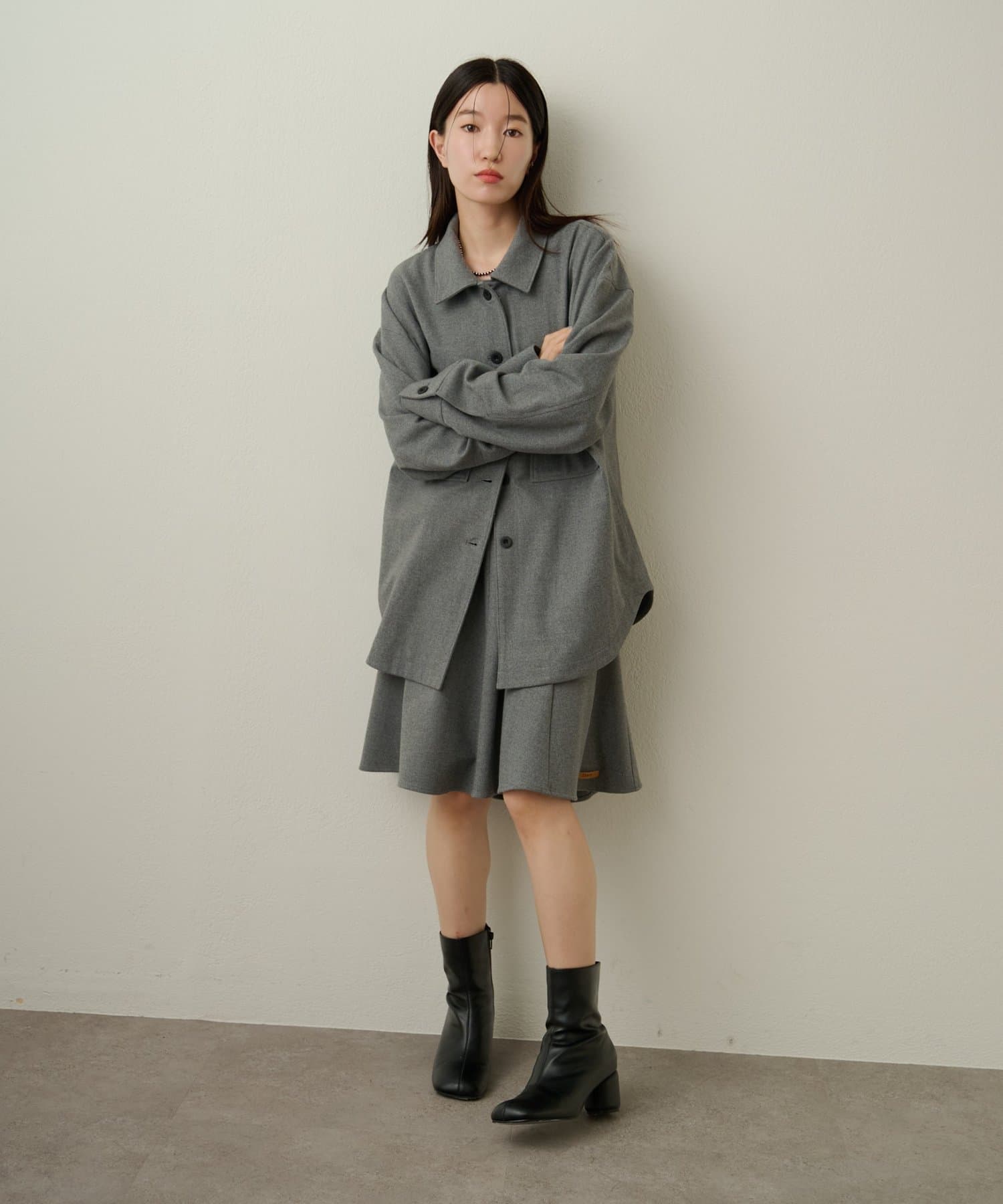 ・同素材のウールライクミニスカートとのセットアップもおすすめ!