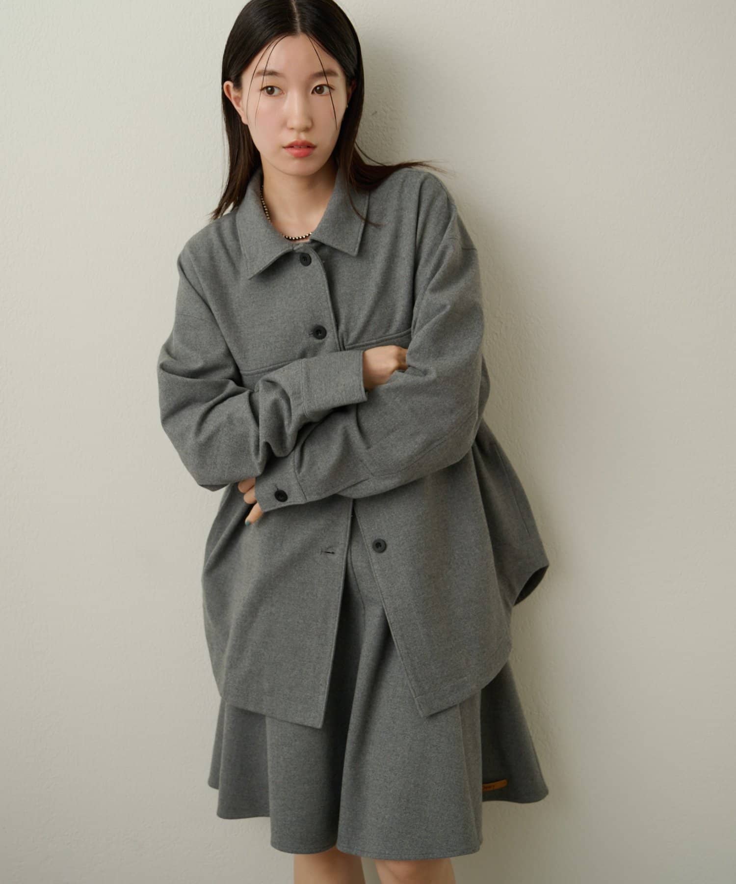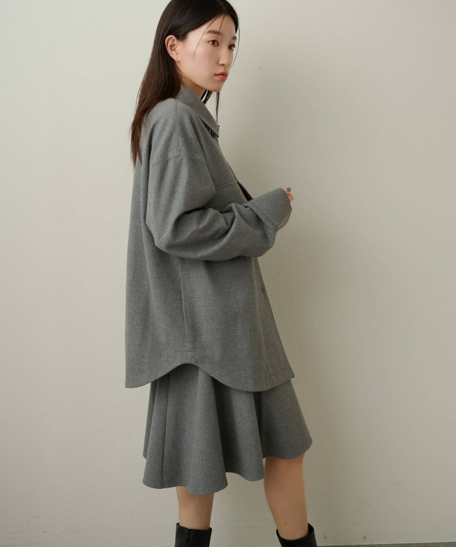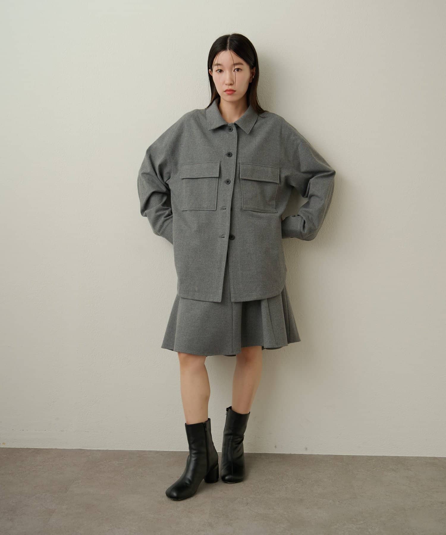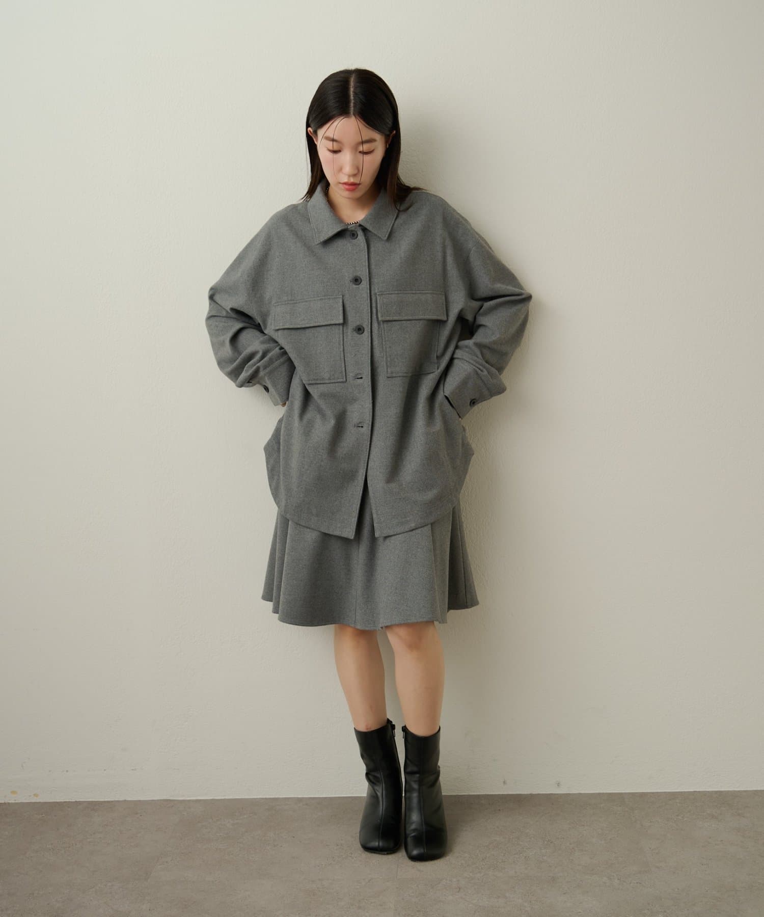 ・同素材のウールライクミニスカートとのセットアップもおすすめ!