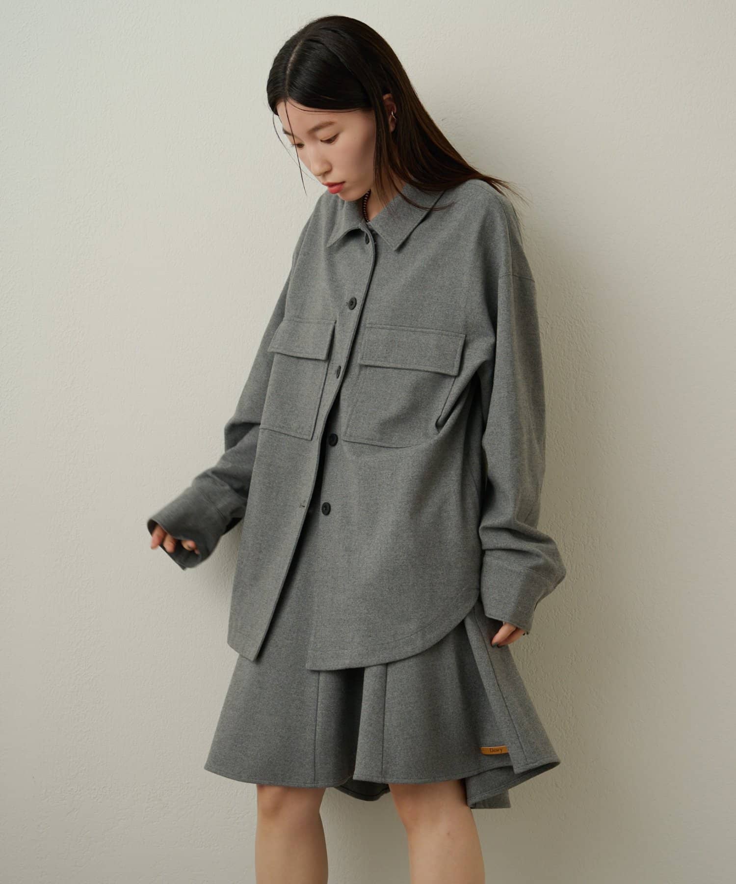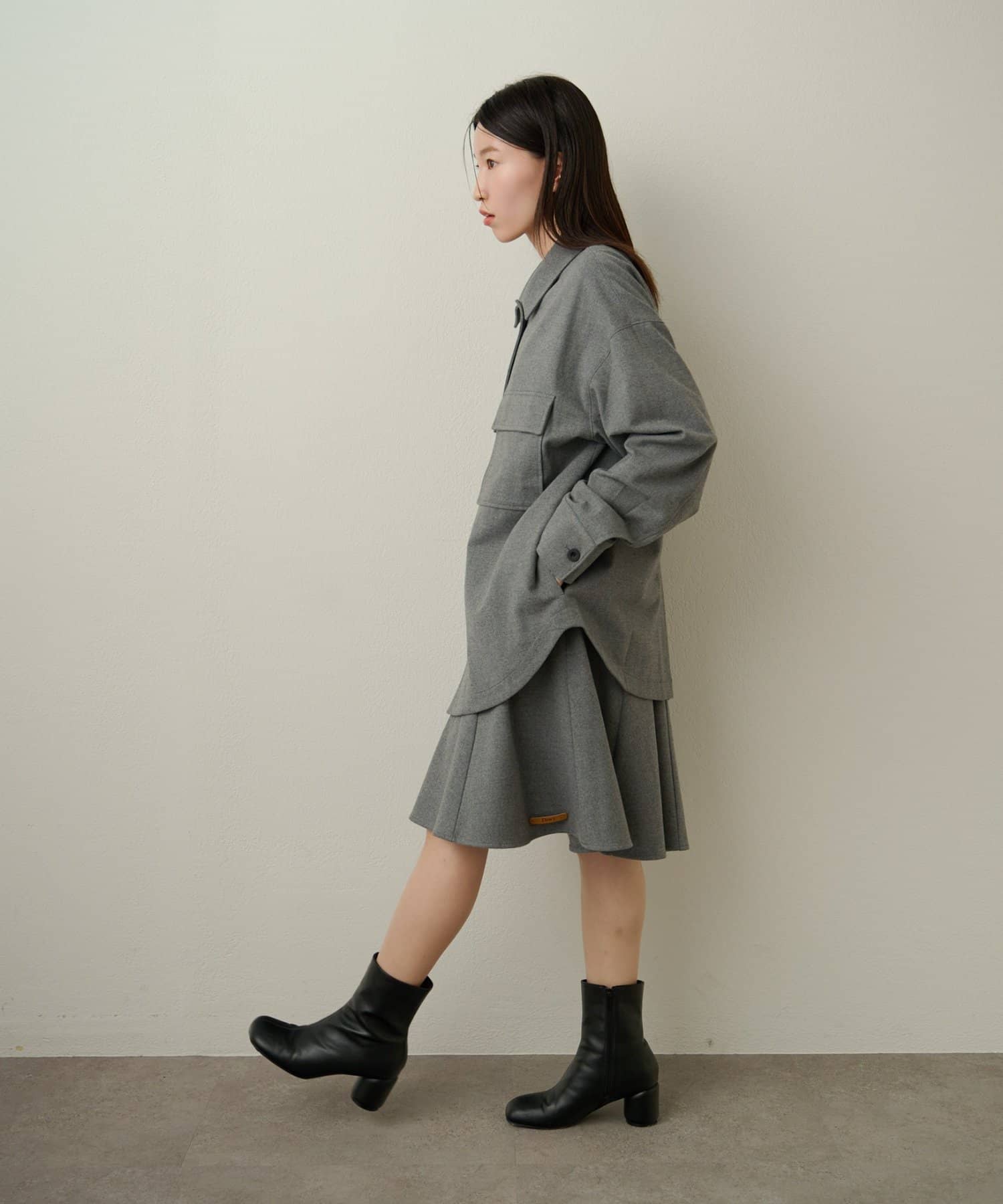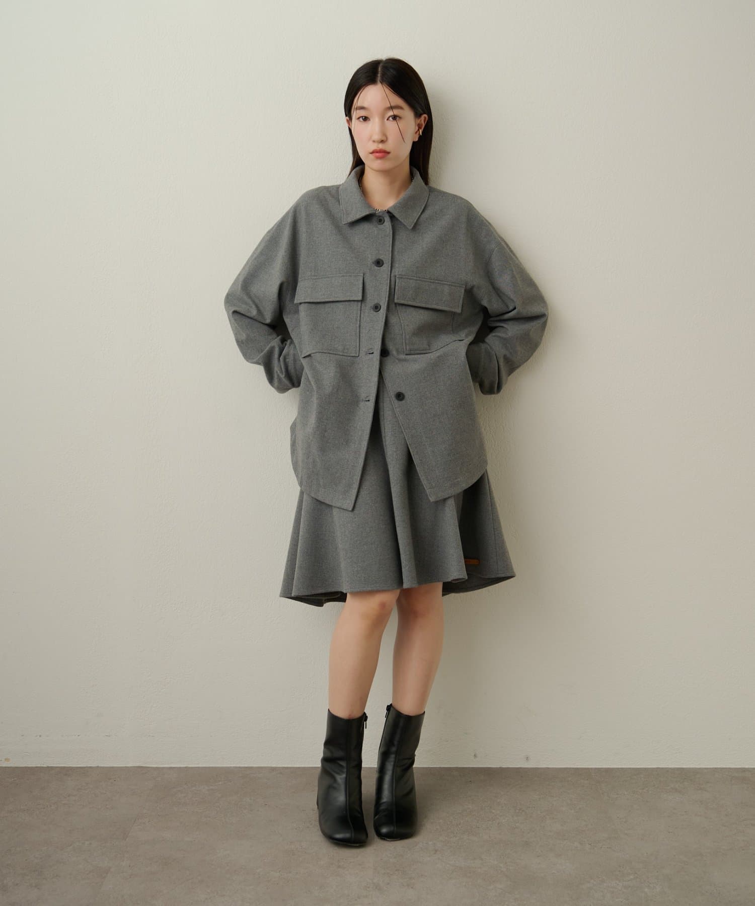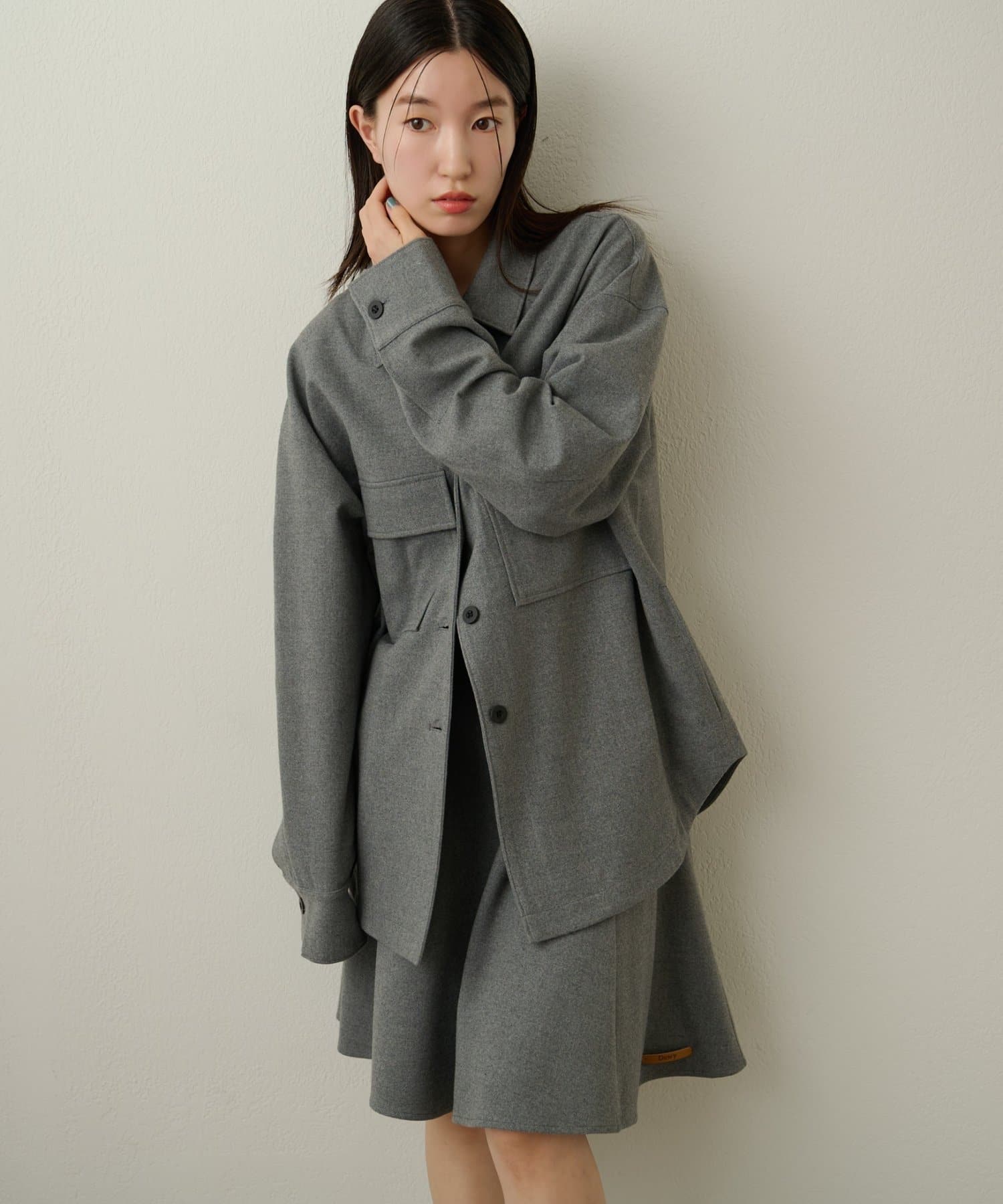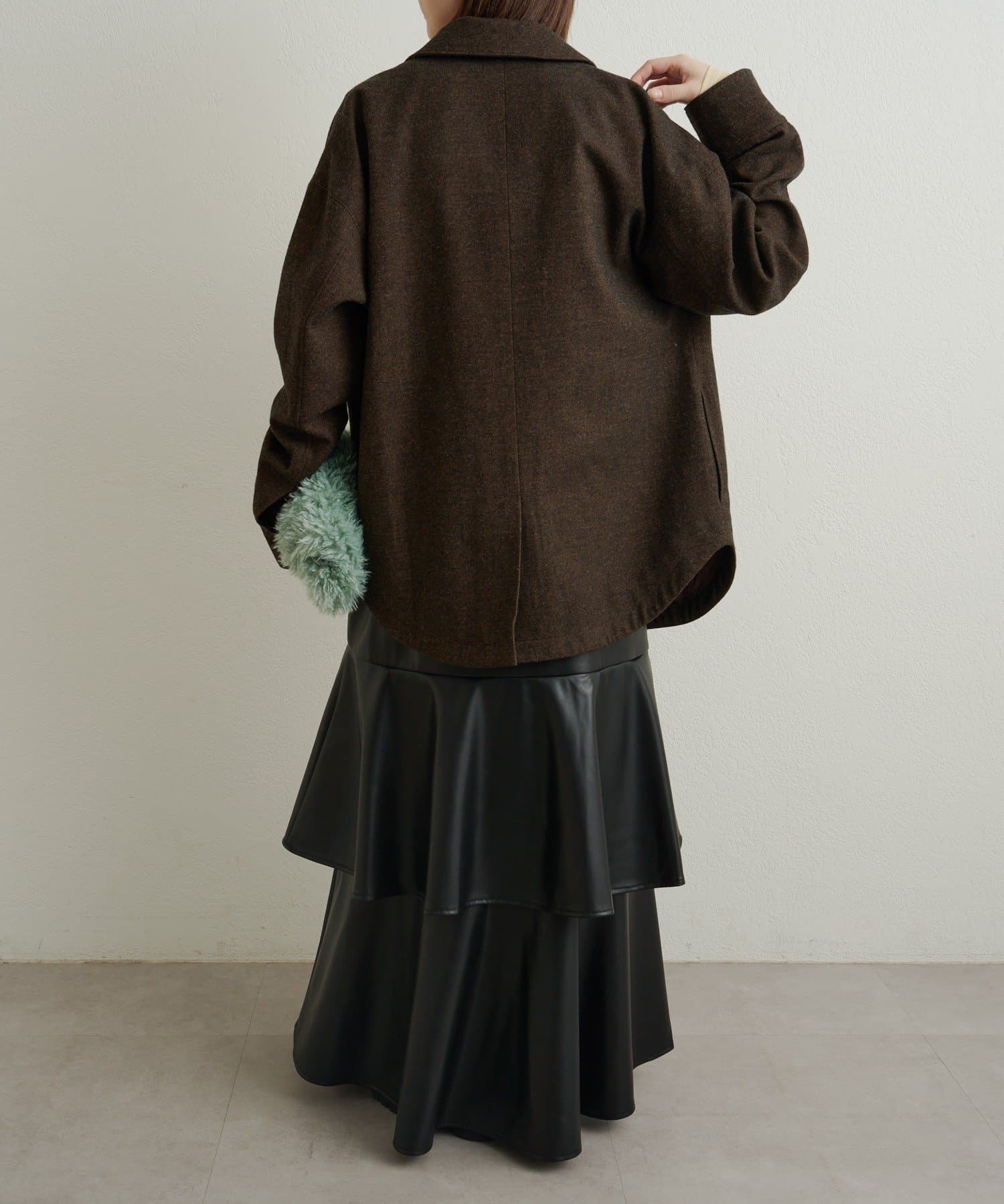 ・同素材のウールライクミニスカートとのセットアップもおすすめ!