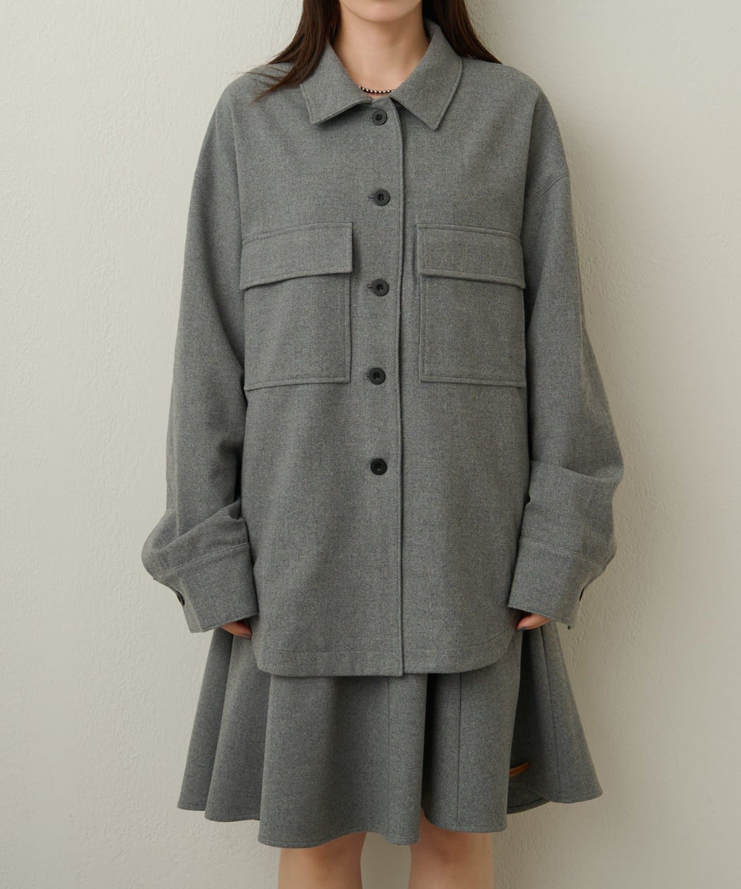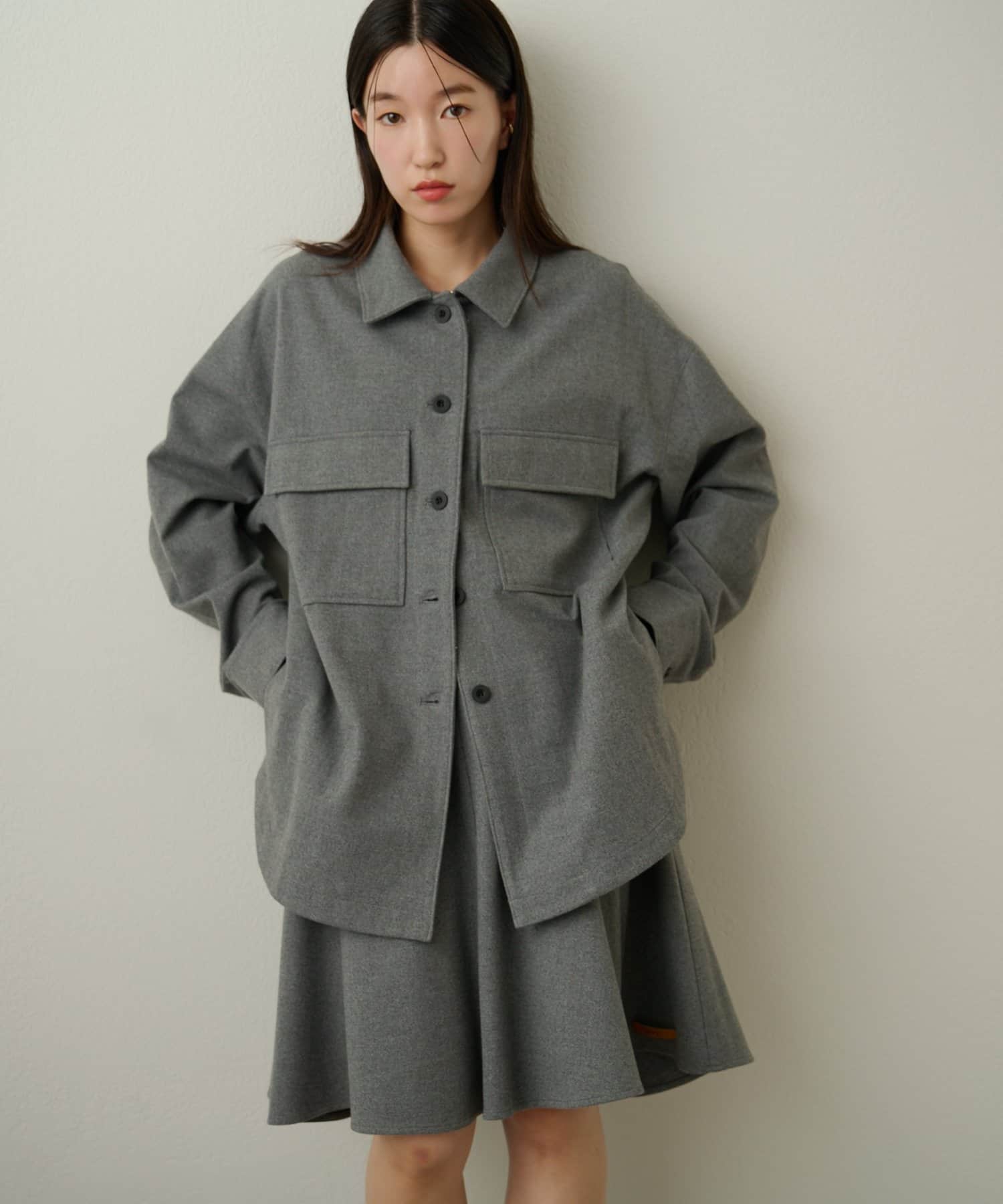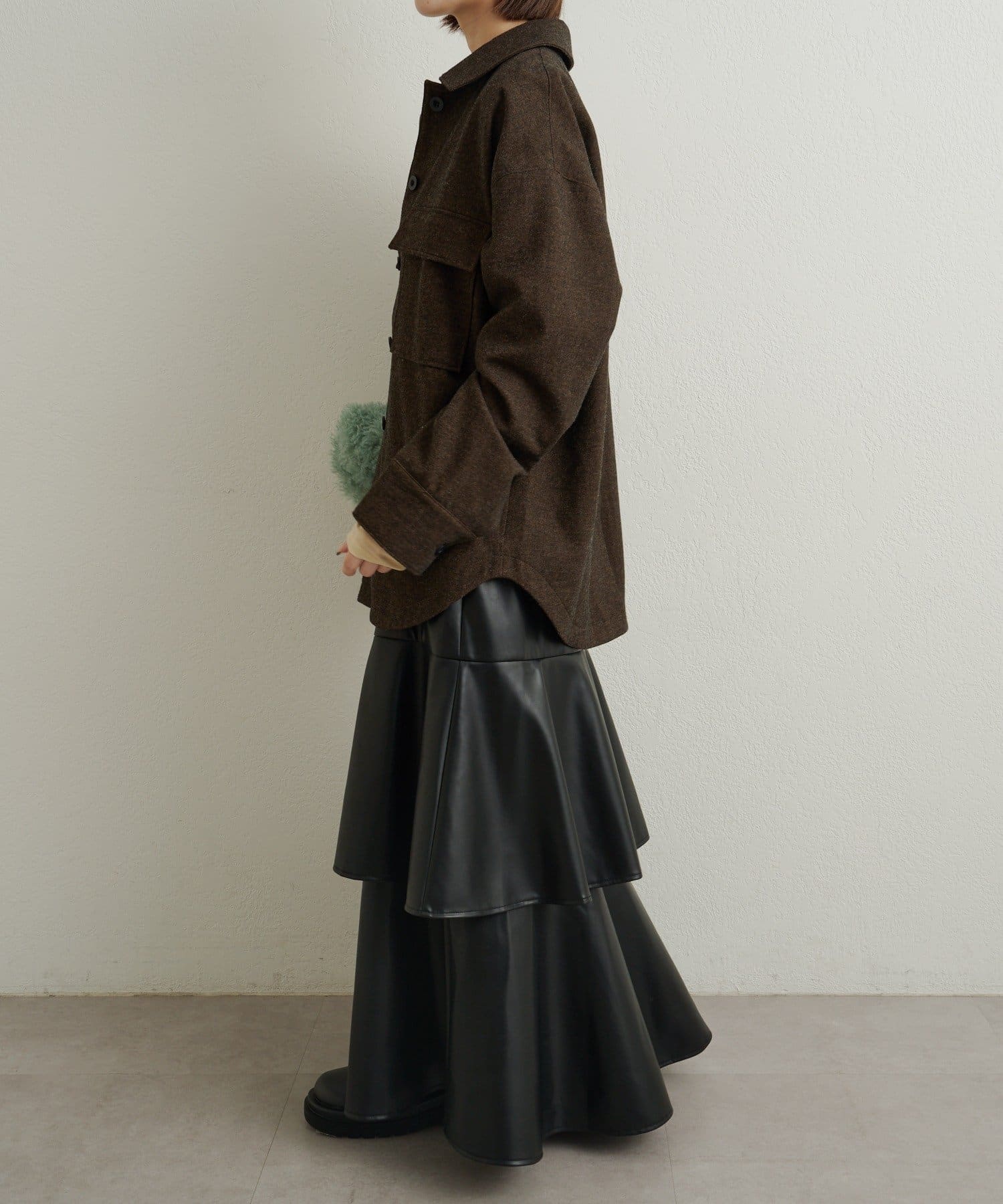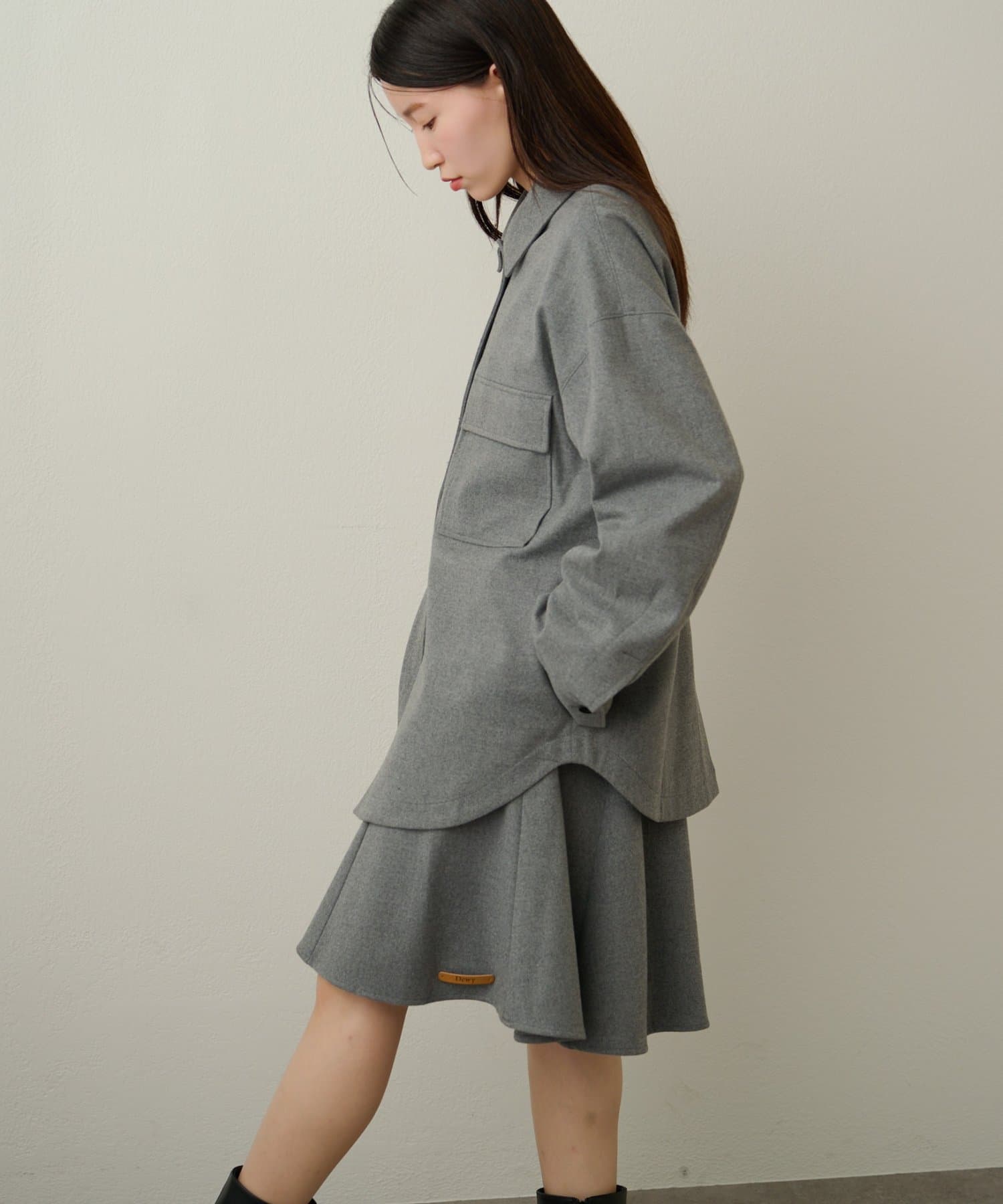 ・同素材のウールライクミニスカートとのセットアップもおすすめ!
