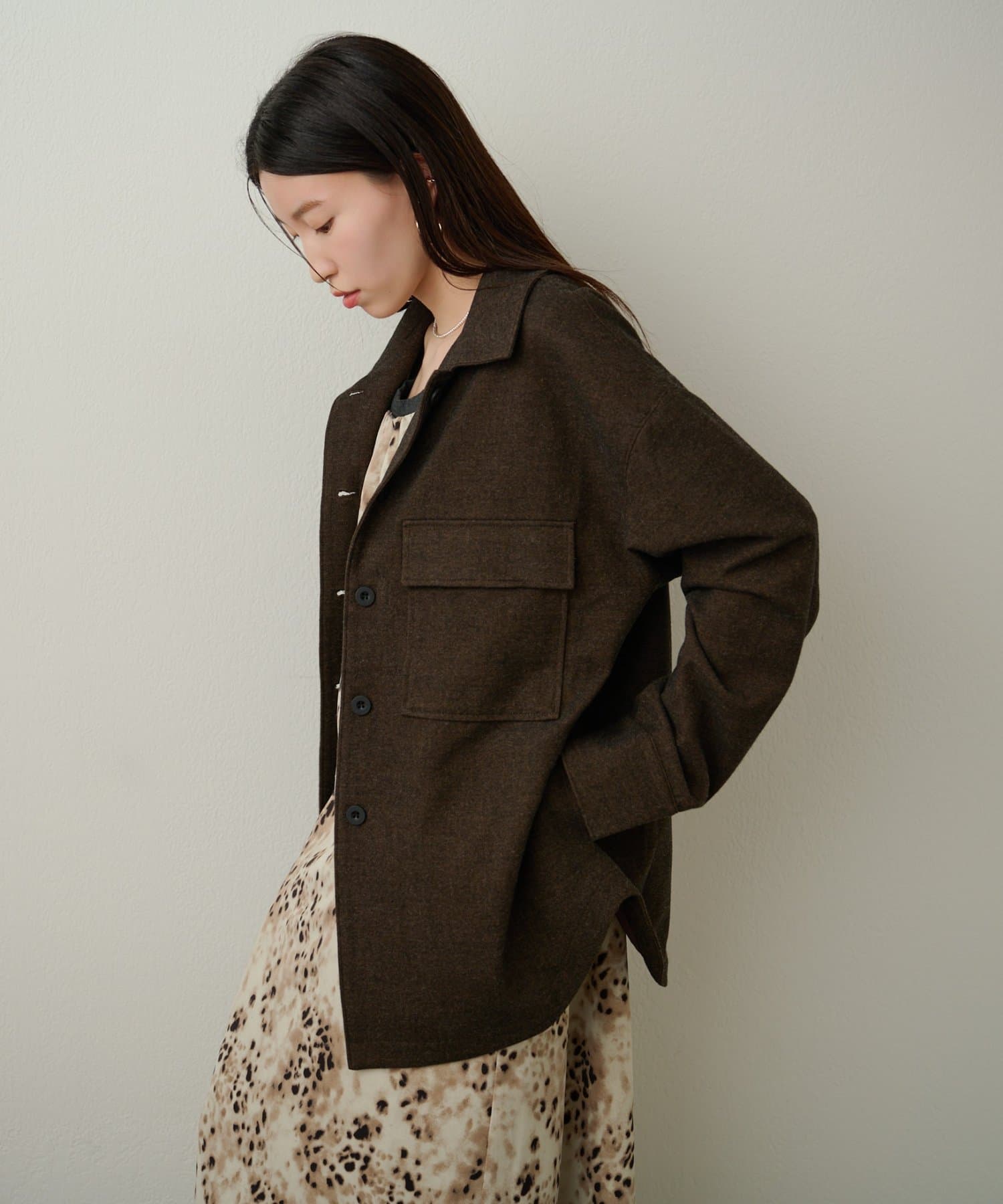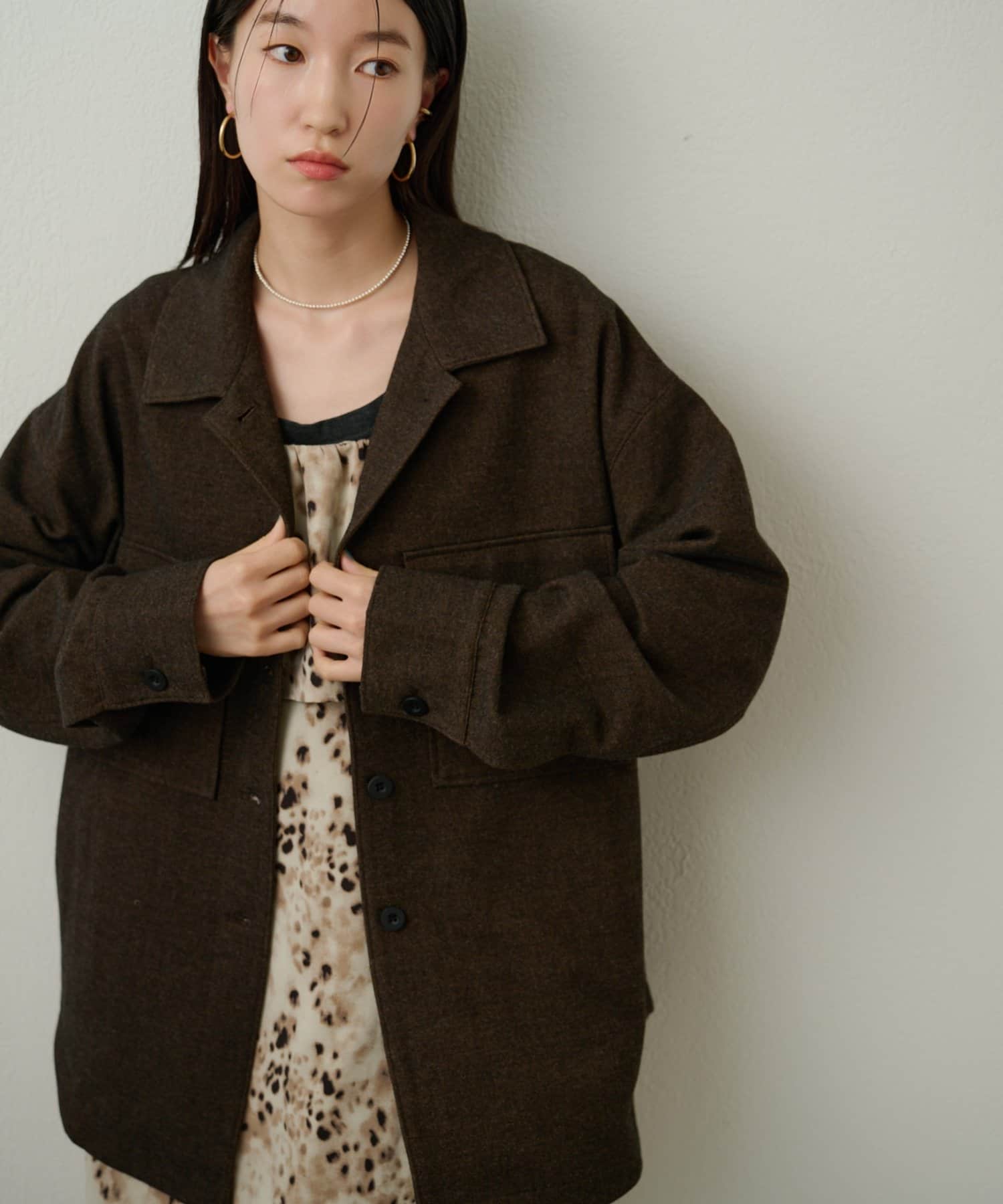 ・おしりが隠れる身丈とゆったりしたサイズ感が、メンズライクでカジュアルに決まるジャケット