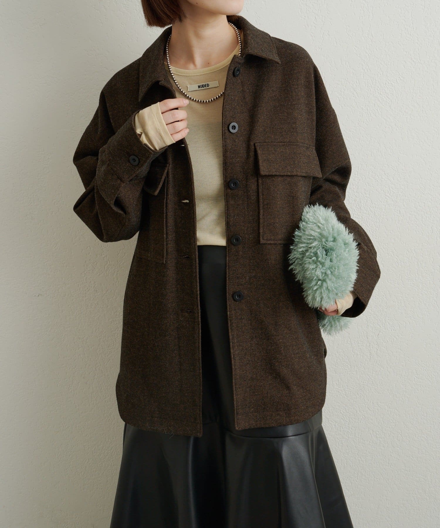 ・ウールライクの素材が秋らしい雰囲気のある一着