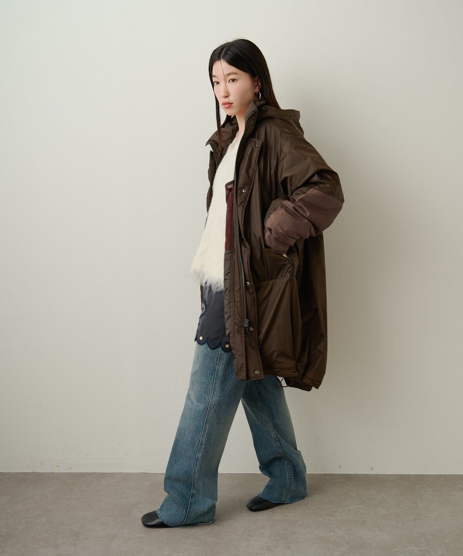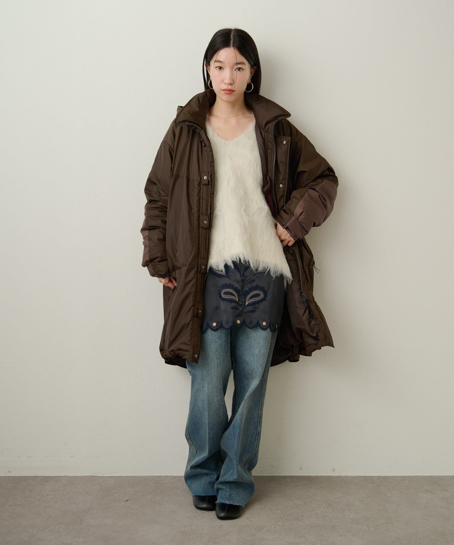 ・カジュアルなデザインですが、スカート合わせで女性らしいスタイリングもおすすめ◎