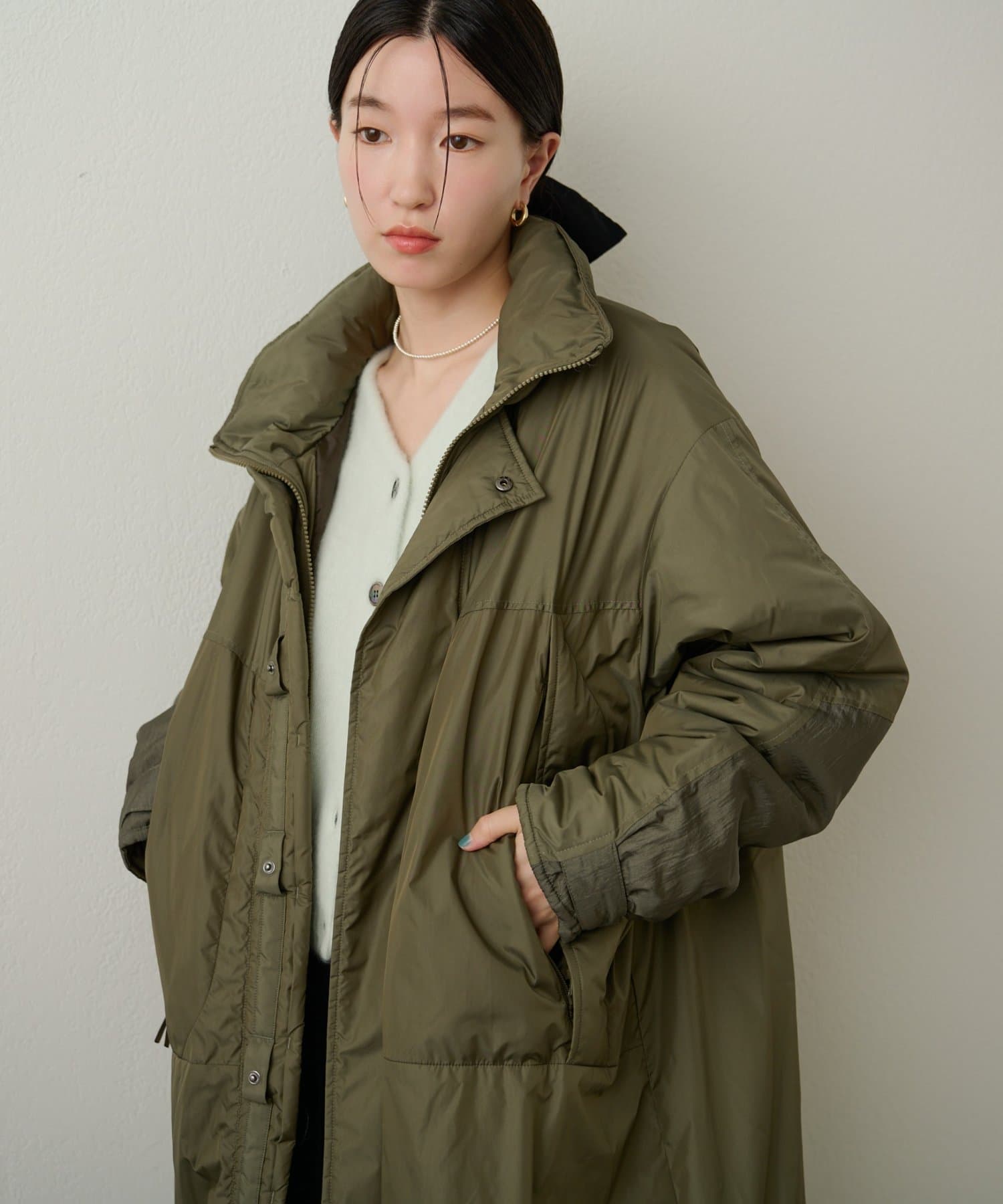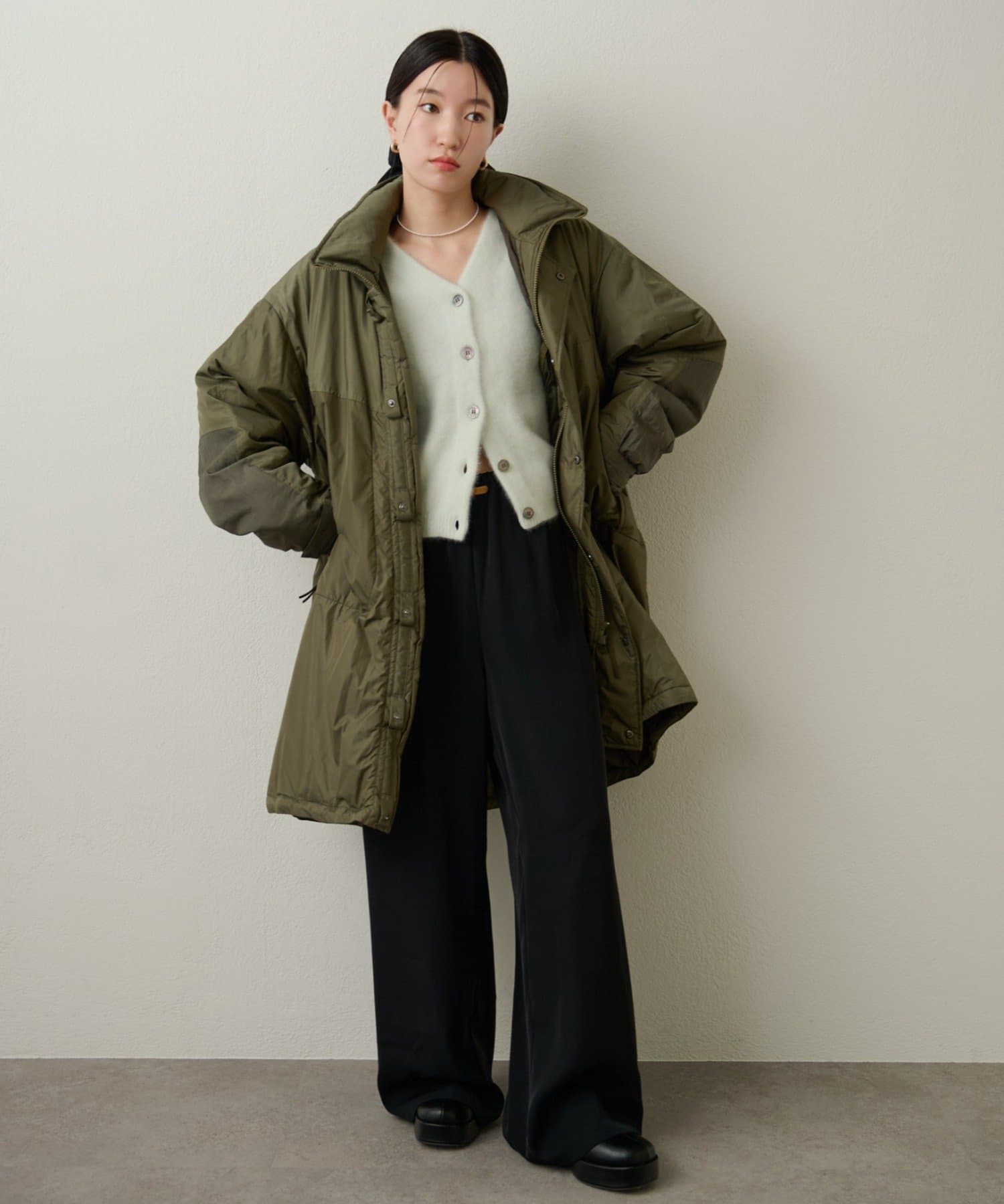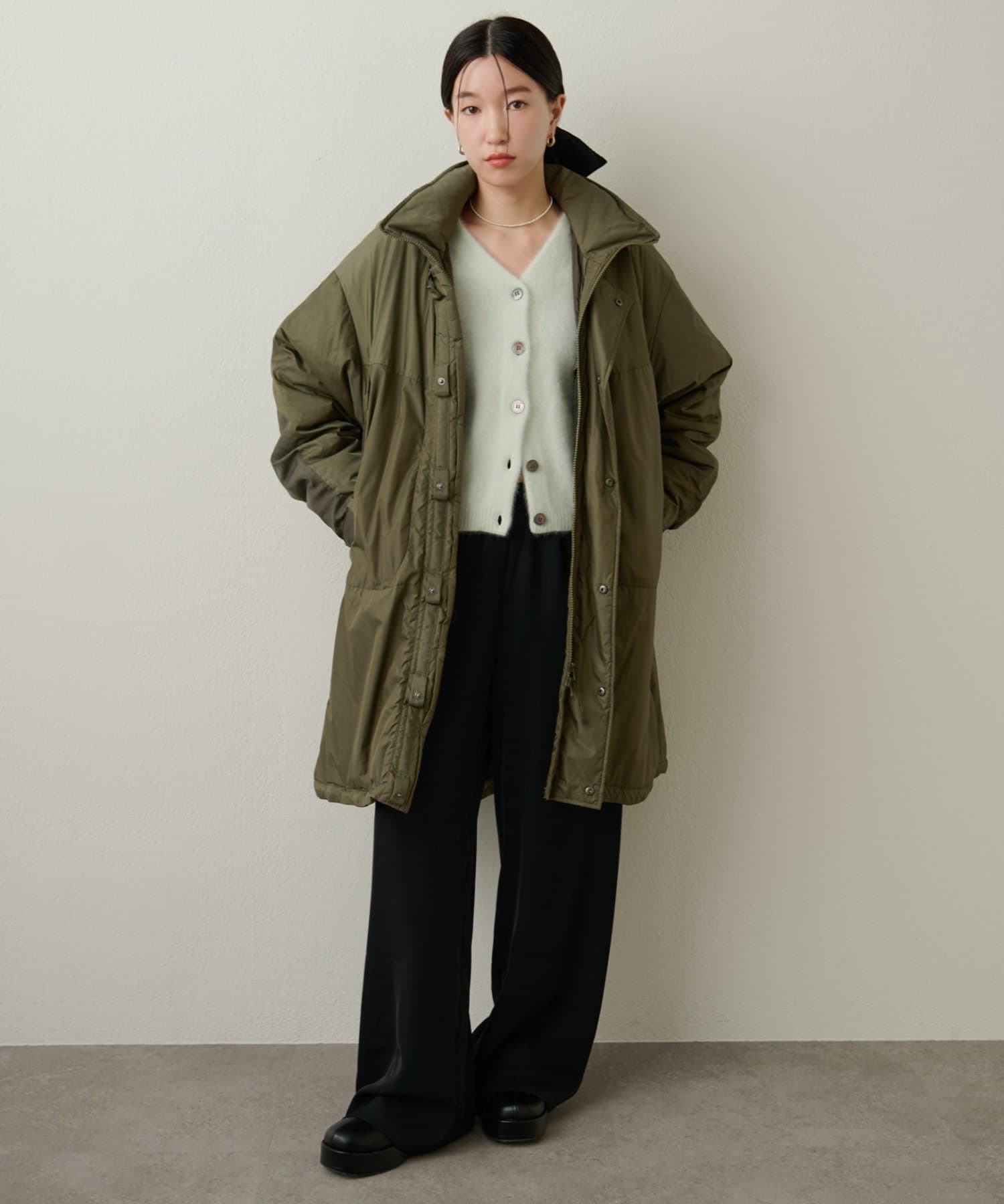 【カーキ②】ファーウール2WAY Vカーディガン