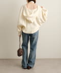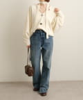 ・深めのVネックがデコルテラインをきれいに見せてくれて、カジュアルながらも女性らしい抜け感も◎